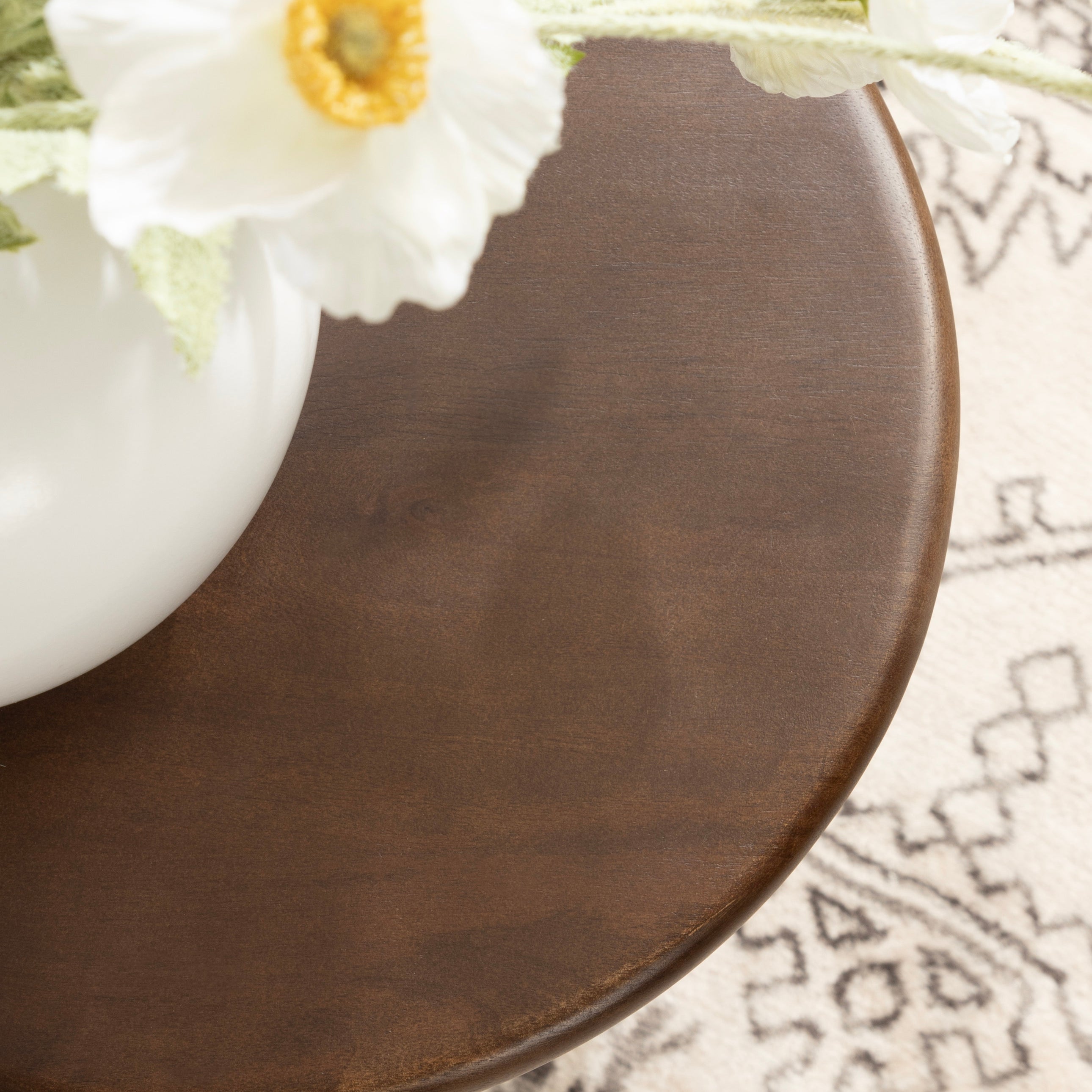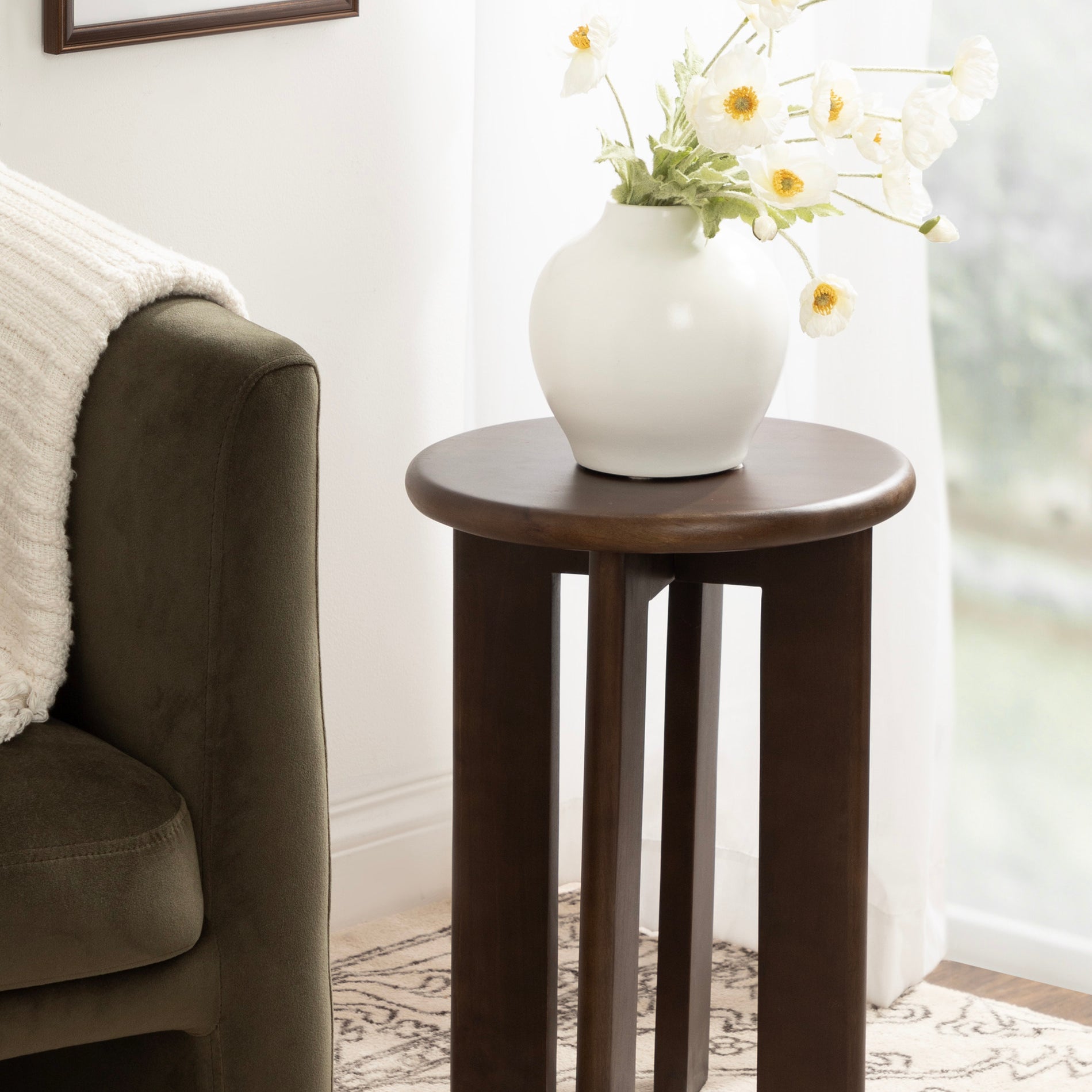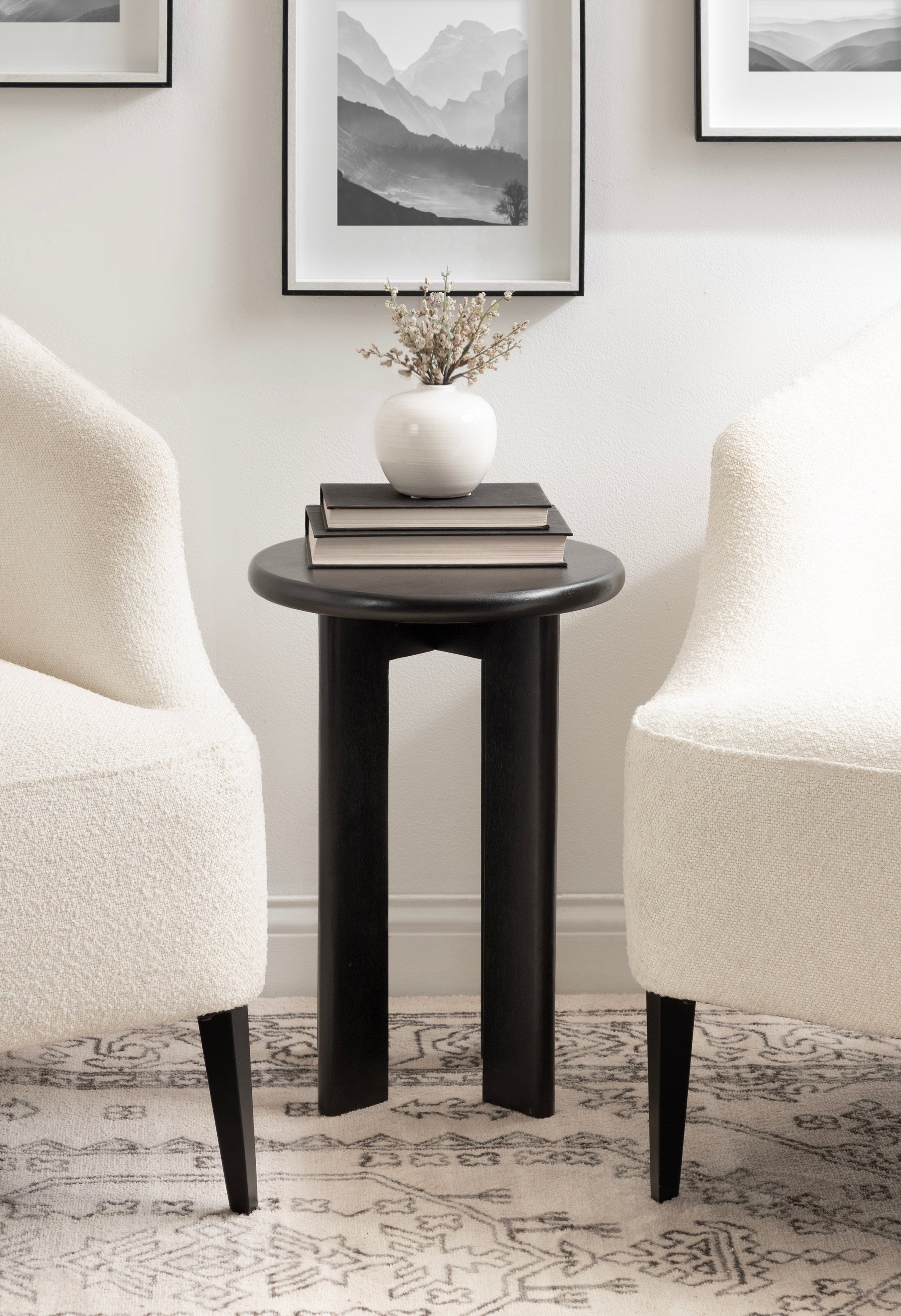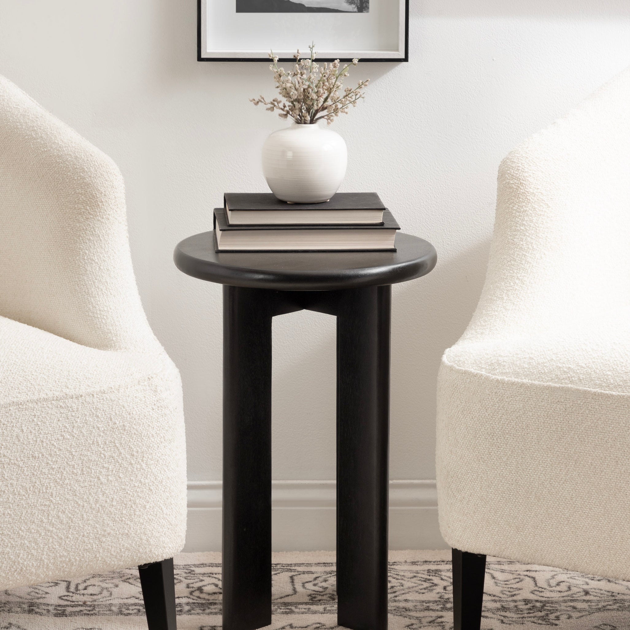 Showcase your modern-inspired style with the Seebeck round side table from Kate and Laurel. The delightful finish of the wood adds a touch of sophistication to any space, while the soft curvature of the design makes it easy to blend seamlessly with any decor style. However, the fun yet stable table legs make it a youthful living room accent table. A careful selection of solid mango wood was used to create this beautiful side table, creating a statement that is as durable as it is beautiful. The round tabletop boasts a soft bullnosed edge and is perfect for creating a curated display area for candles, small lamps, and other accents. Assemble this table in only a matter of minutes with a straightforward, two-step assembly process.