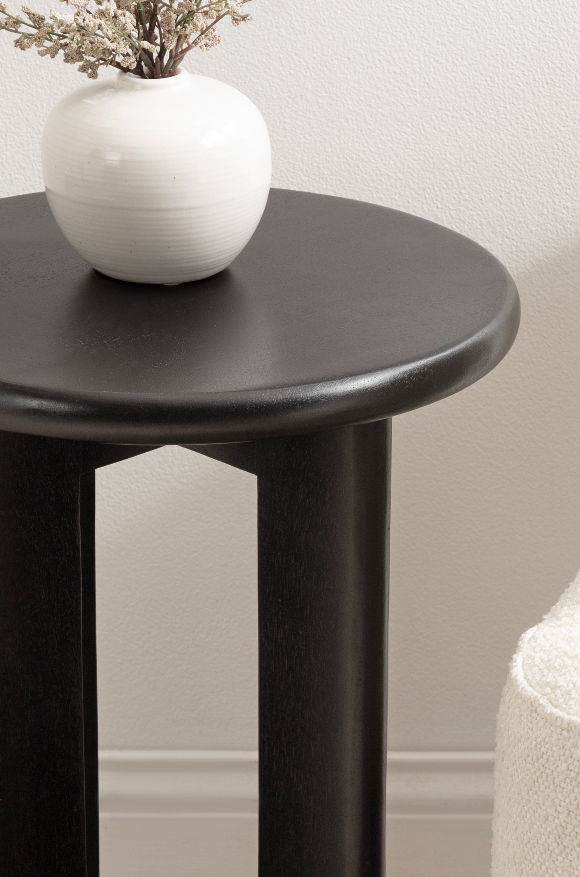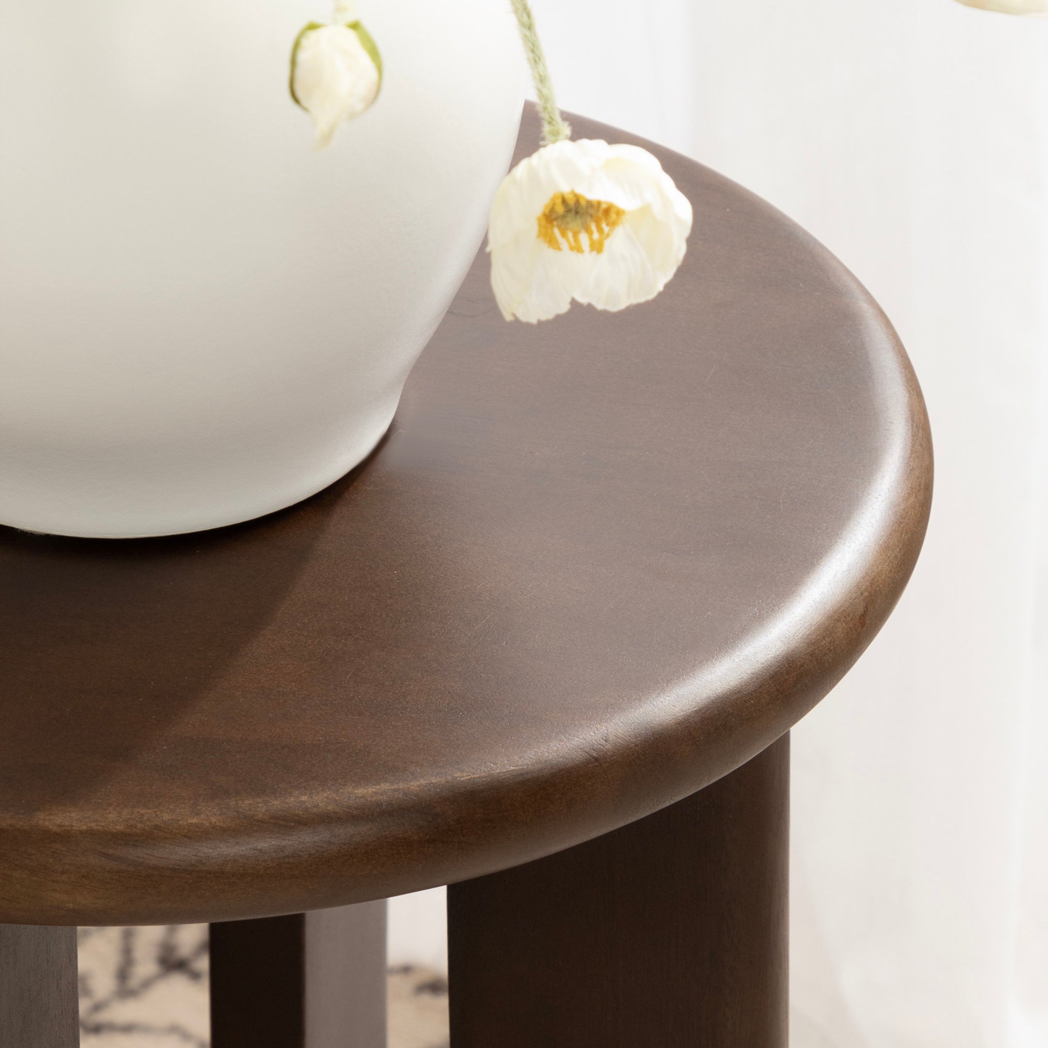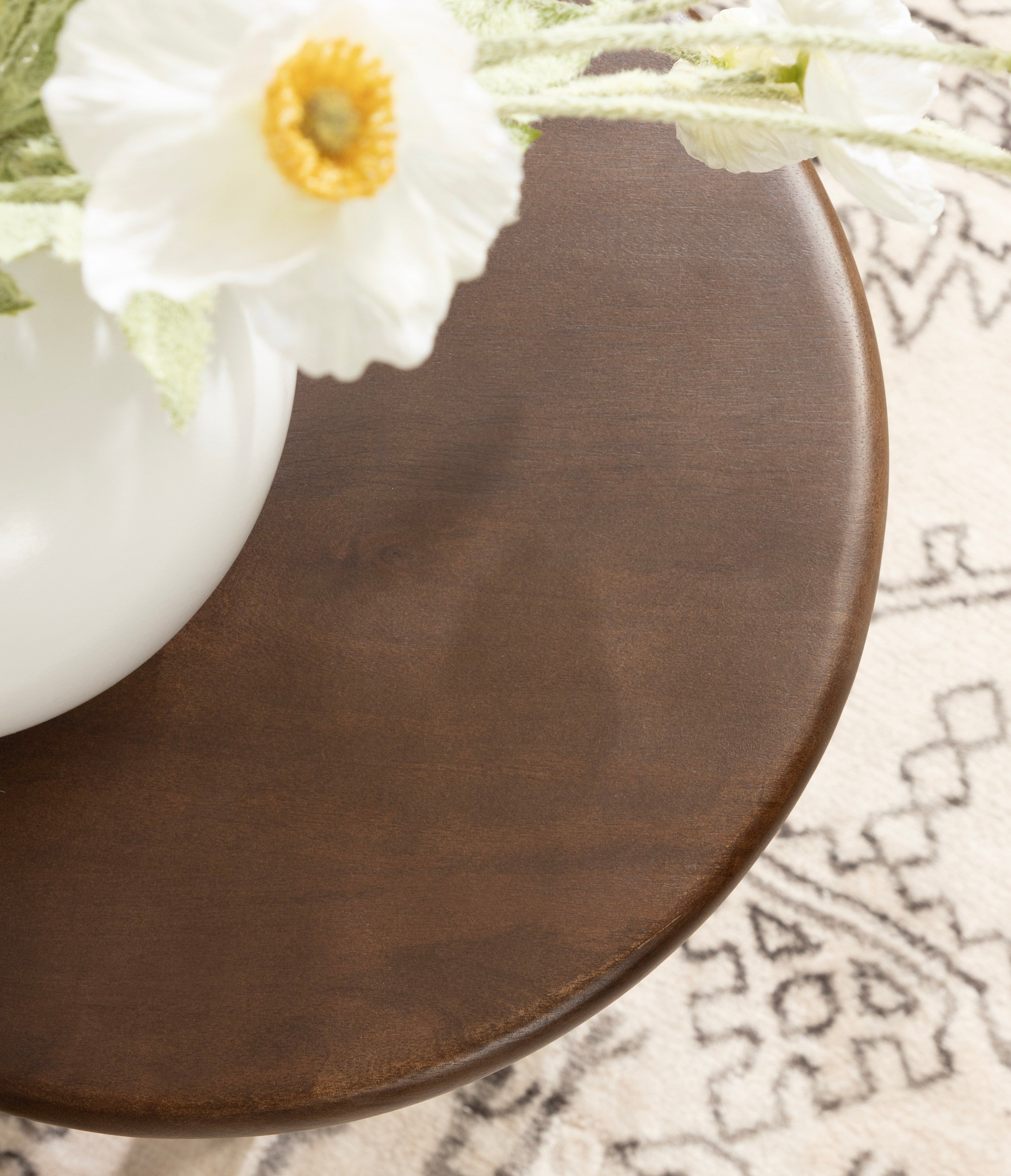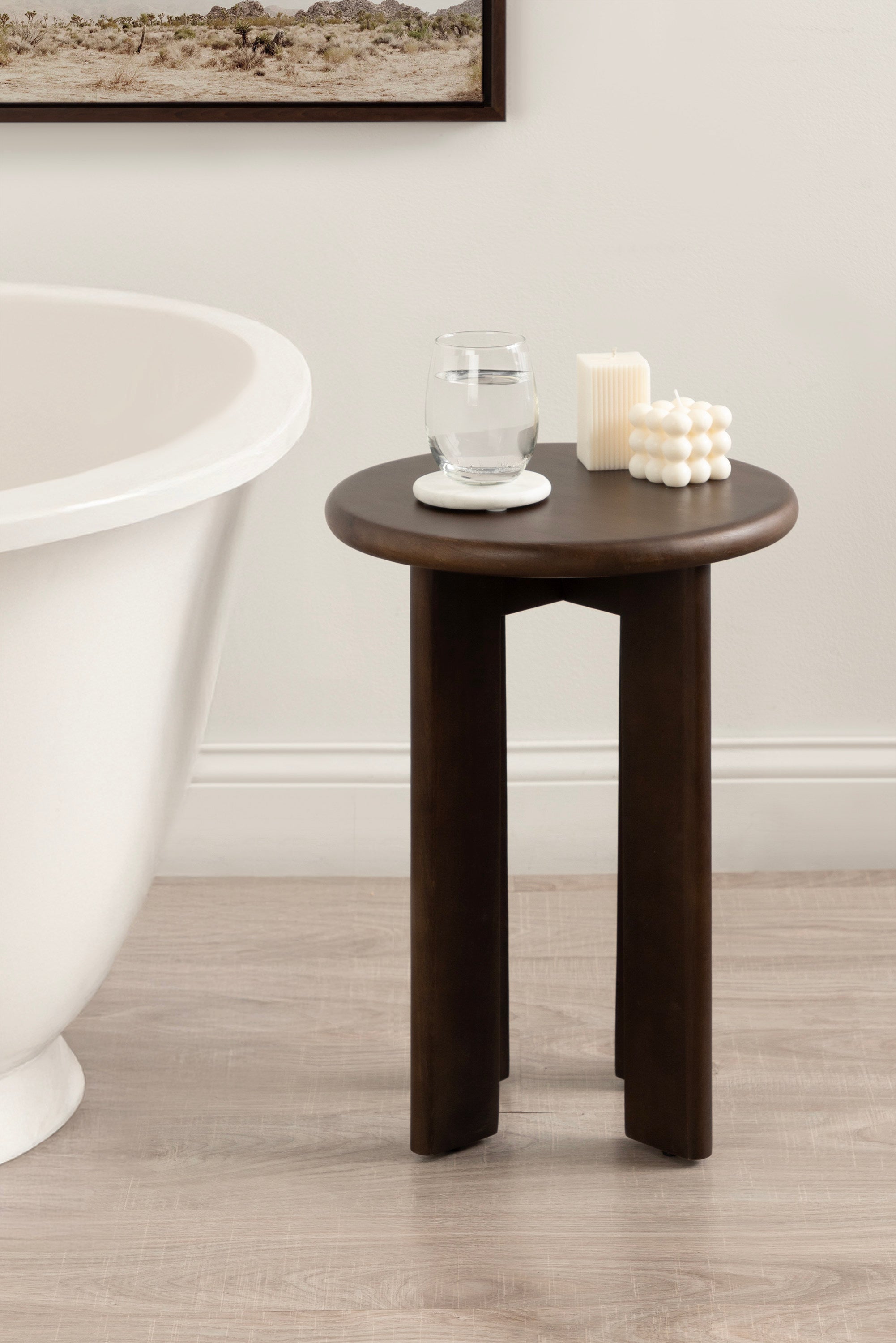 Showcase your modern-inspired style with the Seebeck round side table from Kate and Laurel. The delightful finish of the wood adds a touch of sophistication to any space, while the soft curvature of the design makes it easy to blend seamlessly with any decor style. However, the fun yet stable table legs make it a youthful living room accent table. A careful selection of solid mango wood was used to create this beautiful side table, creating a statement that is as durable as it is beautiful. The round tabletop boasts a soft bullnosed edge and is perfect for creating a curated display area for candles, small lamps, and other accents. Assemble this table in only a matter of minutes with a straightforward, two-step assembly process.