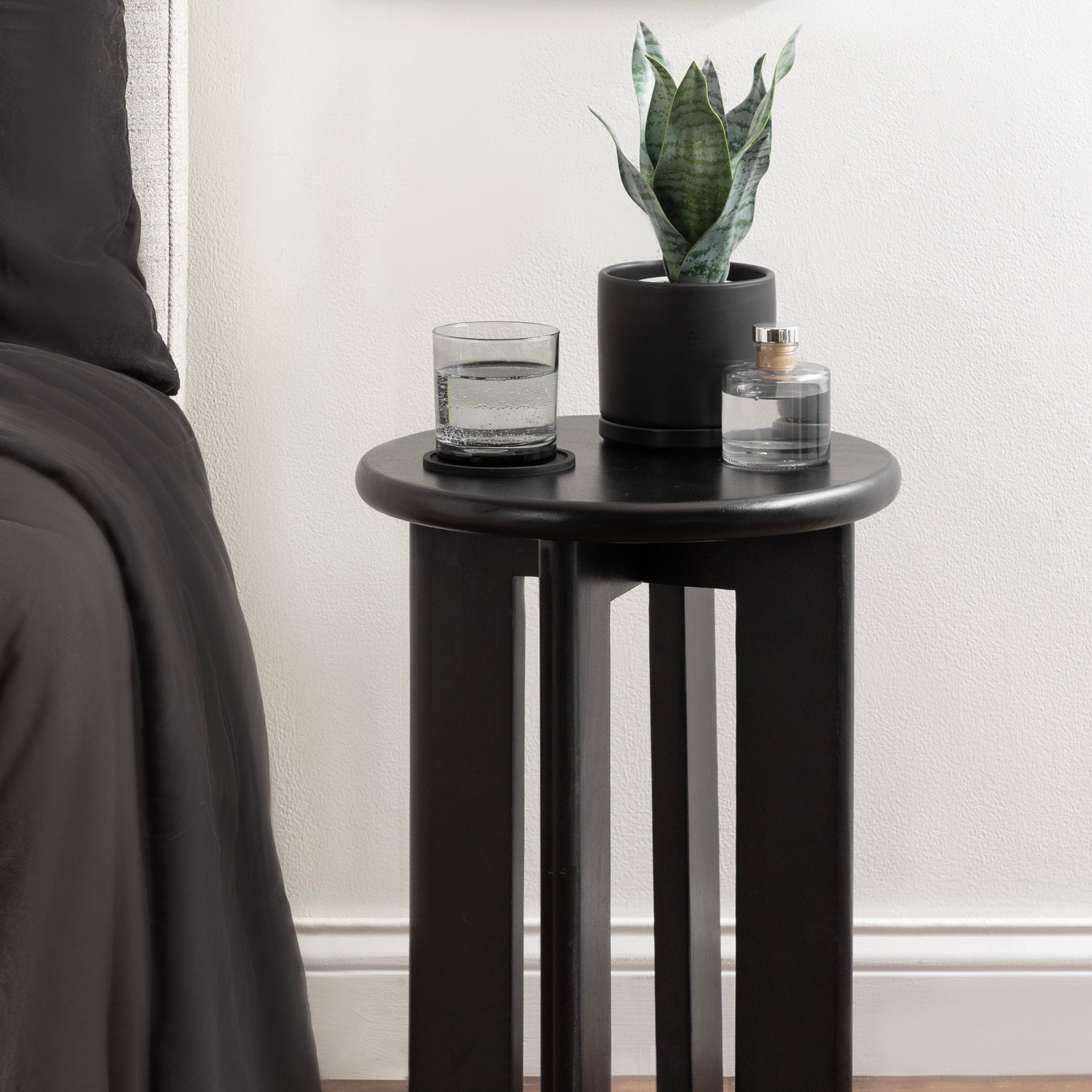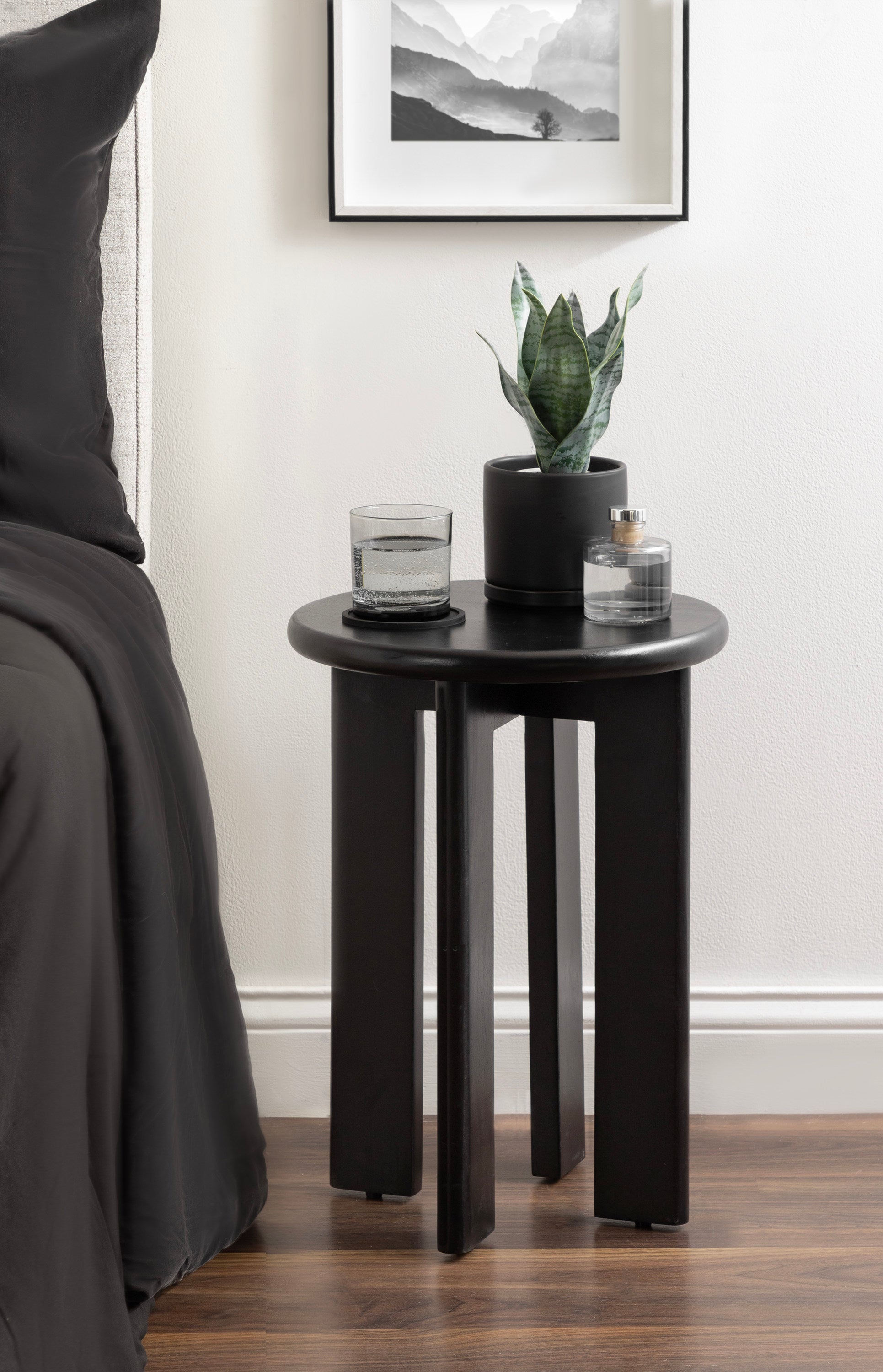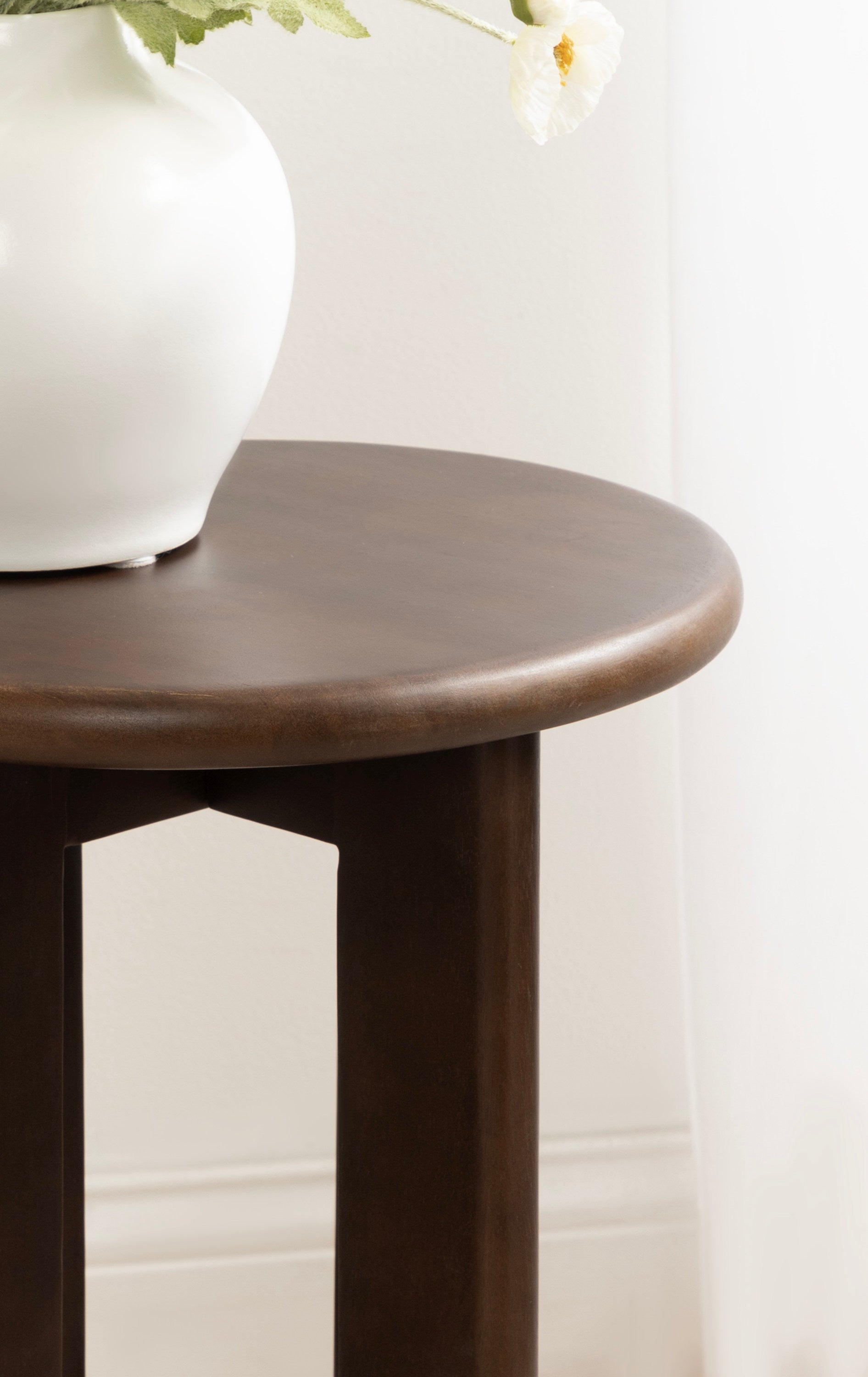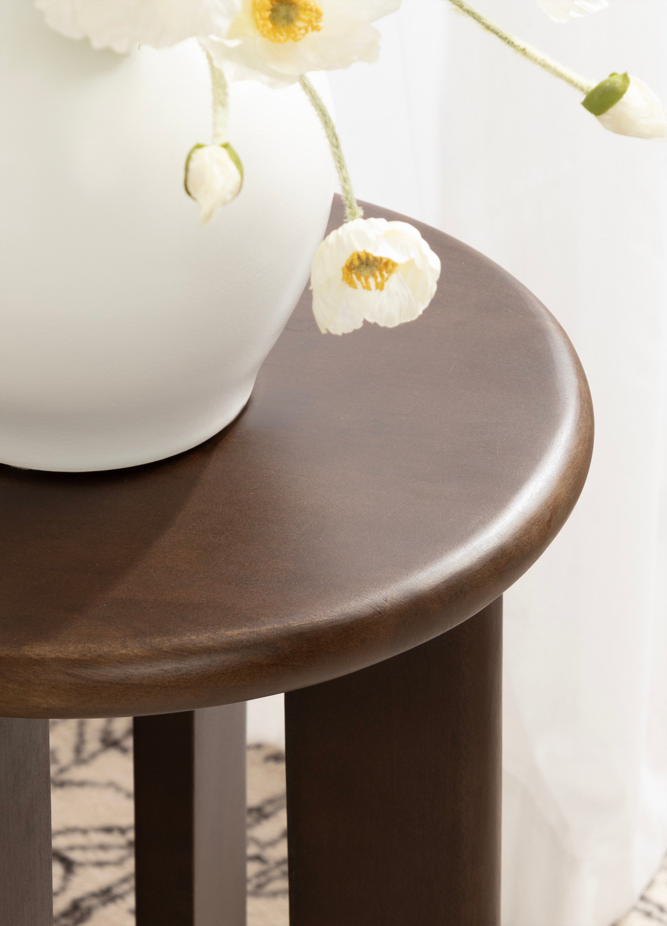 Showcase your modern-inspired style with the Seebeck round side table from Kate and Laurel. The delightful finish of the wood adds a touch of sophistication to any space, while the soft curvature of the design makes it easy to blend seamlessly with any decor style. However, the fun yet stable table legs make it a youthful living room accent table. A careful selection of solid mango wood was used to create this beautiful side table, creating a statement that is as durable as it is beautiful. The round tabletop boasts a soft bullnosed edge and is perfect for creating a curated display area for candles, small lamps, and other accents. Assemble this table in only a matter of minutes with a straightforward, two-step assembly process.