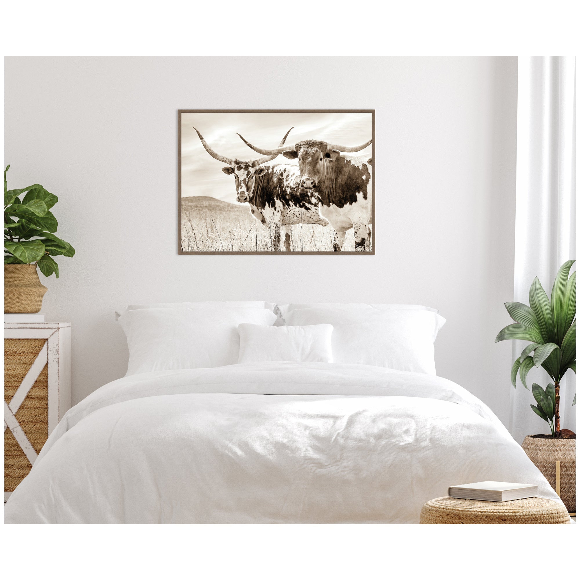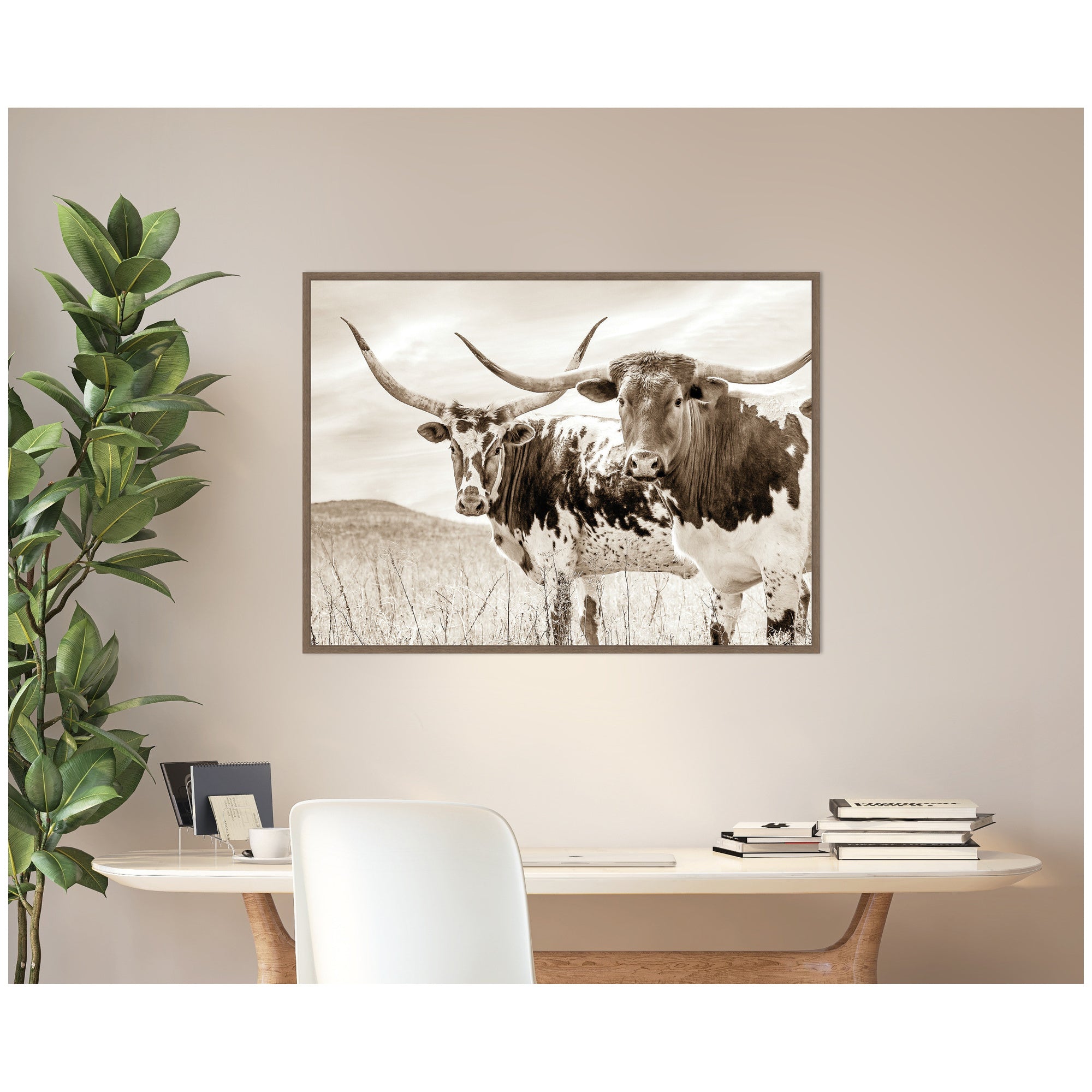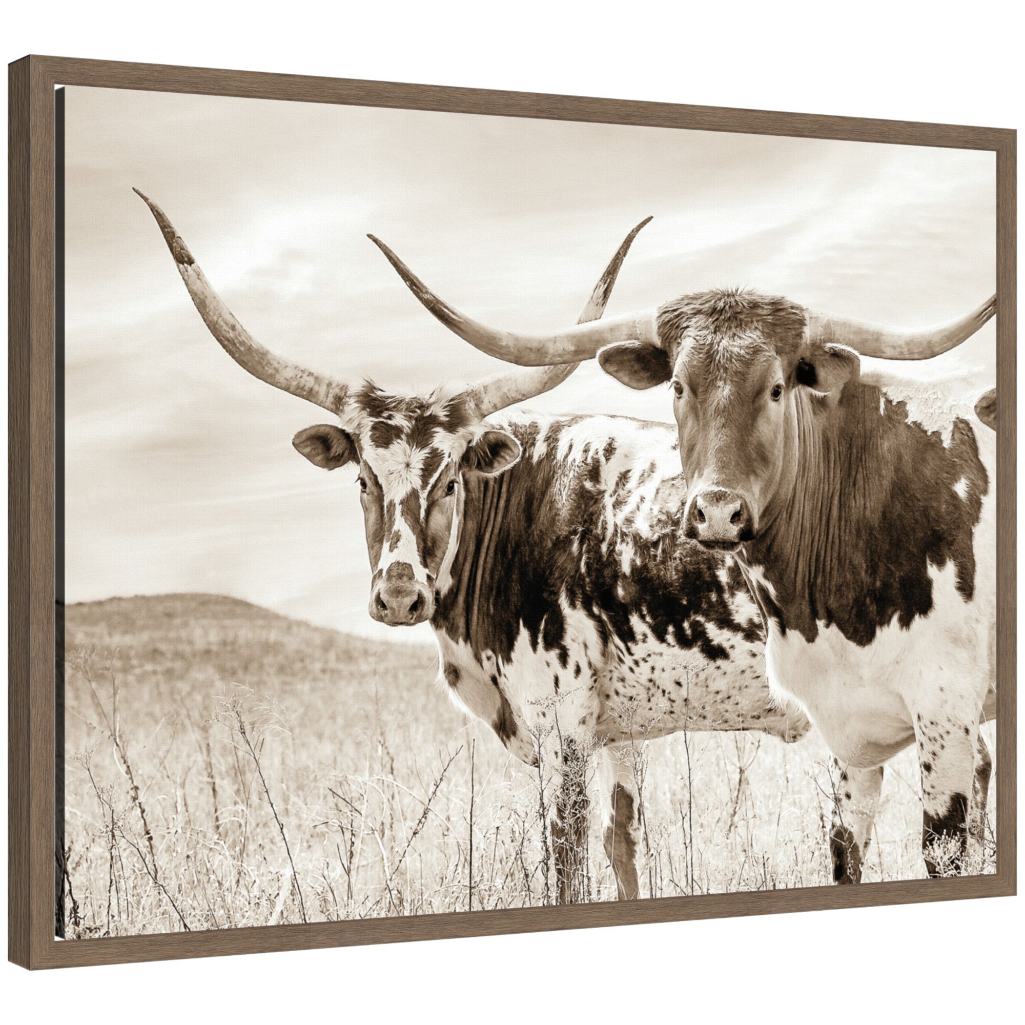 - Sepia Texas Longhorn Cattle in Pasture is giclee printed using fade-resistant inks, ensuring every detail comes to life in rich, lasting color