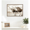 Sepia Texas Longhorn Cattle in Pasture by The Creative Bunch Studio Framed Canvas Wall Art Print