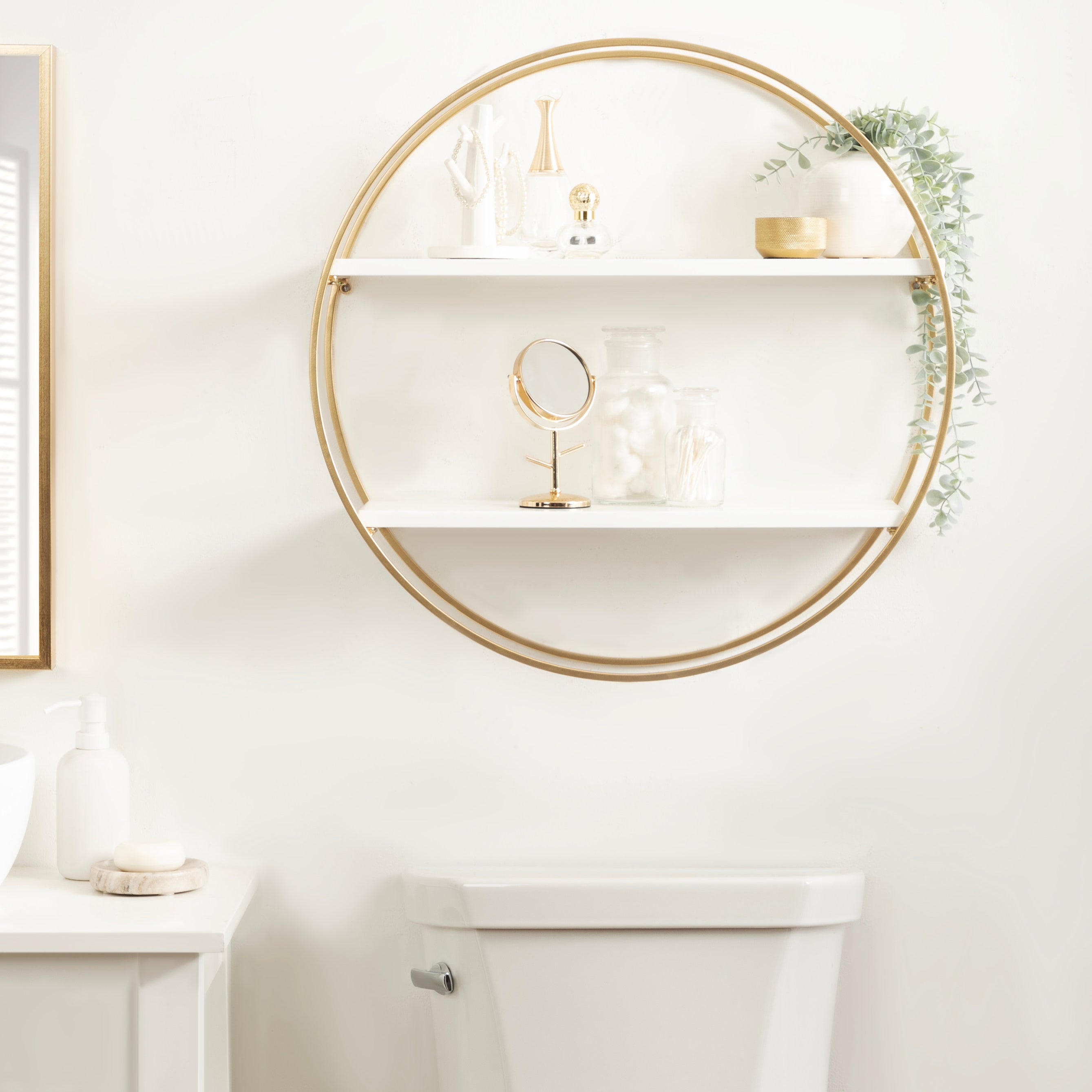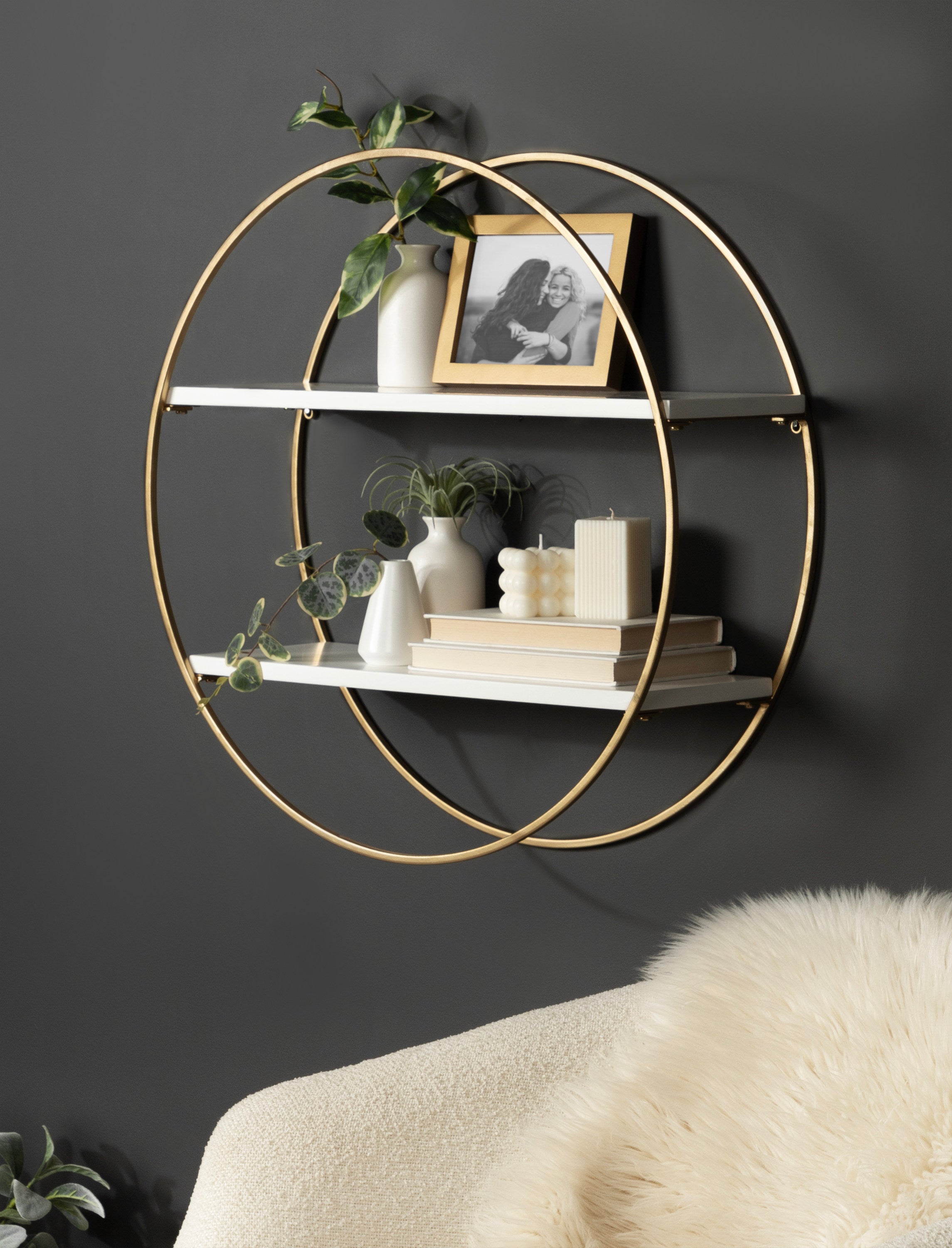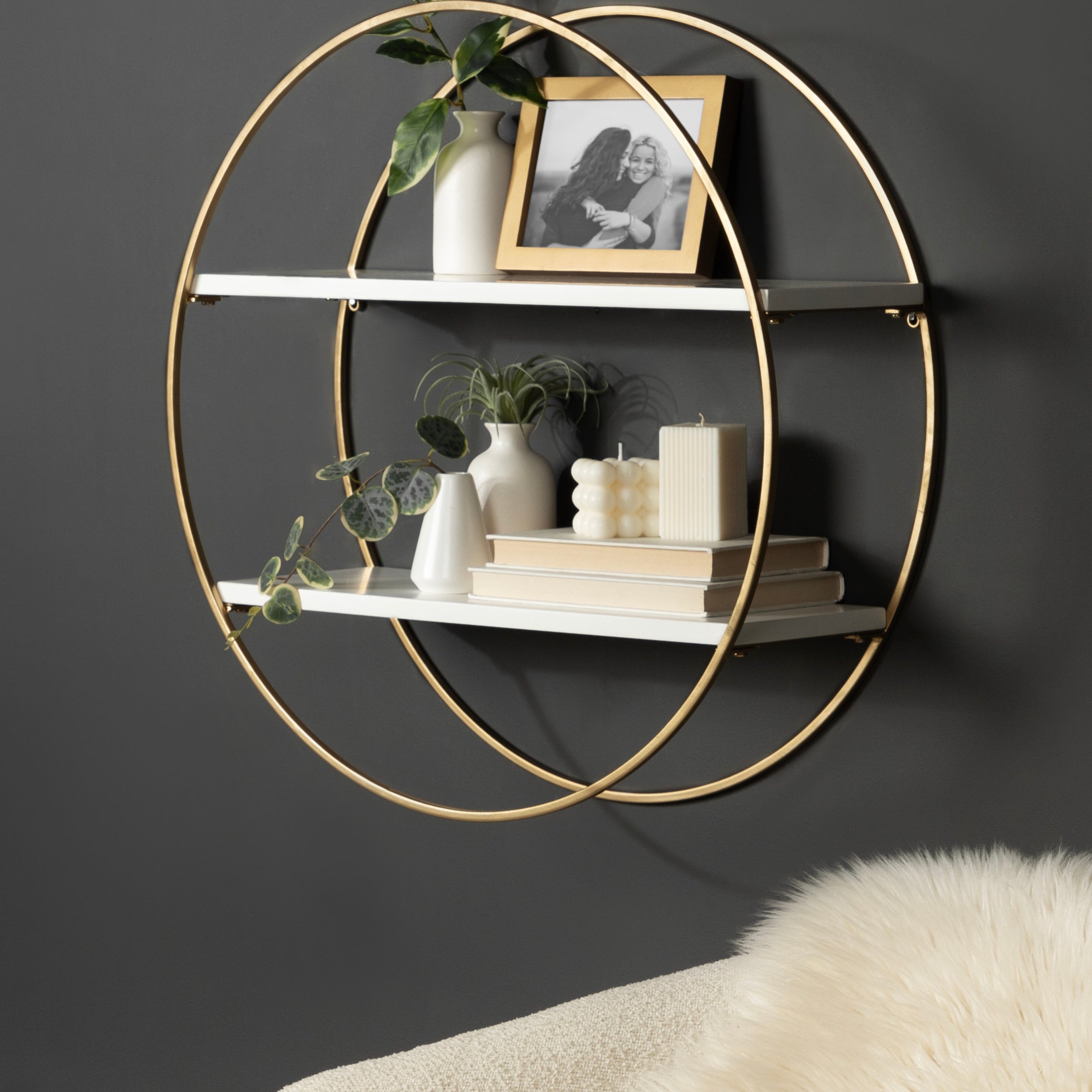 Sequoia Wood and Metal Round Wall Shelf