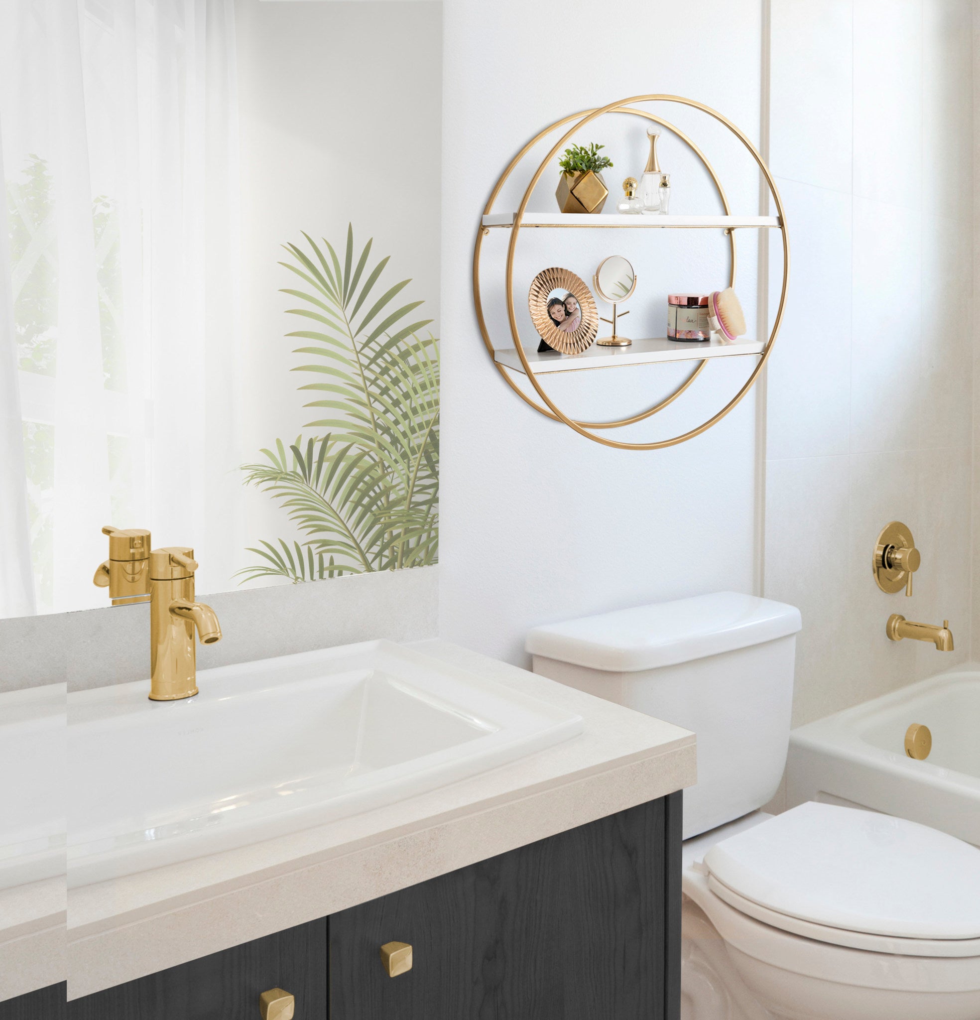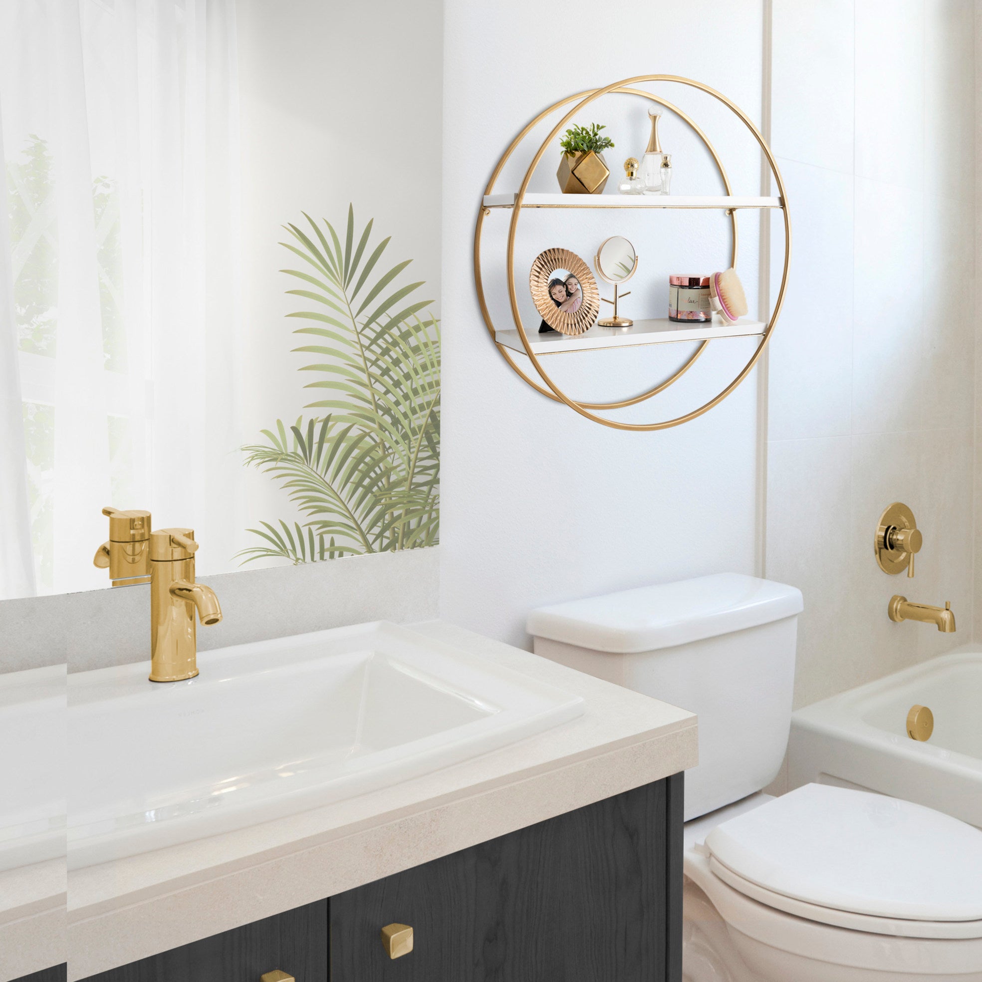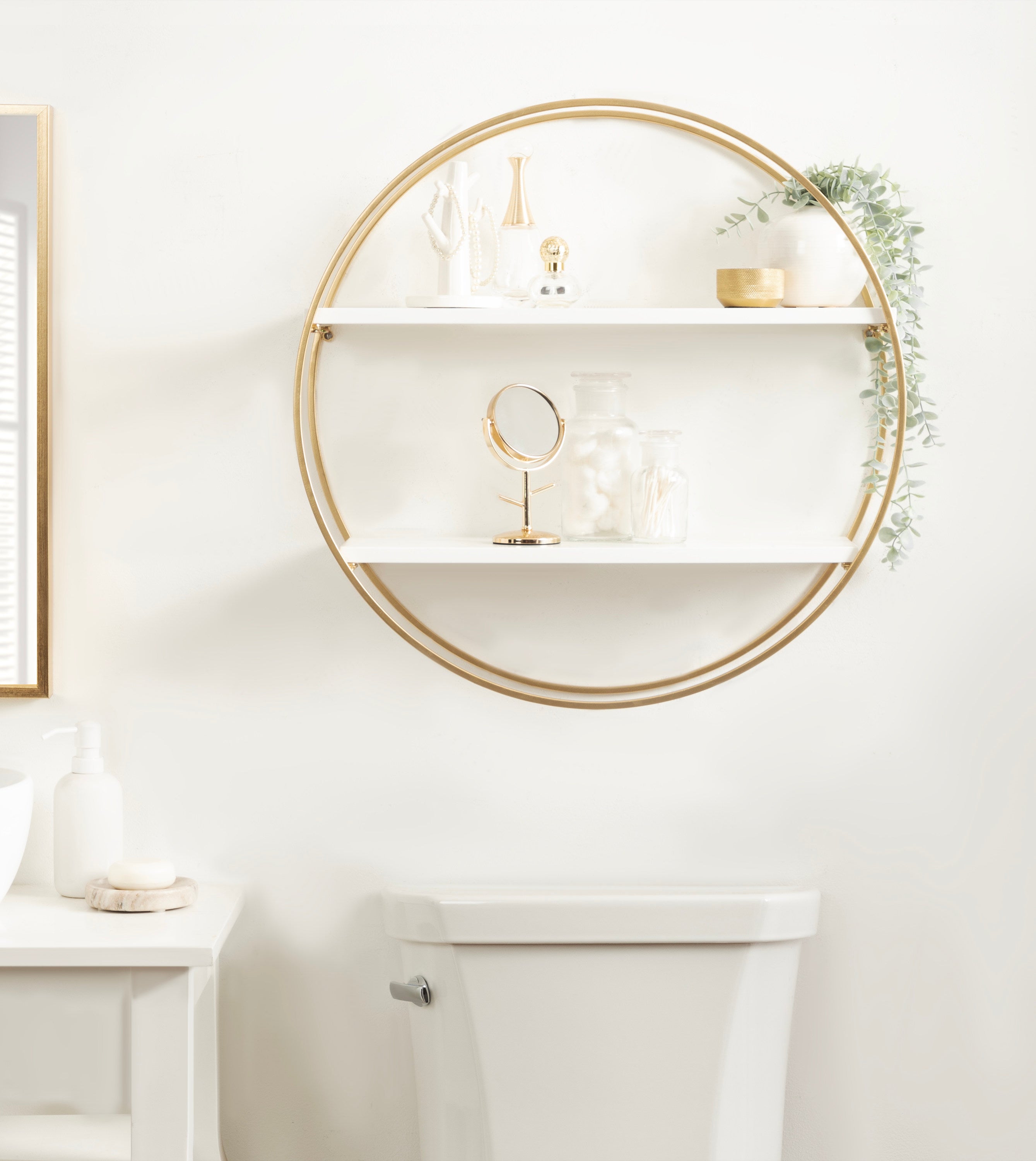 Sequoia Wood and Metal Round Wall Shelf