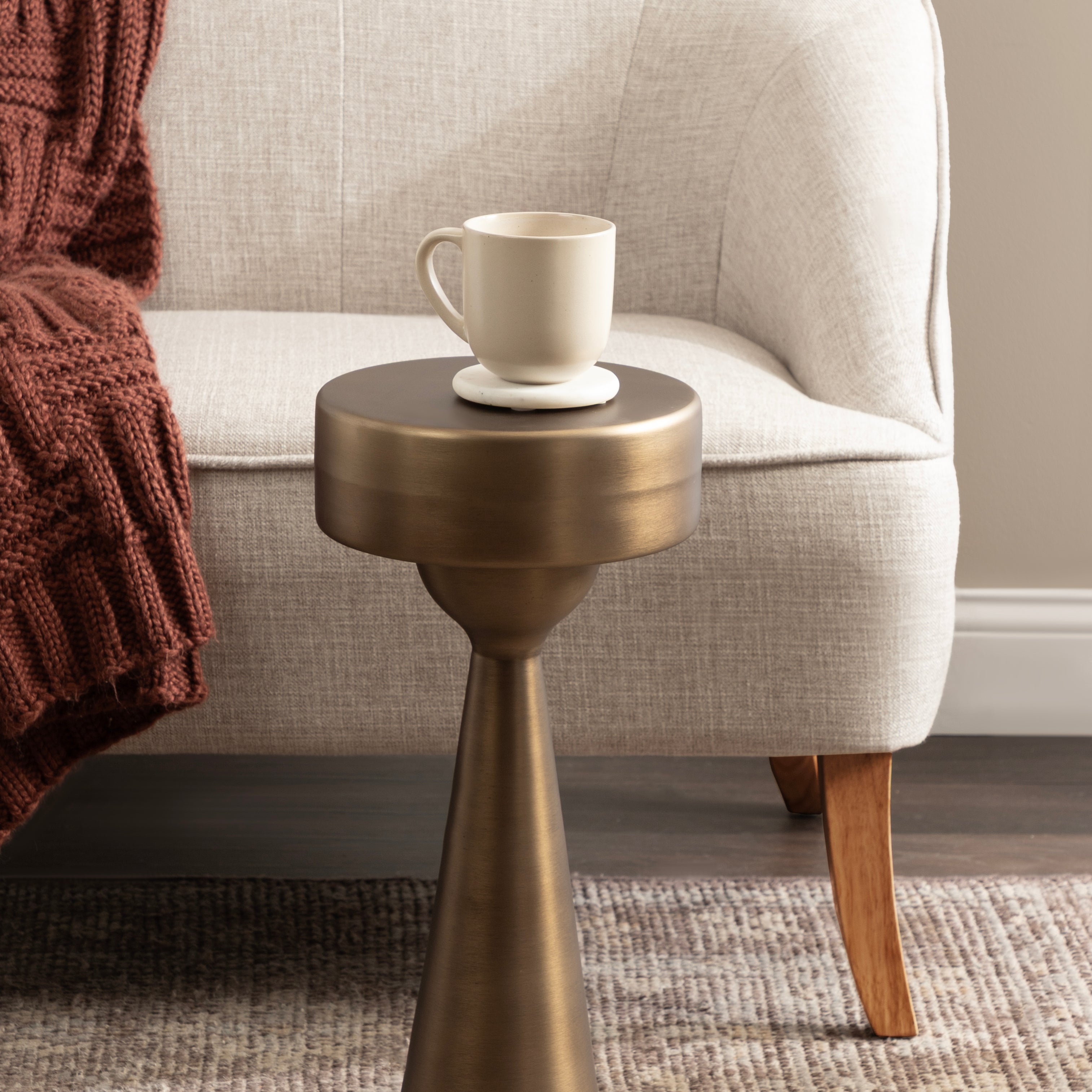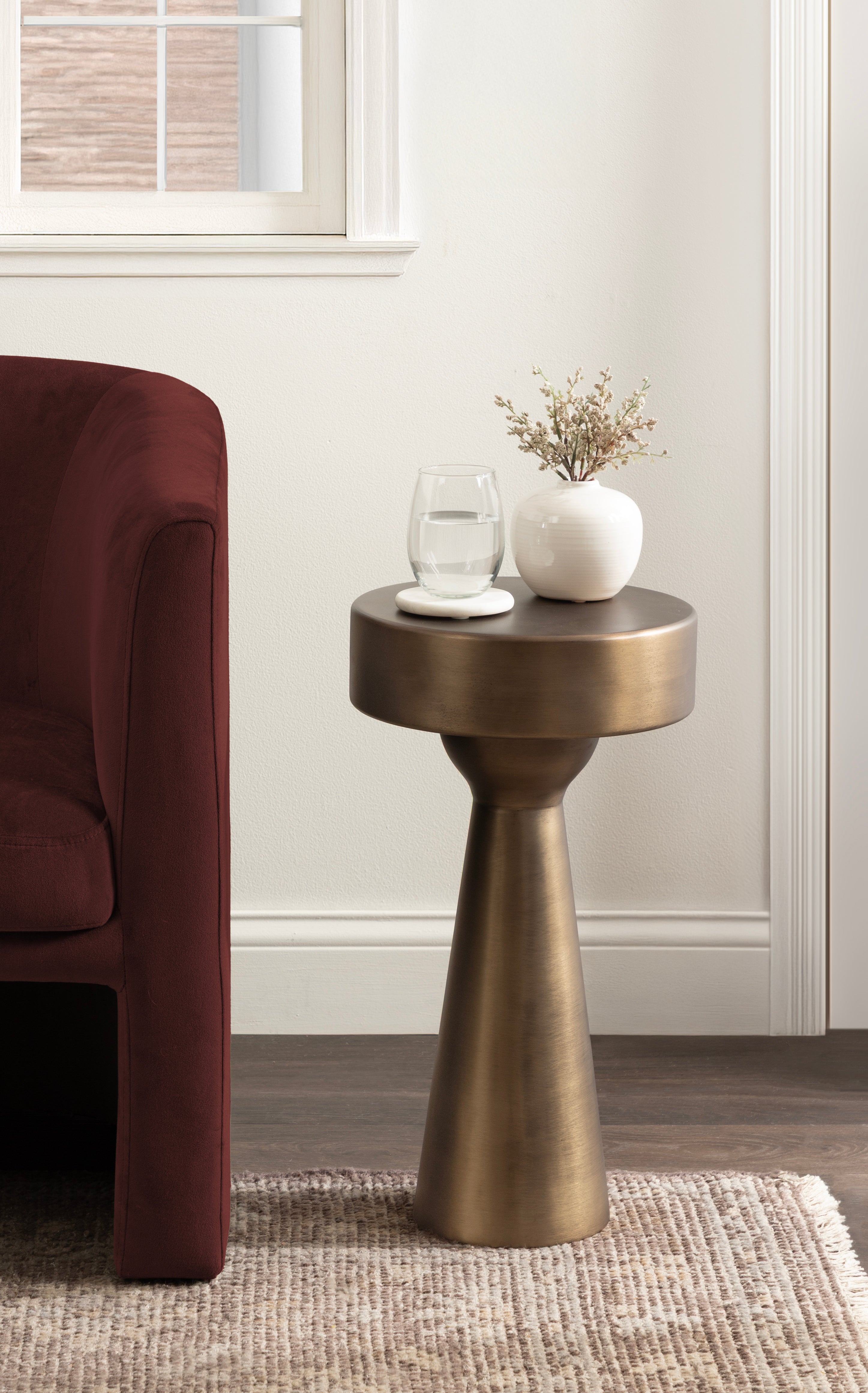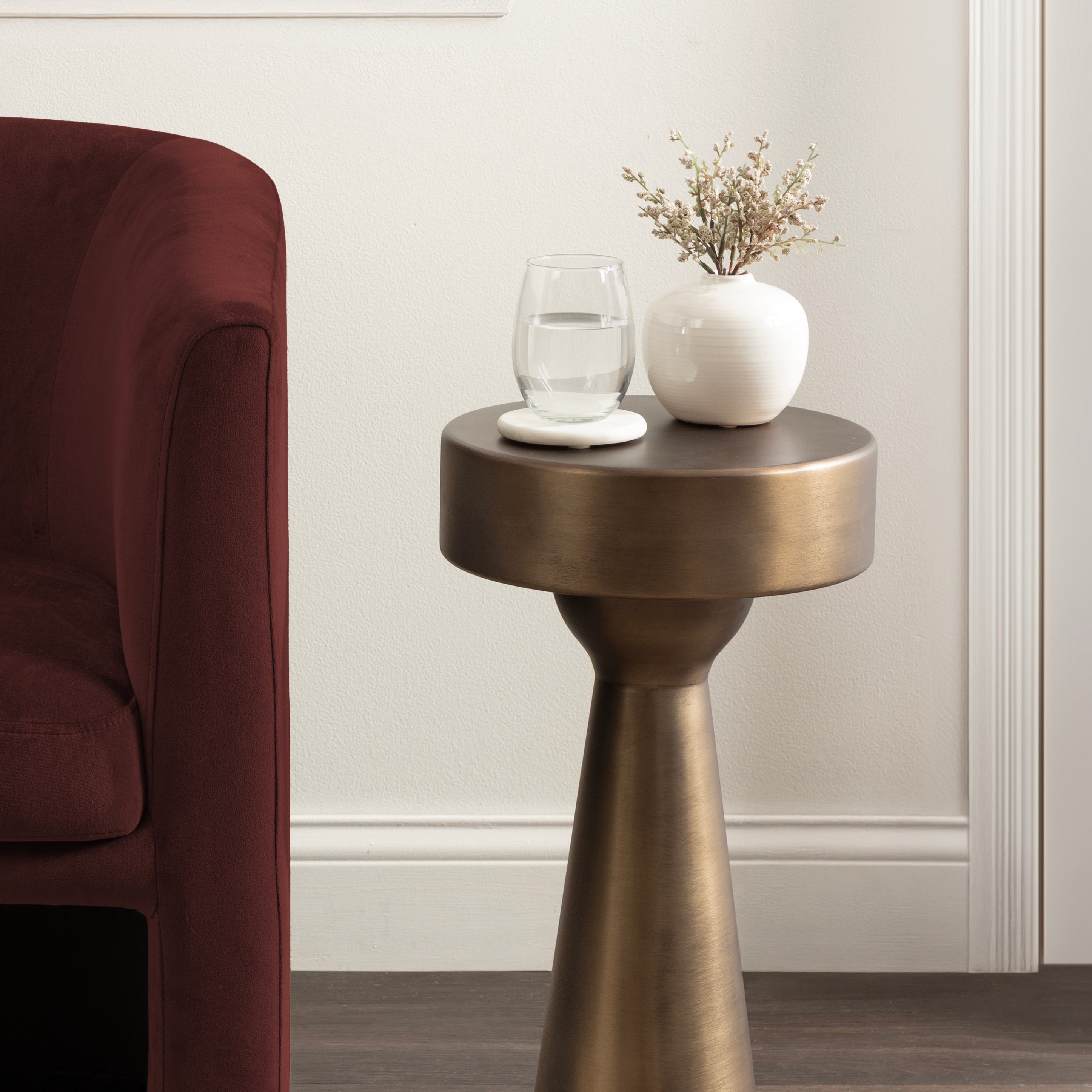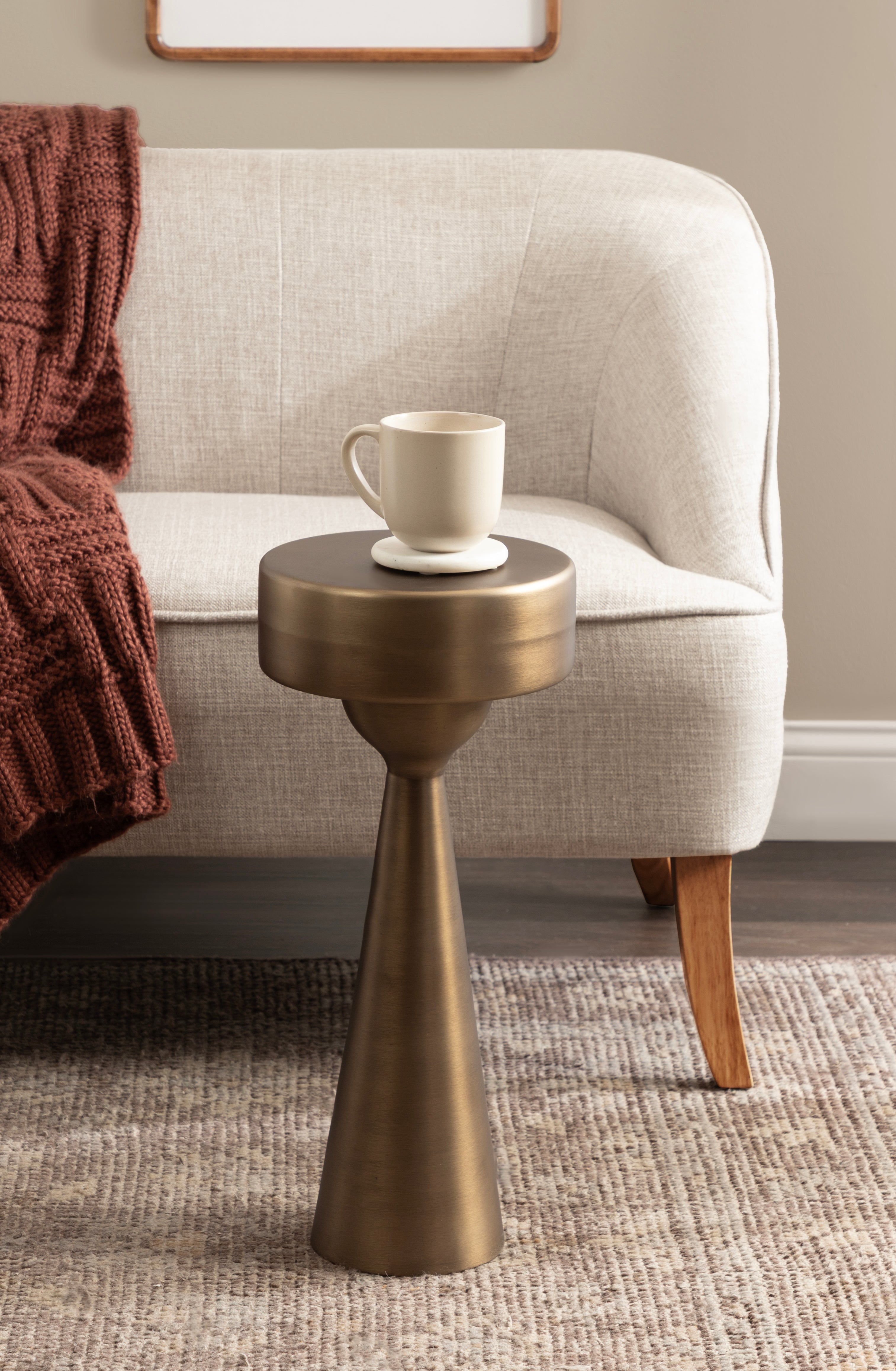 Add a much-needed accent to your living space with the smooth, soft curvature of this Solbrett side table. Designed with versatility in mind, this table allows for direct functionality with a coaster and a drink, or use it to display your favorite houseplant. Based on unique sculptured table designs, this Solbrett table provides that aesthetic with smoother, more polished curves. We designed the Solbrett to include a weighted base to increase stability and keep your carpet free from coffee spills. Also, the end table includes padding on the bottom of the base to protect against scuff marks and secure the table on hard surfaces.