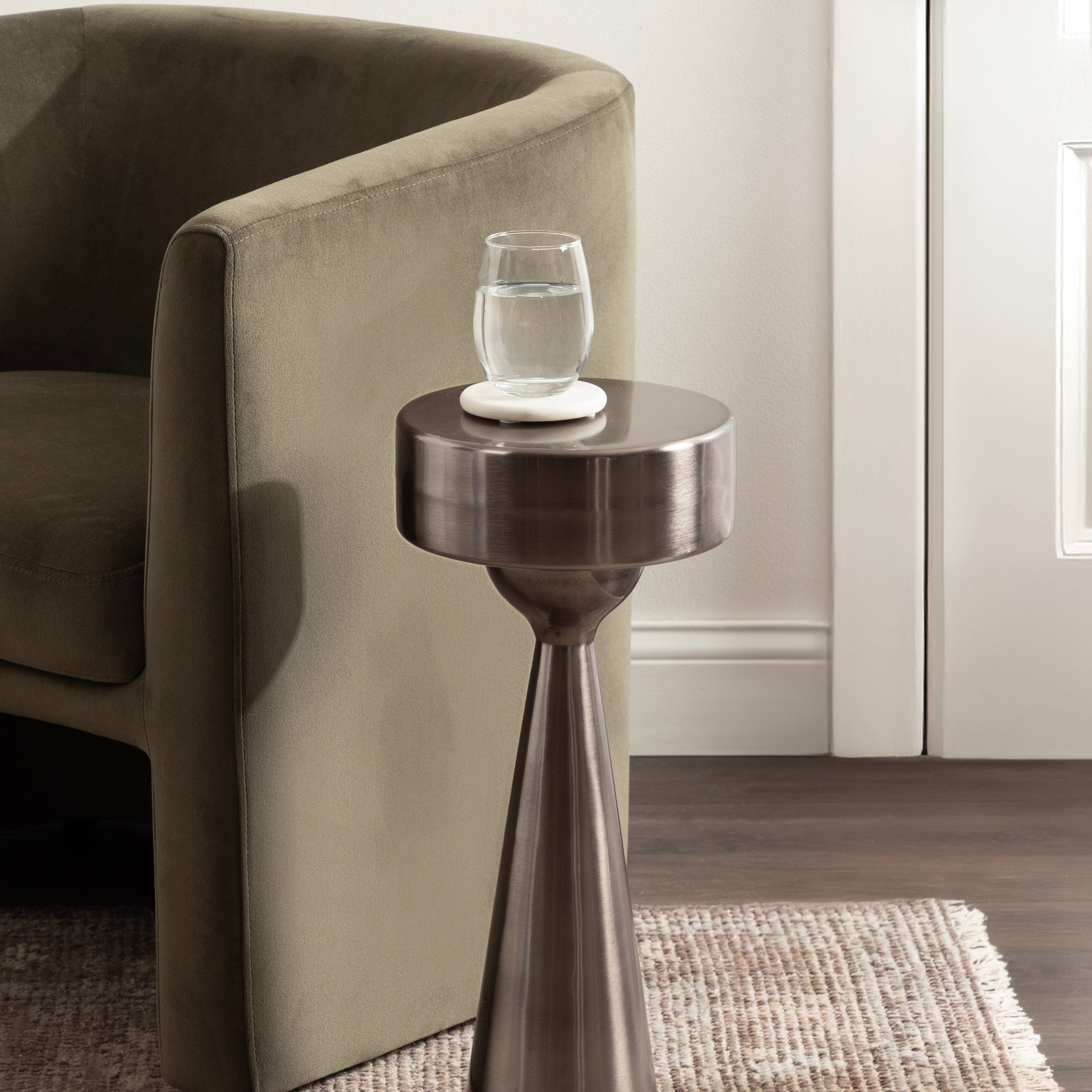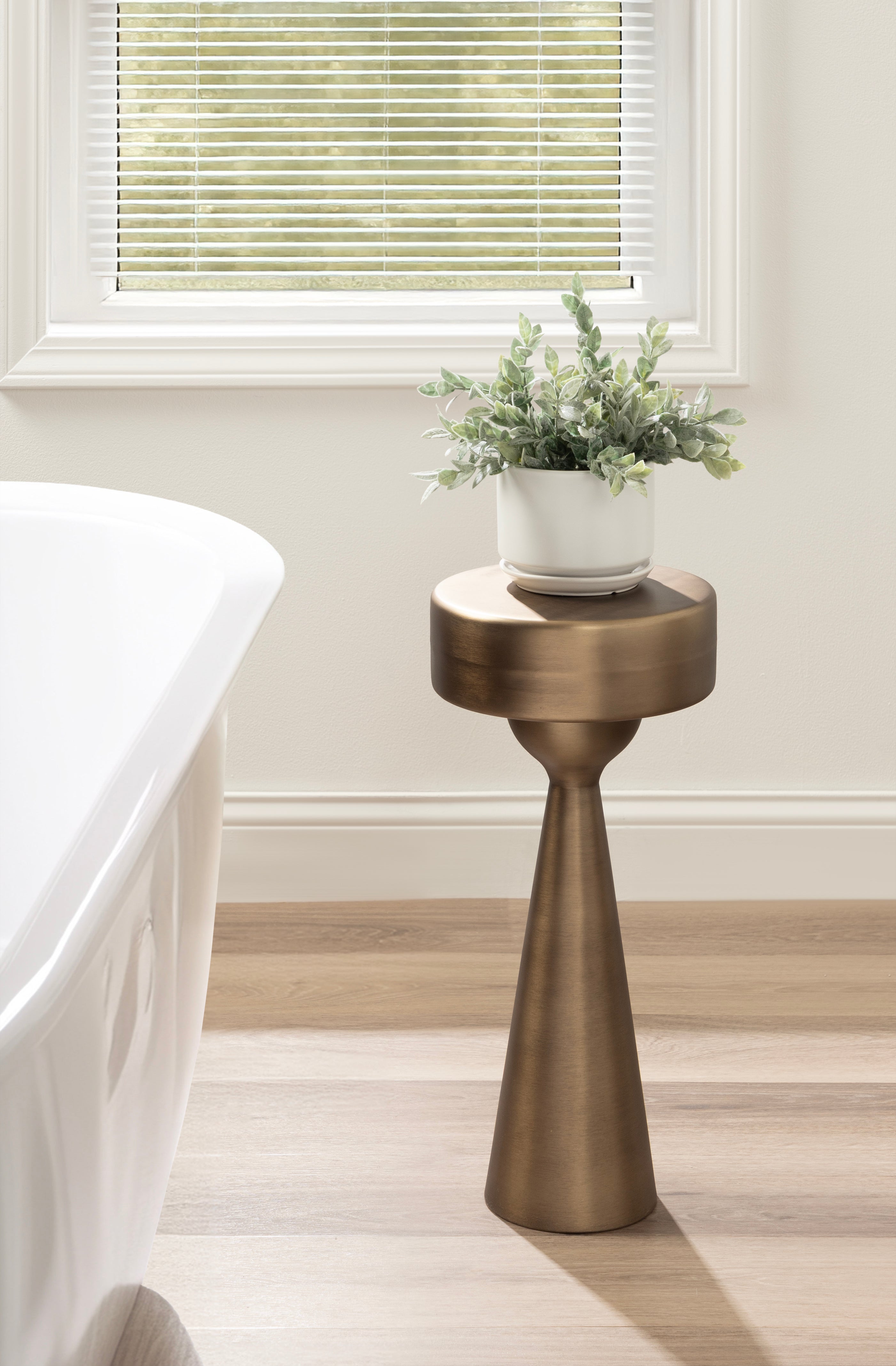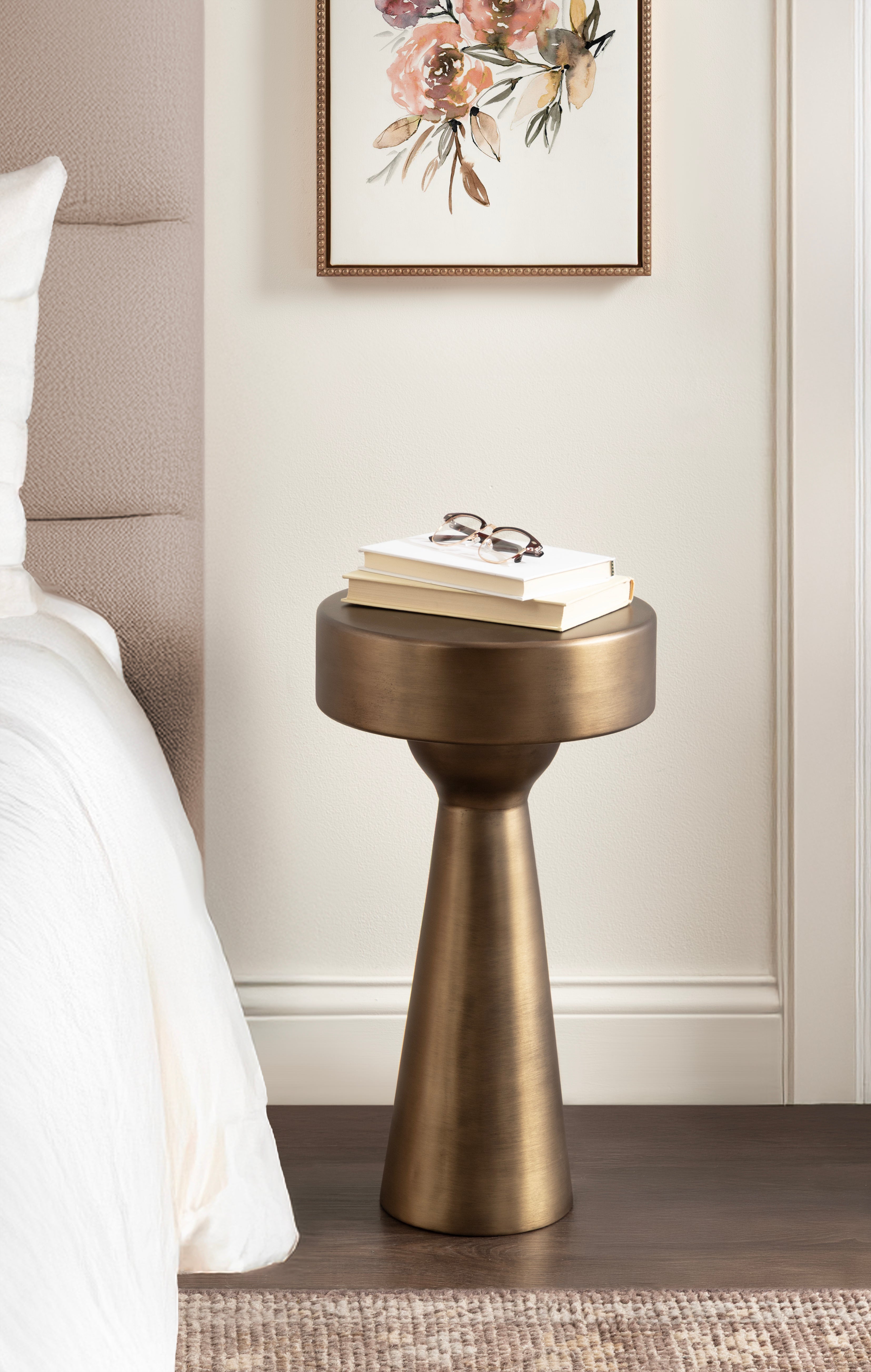 Add a much-needed accent to your living space with the smooth, soft curvature of this Solbrett side table. Designed with versatility in mind, this table allows for direct functionality with a coaster and a drink, or use it to display your favorite houseplant. Based on unique sculptured table designs, this Solbrett table provides that aesthetic with smoother, more polished curves. We designed the Solbrett to include a weighted base to increase stability and keep your carpet free from coffee spills. Also, the end table includes padding on the bottom of the base to protect against scuff marks and secure the table on hard surfaces.