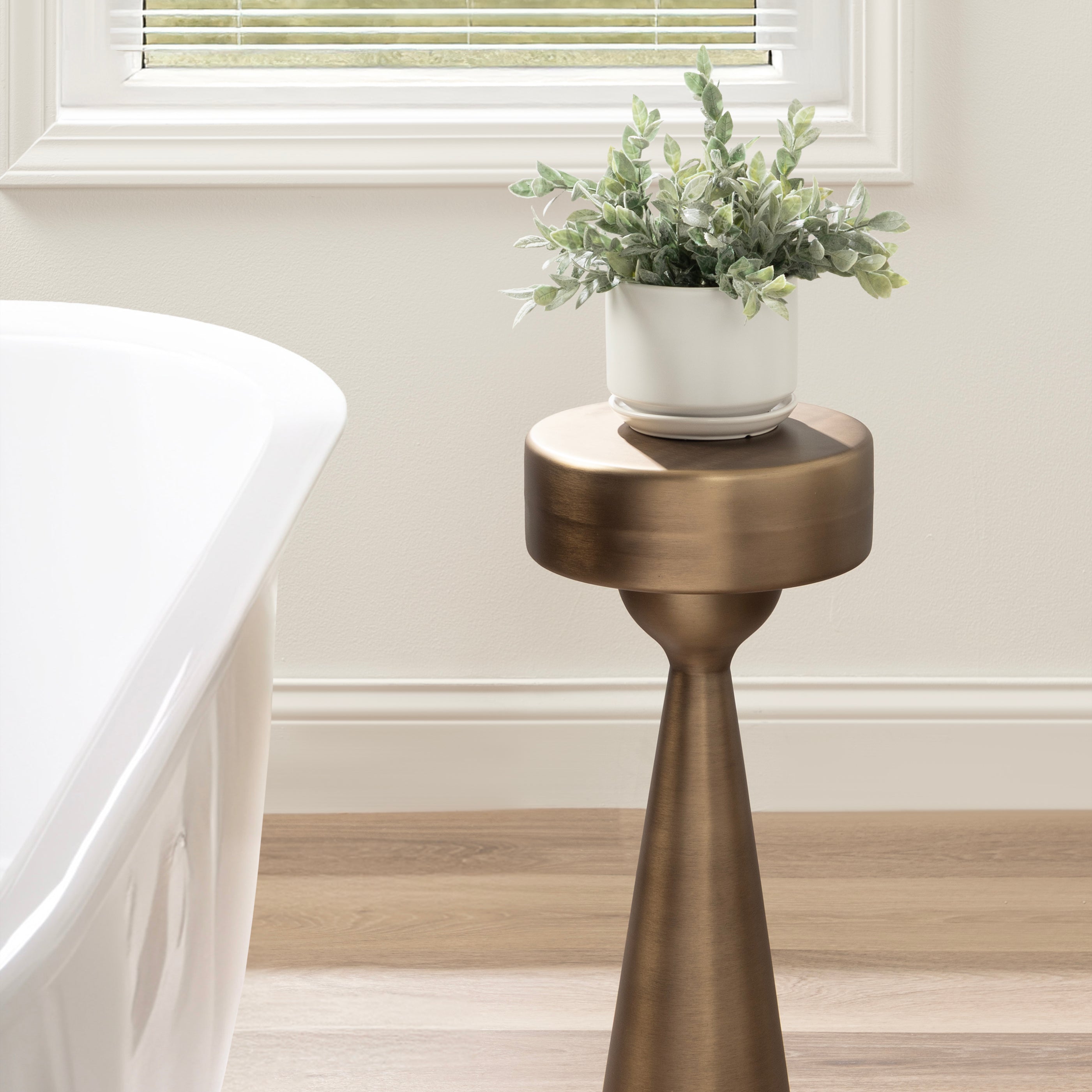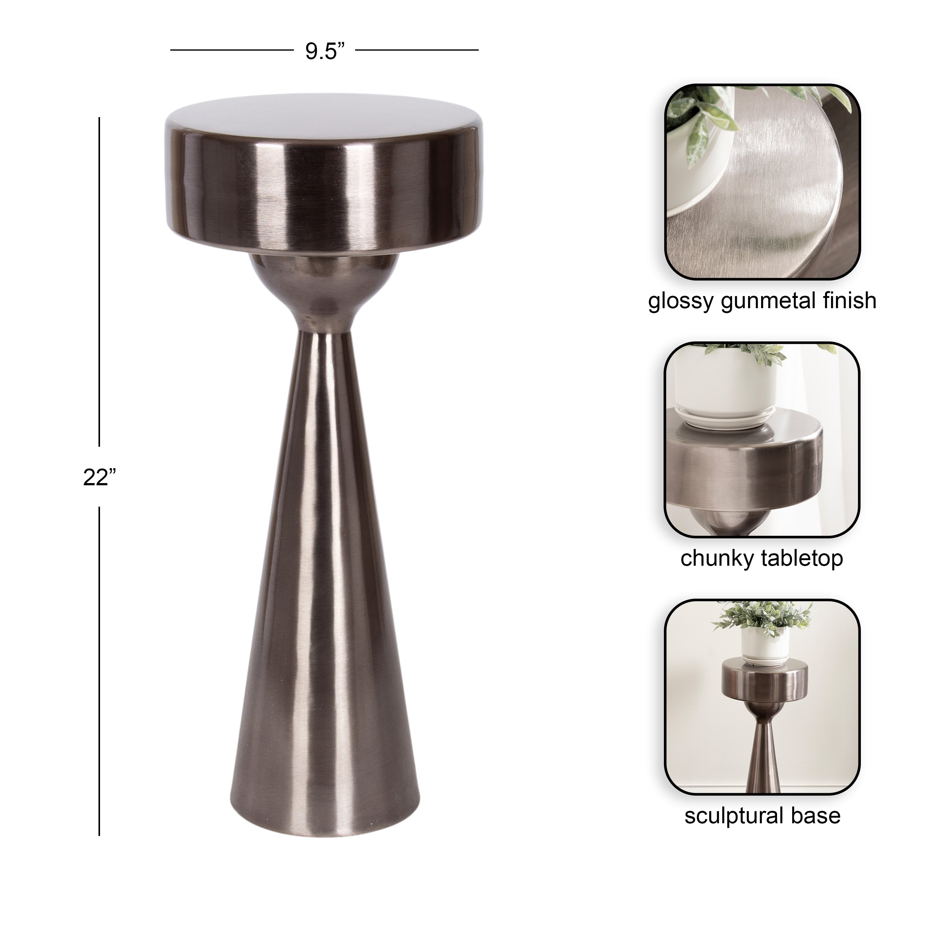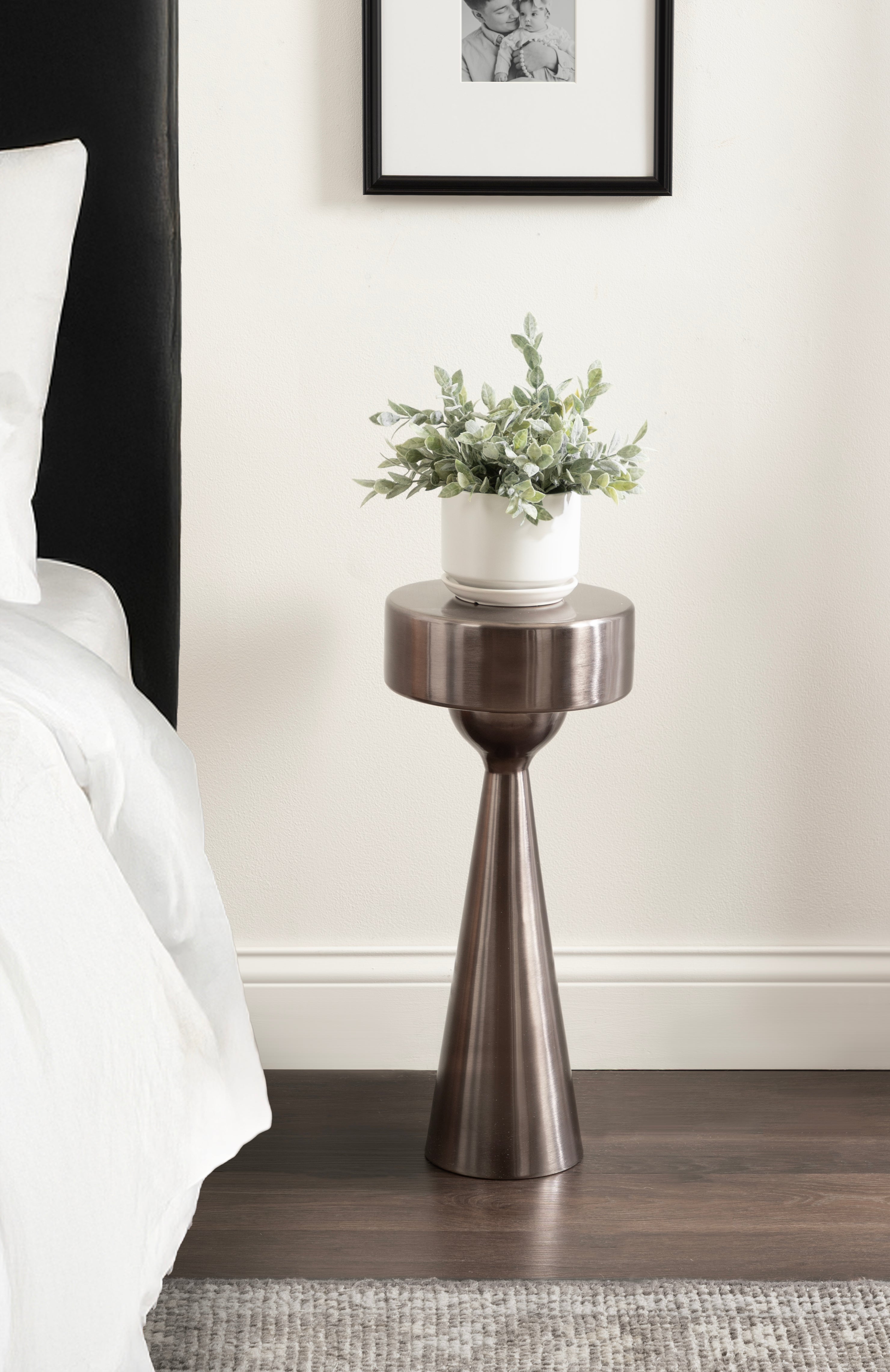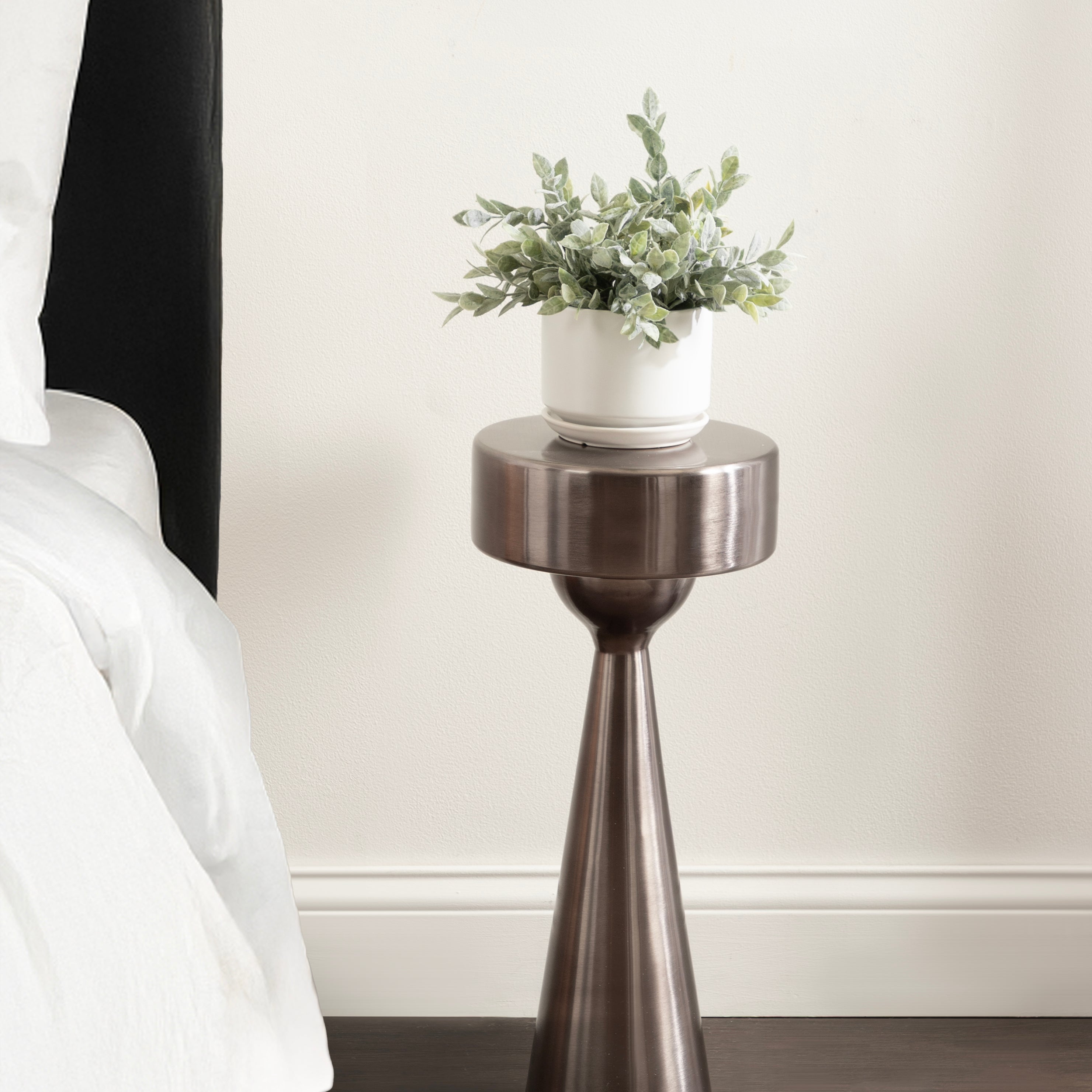 Add a much-needed accent to your living space with the smooth, soft curvature of this Solbrett side table. Designed with versatility in mind, this table allows for direct functionality with a coaster and a drink, or use it to display your favorite houseplant. Based on unique sculptured table designs, this Solbrett table provides that aesthetic with smoother, more polished curves. We designed the Solbrett to include a weighted base to increase stability and keep your carpet free from coffee spills. Also, the end table includes padding on the bottom of the base to protect against scuff marks and secure the table on hard surfaces.