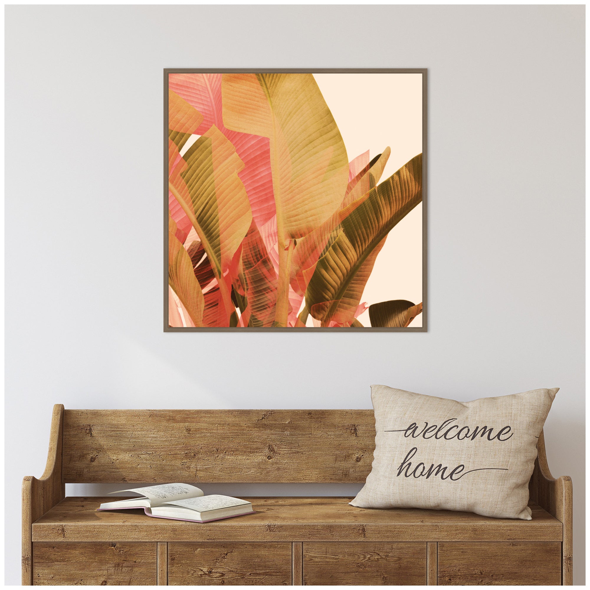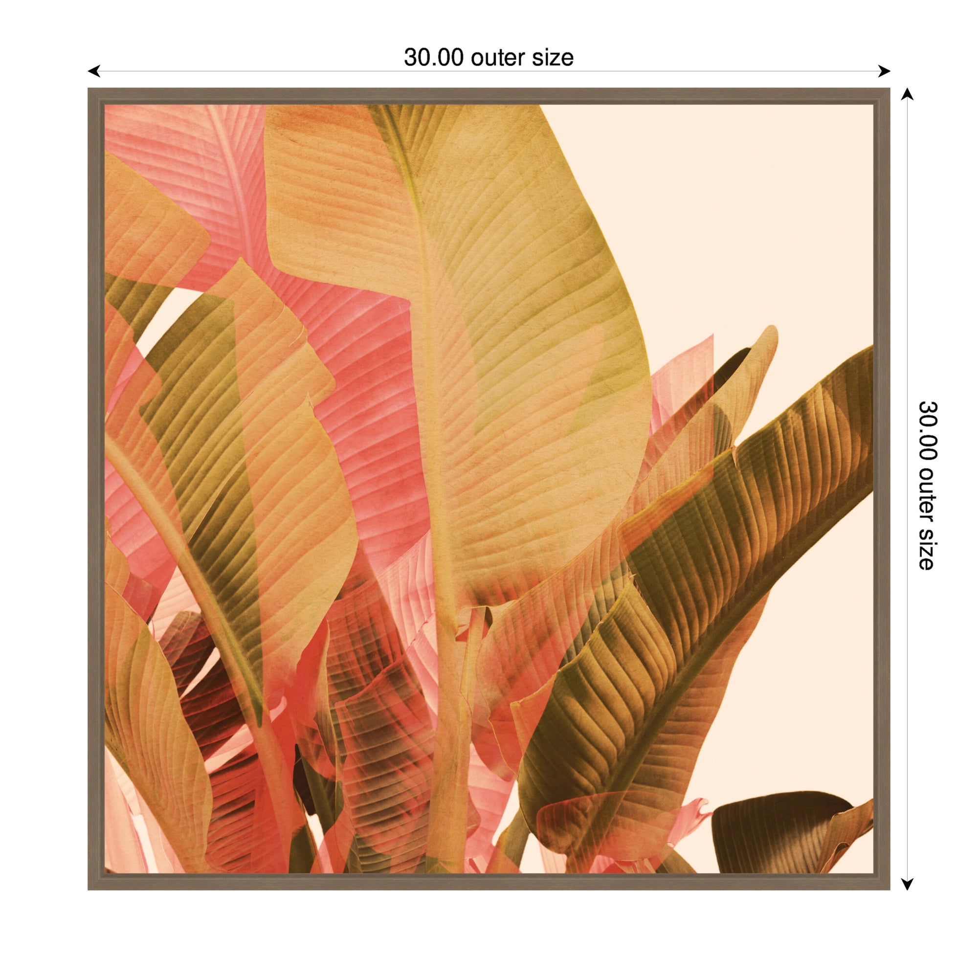 - Gallery Quality Art: Measuring 30 x 30 inches, this is beautifully presented in Sylvie Dark Gold frame - a modern, float frame with dark gold coloring, fine lines and dramatic depth.. Expressive Wall Art Story:The artwork features an array of overlapping tropical leaves in shades of pink and green. The composition creates an abstract and vibrant display with a modern flair. The layered leaves provide a dynamic sense of depth and movement.