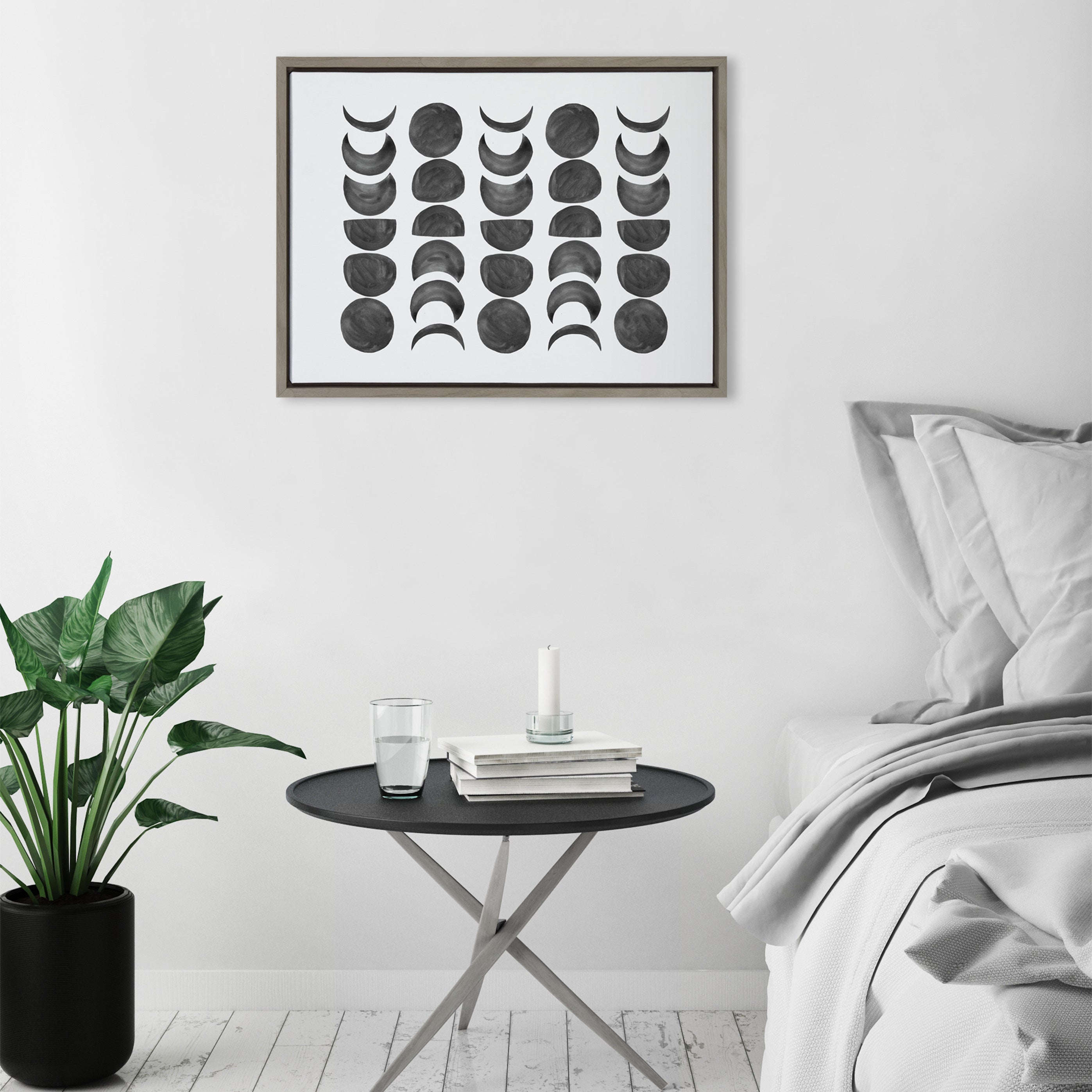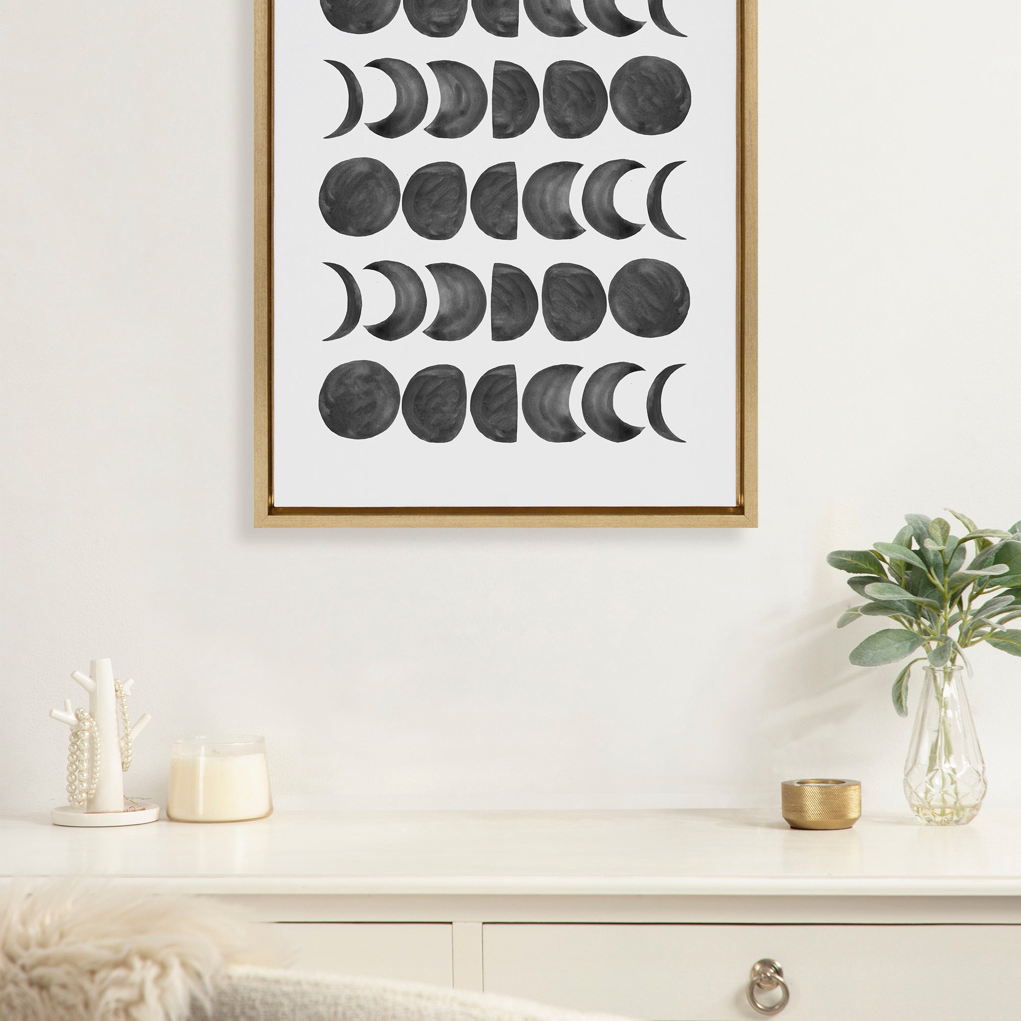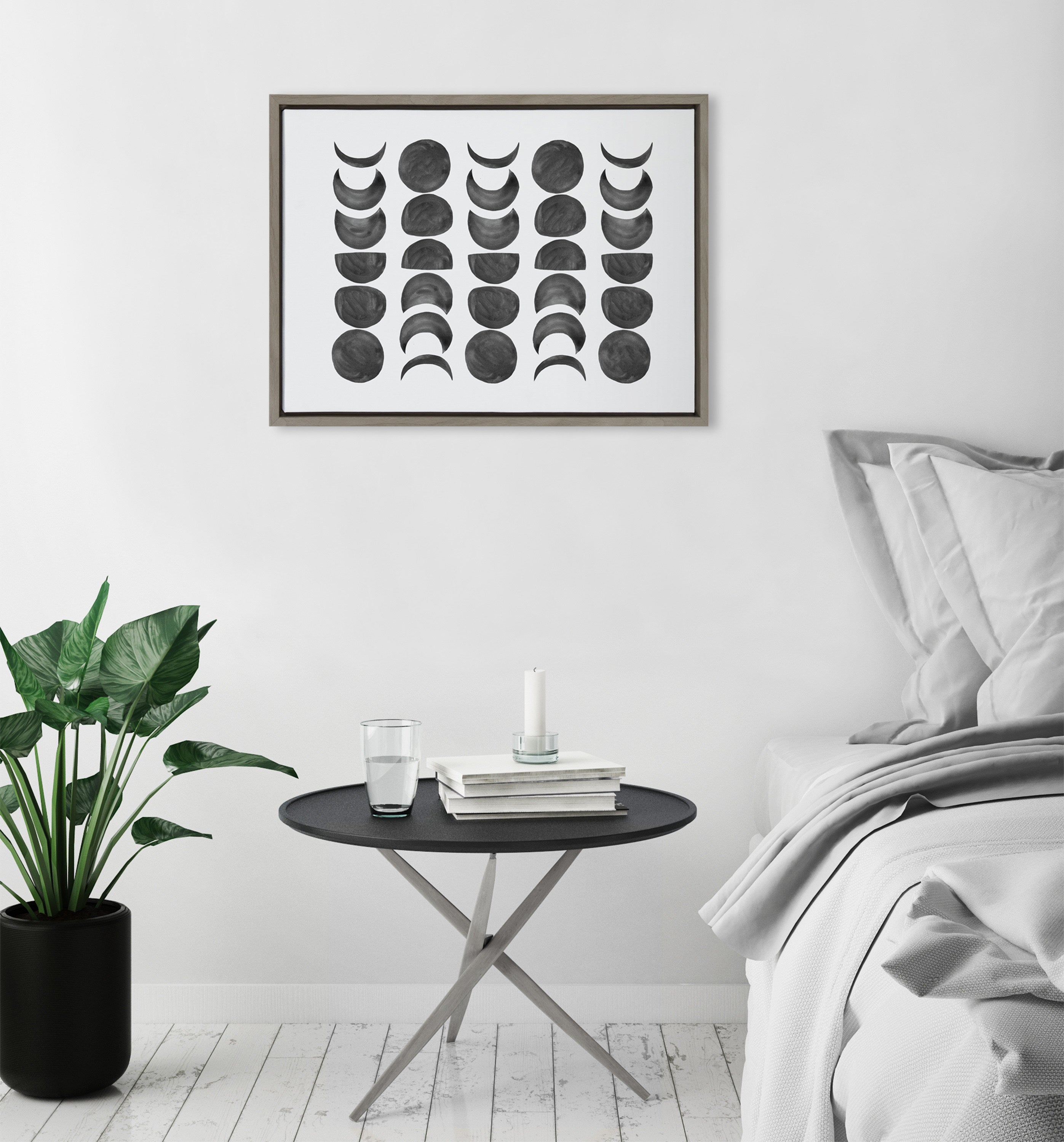 Sylvie 901 Moon Phases Black on White Framed Canvas by Teju Reval of SnazzyHues