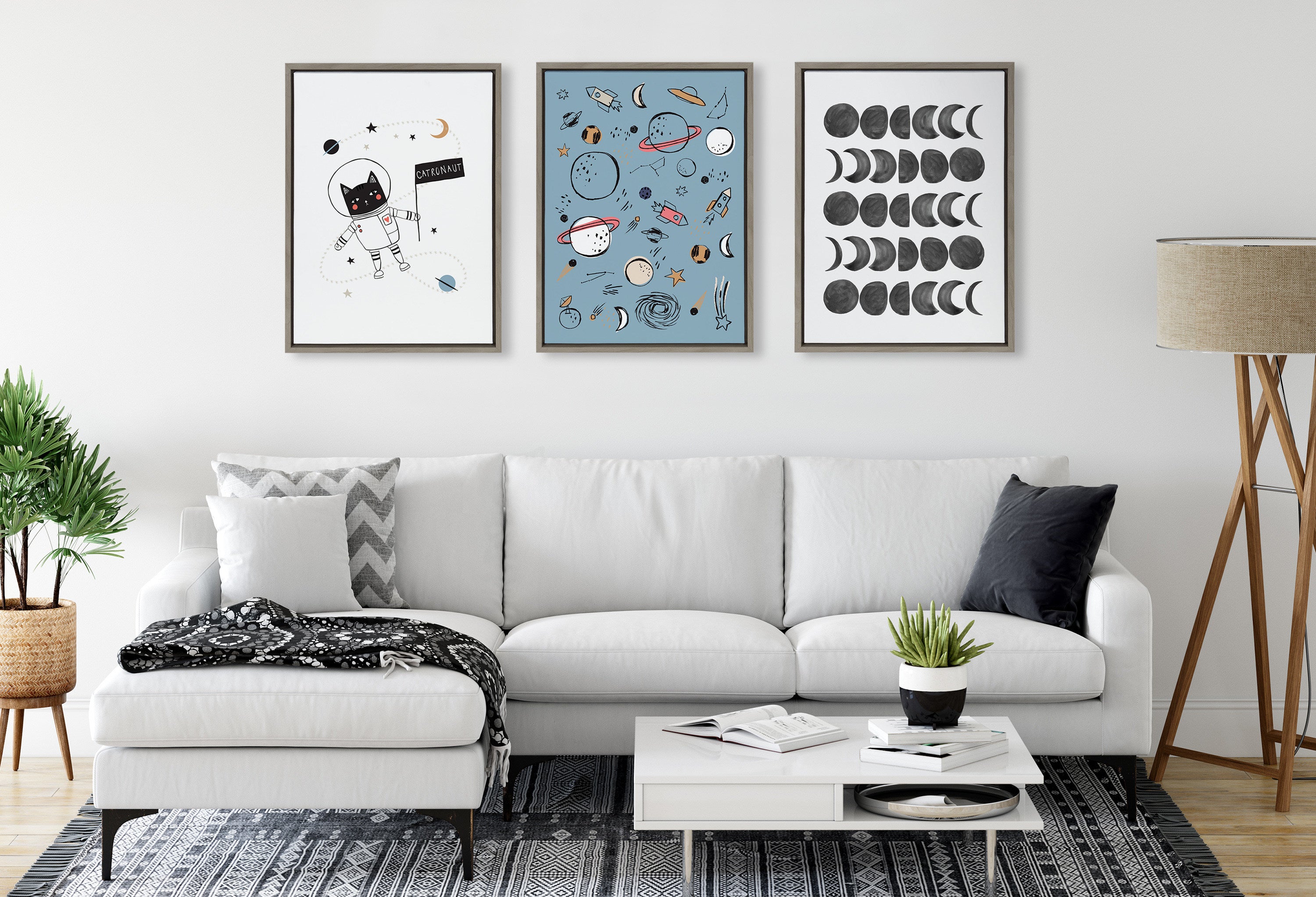 Embrace the healing nature of the moon with this set of decorative modern art prints for your wall. Printed and framed in the USA in Waunakee, Wisconsin, this framed floating canvas art will be a pleasure to look at every day in your living room, bedroom, office, or any room in the home. This art print also makes an excellent gift for birthdays, holidays, or house-warming parties. Printed on gallery-wrapped canvas and framed with a lightweight polystyrene frame, this wall art is easy to display on the wall.