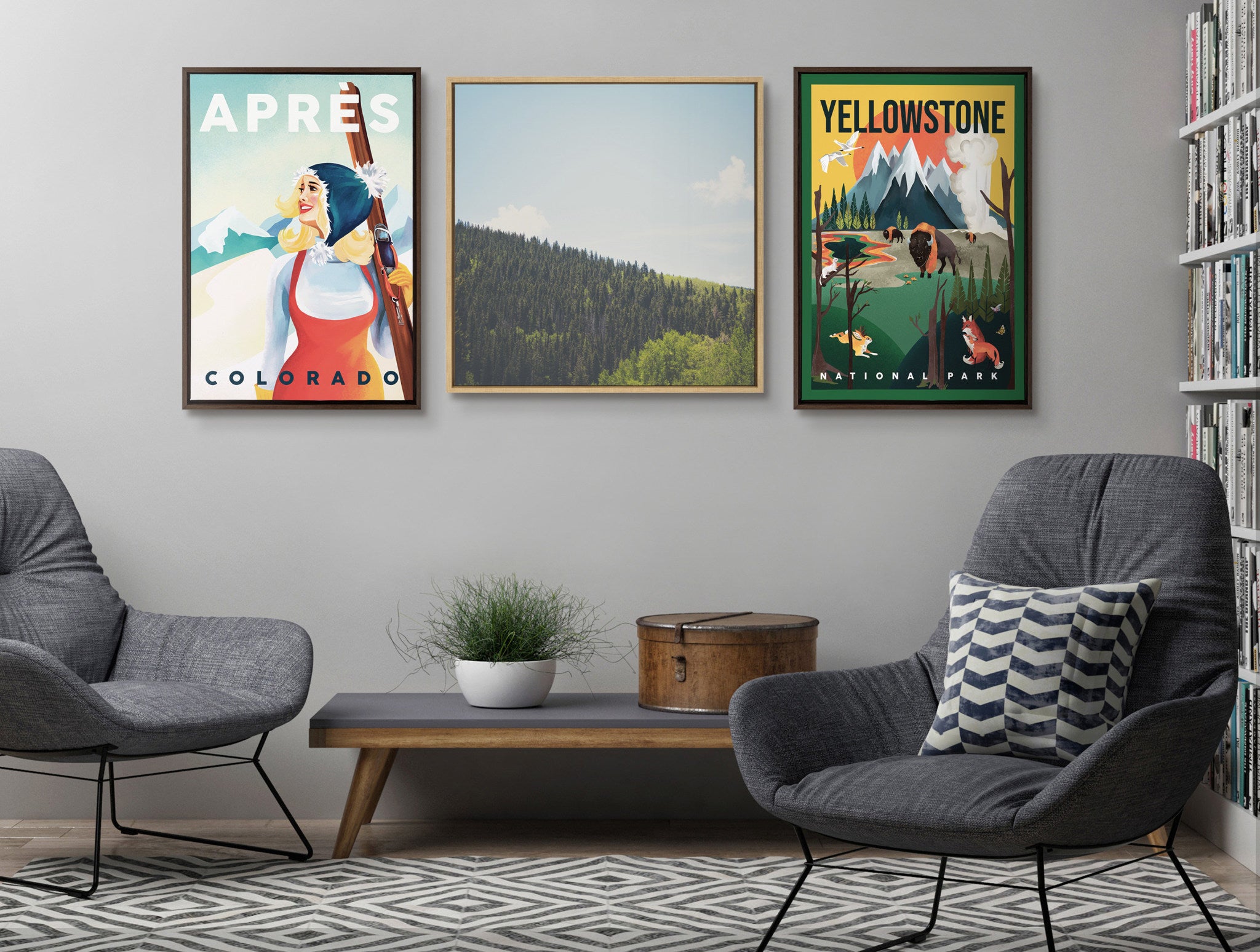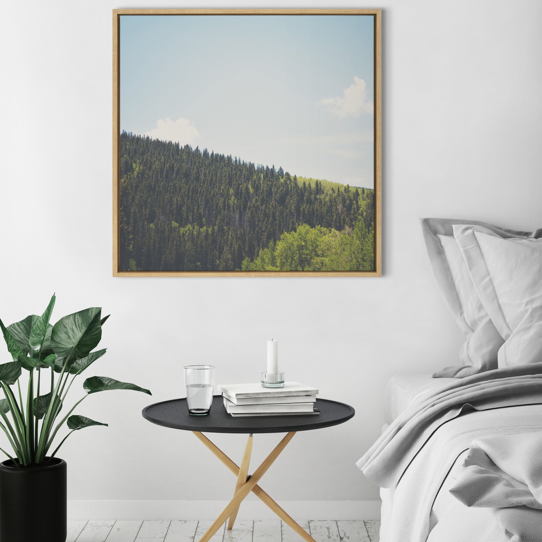 Allow your home to become a zone of peace and tranquility by incorporating this art print into your decor. This refreshing landscape captures the POV of soring through the clouds above a lovely forest. Printed and framed in the USA in Waunakee, Wisconsin, this framed floating canvas art will be a pleasure to look at every day in your living room, bedroom, office, or any room in the home. This art print also makes an excellent gift for birthdays, holidays, or house-warming parties. Printed on gallery-wrapped canvas and framed with a lightweight polystyrene frame, this wall art has two hangers already attached to the MDF back for easy wall display.