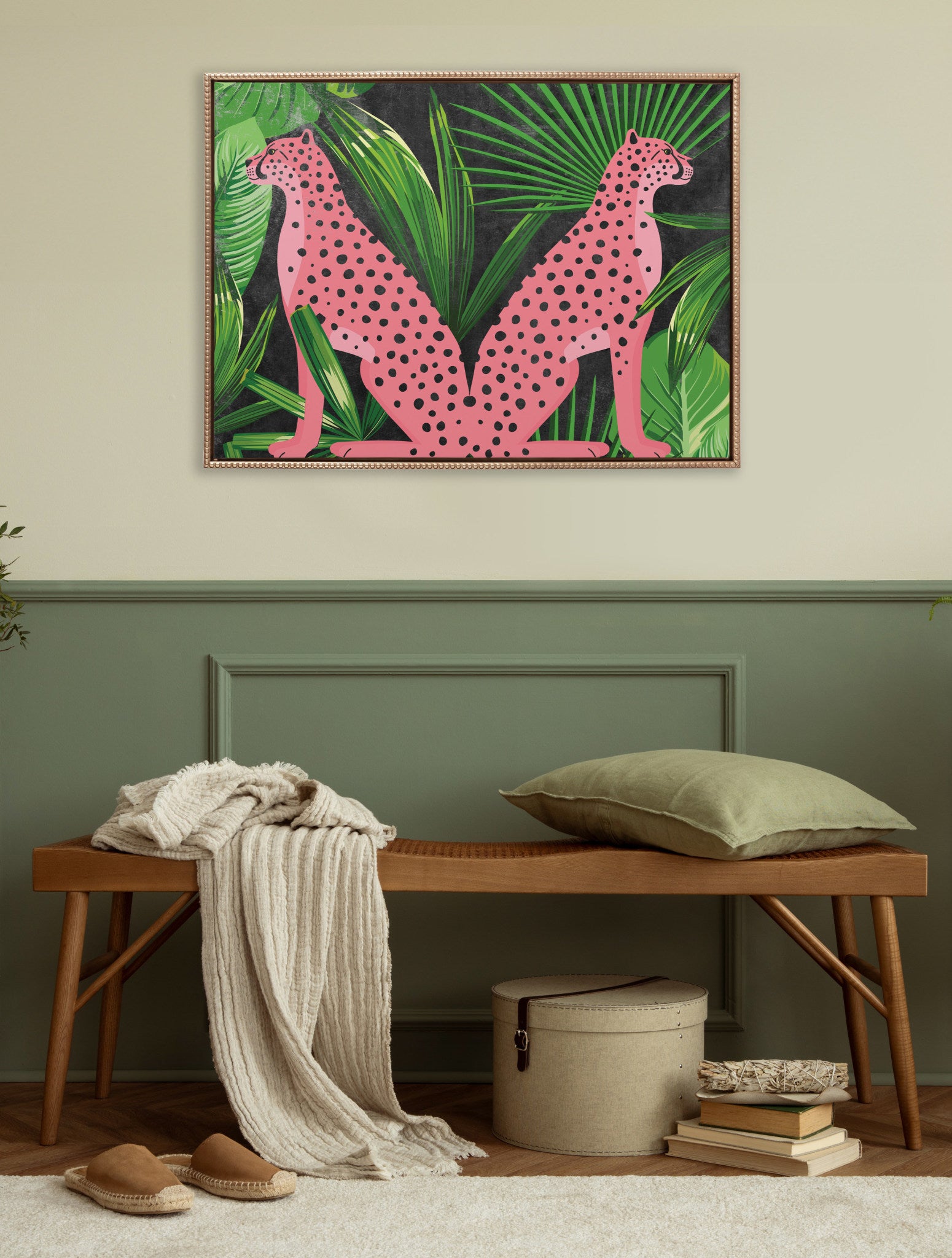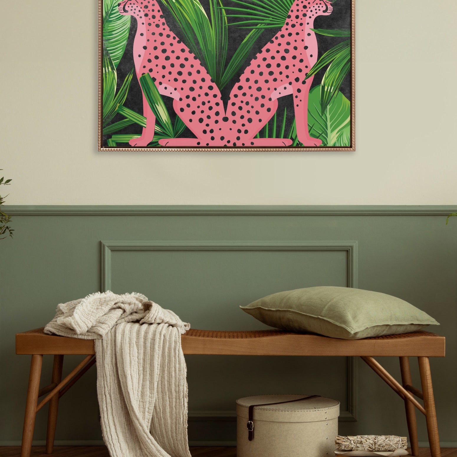 This artwork showcases a mid-century-inspired jungle scene with a cheetah, adding a touch of the wild to your decor. Printed and framed in the USA in Waunakee, Wisconsin, this vintage beaded framed floating canvas art will be a pleasure to look at every day in your living room, bedroom, office, or any room in the home. This art also makes an excellent gift for birthdays, holidays, or house-warming parties. Printed on gallery-wrapped canvas and framed with a lightweight polystyrene frame, this wall art is easy to display on the wall.