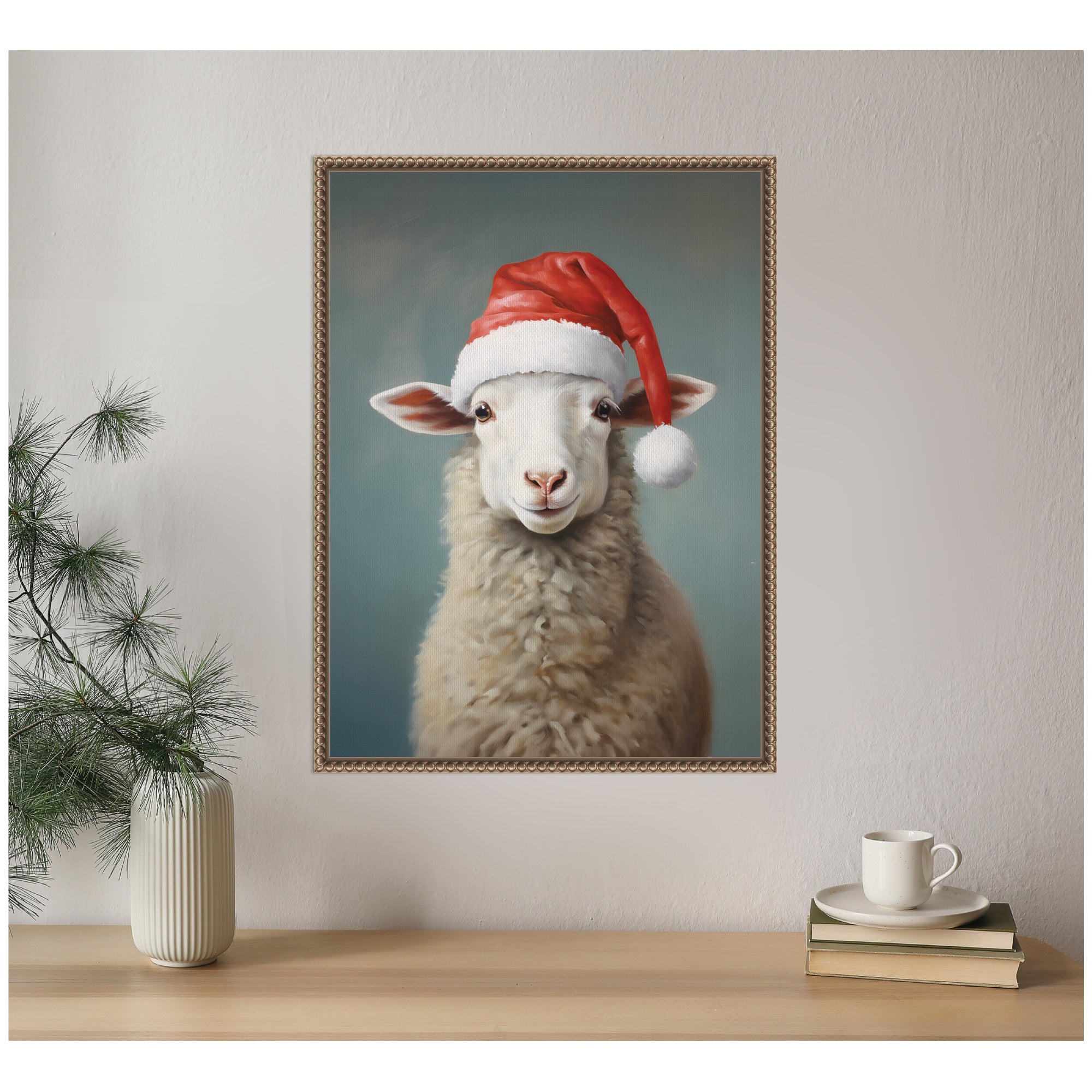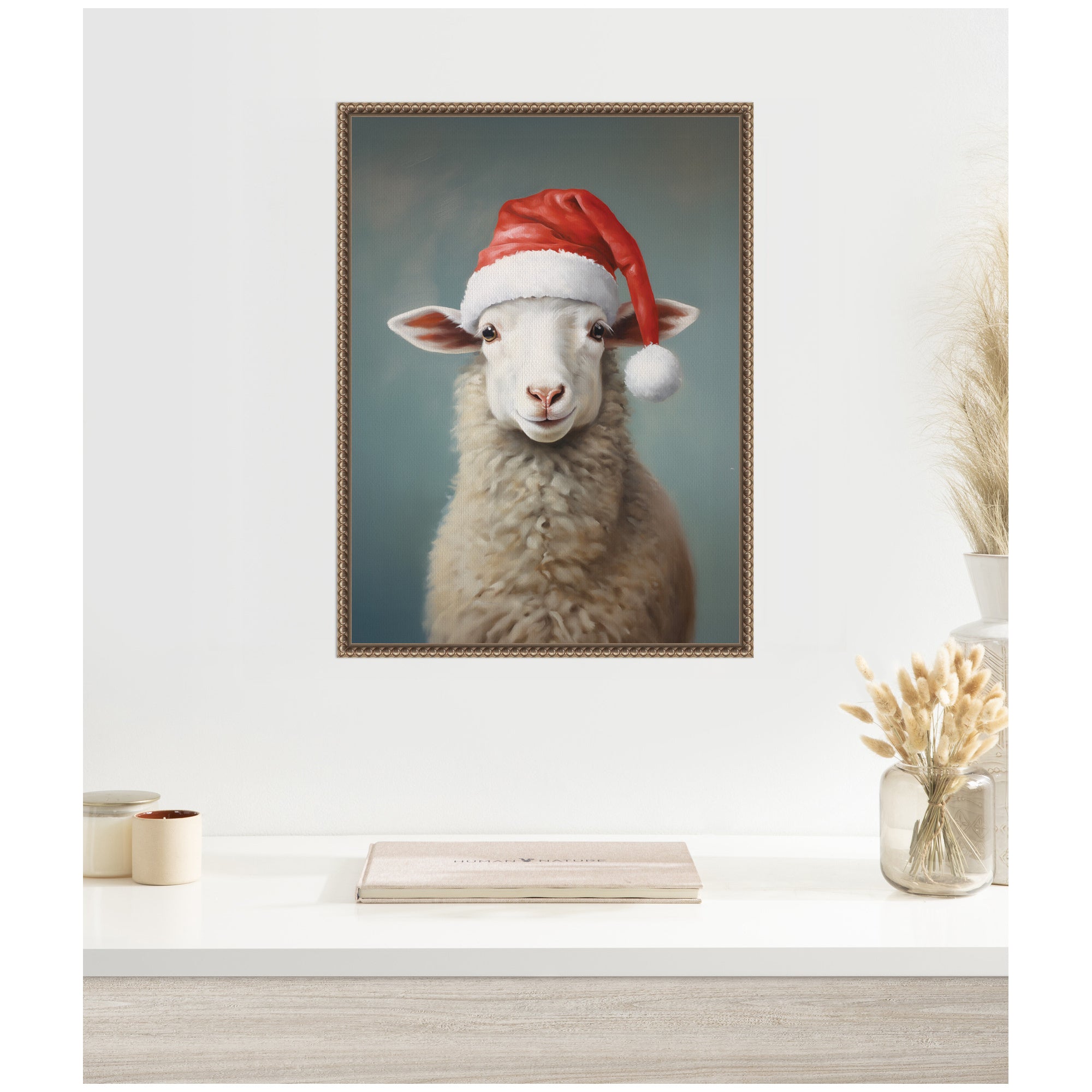 Sylvie Beaded Sweet Sheep Santa Hat Framed Canvas by The Creative Bunch Studio