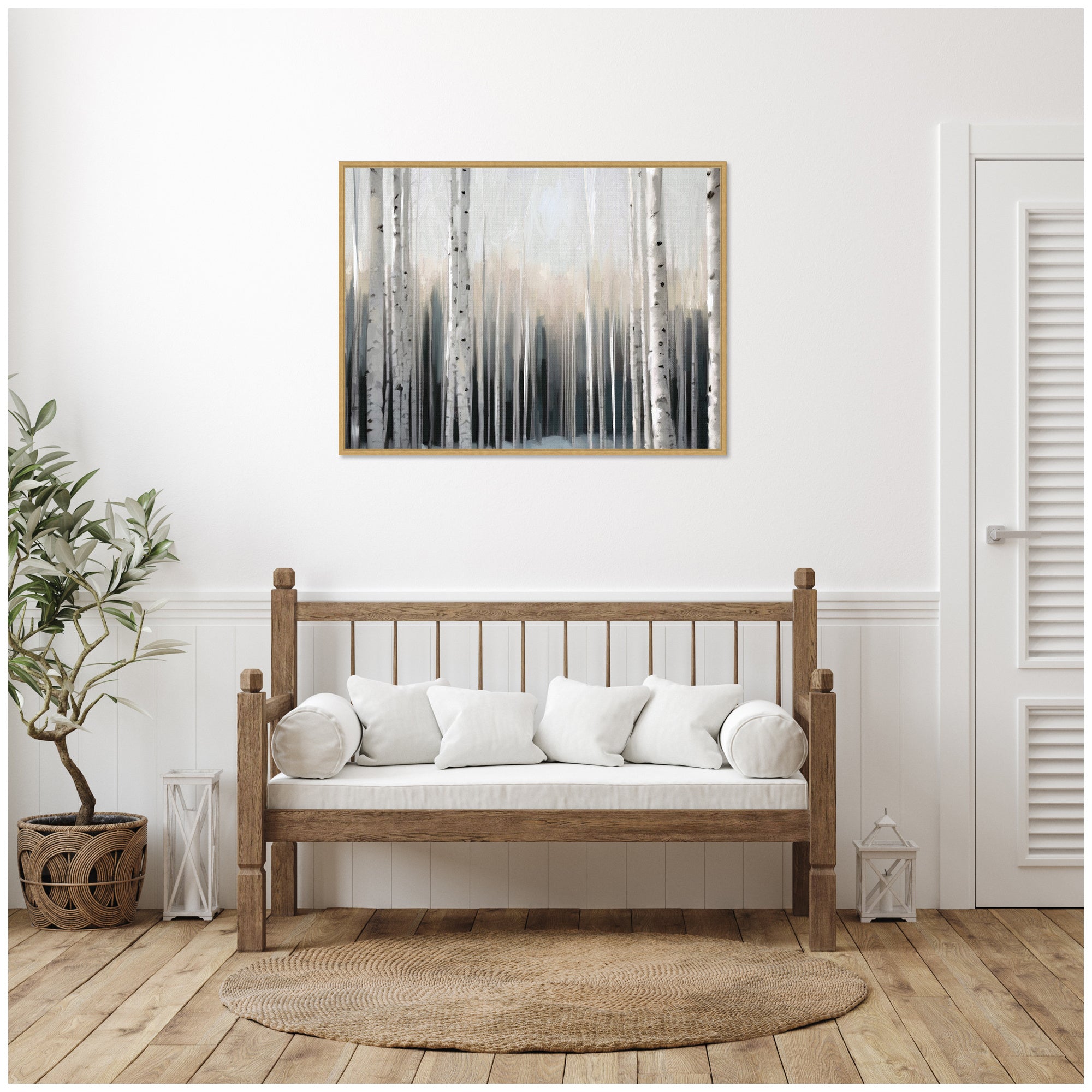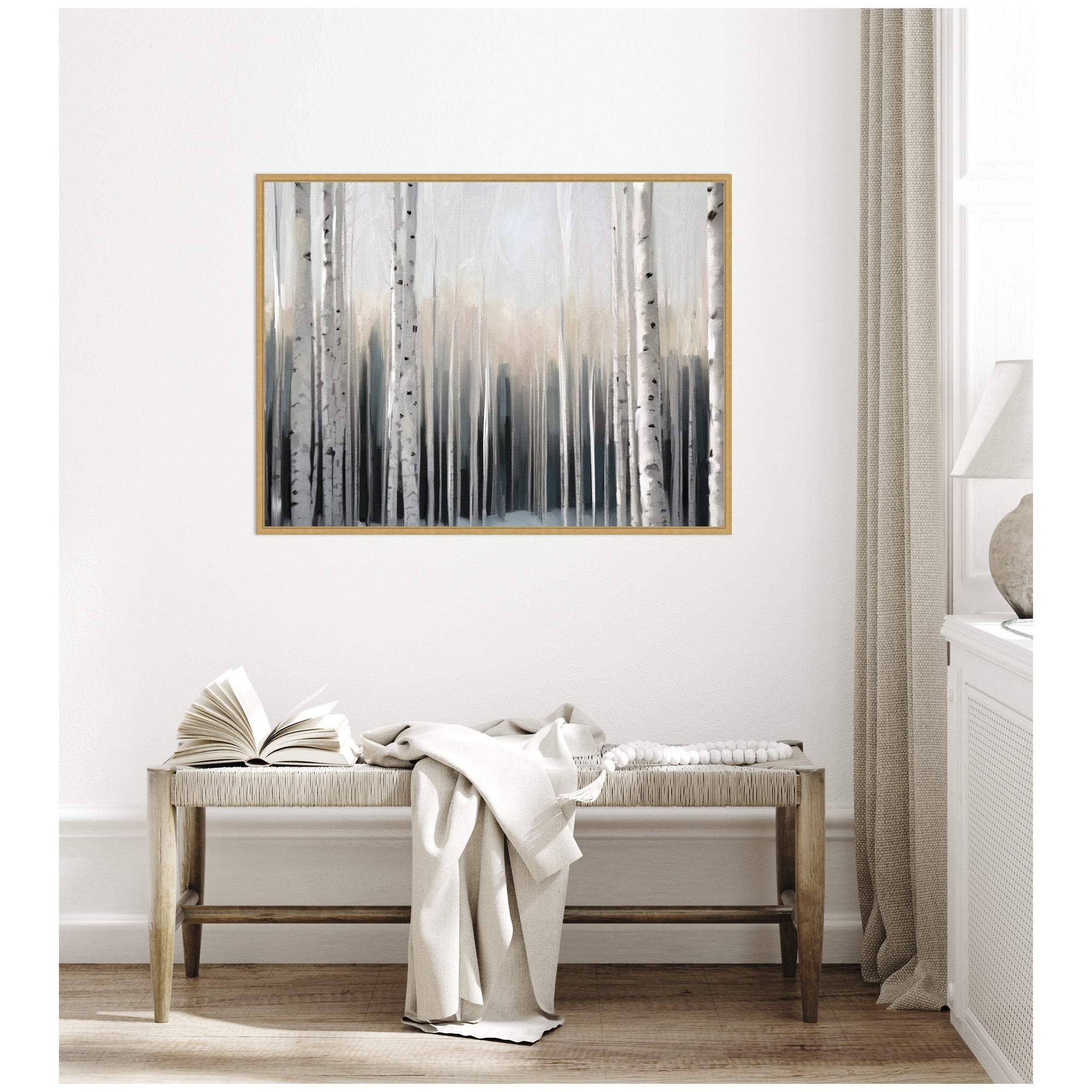 Sylvie Birch Tree Glow Framed Canvas by Mary Sparrow
