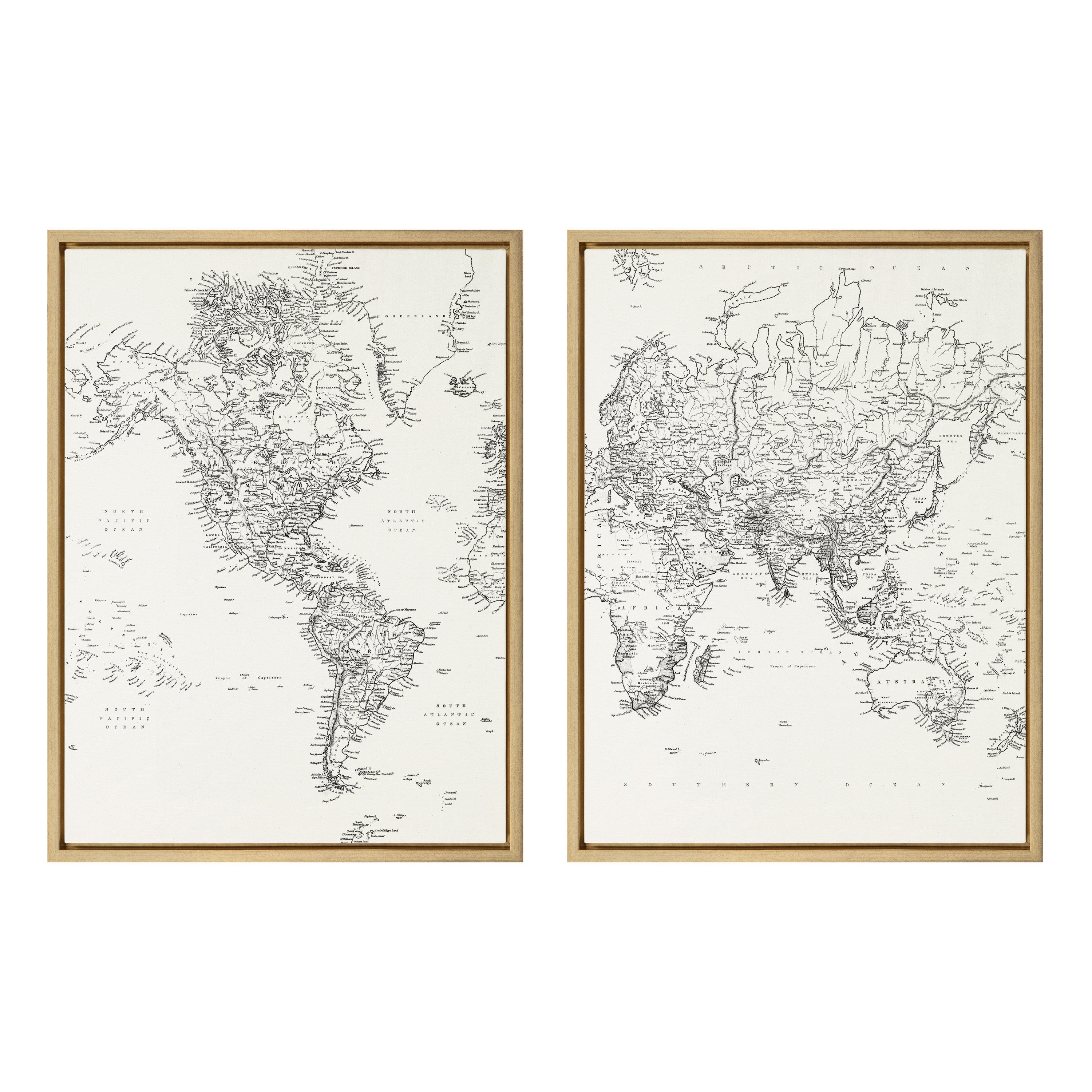 Sylvie Black and White Modern Retro World Map Framed Canvas Set by The Creative Bunch Studio