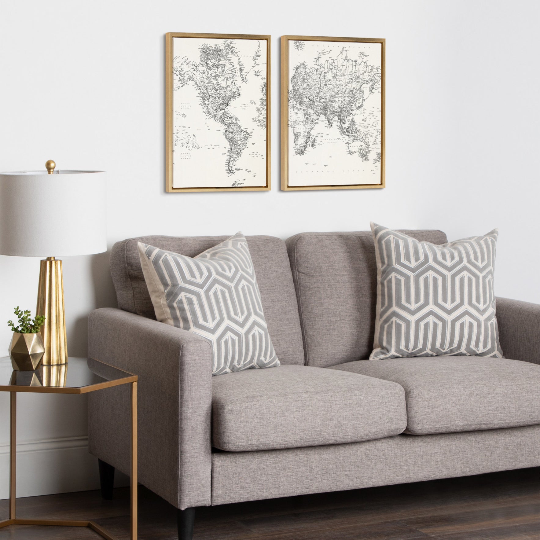 This gorgeous gold framed linen textured canvas map print can be the prefect statement piece for your living room. Printed and framed in the USA in Waunakee, Wisconsin, this framed floating canvas art will be a pleasure to look at every day in your living room, bedroom, office, or any room in the home. This art print also makes an excellent gift for birthdays, holidays, or house-warming parties. Printed on gallery-wrapped canvas and framed with a lightweight polystyrene frame, this wall art has two hangers already attached to the MDF back for easy wall display.