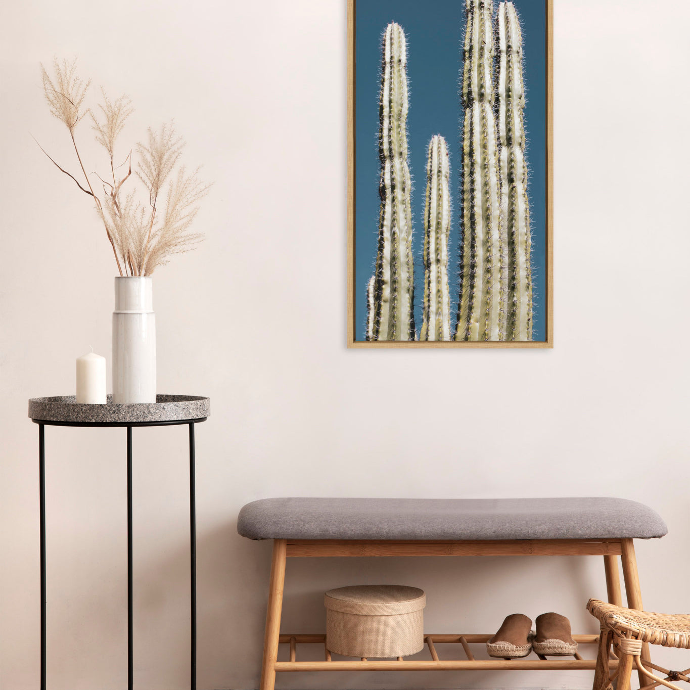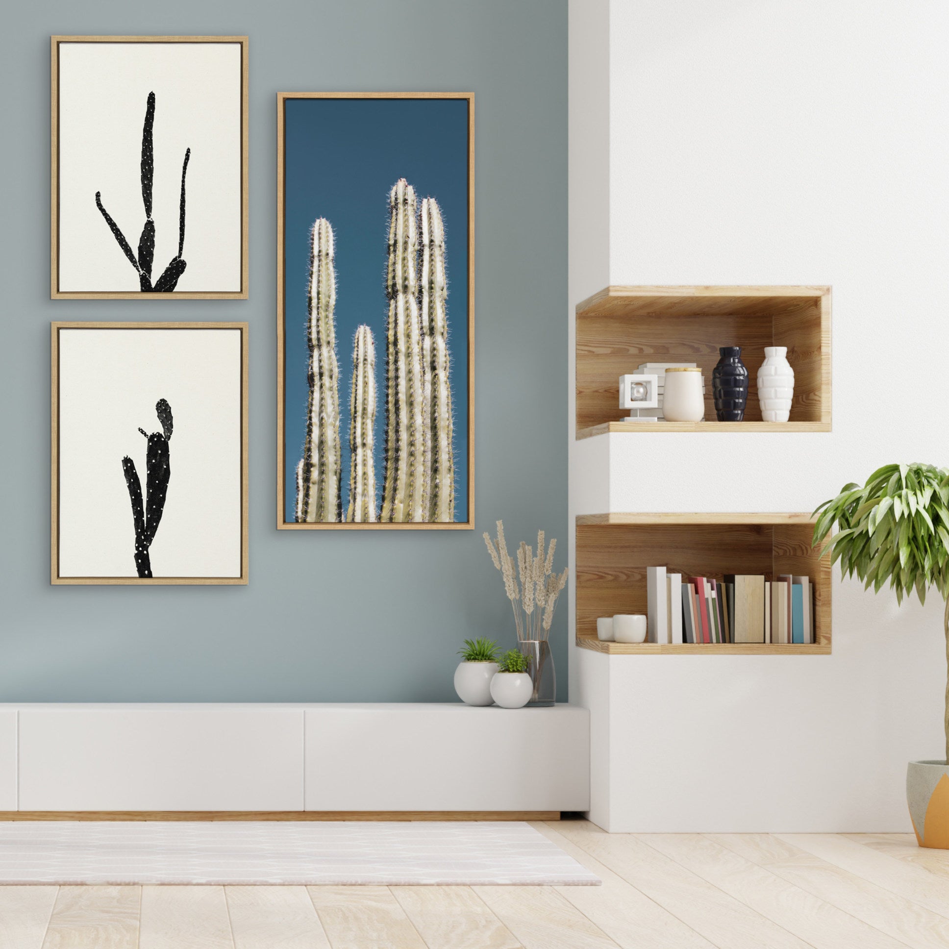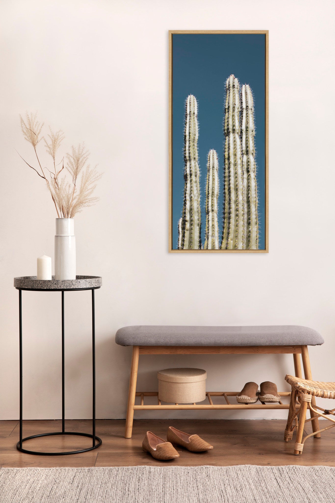 Add a touch of the desert to your home with this tall scenic cacti wall art. Printed and framed in the USA in Waunakee, Wisconsin, this framed floating canvas art will be a pleasure to look at every day in your living room, bedroom, office, or any room in the home. This art print also makes an excellent gift for birthdays, holidays, or house-warming parties. Printed on gallery-wrapped canvas and framed with a lightweight polystyrene frame, this wall art is easy to display on the wall.