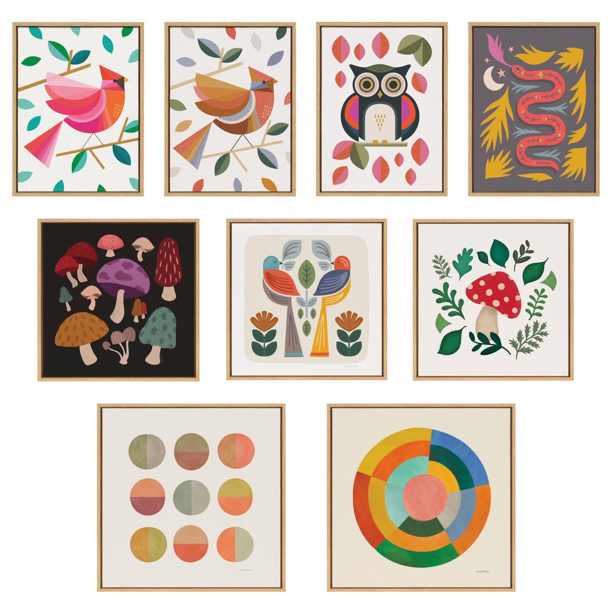 Celebrate the colors of fall with this mid-century-inspired artwork, featuring a cardinal bird amidst autumn leaves. Printed and framed in the USA in Waunakee, Wisconsin, this framed floating canvas art will be a pleasure to look at every day in your living room, bedroom, office, or any room in the home. This art print also makes an excellent gift for birthdays, holidays, or house-warming parties. Printed on gallery-wrapped canvas and framed with a lightweight polystyrene frame, this wall art is easy to display on the wall.