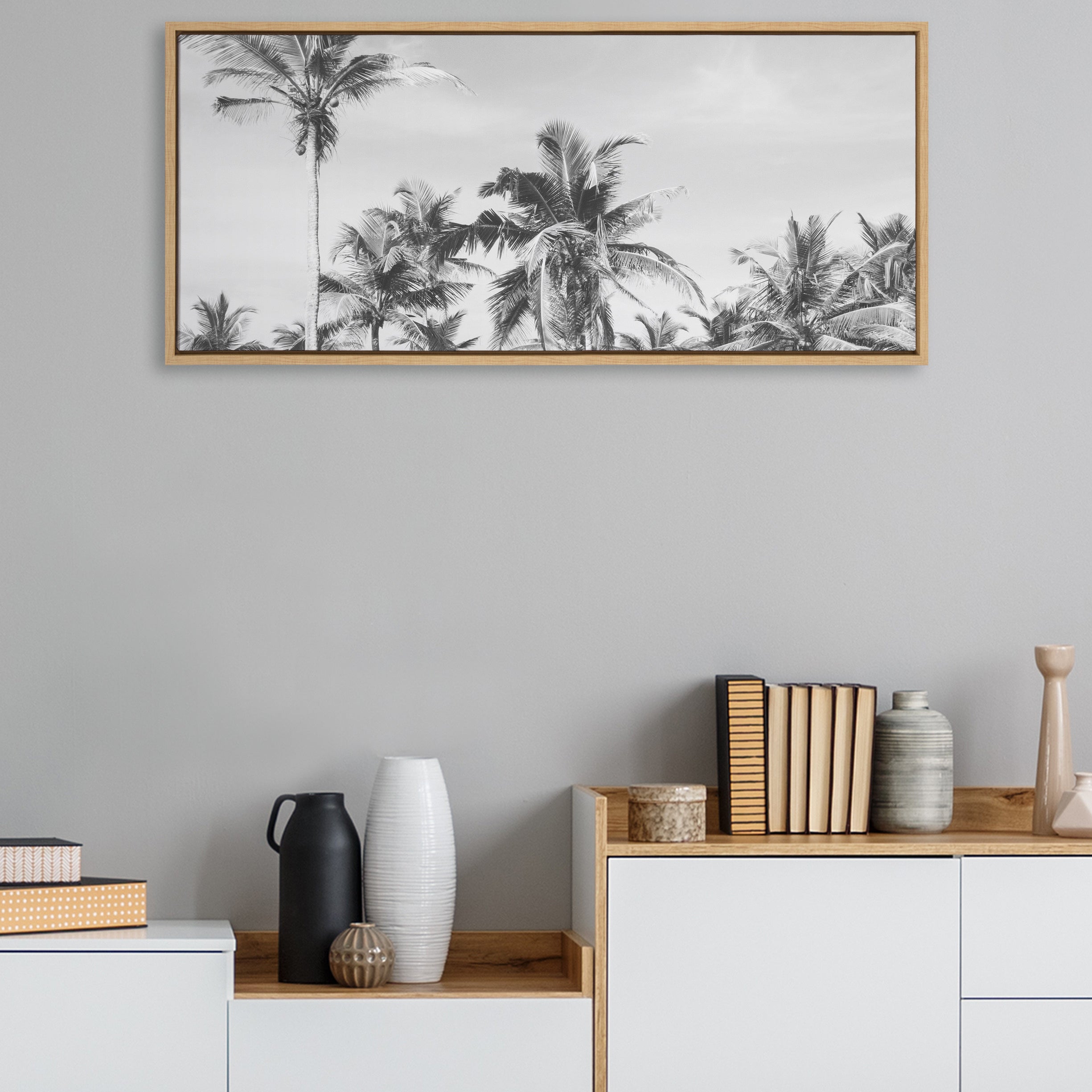 Nothing says California dreamin' like this beautiful palm tree art print. Printed and framed in the USA in Waunakee, Wisconsin, this framed floating canvas art will be a pleasure to look at every day in your living room, bedroom, office, or any room in the home. This art print also makes an excellent gift for birthdays, holidays, or housewarming parties. Printed on gallery-wrapped canvas and framed with a lightweight polystyrene frame, this wall art is easy to display on the wall.