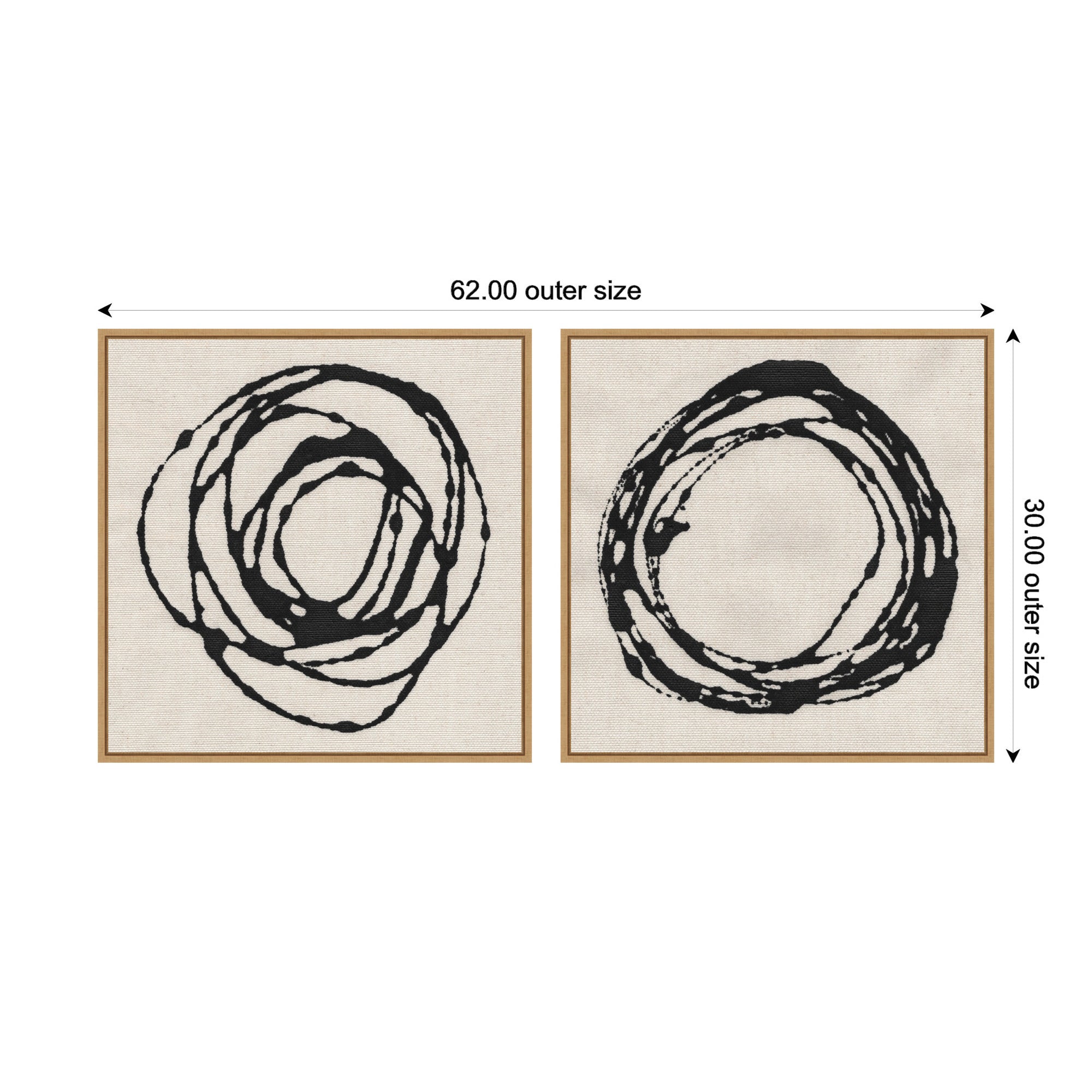 Sylvie Flowing Circle Abstracts - 2 Piece Framed Canvas Art Set by The Creative Bunch Studio