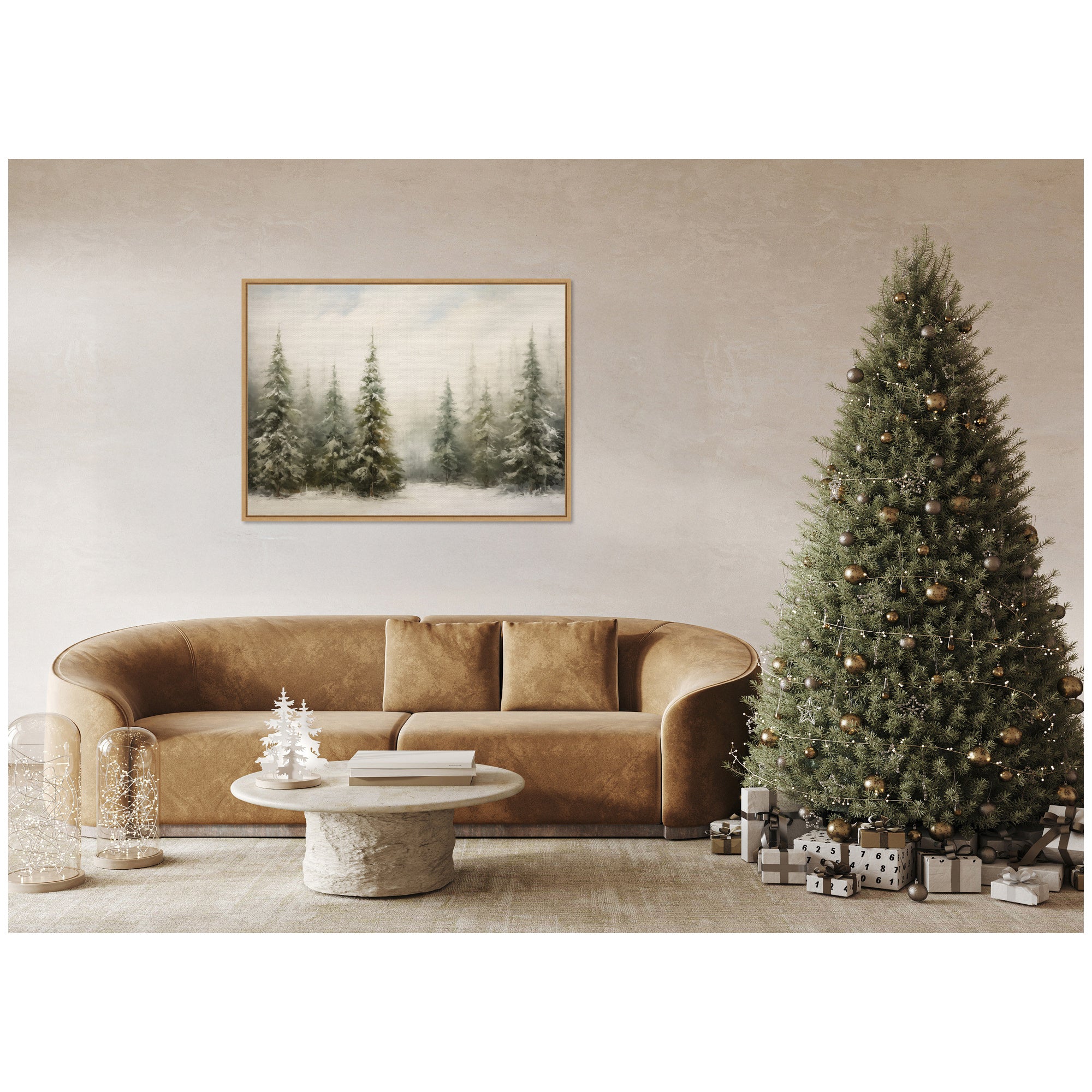 Elevate your space through thoughtfully curated style with this stunning piece designed by independent artist The Creative Bunch Studio and beautifully framed by hand in Madison, WI. The image is giclee printed using fade-resistant inks, ensuring every detail comes to life in rich, lasting color. Set in designer moulding, its a Traditional accent crafted to make a statement. Visual Story: The artwork depicts a serene winter landscape featuring a forest of pine trees dusted with snow. Soft mist envelops the trees, creating a tranquil and ethereal atmosphere. The subtle play of light enhances the peacefulness of the scene.