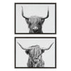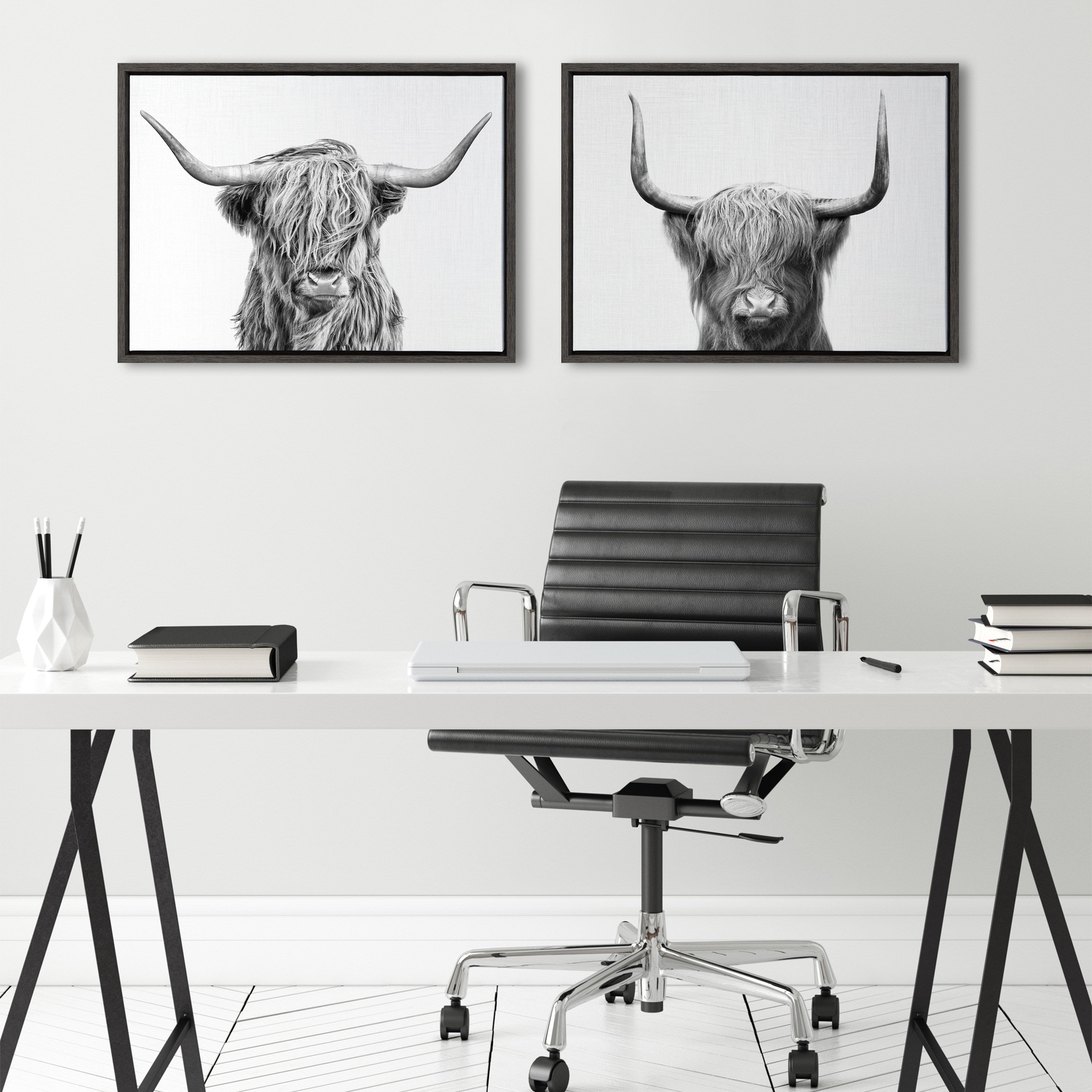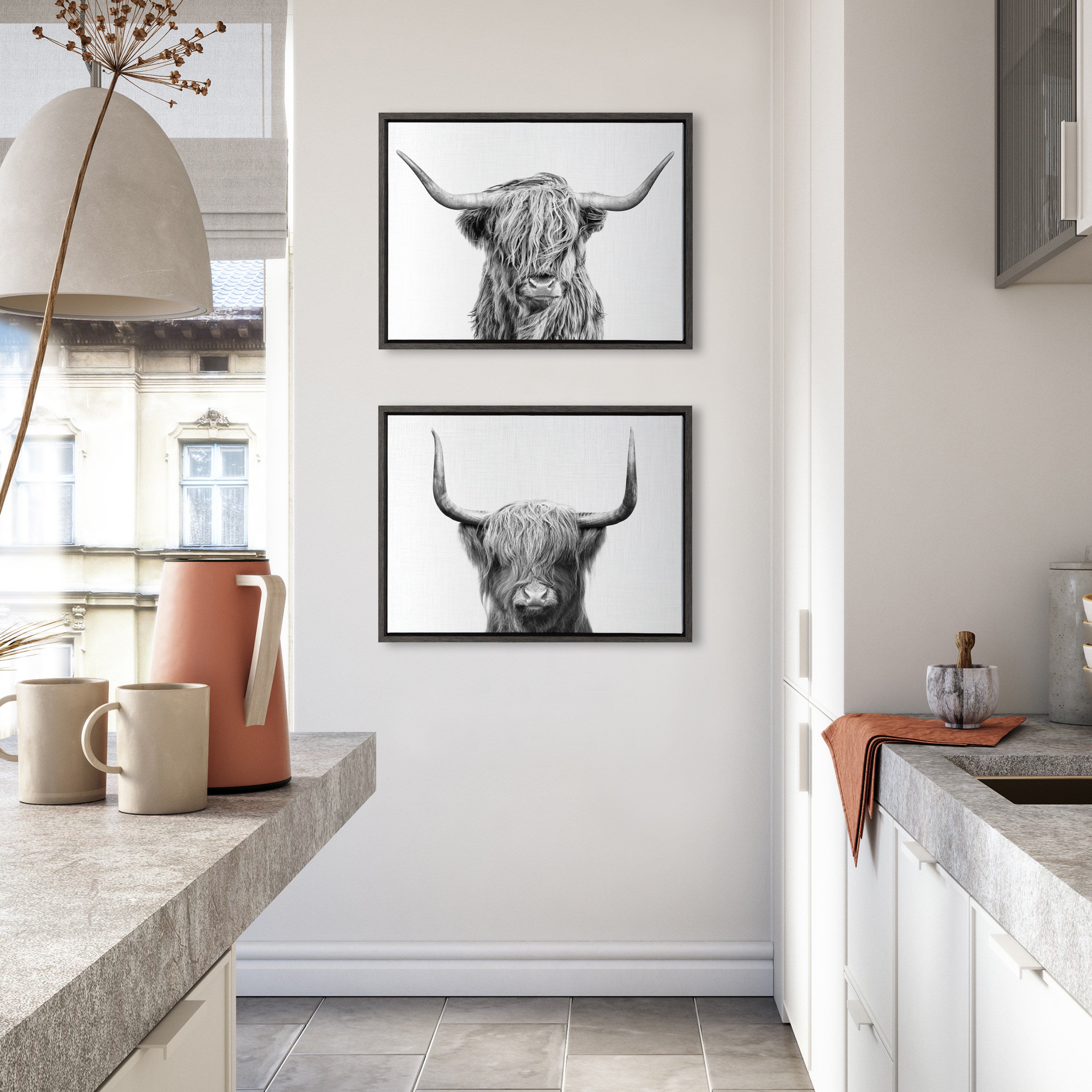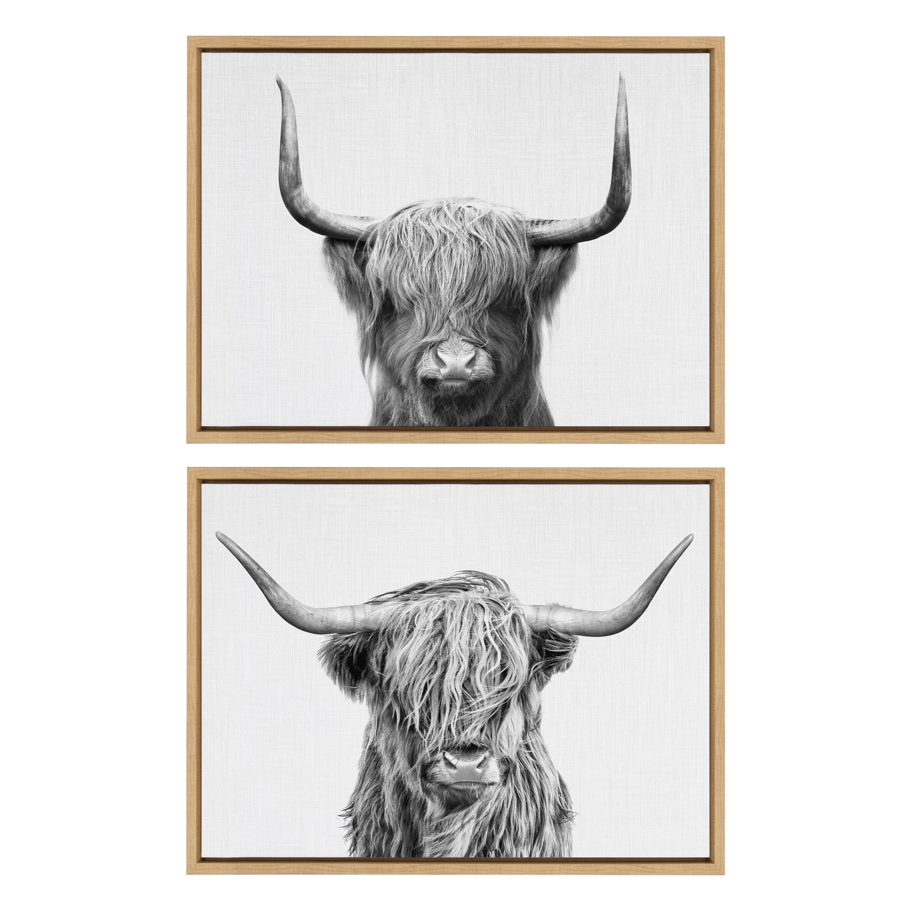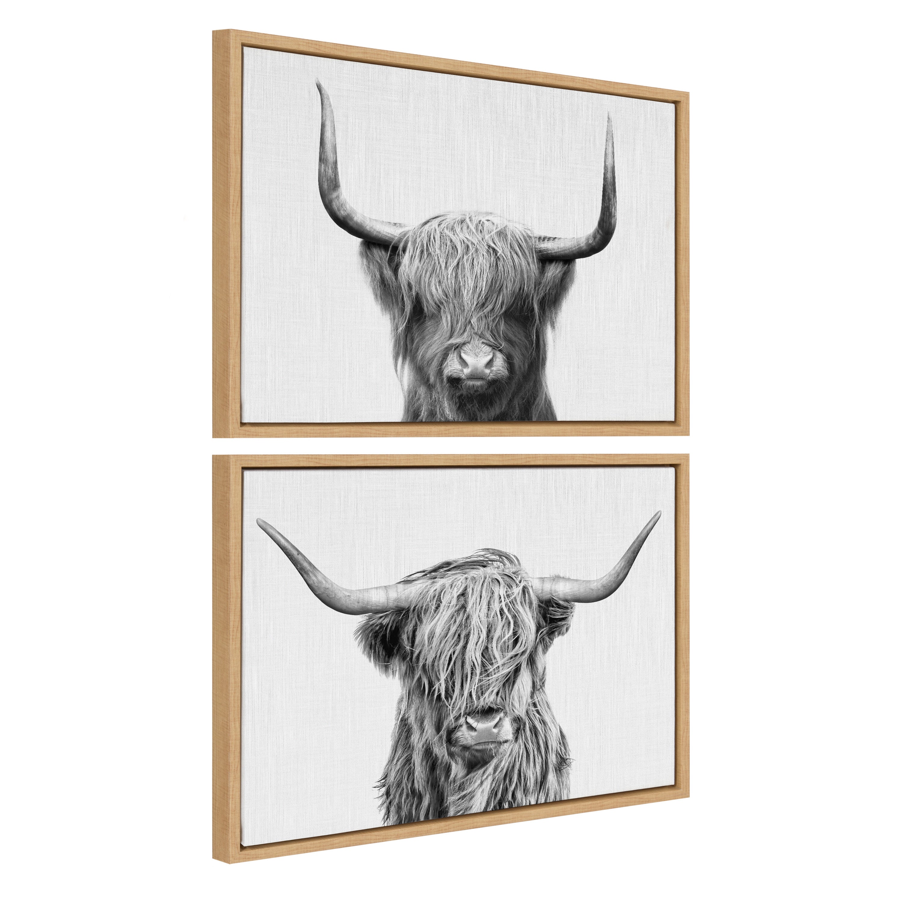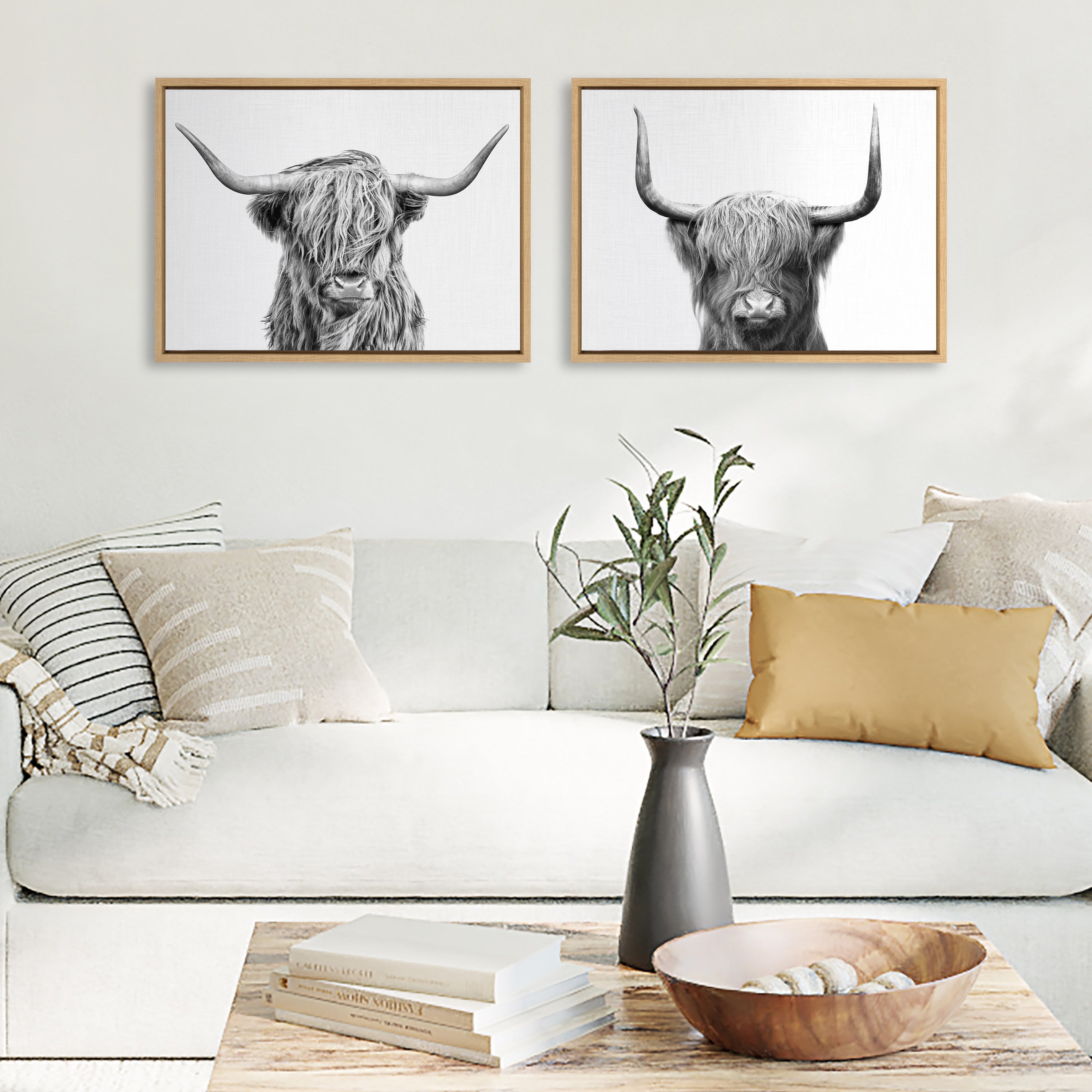 This two-piece set of our beloved Highland Cow is the perfect refined addition to your home. Printed and framed in the USA in Waunakee, Wisconsin, this framed floating canvas art set will be a pleasure to look at every day in your living room, bedroom, office, or any room in the home. This curated set also makes an excellent gift for birthdays, holidays, or house-warming parties. Printed on gallery-wrapped canvas and framed with a lightweight polystyrene frame, this wall art set is easy to display on the wall.