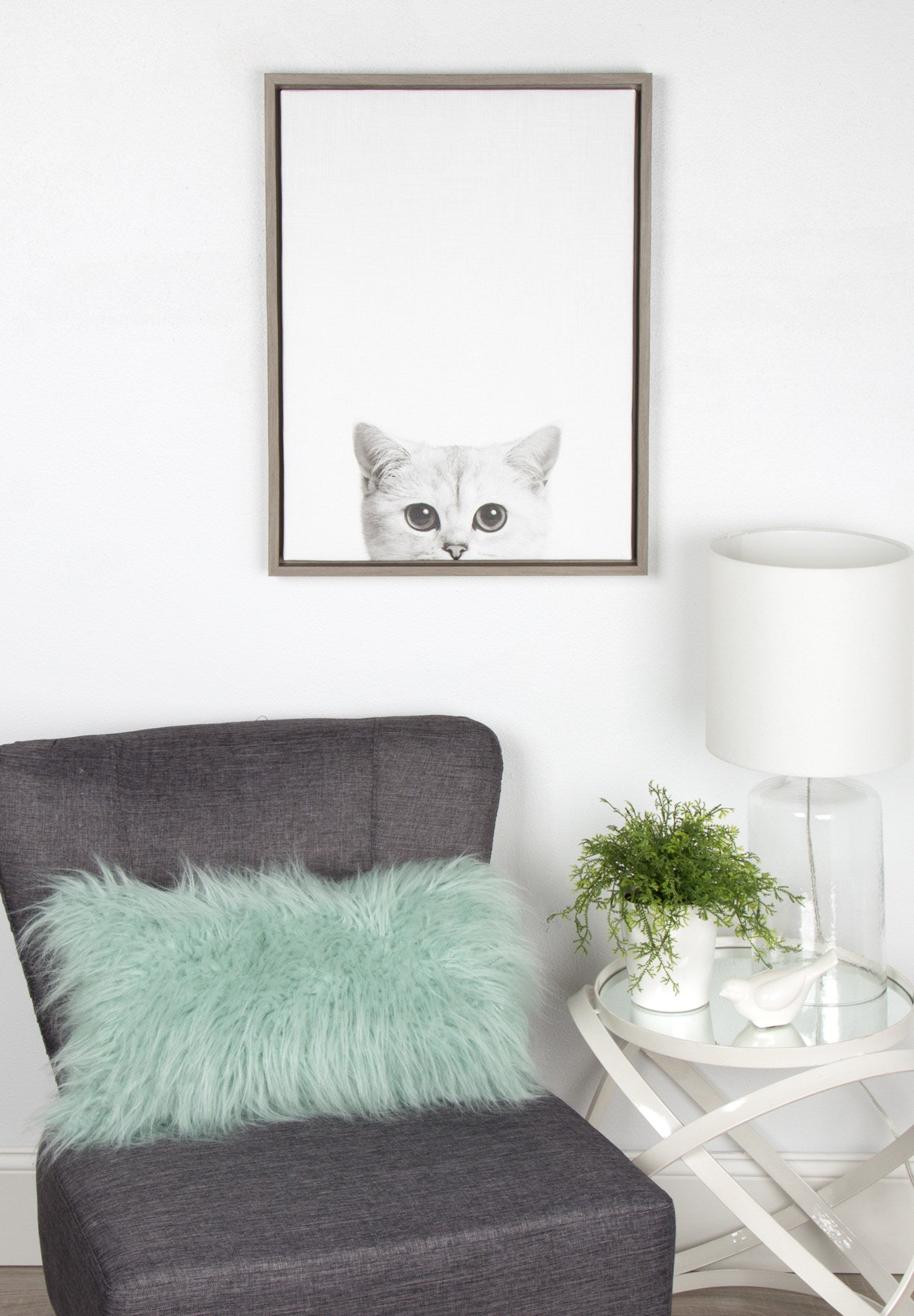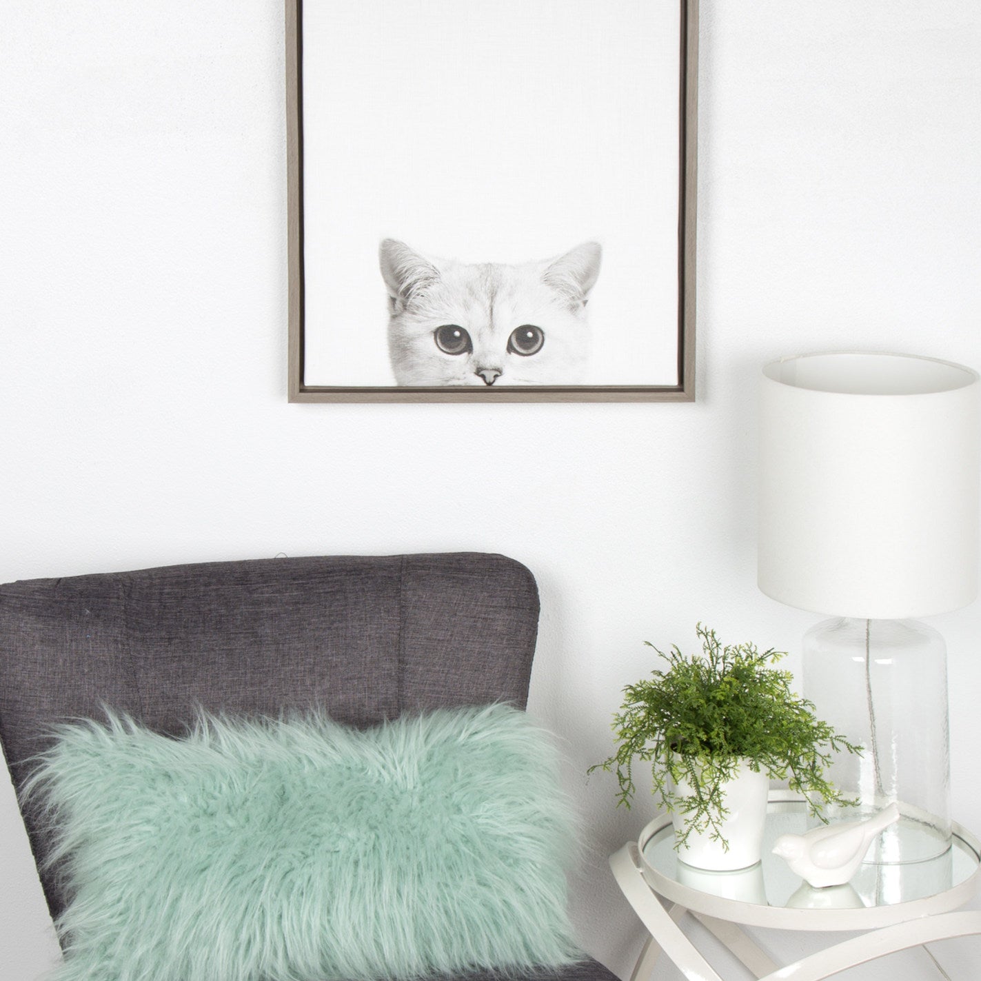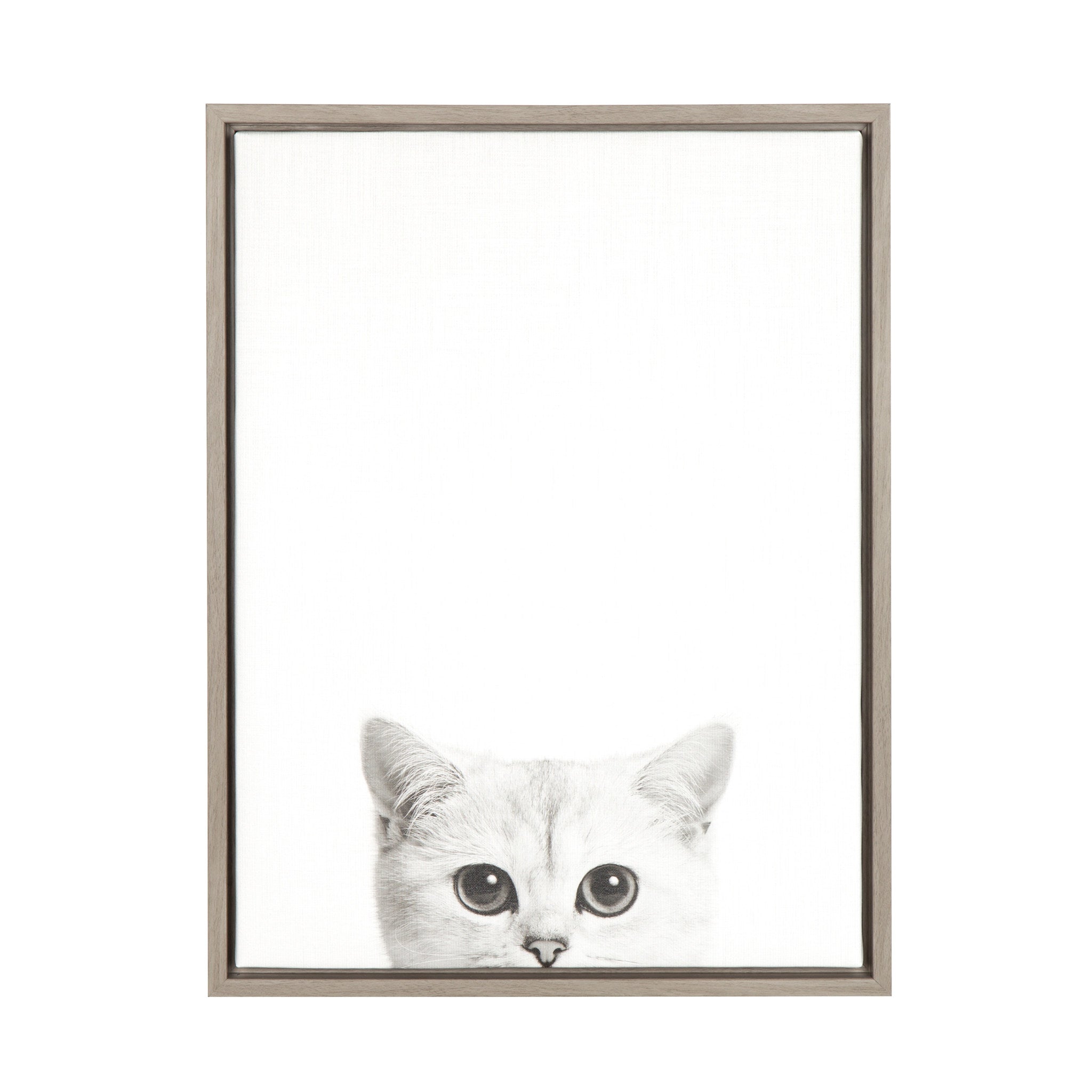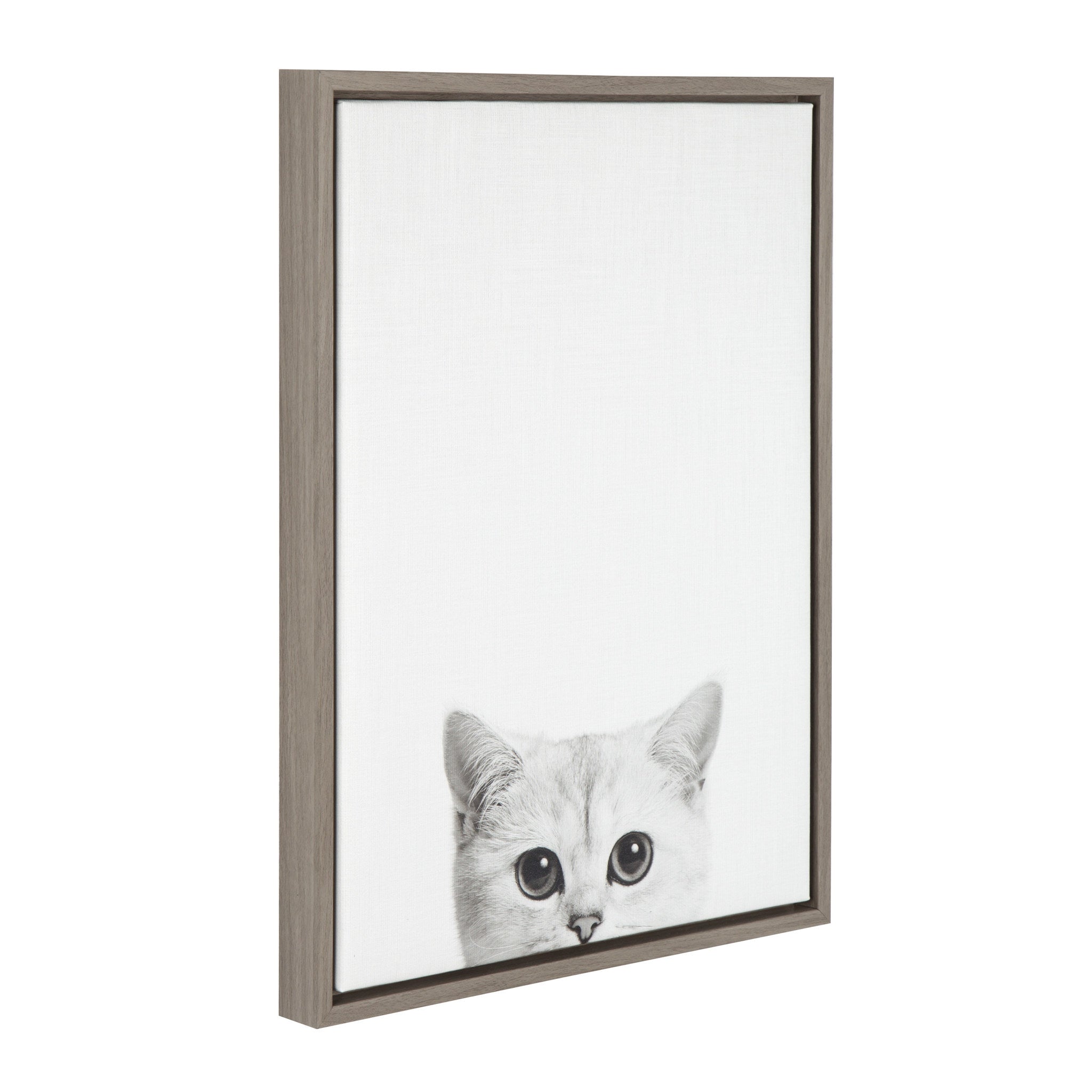 Display your love of animals in your home with this eye-catching curious kitten portrait. Printed and framed in the USA in Waunakee, Wisconsin, this framed floating canvas art will be a pleasure to look at every day in your living room, bedroom, office, or any room in the home. This art print also makes an excellent gift for birthdays, holidays, or house-warming parties. Printed on gallery-wrapped canvas and framed with a lightweight polystyrene frame, this wall art has two hangers already attached to the MDF back for easy wall display.
