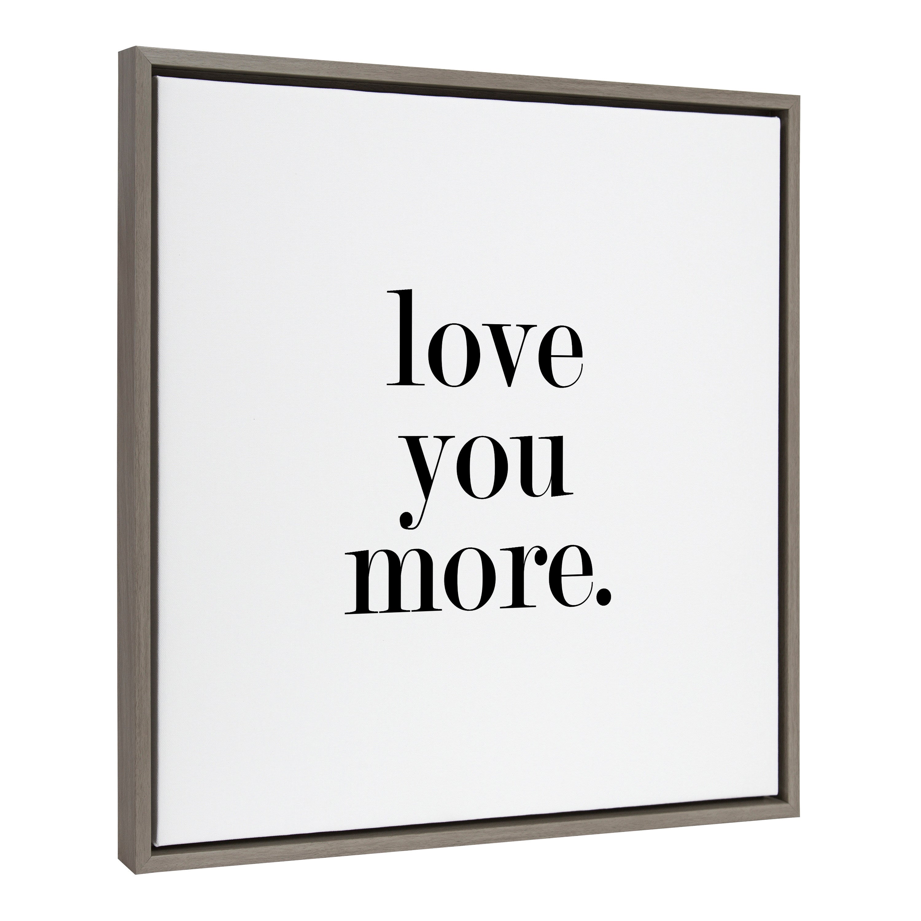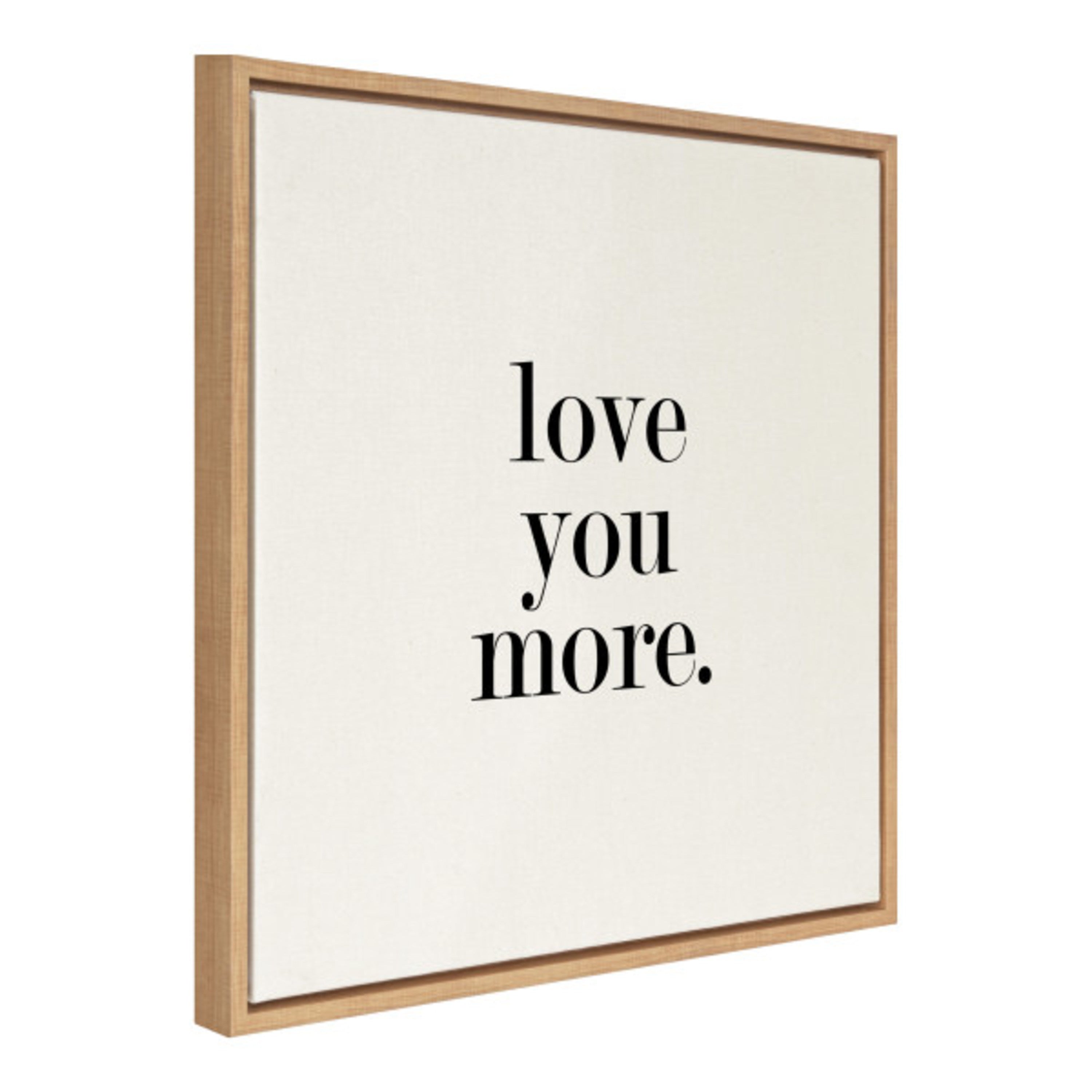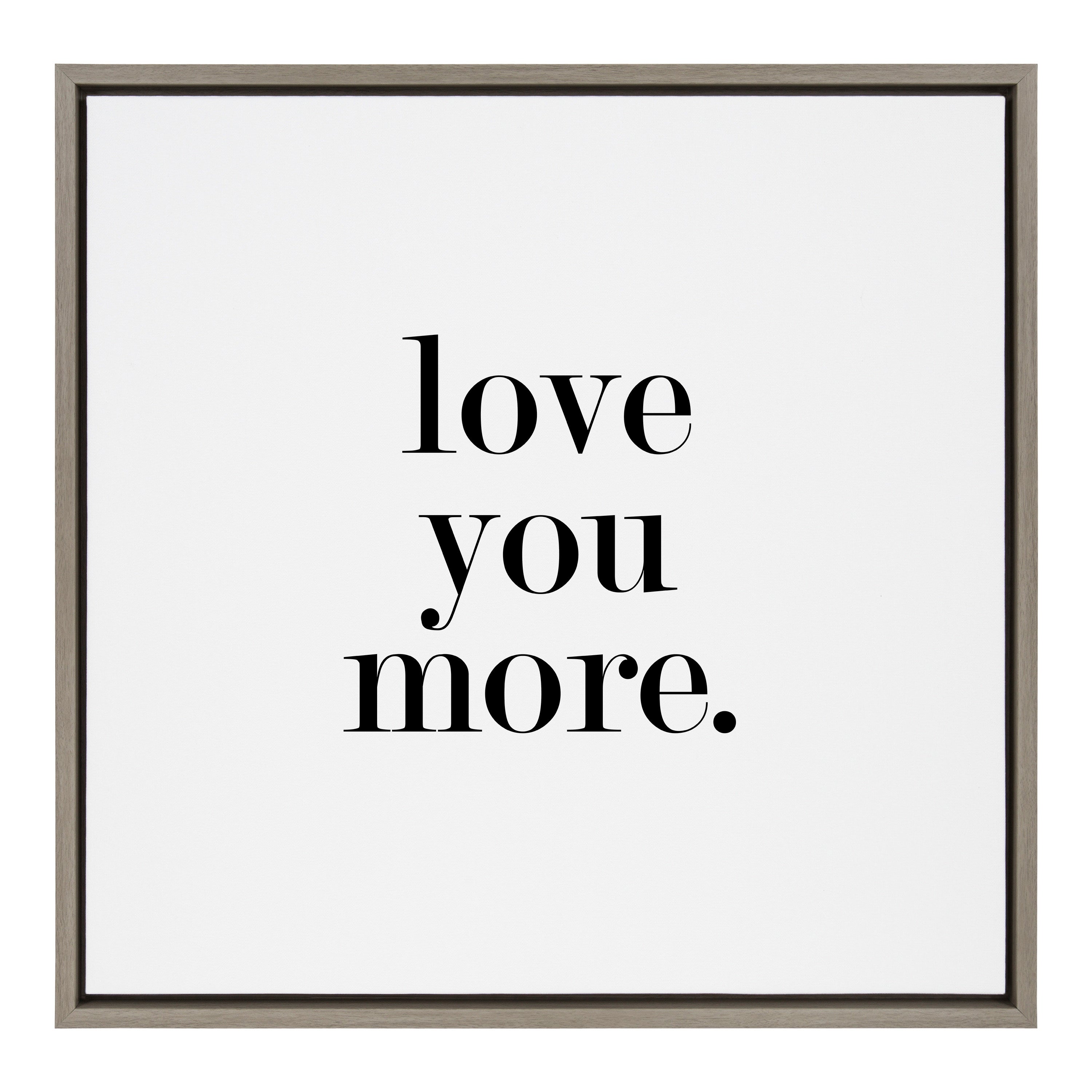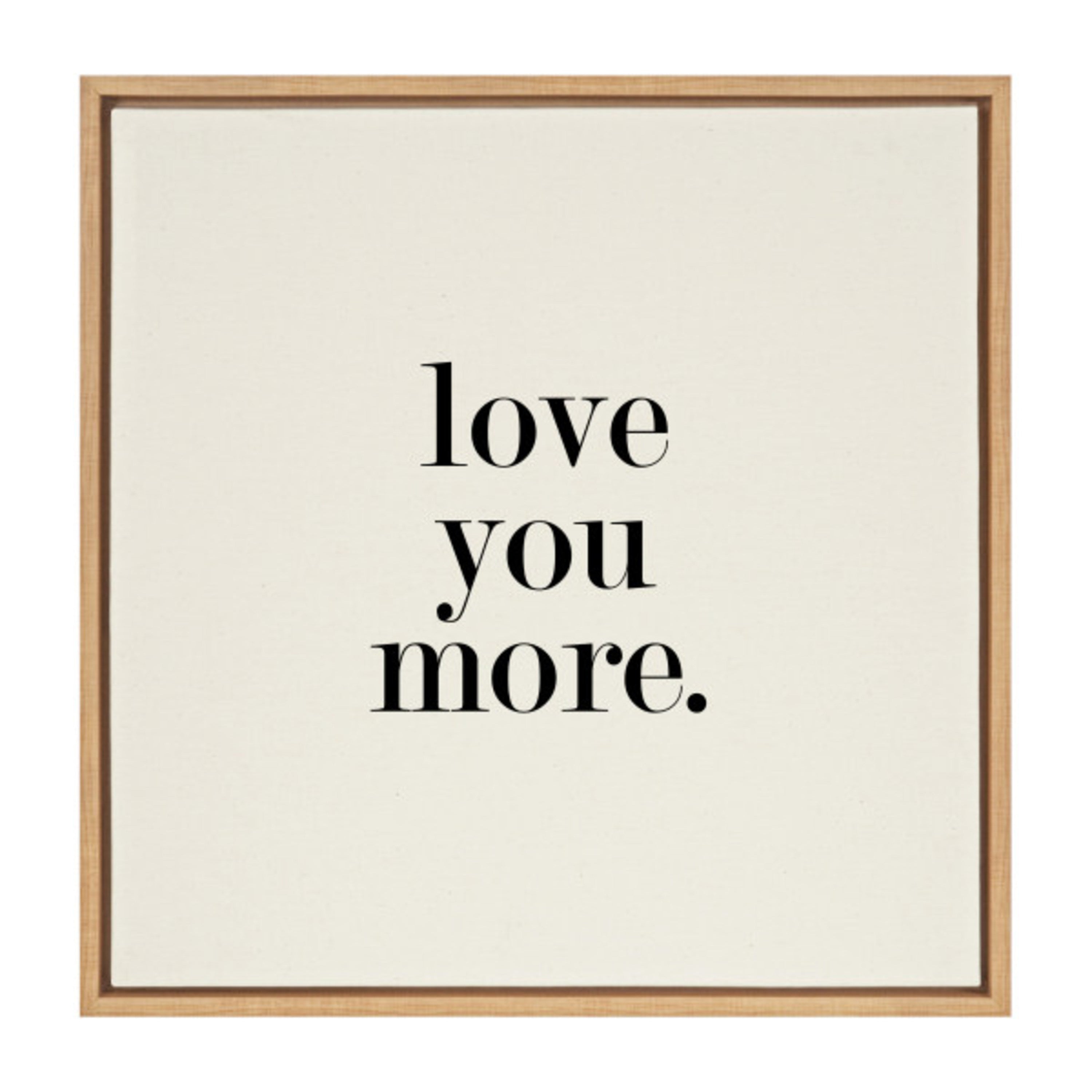 Featuring the tender phrase "Love You More," this canvas wall art by Maggie Price of Hunt and Gather Goods brings a romantic touch to your decor. Printed and framed in the USA in Waunakee, Wisconsin, this framed floating canvas art will be a pleasure to look at every day in your living room, bedroom, office, or any room in the home. This art also makes an excellent gift for birthdays, holidays, or house-warming parties. Printed on gallery-wrapped canvas and framed with a lightweight polystyrene frame, this wall art is easy to display on the wall.