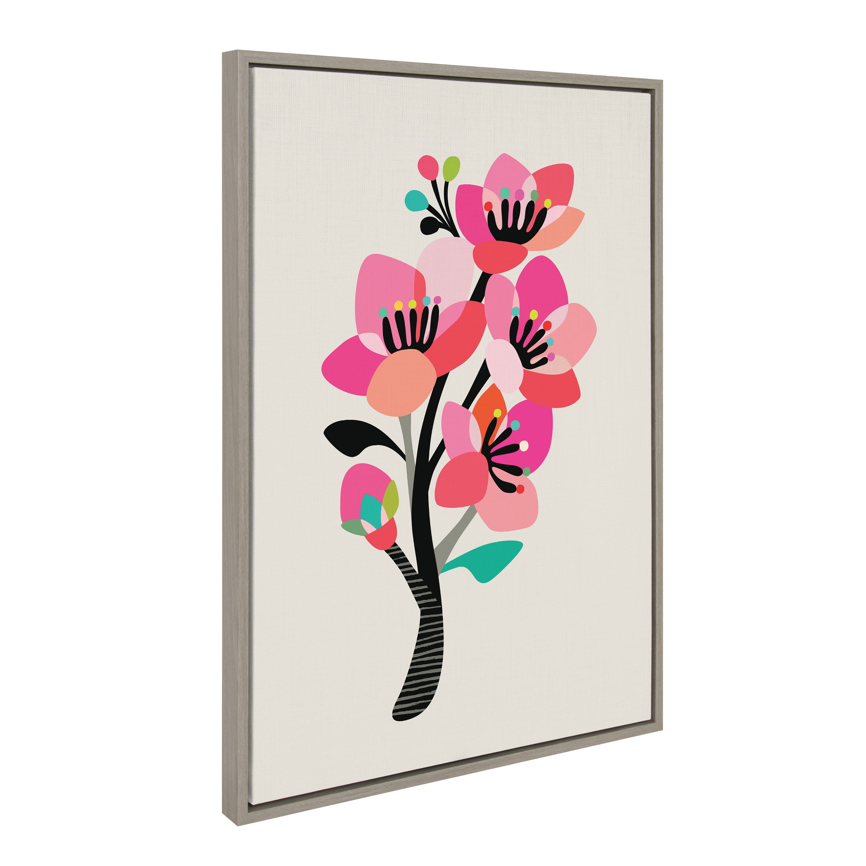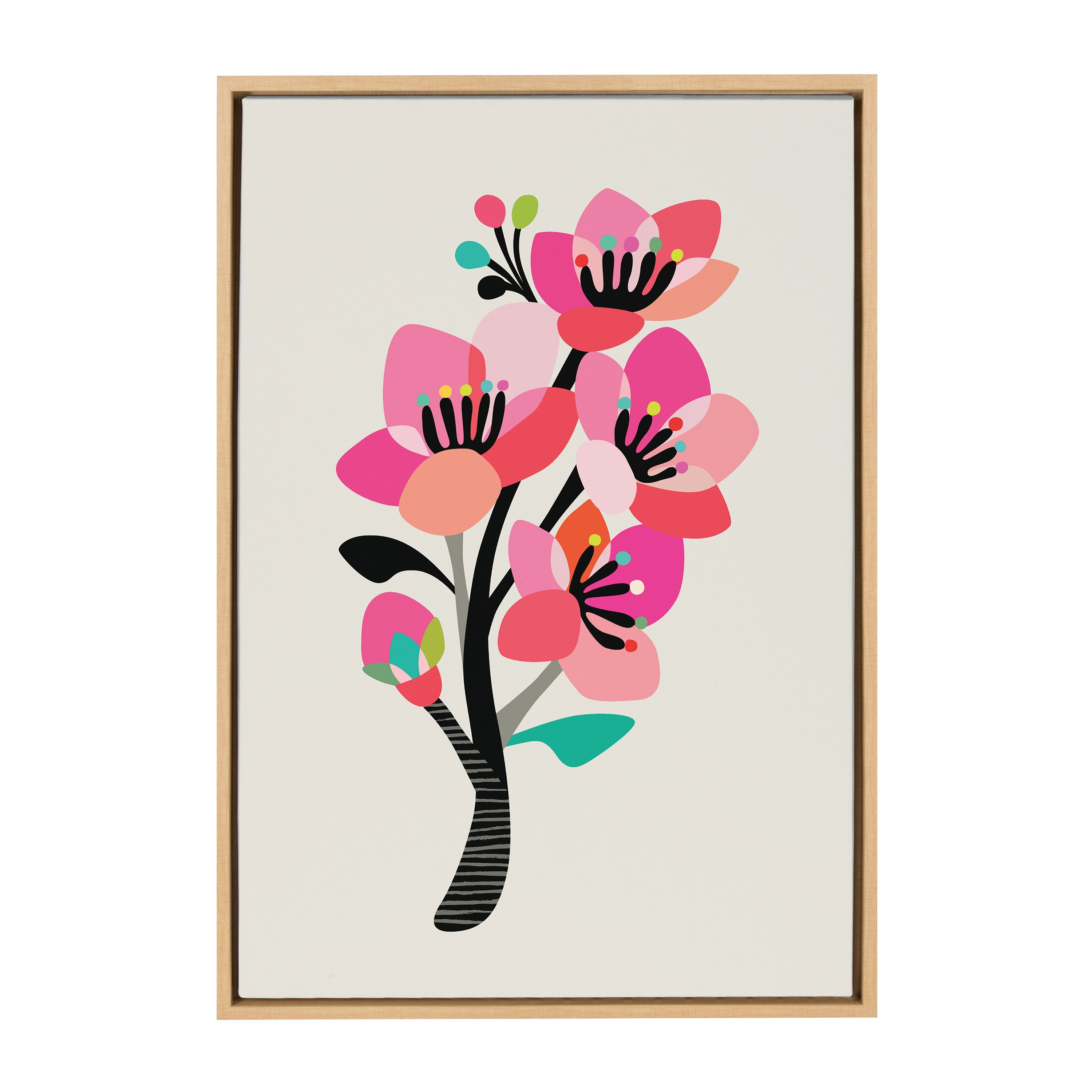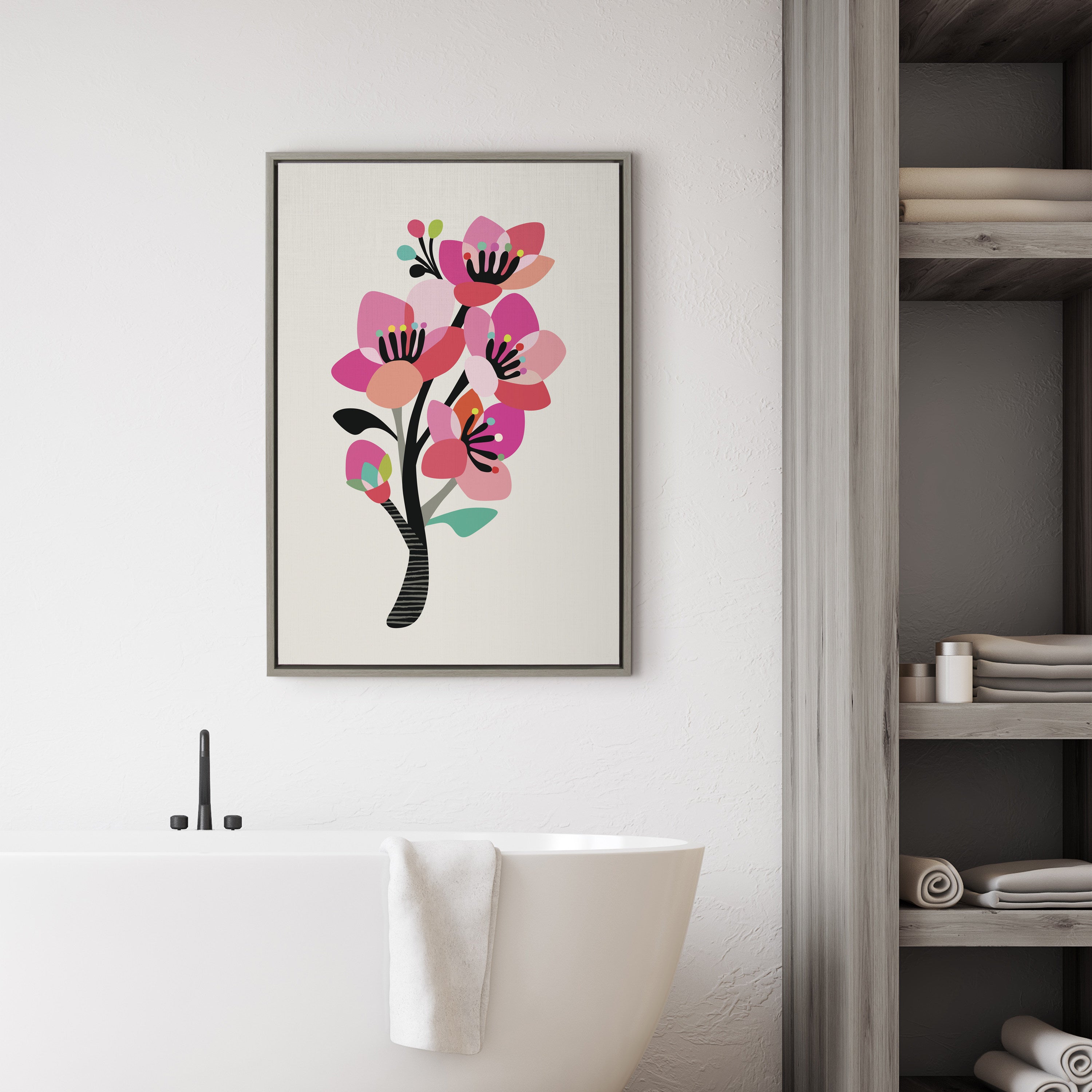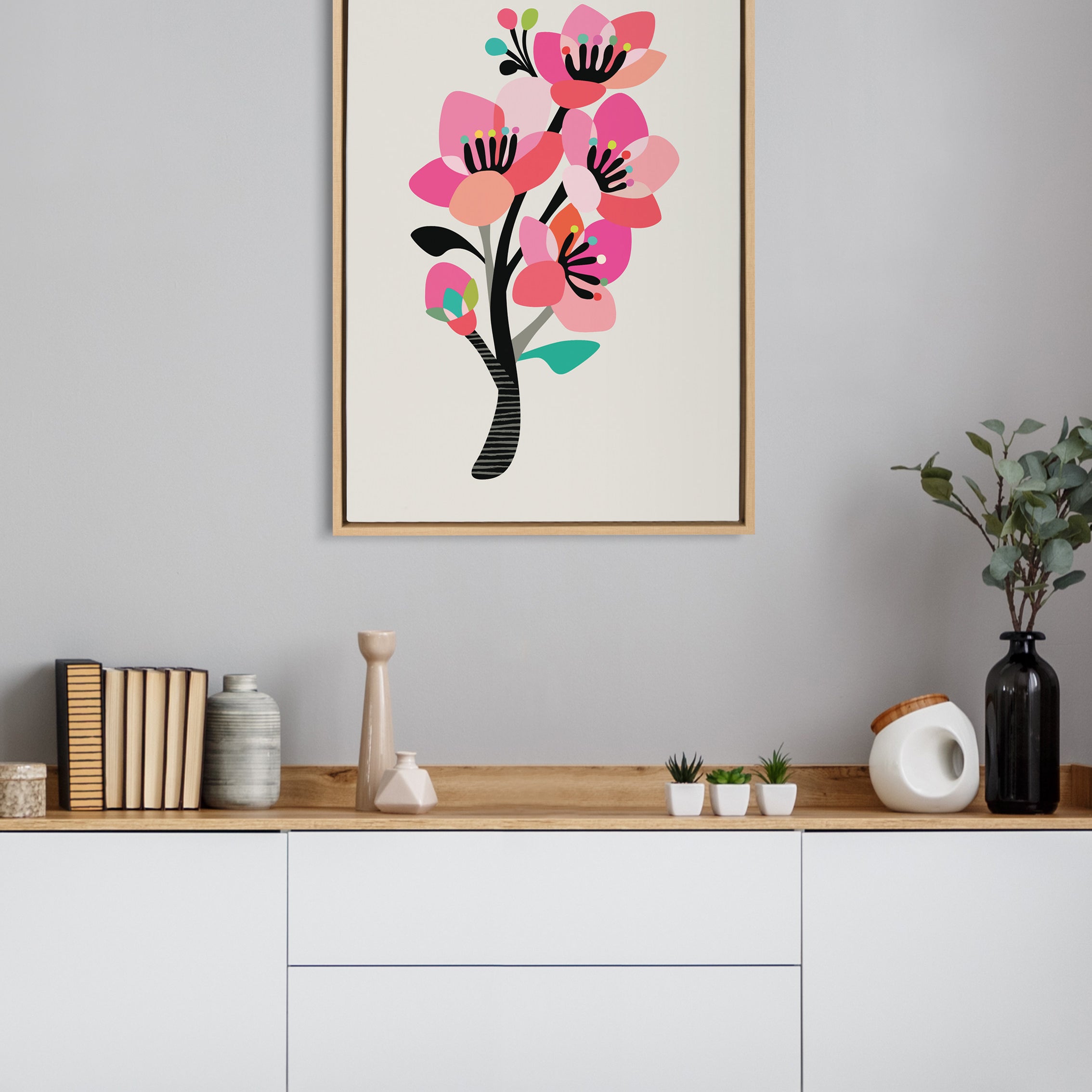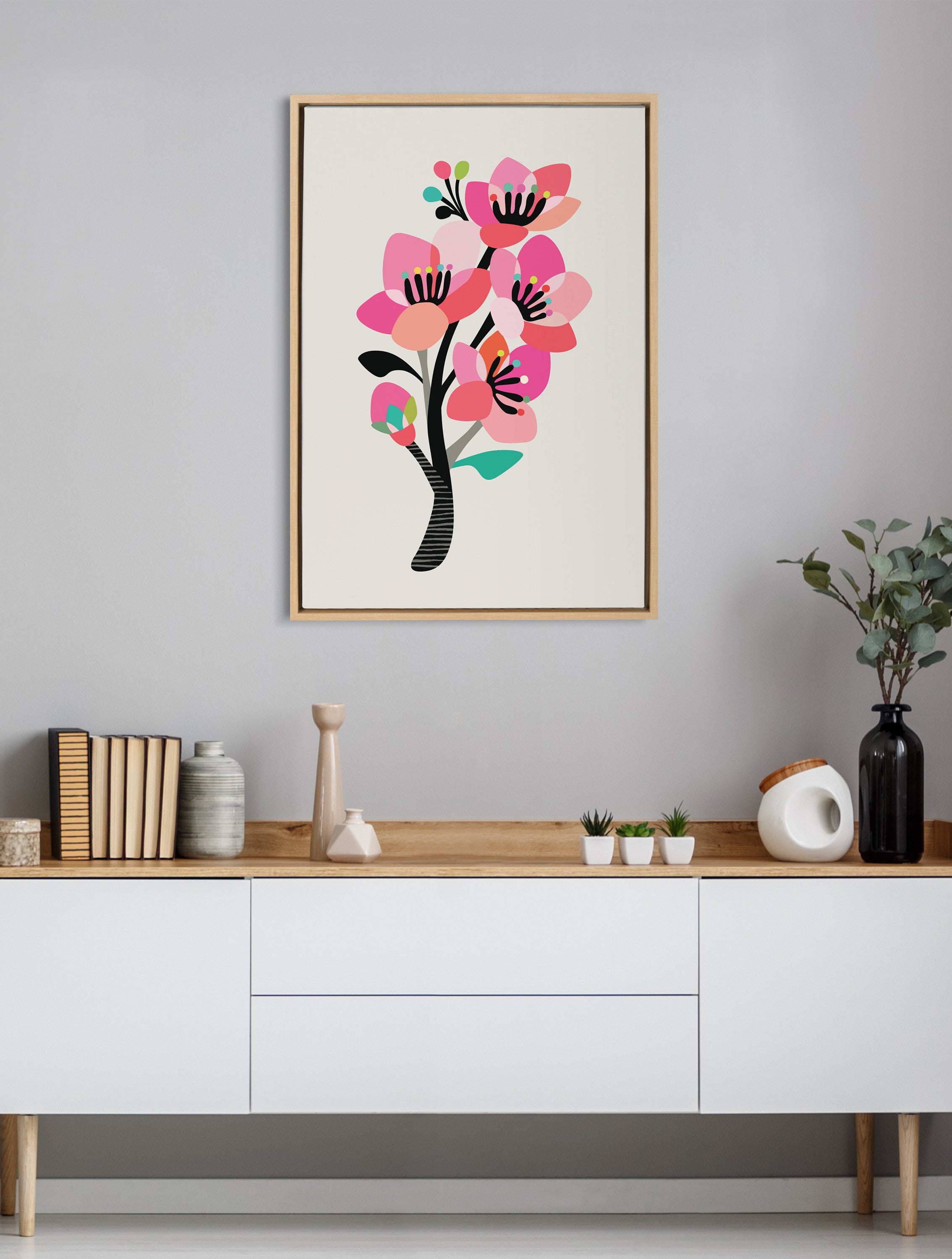 Sylvie Mid Century Modern Cherry Blossoms Framed Canvas by Rachel Lee of My Dream Wall