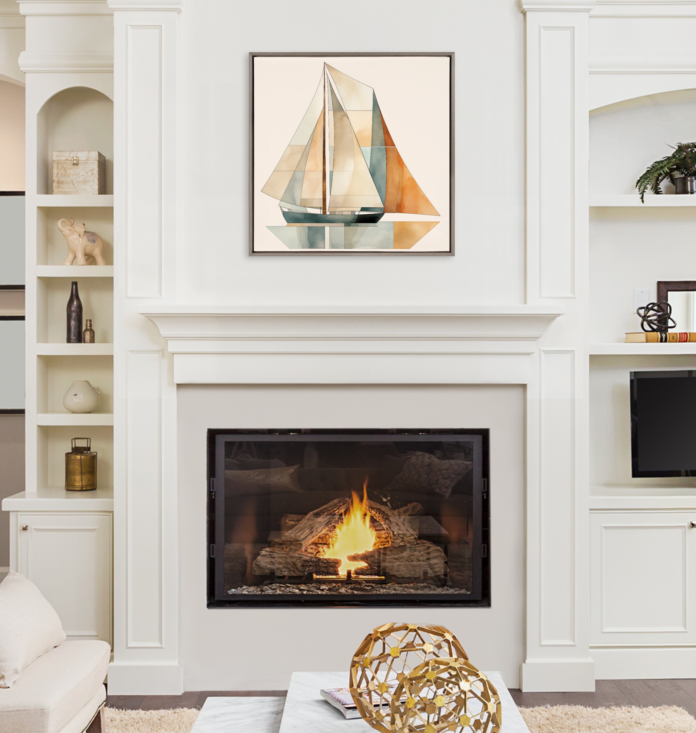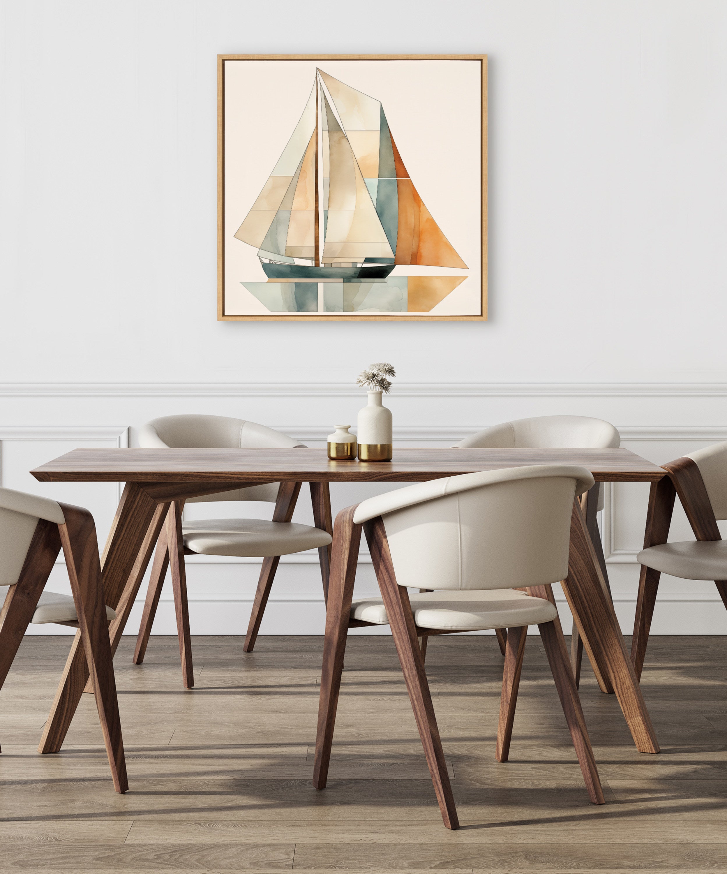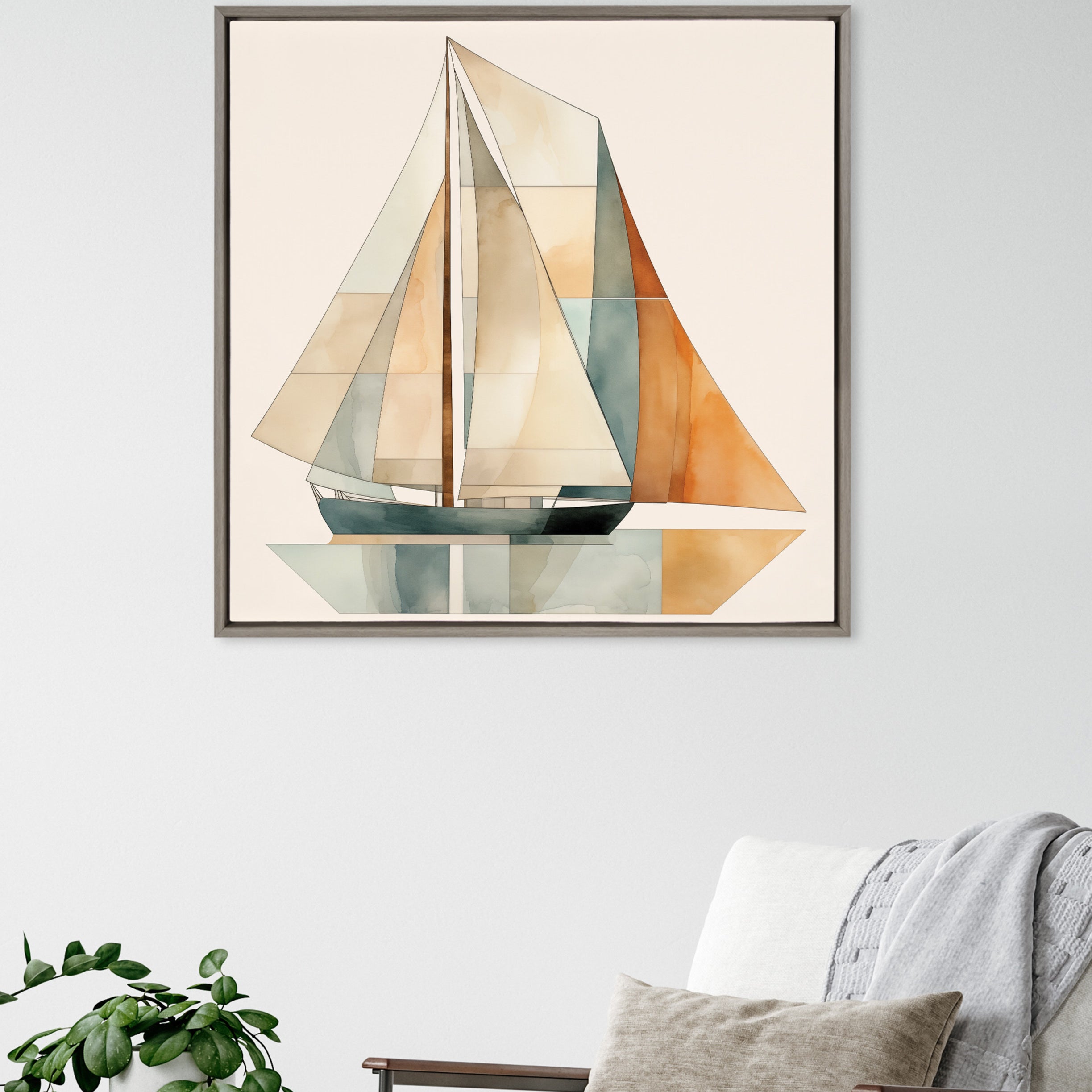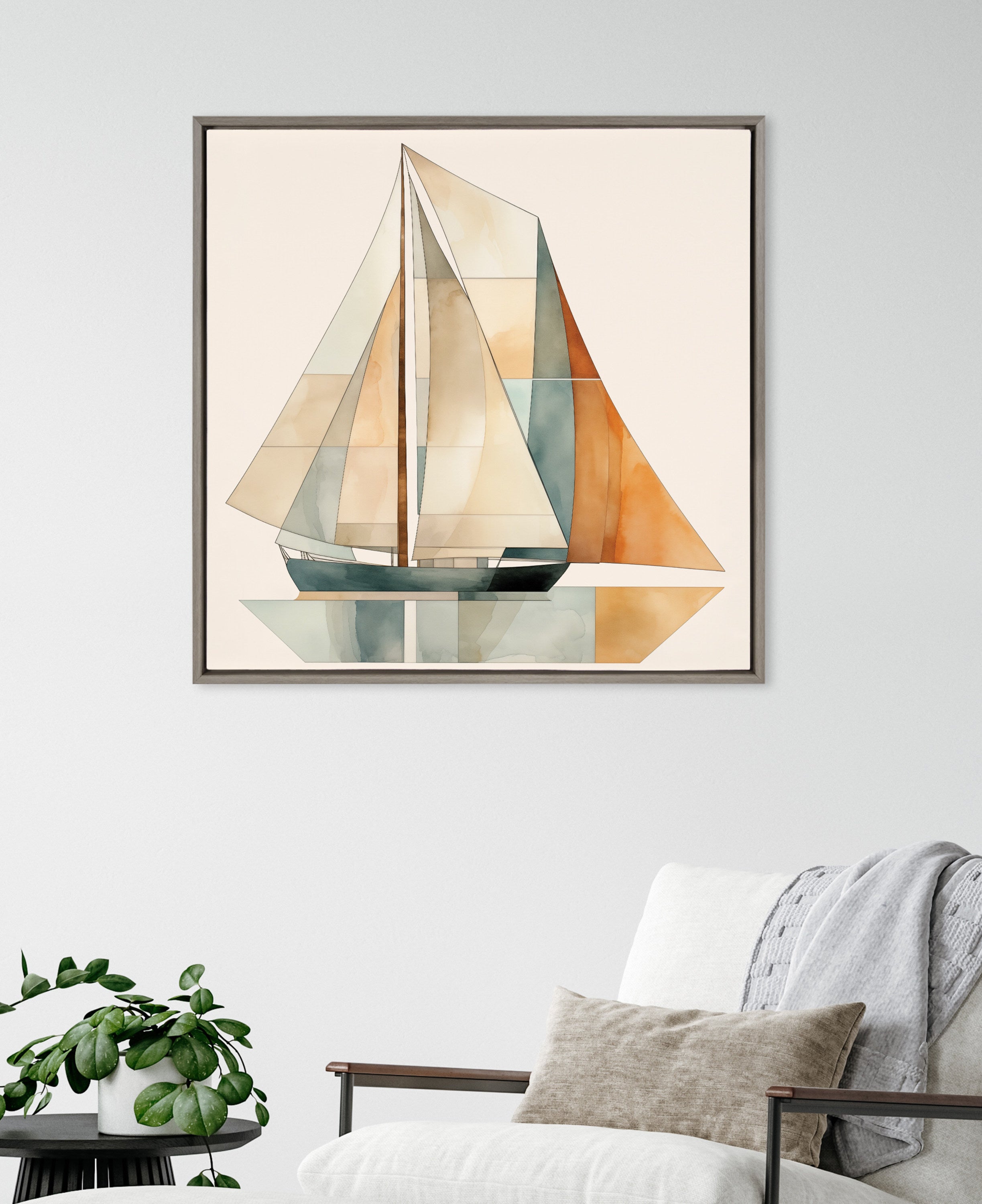 Set sail into a world of modern artistry with this geometric sailboat artwork, capturing the essence of colorful sailing adventures. Printed and framed in the USA in Waunakee, Wisconsin, this framed floating canvas art will be a pleasure to look at every day in your living room, bedroom, office, or any room in the home. This art also makes an excellent gift for birthdays, holidays, or house-warming parties. Printed on gallery-wrapped canvas and framed with a lightweight polystyrene frame, this wall art is easy to display on the wall.