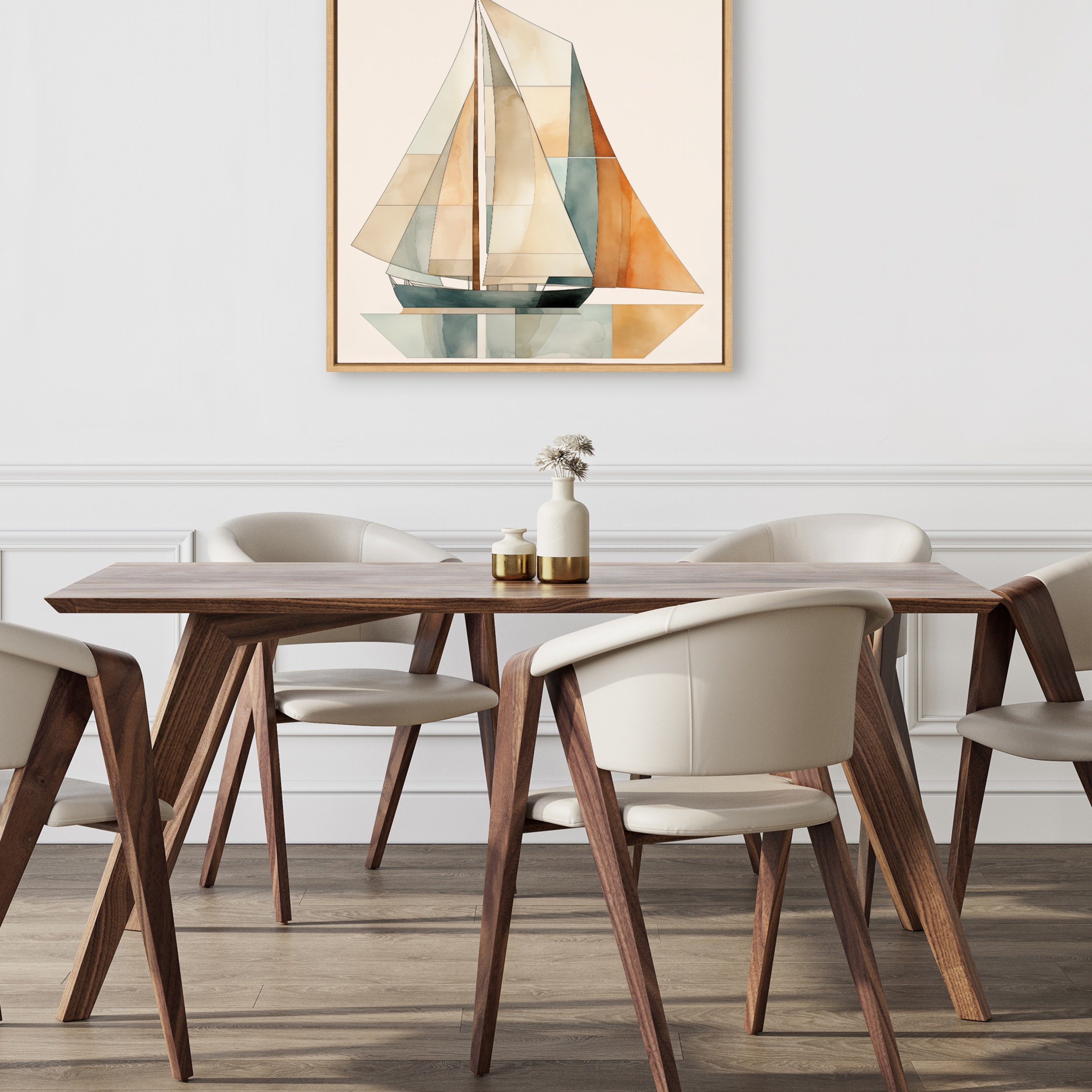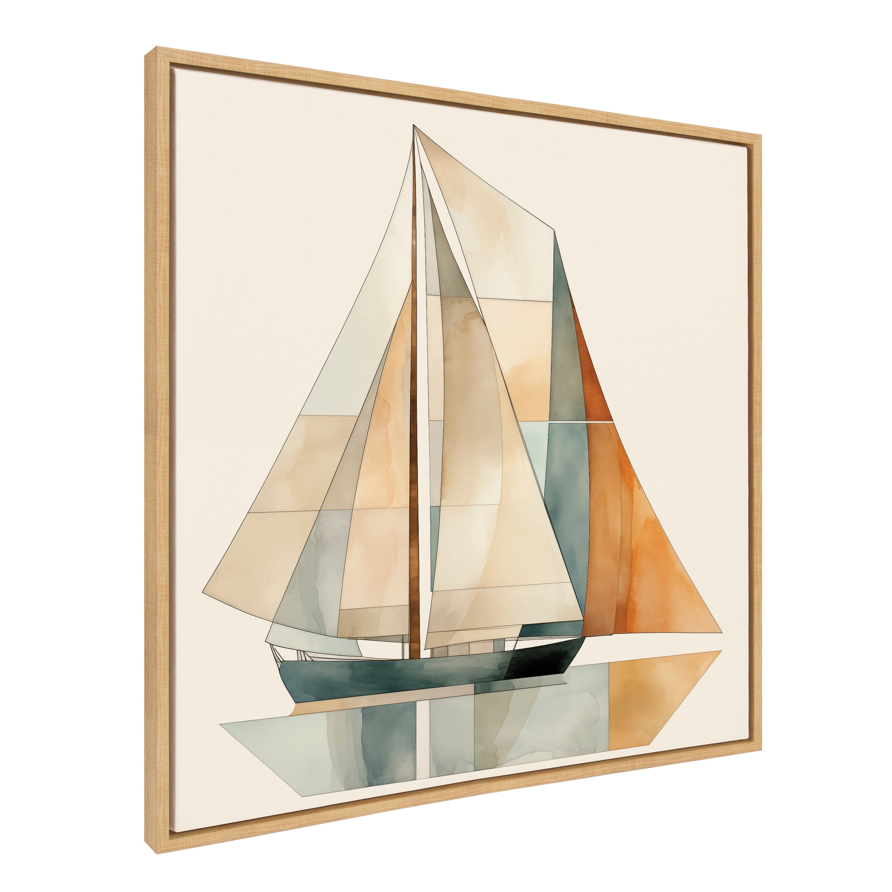 Home/All Art/Sylvie Mid Century Modern Geometric Sailboat Framed Canvas by The Creative Bunch Studio