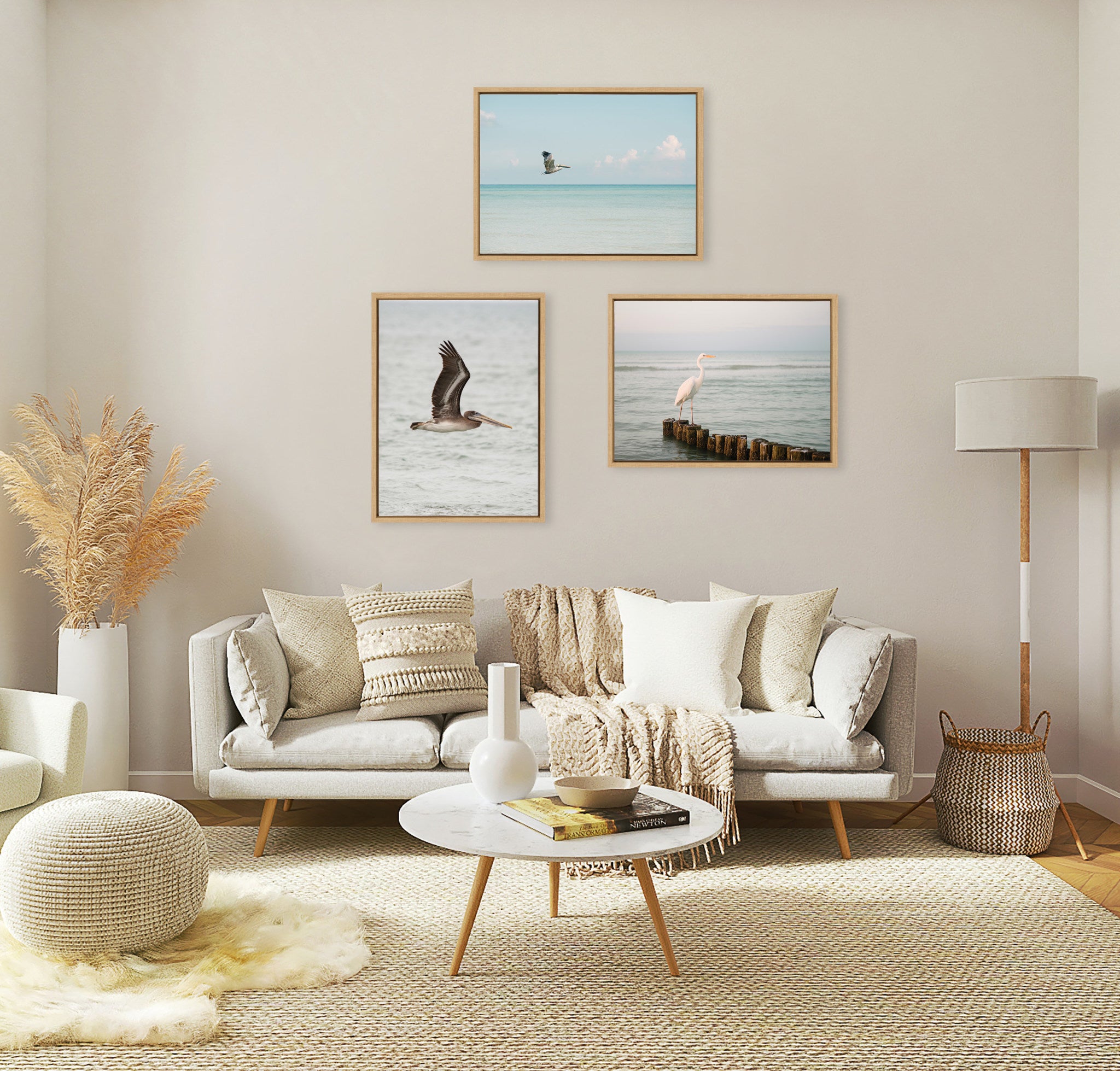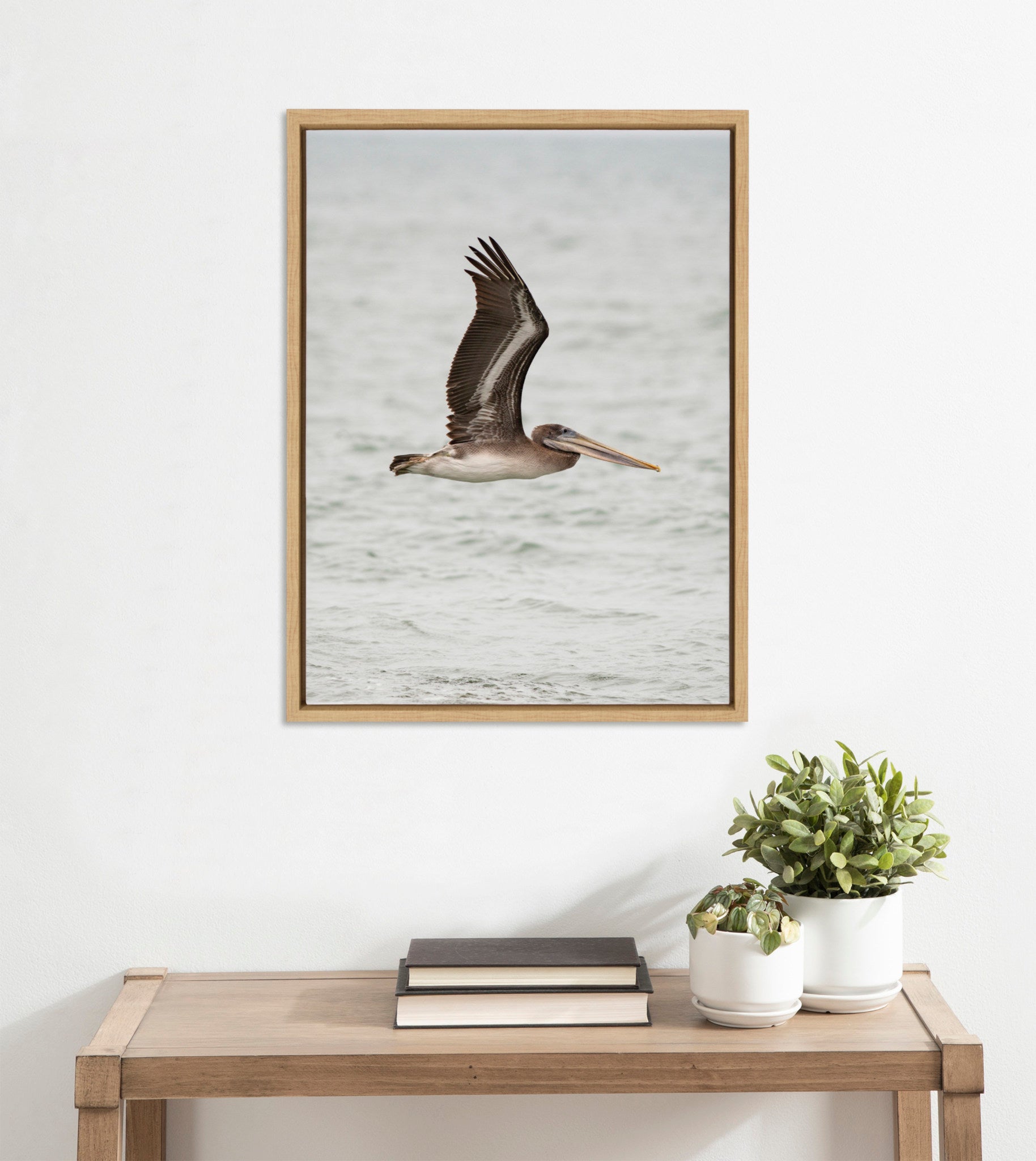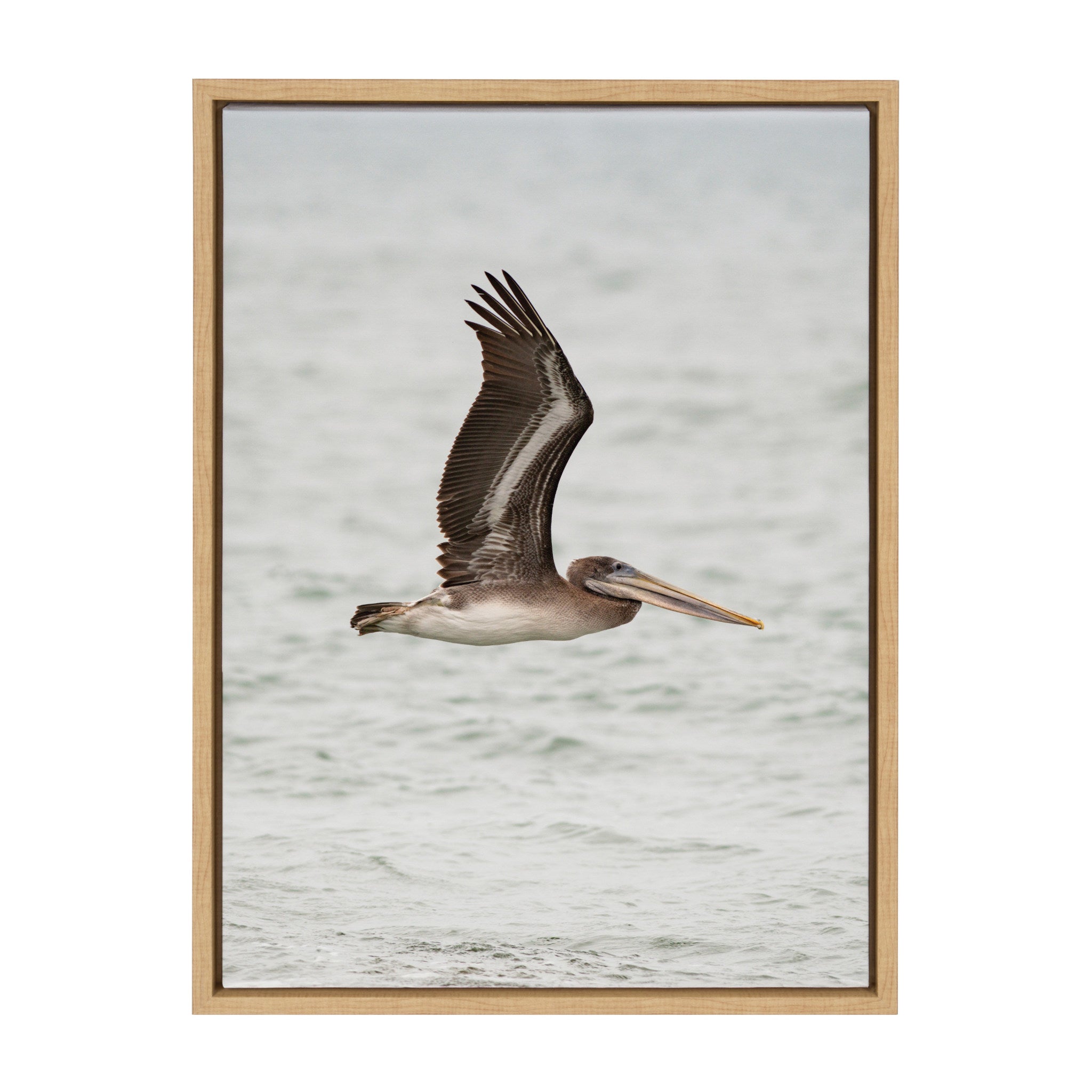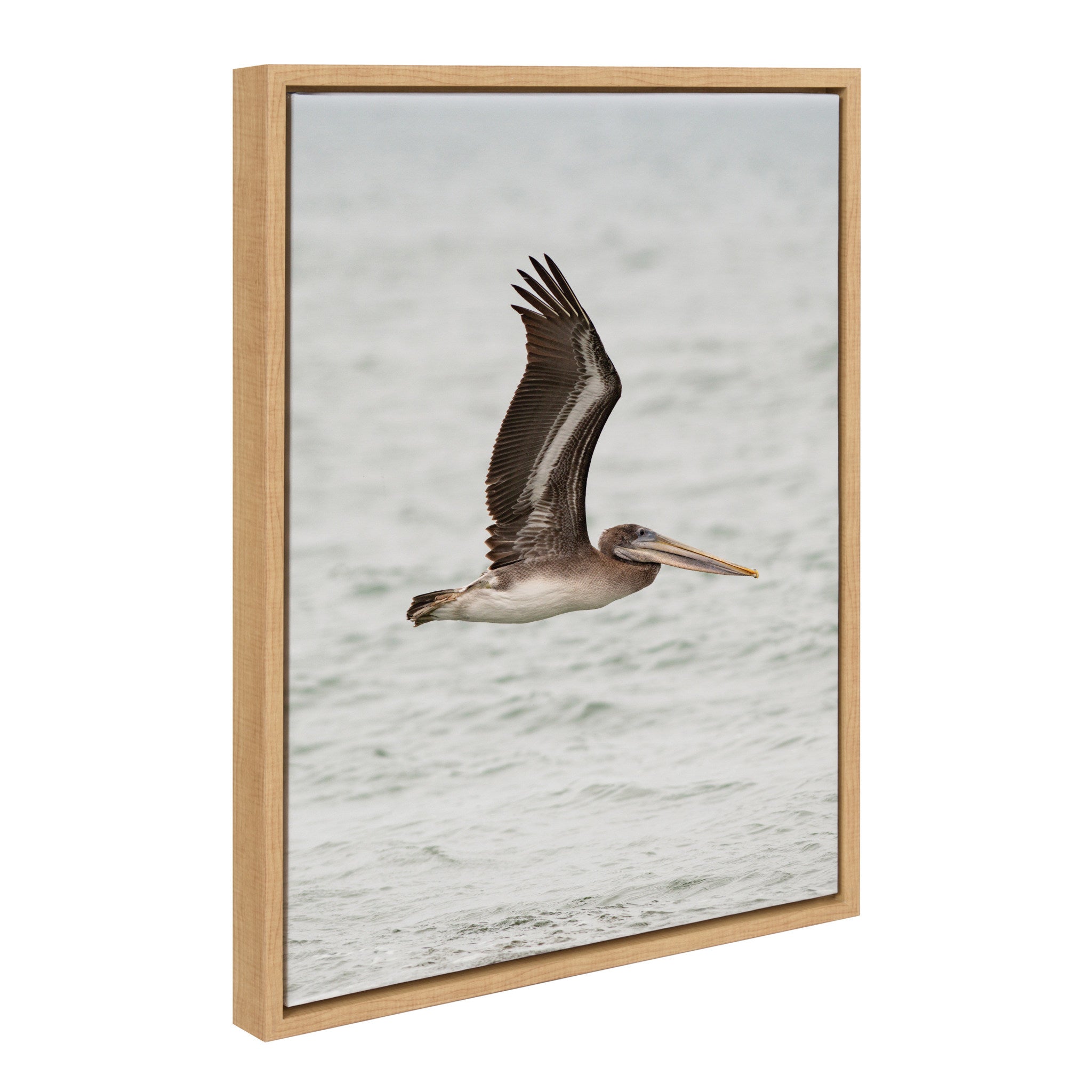 This framed canvas wall art by Crystal Lynn Collins features a soft and serene depiction of a pelican in a coastal beach bird ocean scene, adding a touch of tranquility to your wall decor. Printed and framed in the USA in Waunakee, Wisconsin, this framed floating canvas art will be a pleasure to look at every day in your living room, bedroom, office, or any room in the home. This art print also makes an excellent gift for birthdays, holidays, or house-warming parties. Printed on gallery-wrapped canvas and framed with a lightweight polystyrene frame, this wall art is easy to display on the wall.