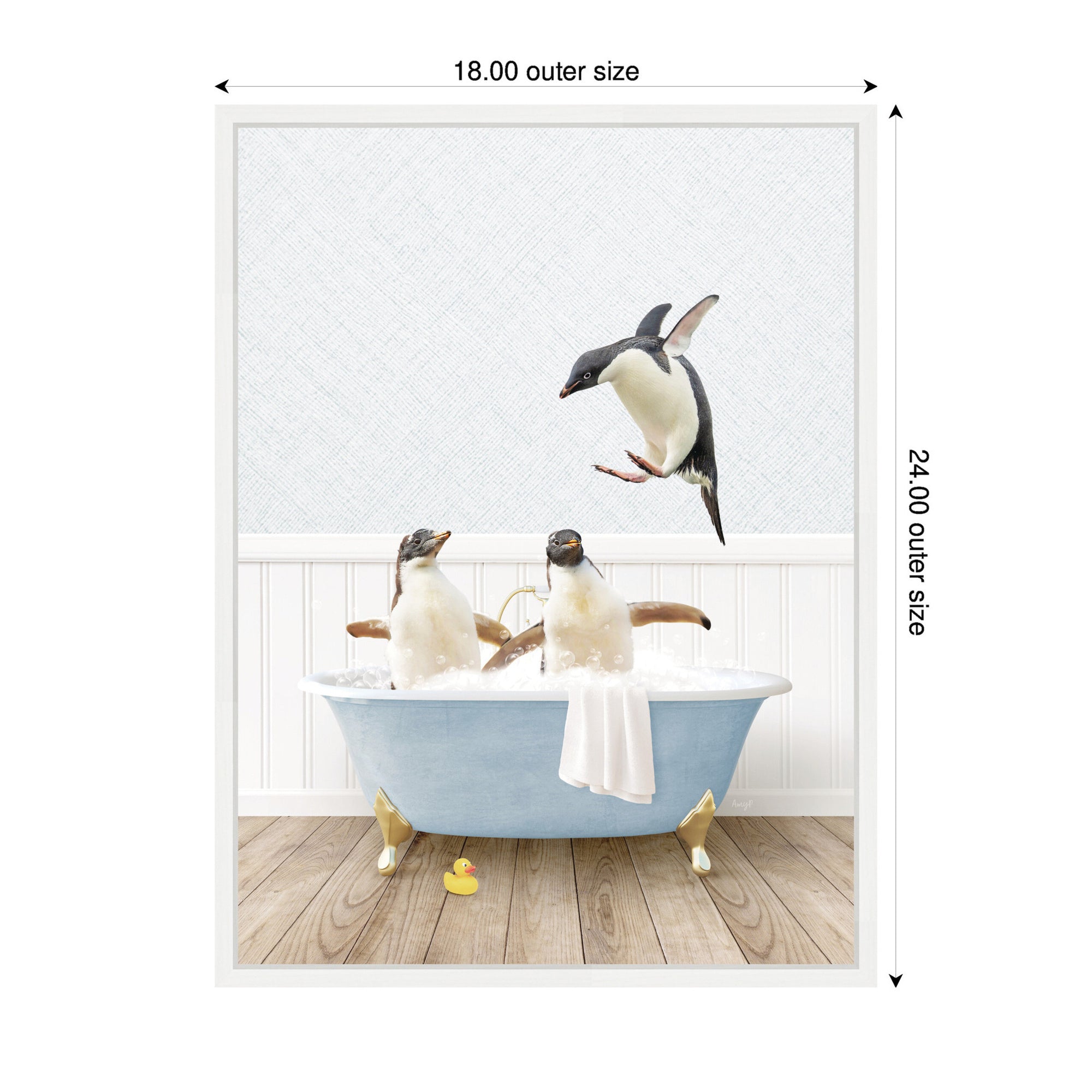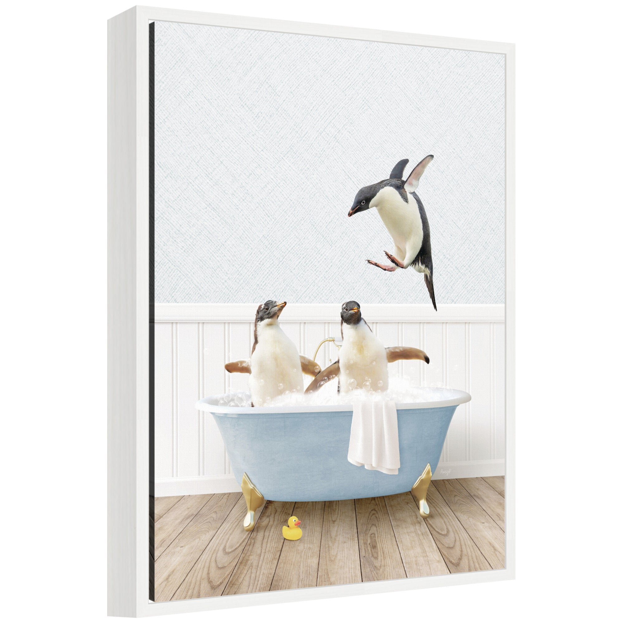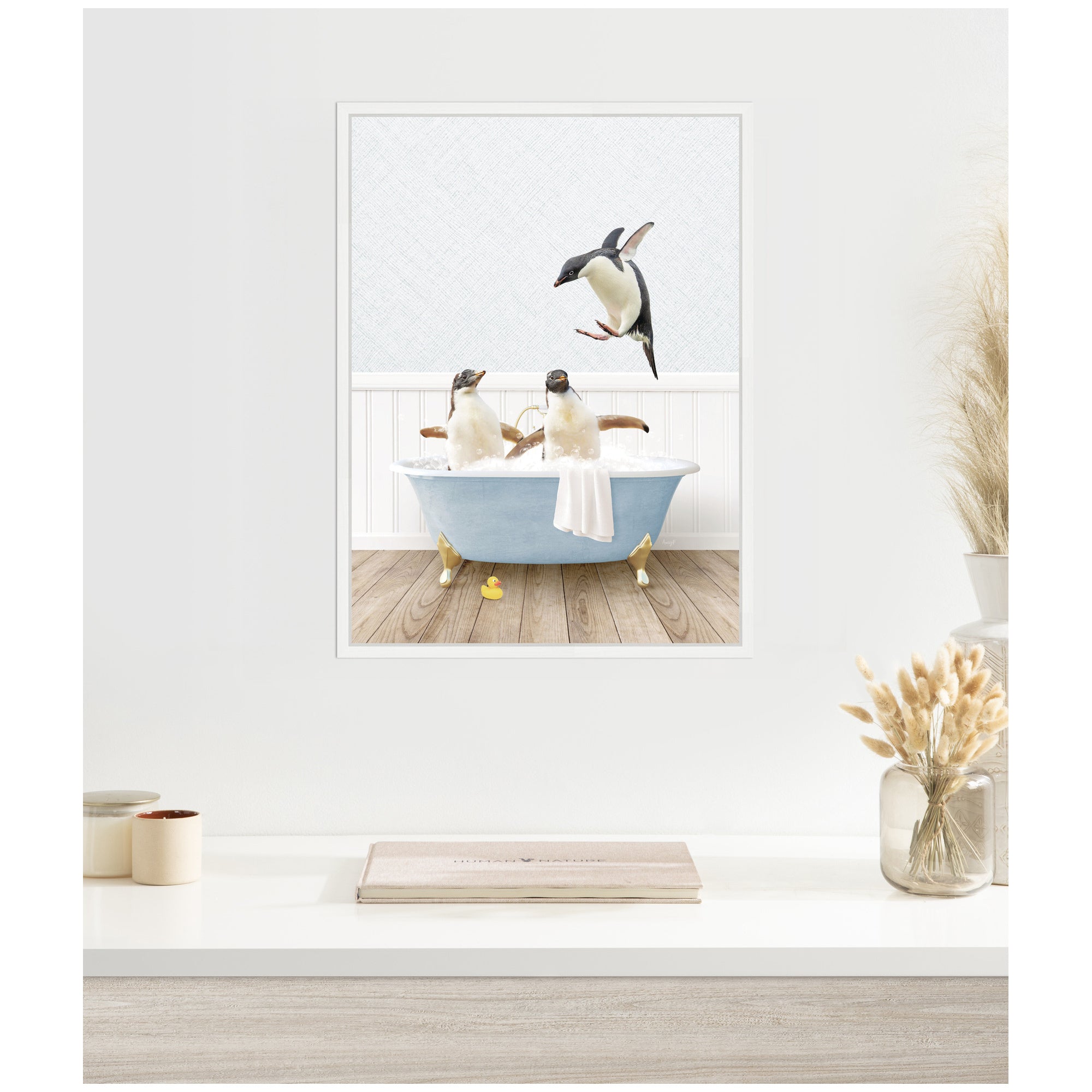 Sylvie Penguins in Cottage Blue Bathtub Framed Canvas by Amy Peterson