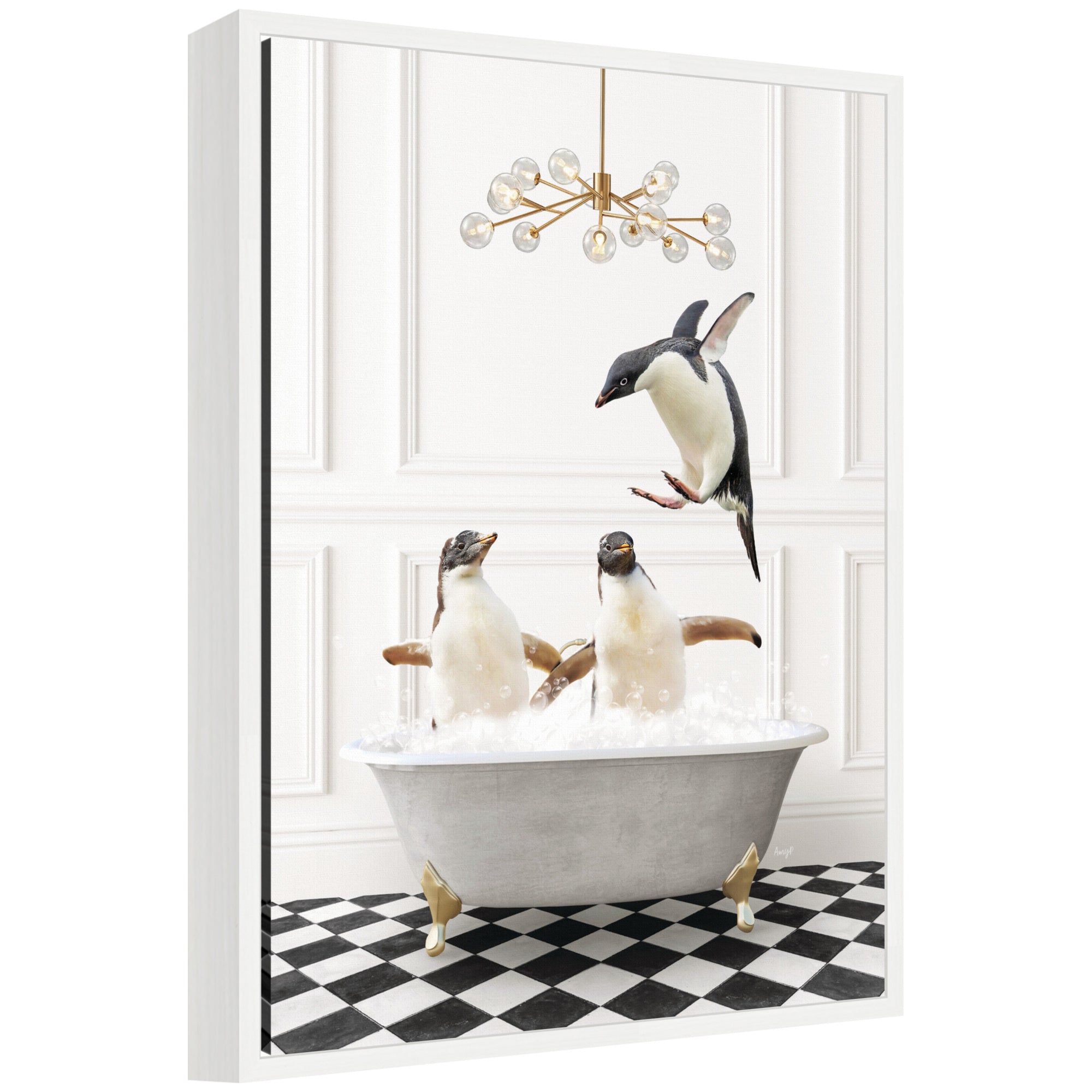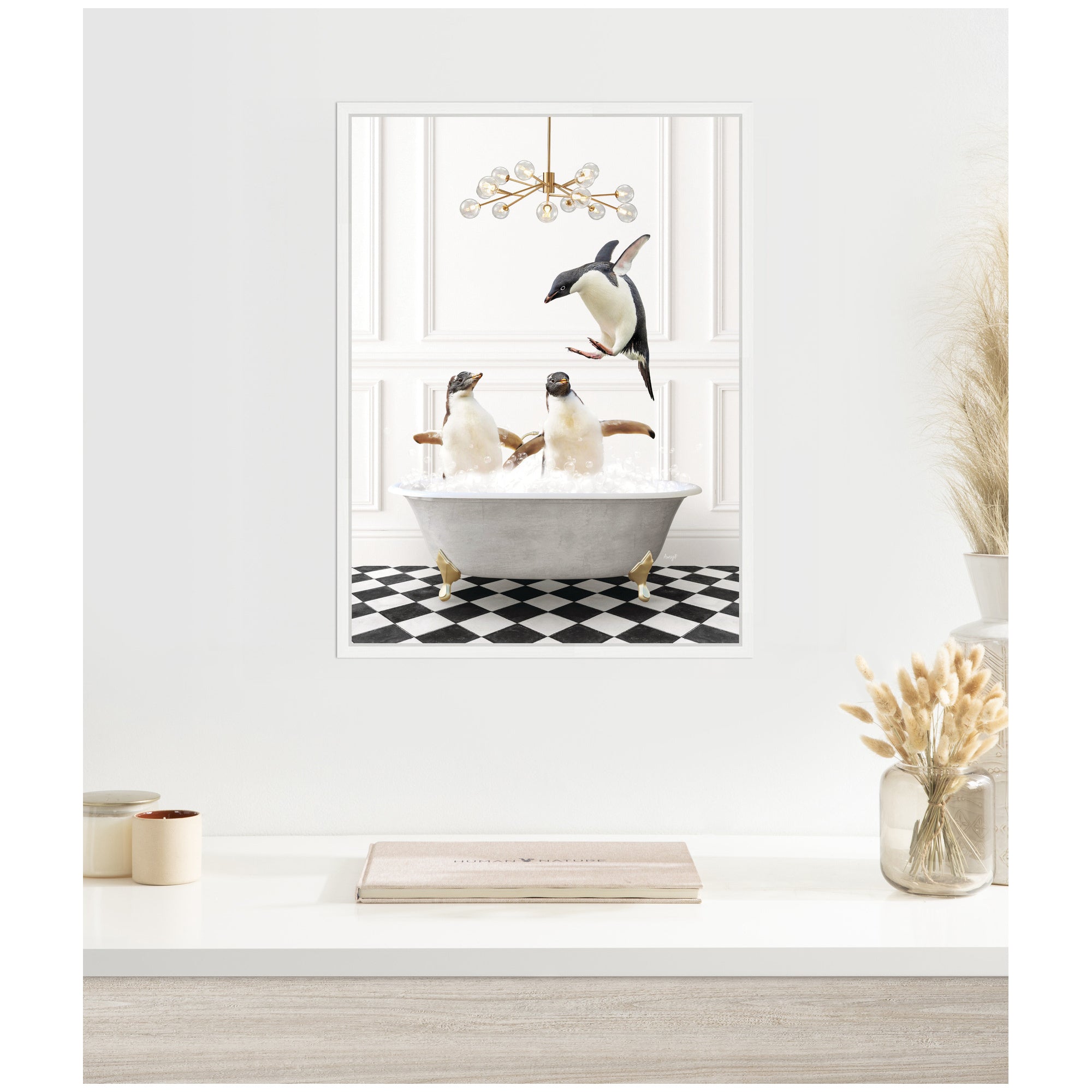 Sylvie Penguins in Lux Bathtub Framed Canvas by Amy Peterson