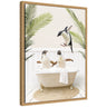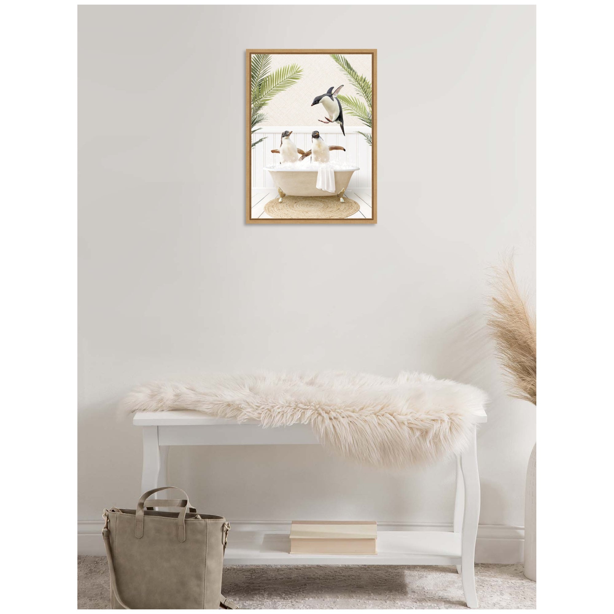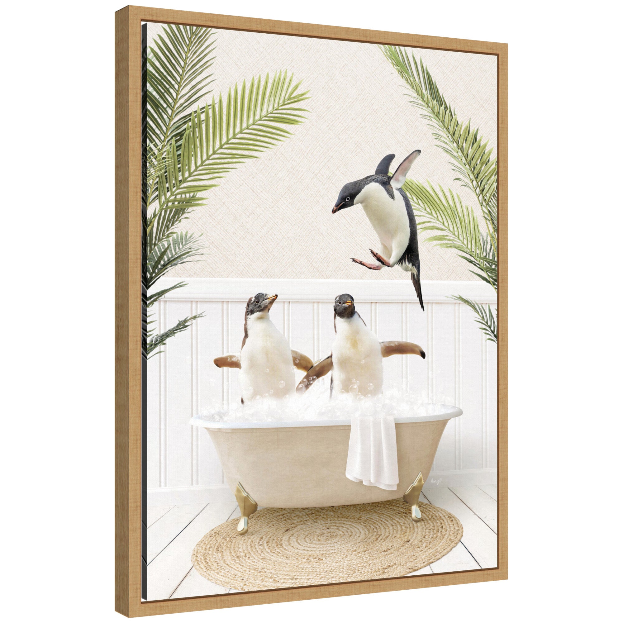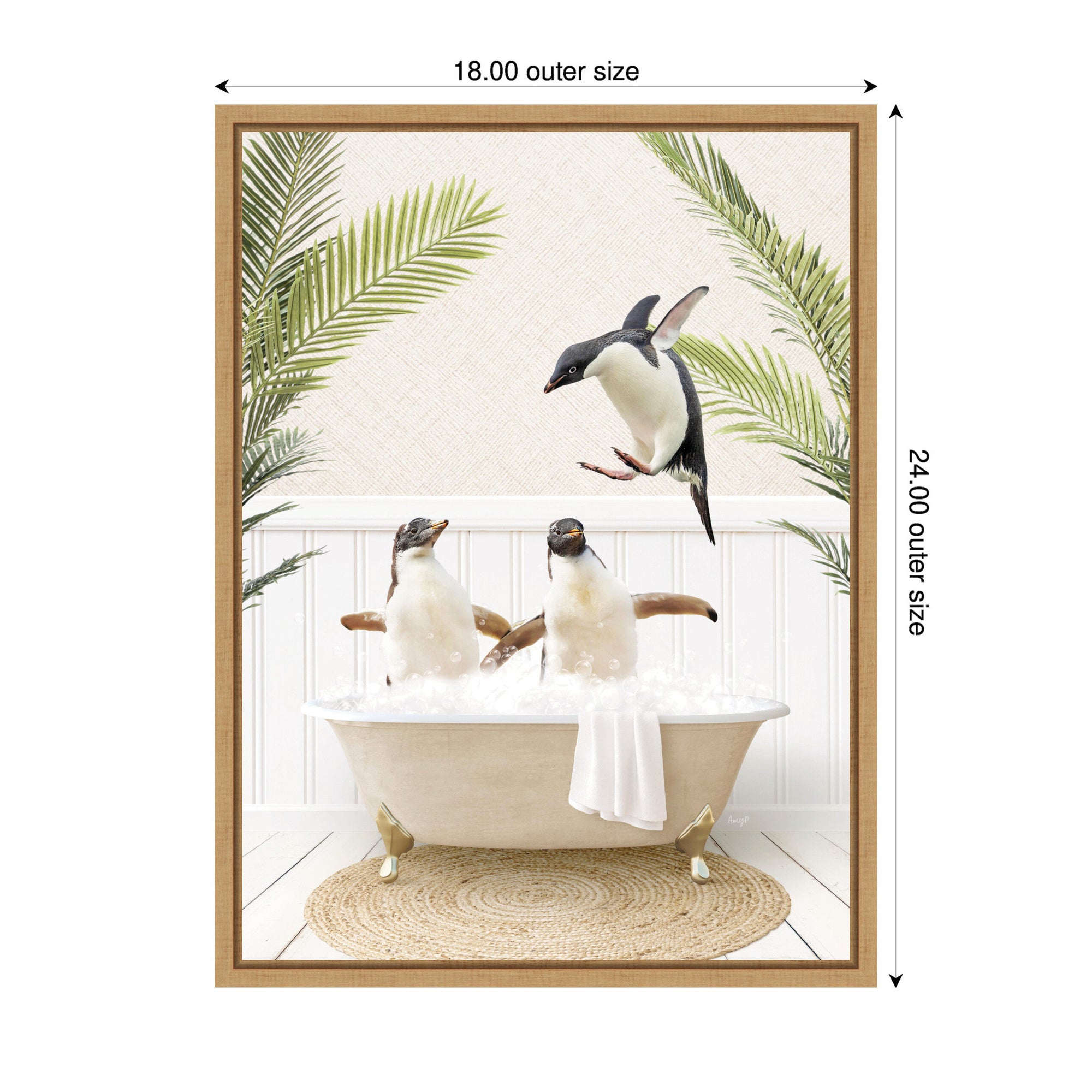 Sylvie Penguins in Palm Bathtub Framed Canvas by Amy Peterson