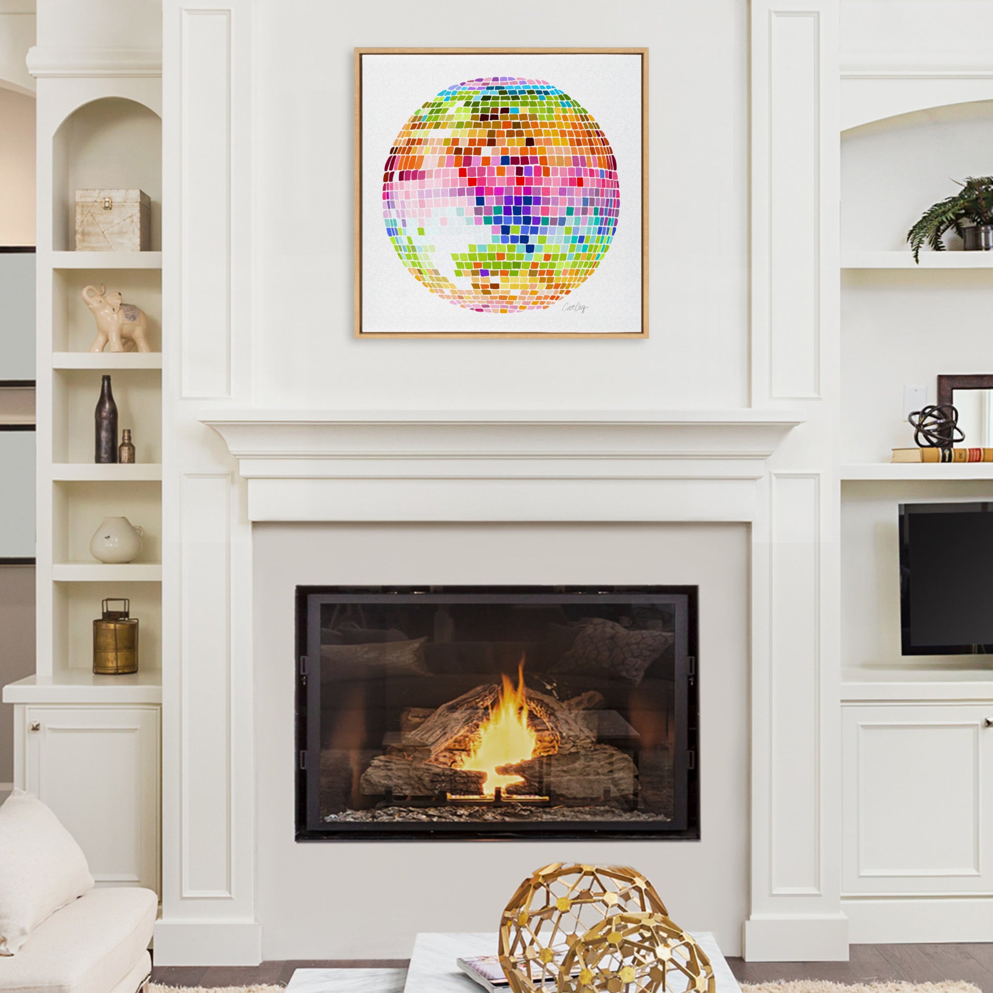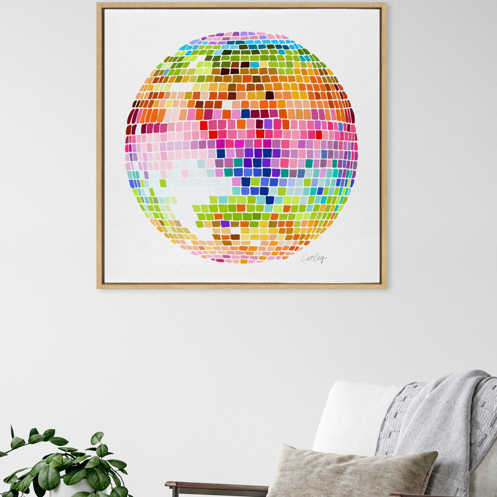Sylvie Rainbow Disco Ball Framed Canvas by Cat Coquillette