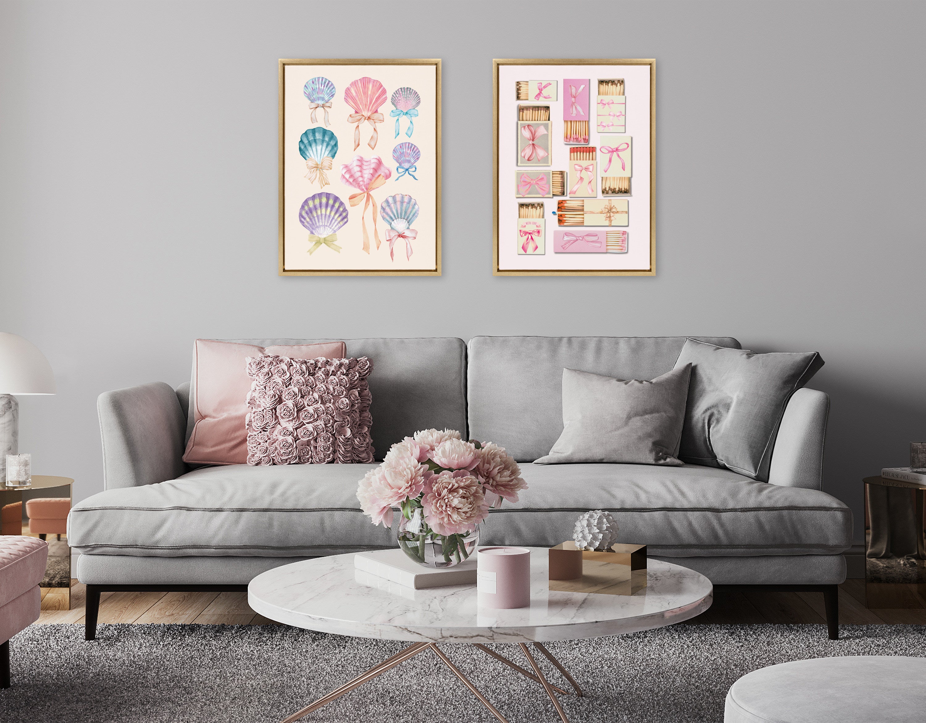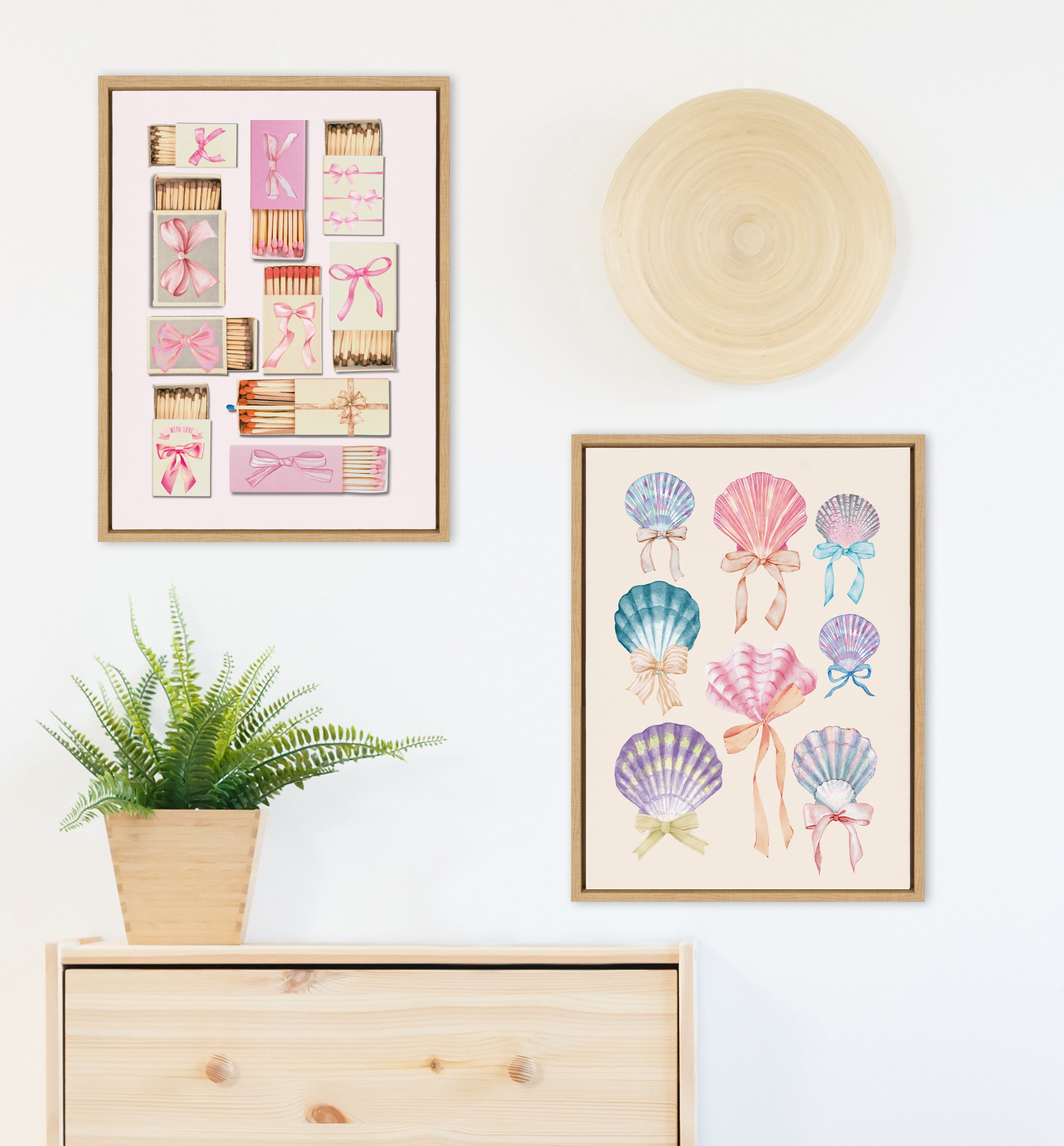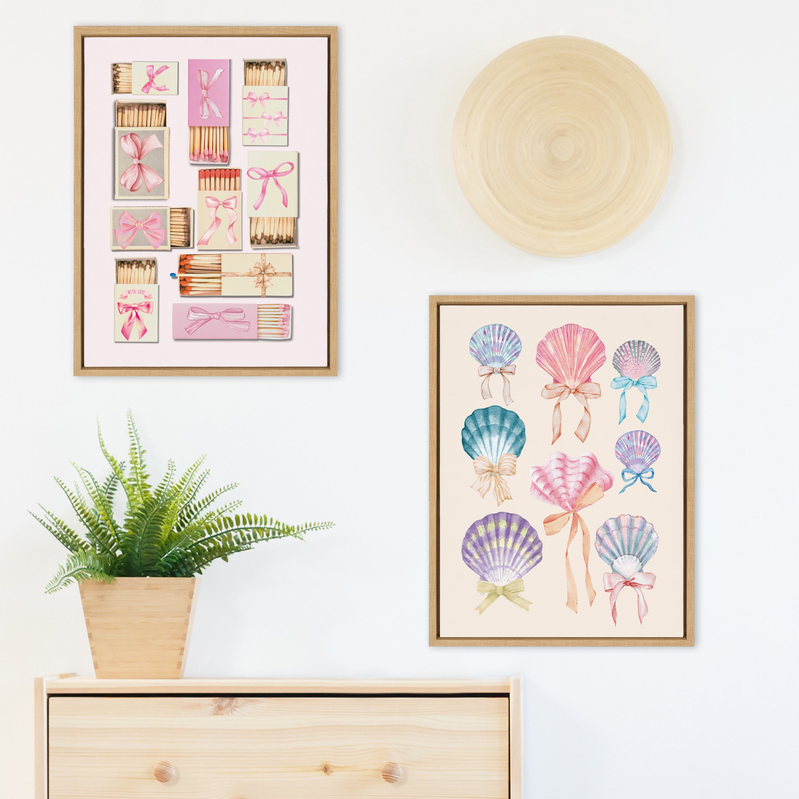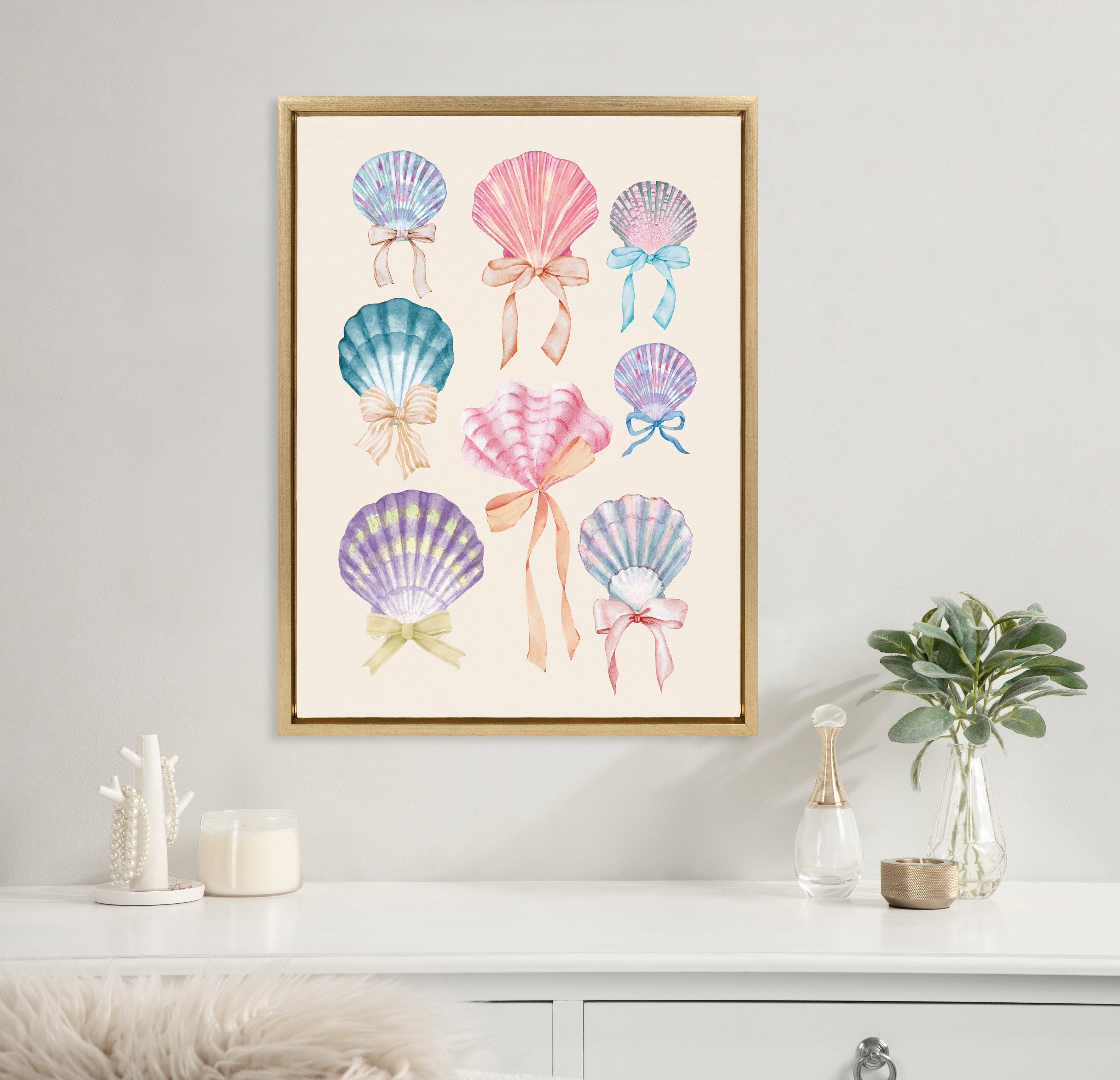 This artwork by Honey Island Studio features seashells and bows, blending coastal and playful elements. Printed and framed in the USA in Waunakee, Wisconsin, this framed floating canvas art will be a pleasure to look at every day in your living room, bedroom, office, or any room in the home. This art also makes an excellent gift for birthdays, holidays, or house-warming parties. Printed on gallery-wrapped canvas and framed with a lightweight polystyrene frame, this wall art is easy to display on the wall.
