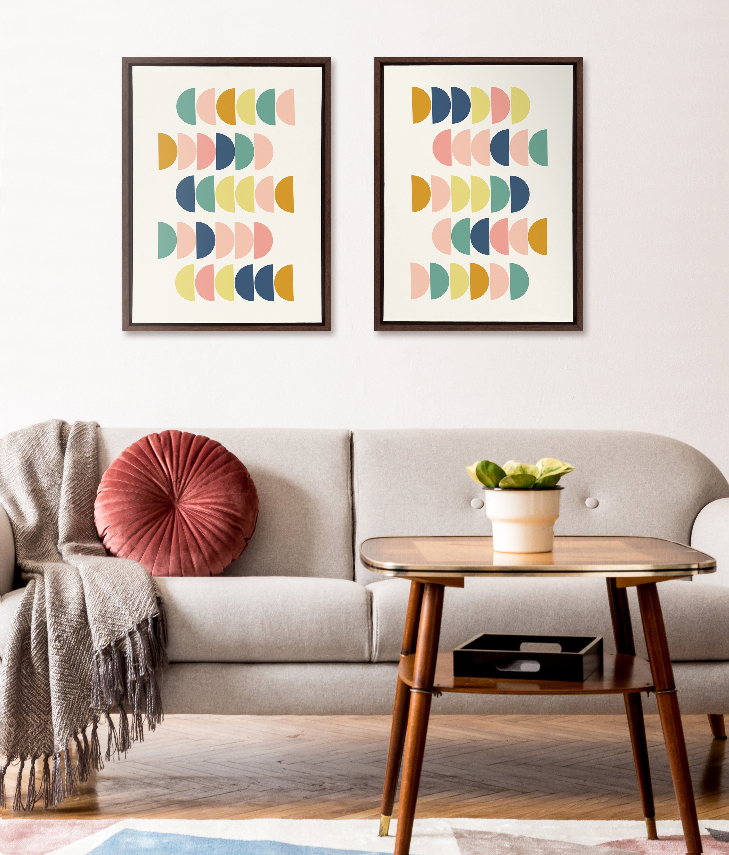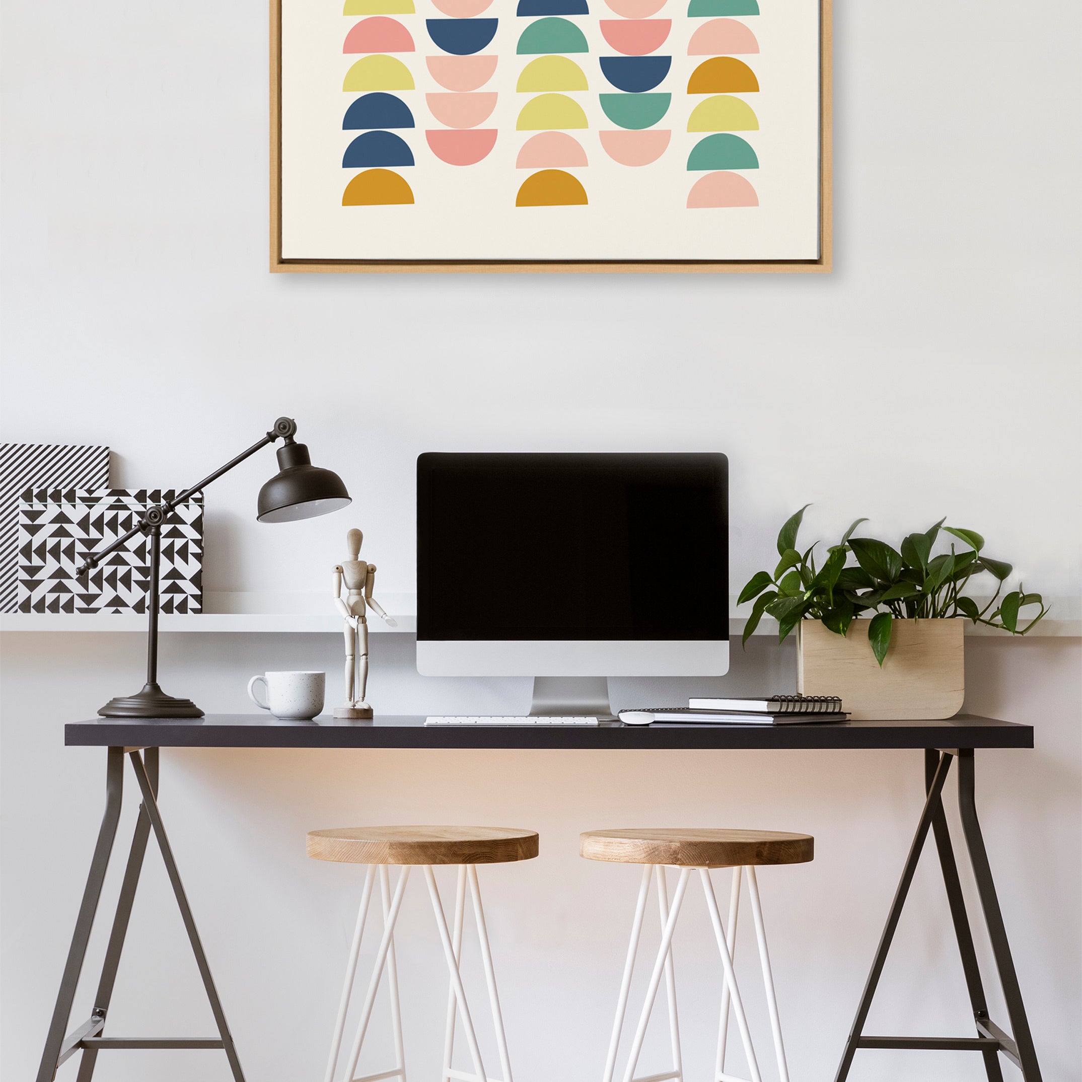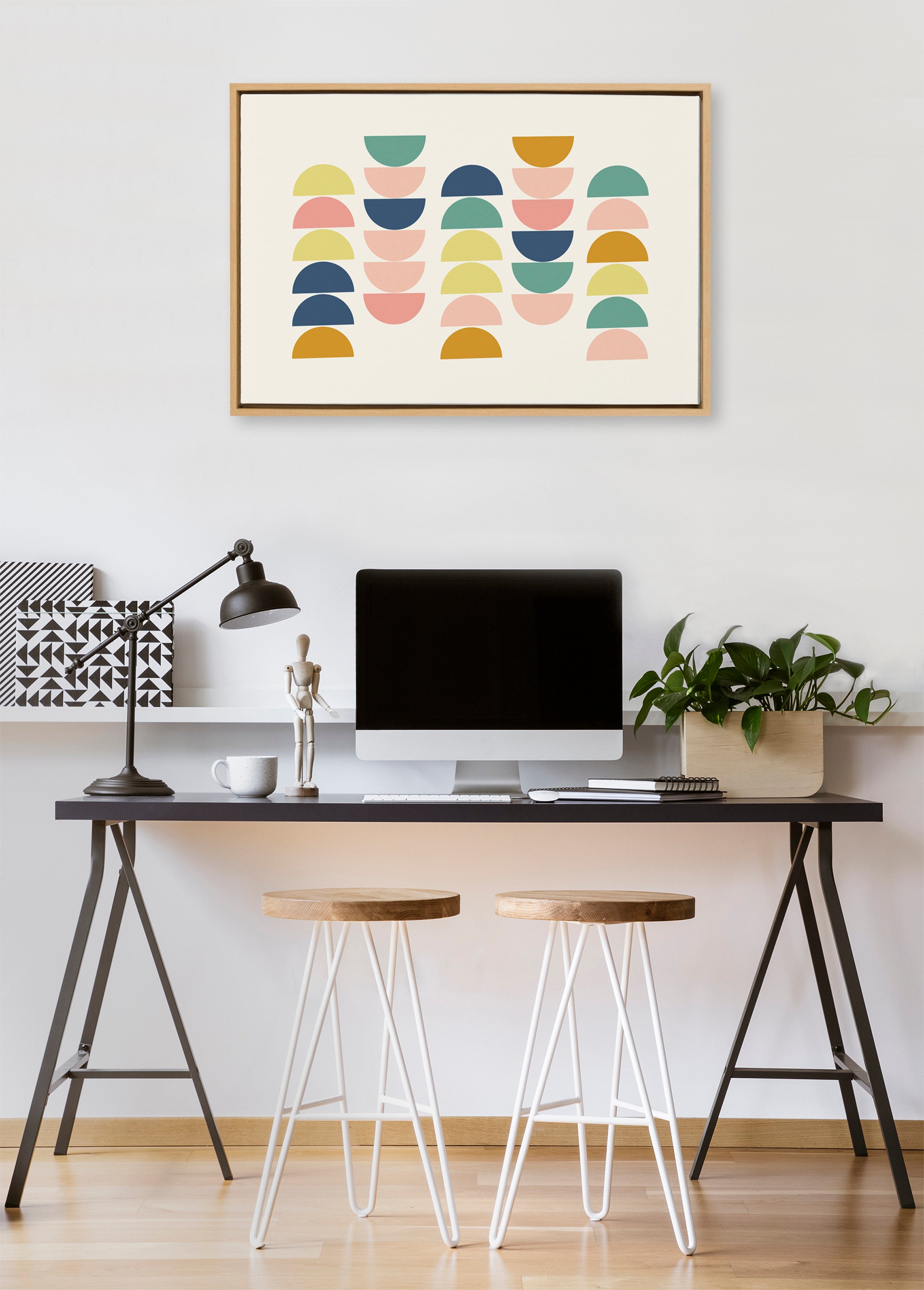 Sylvie Simple Shapes in Soft Colors Framed Canvas by Apricot and Birch