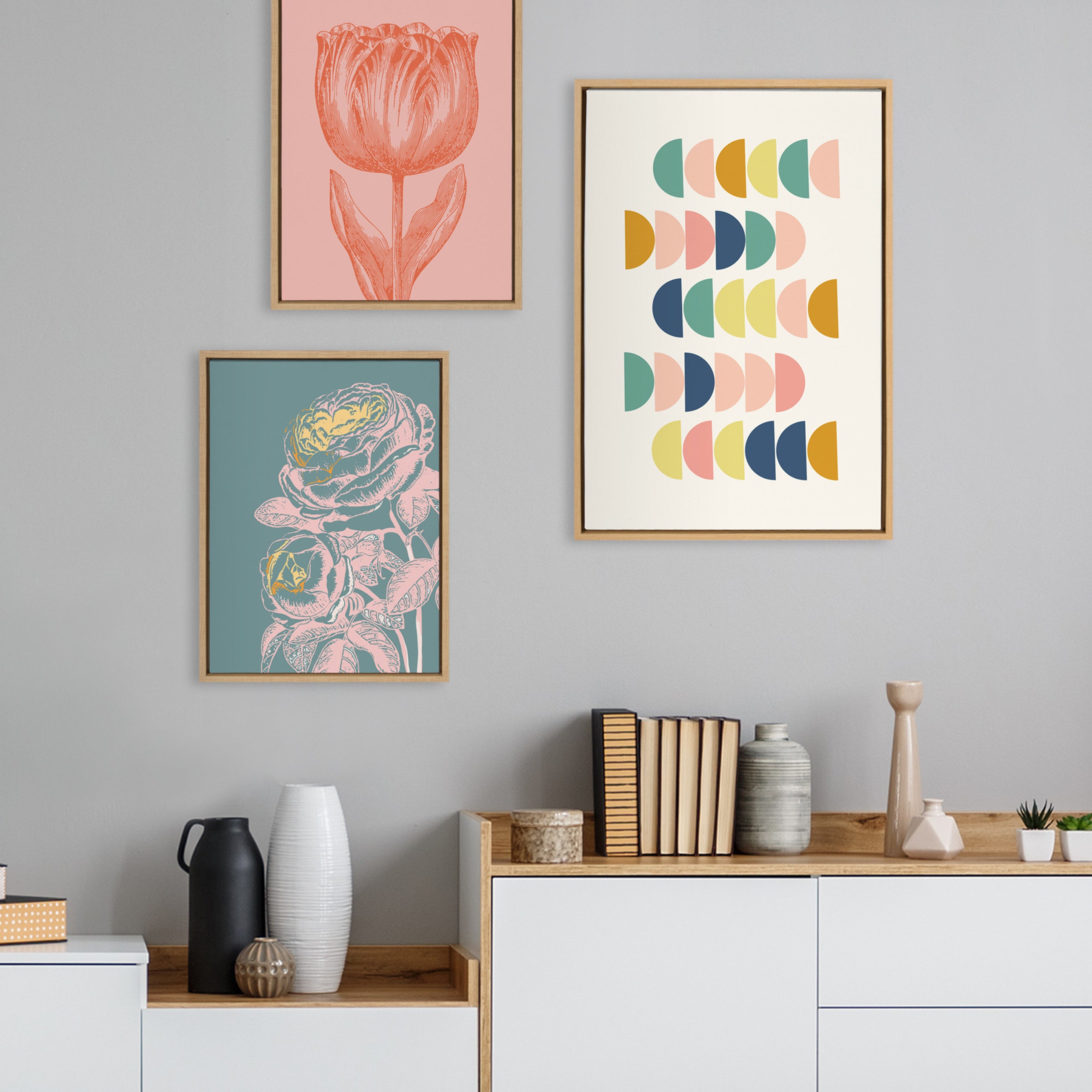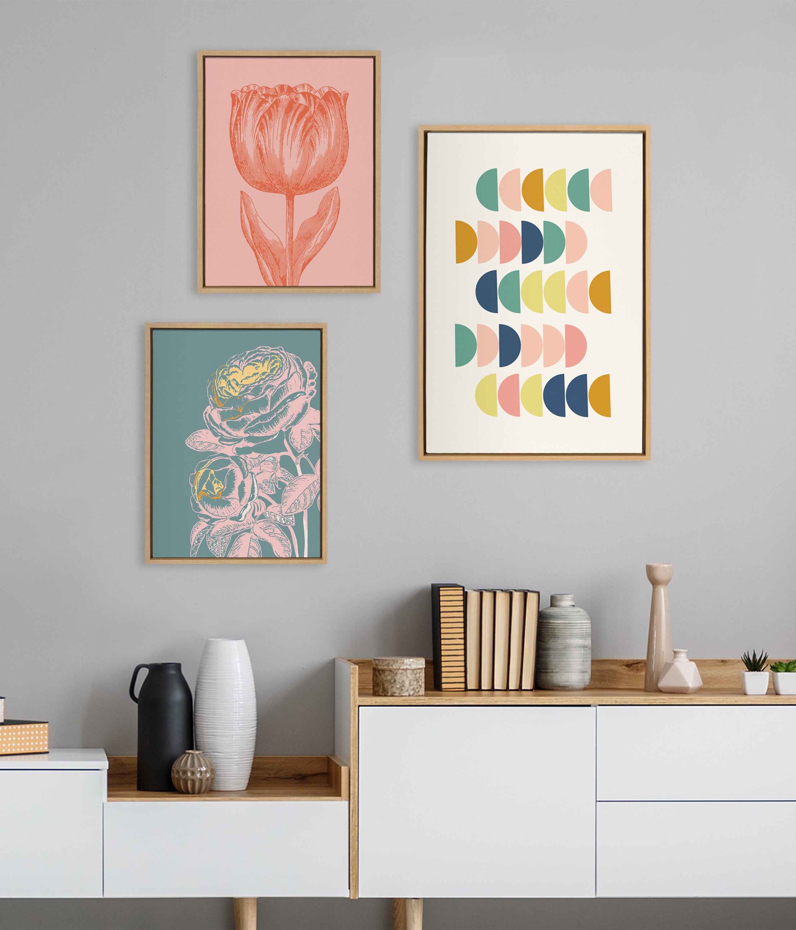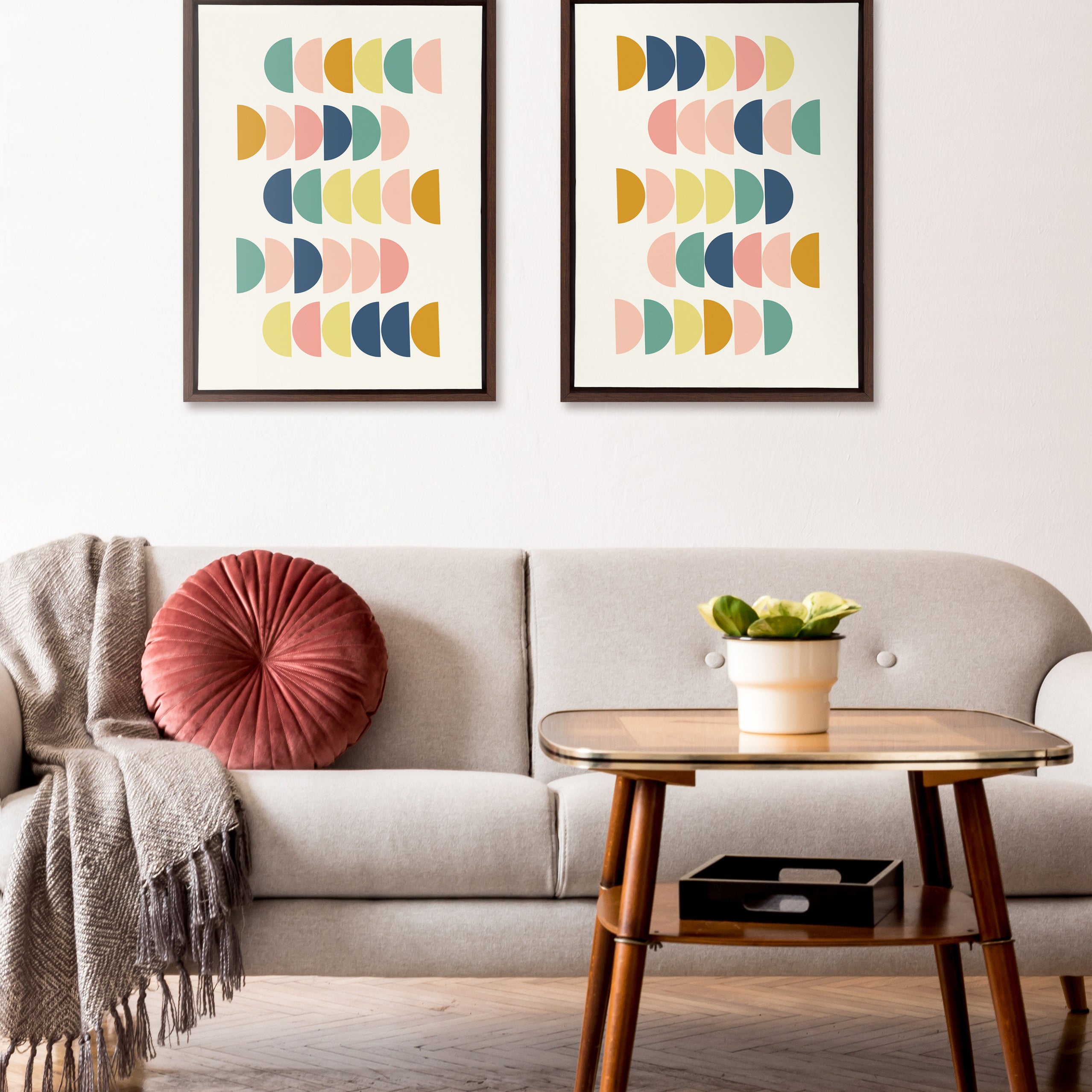 Sylvie Simple Shapes in Soft Colors Framed Canvas by Apricot and Birch