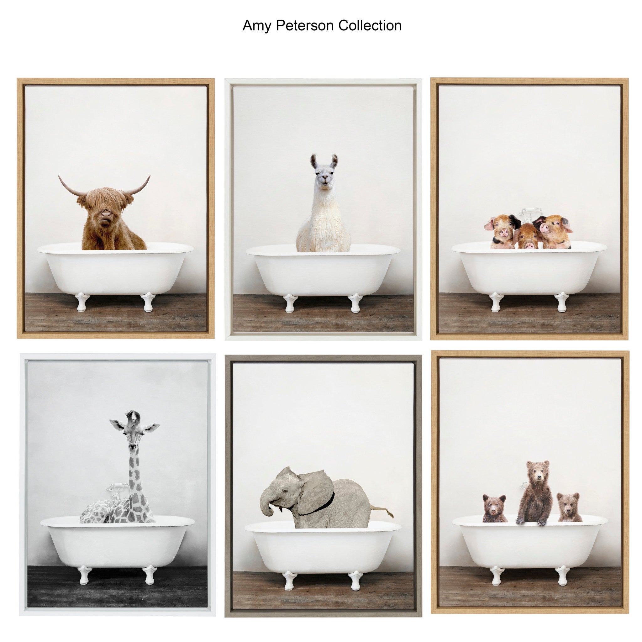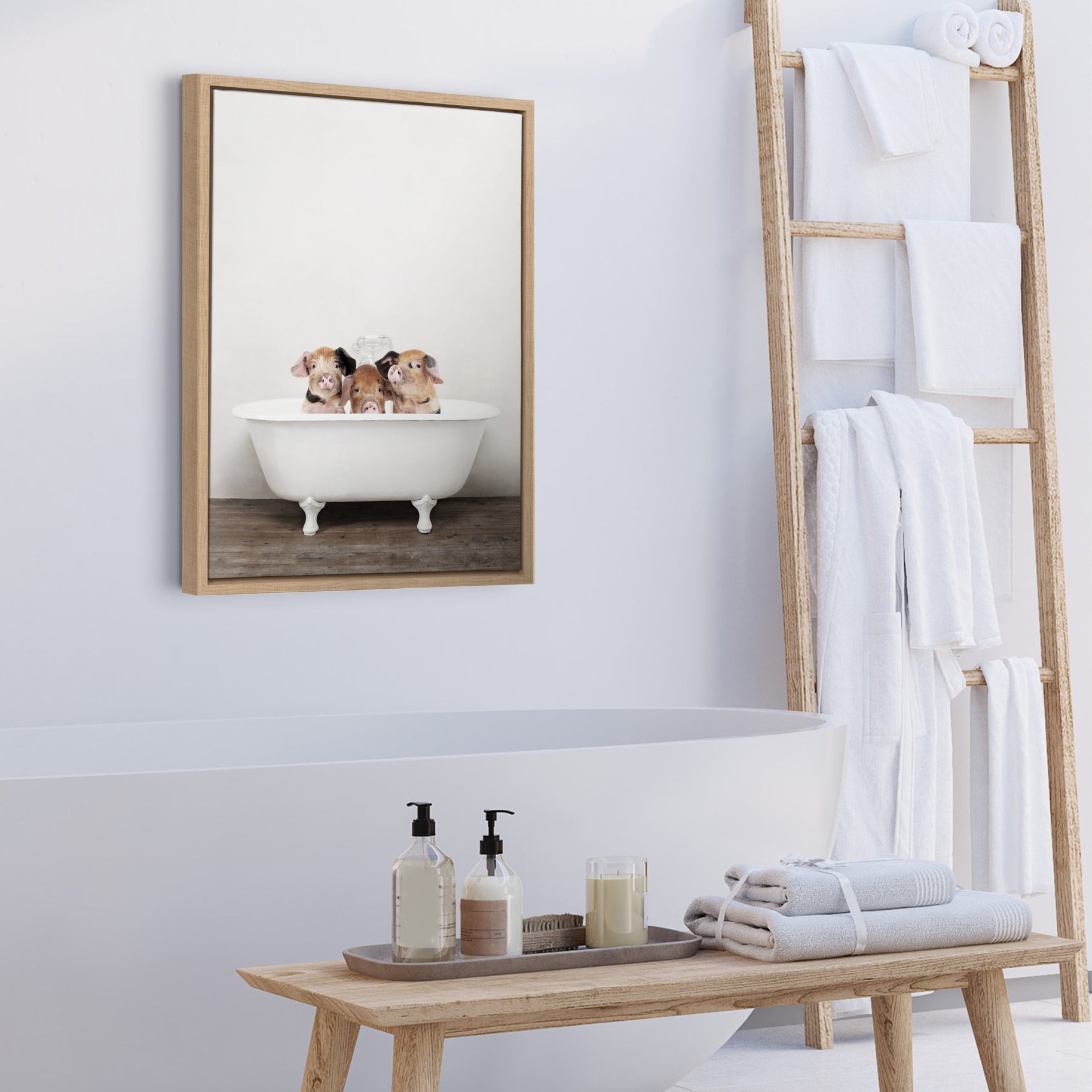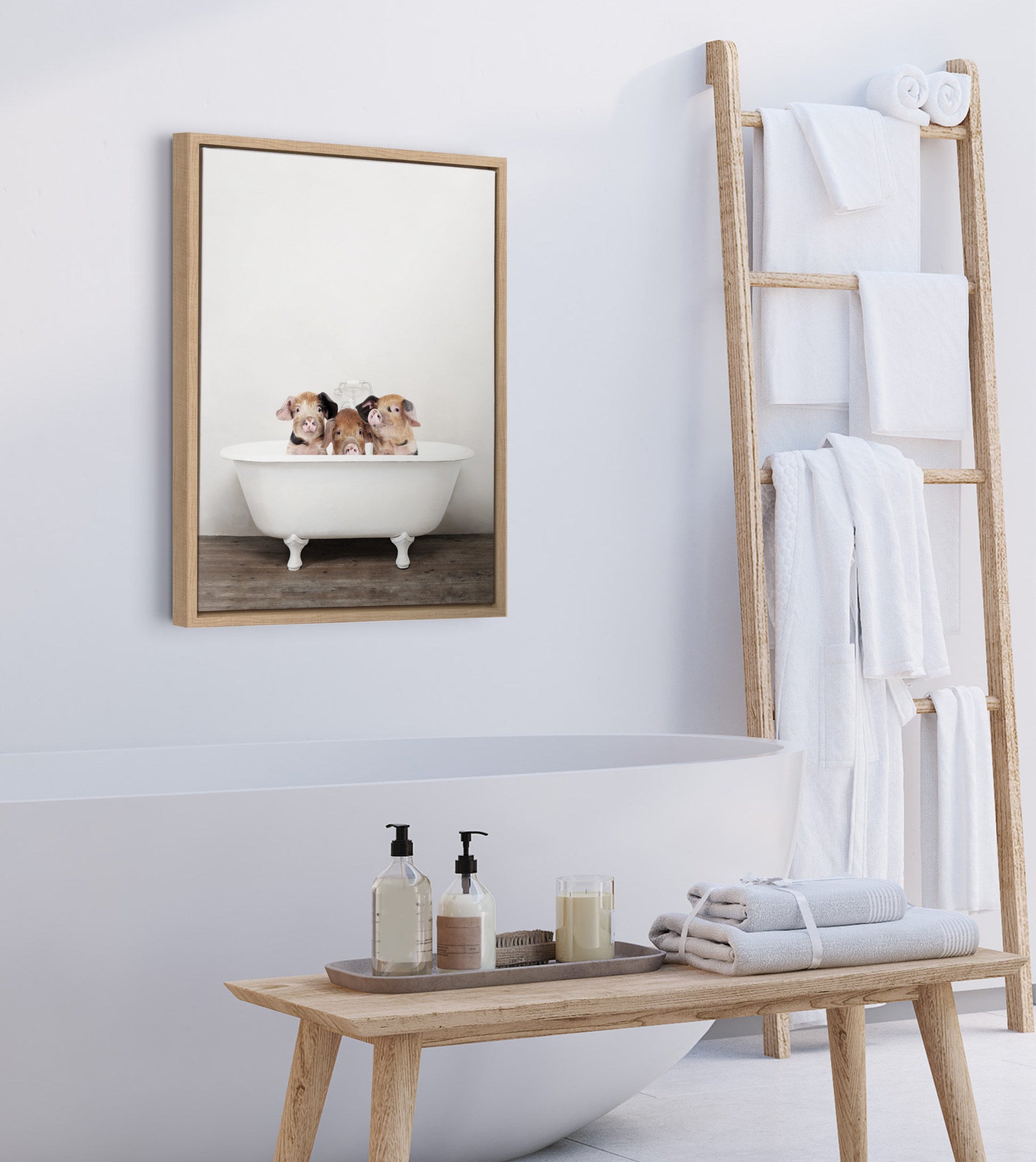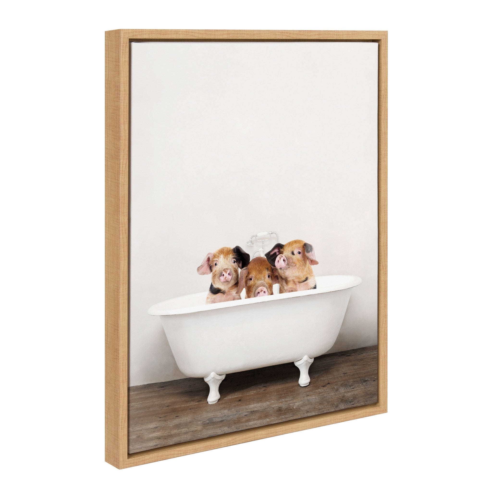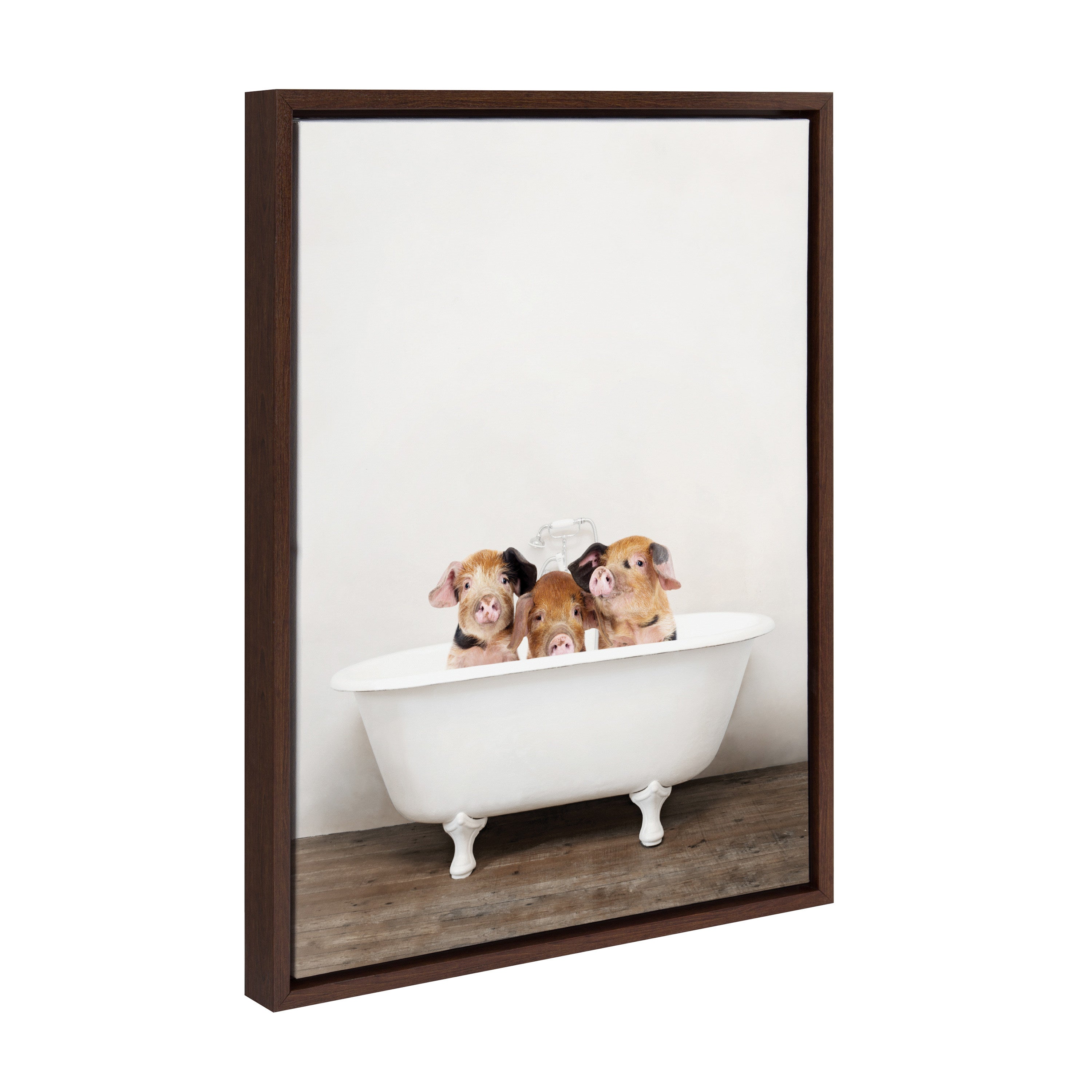 Sylvie Three Little Pigs In Vintage Bathtub Framed Canvas by Amy Peterson Art Studio