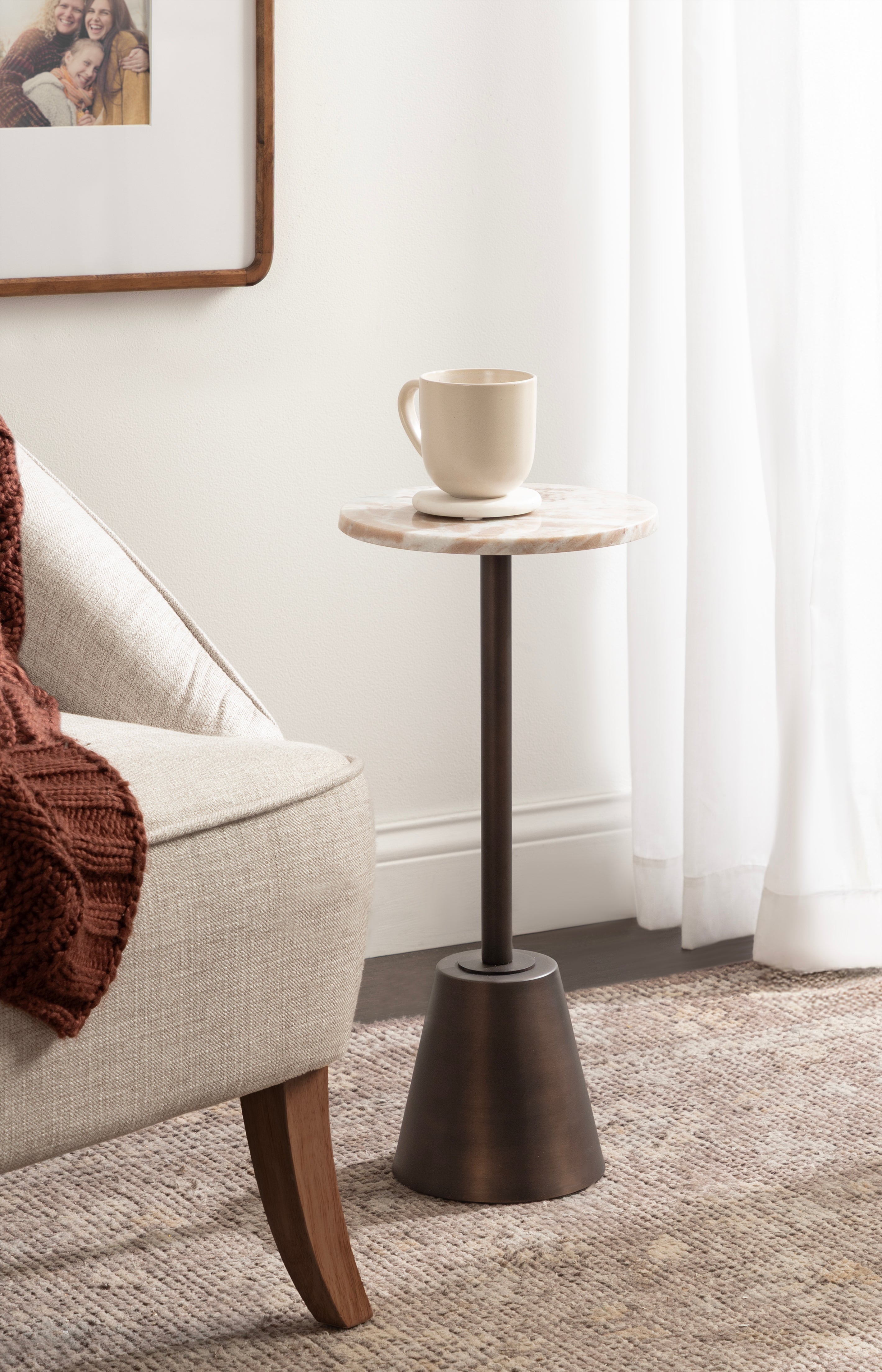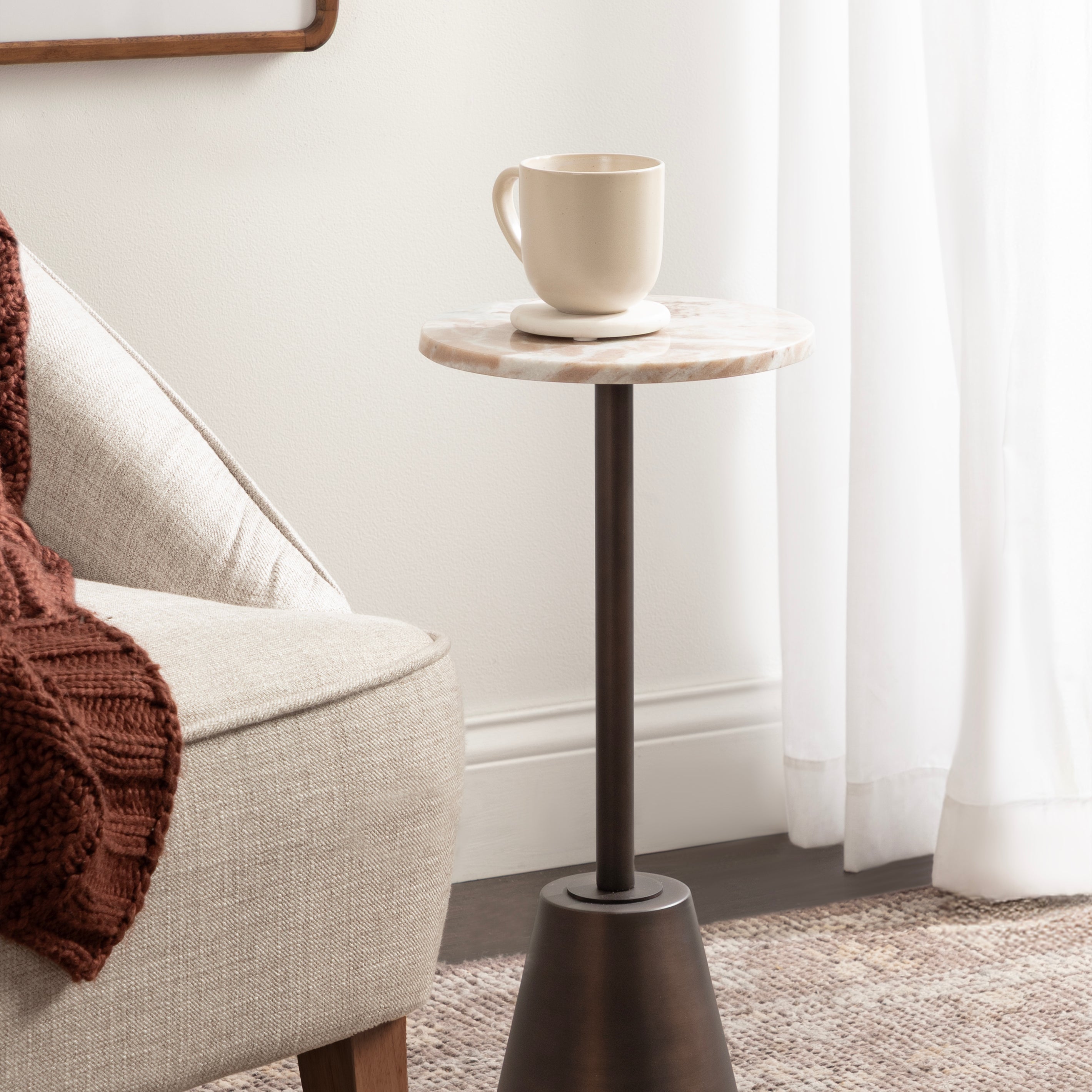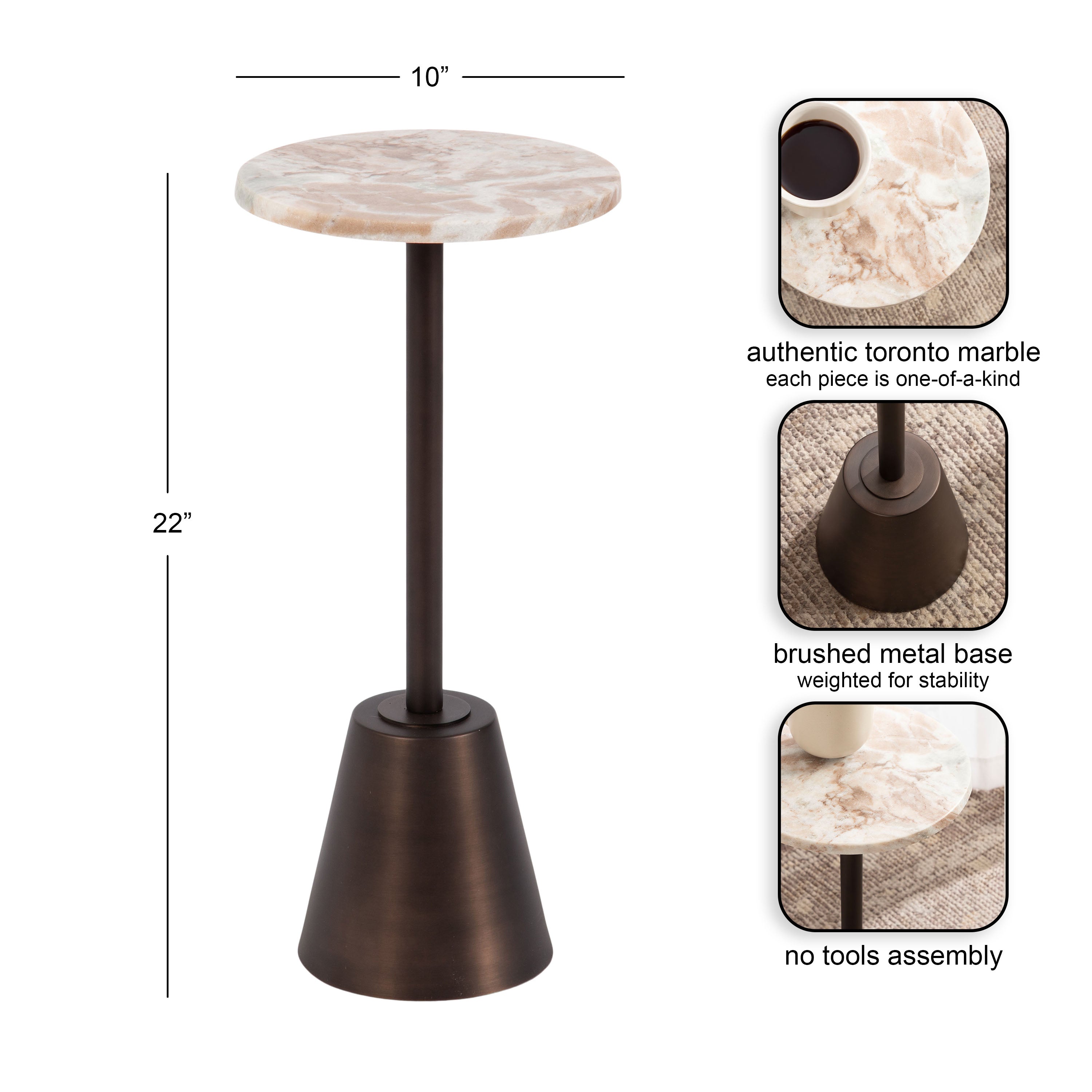 Tira Round Marble and Metal Side Table