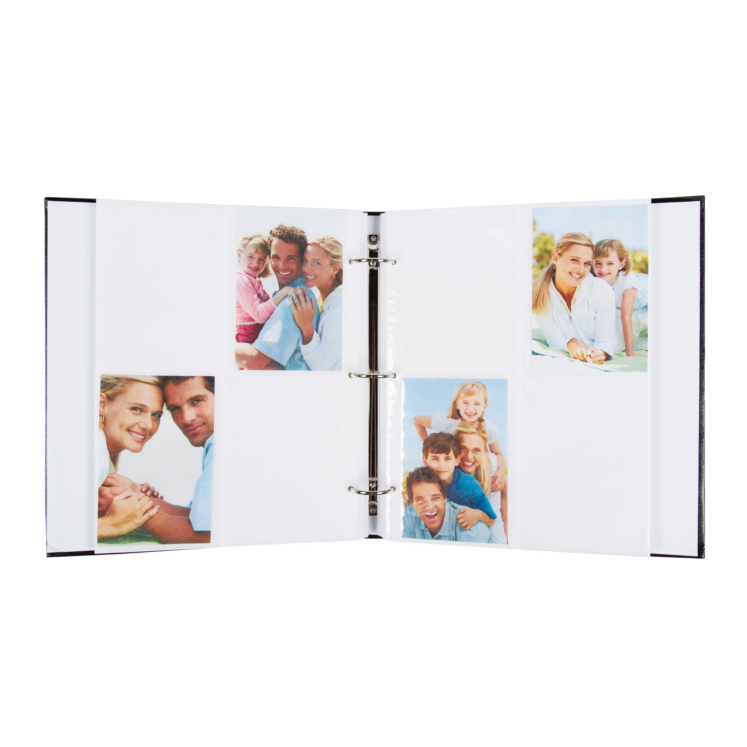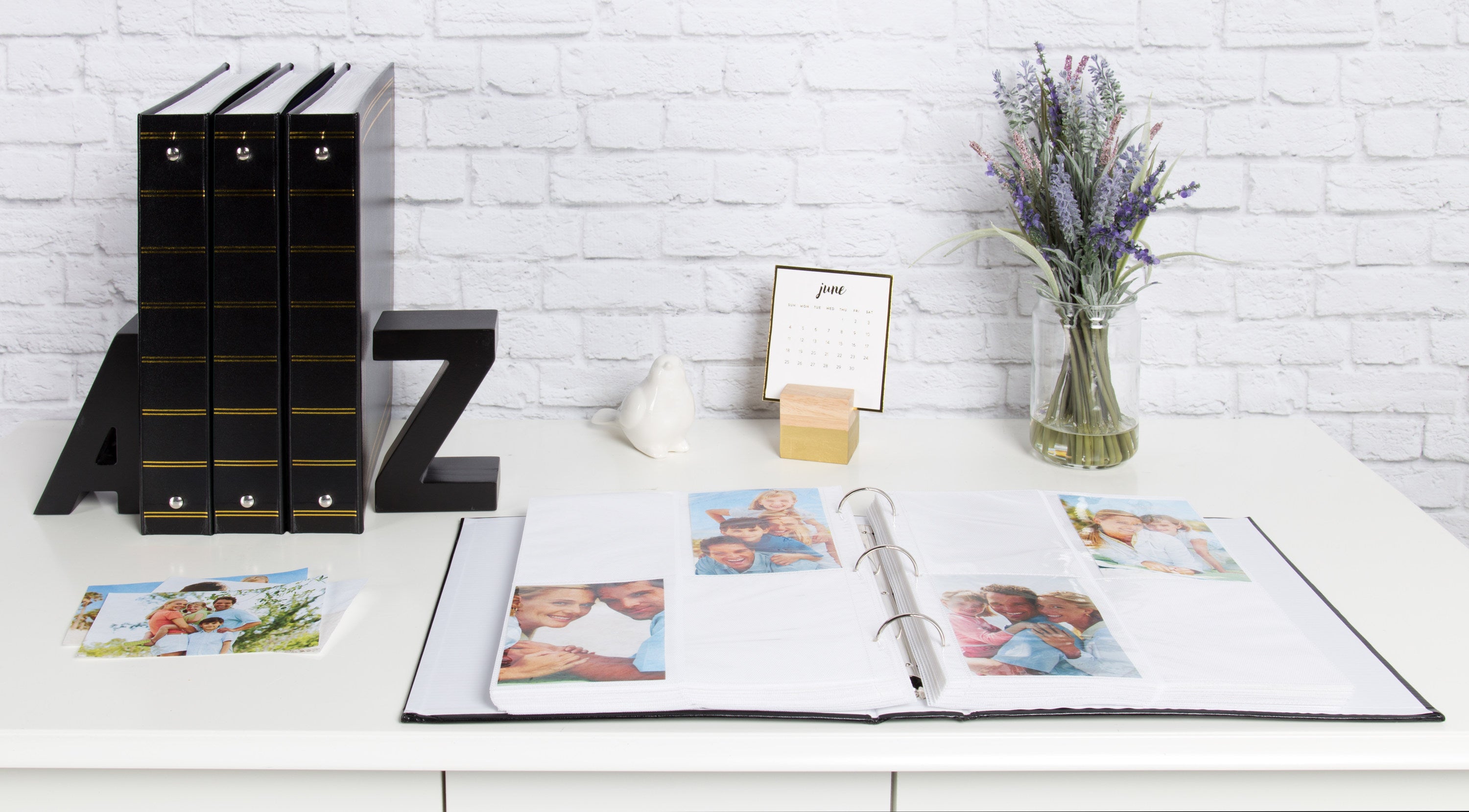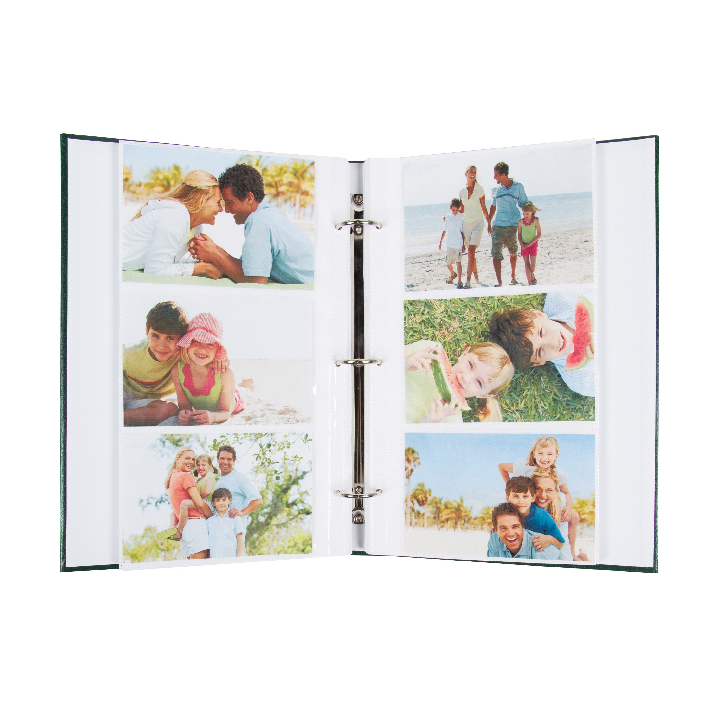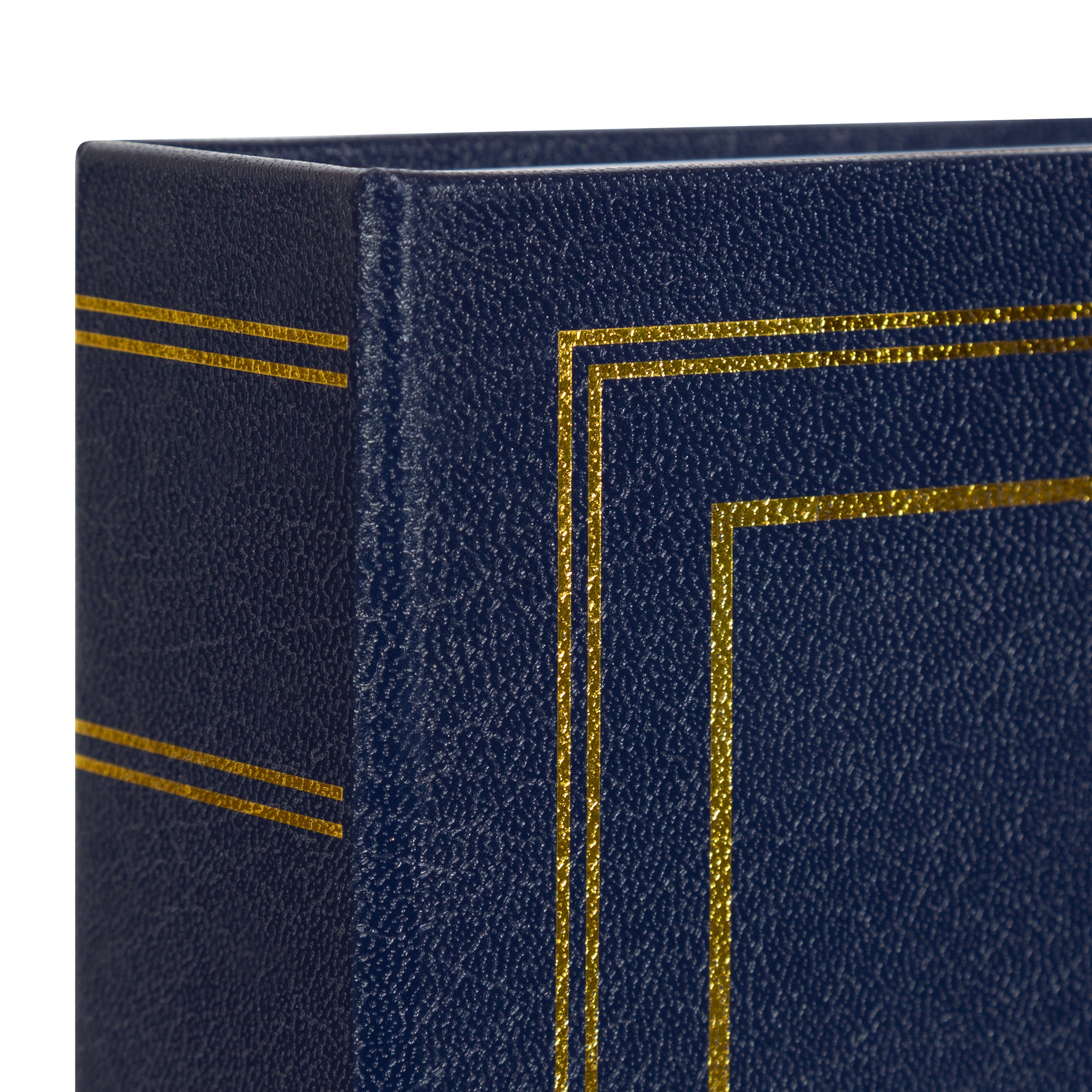 This beautiful collection of photo albums preserves your most cherished memories for generations. This photo album features a sophisticated finish complete with a gold trim that gives it a lovely, classic look. This album can hold 4a6 photos within 20 double-sided pages, bound by a metal 3-ring design that keeps them secure.
