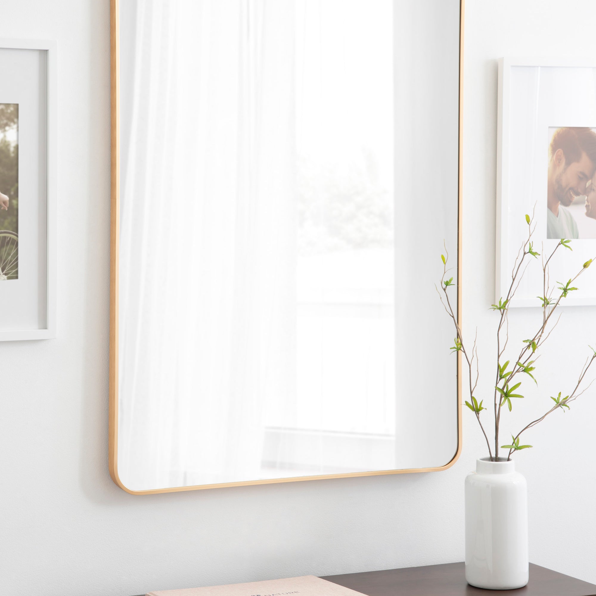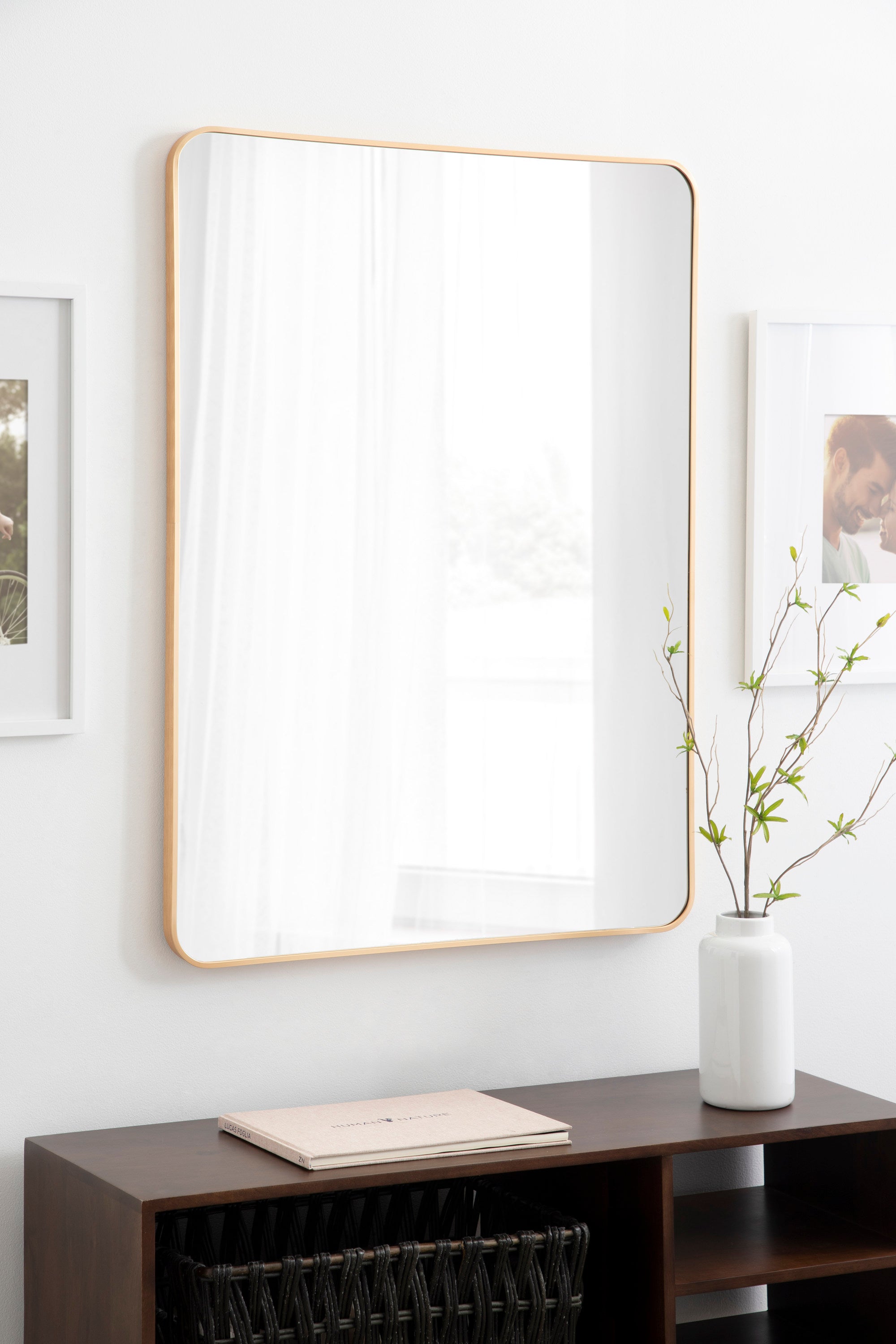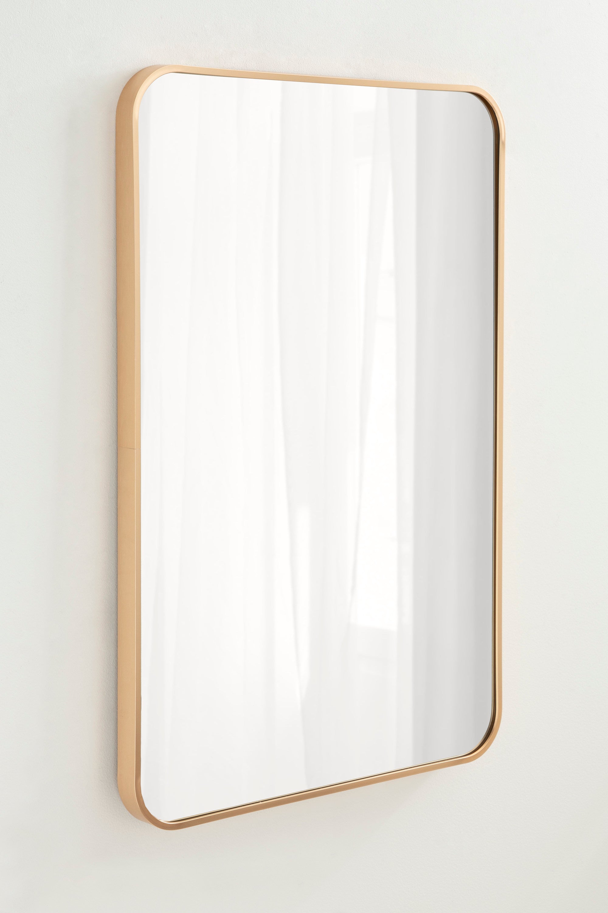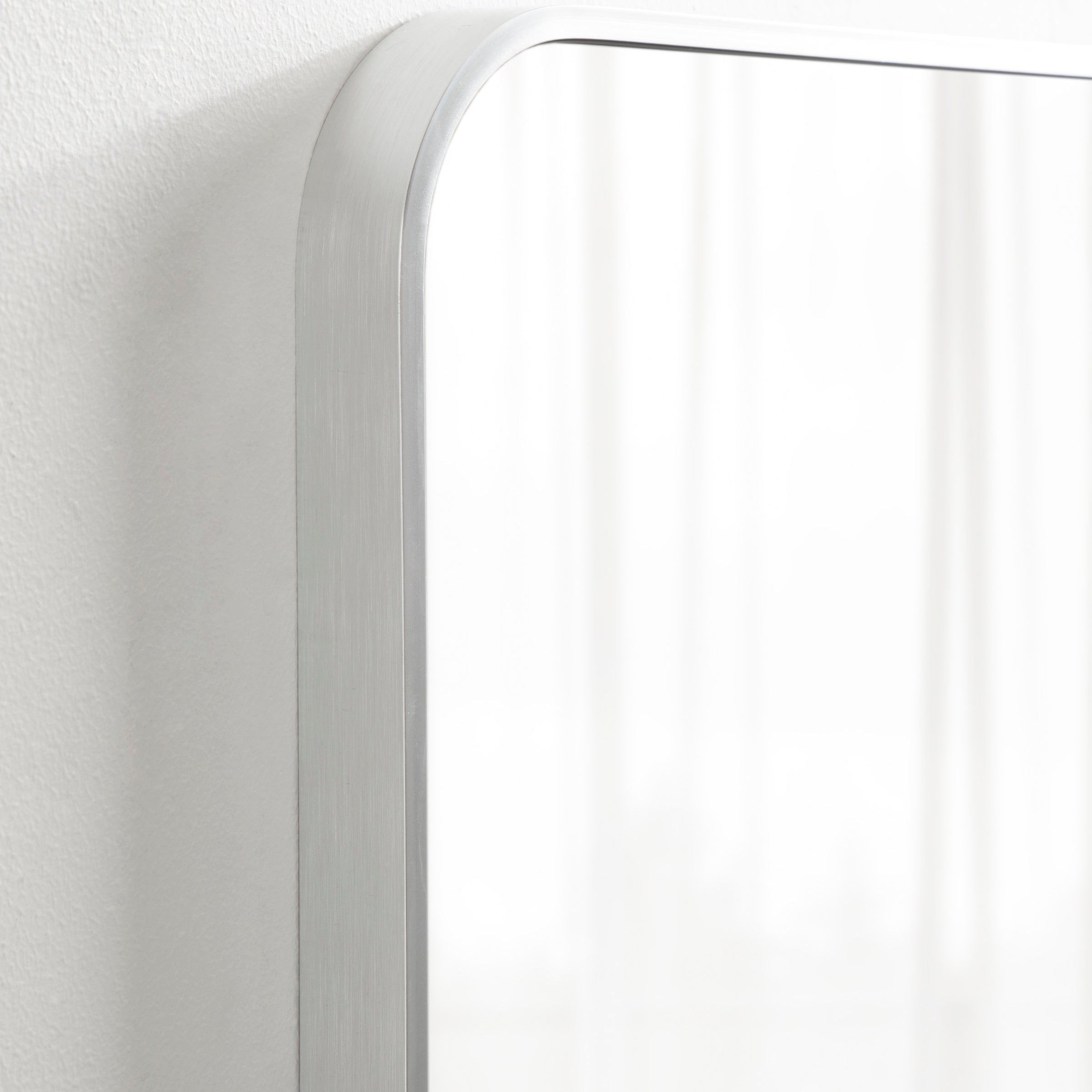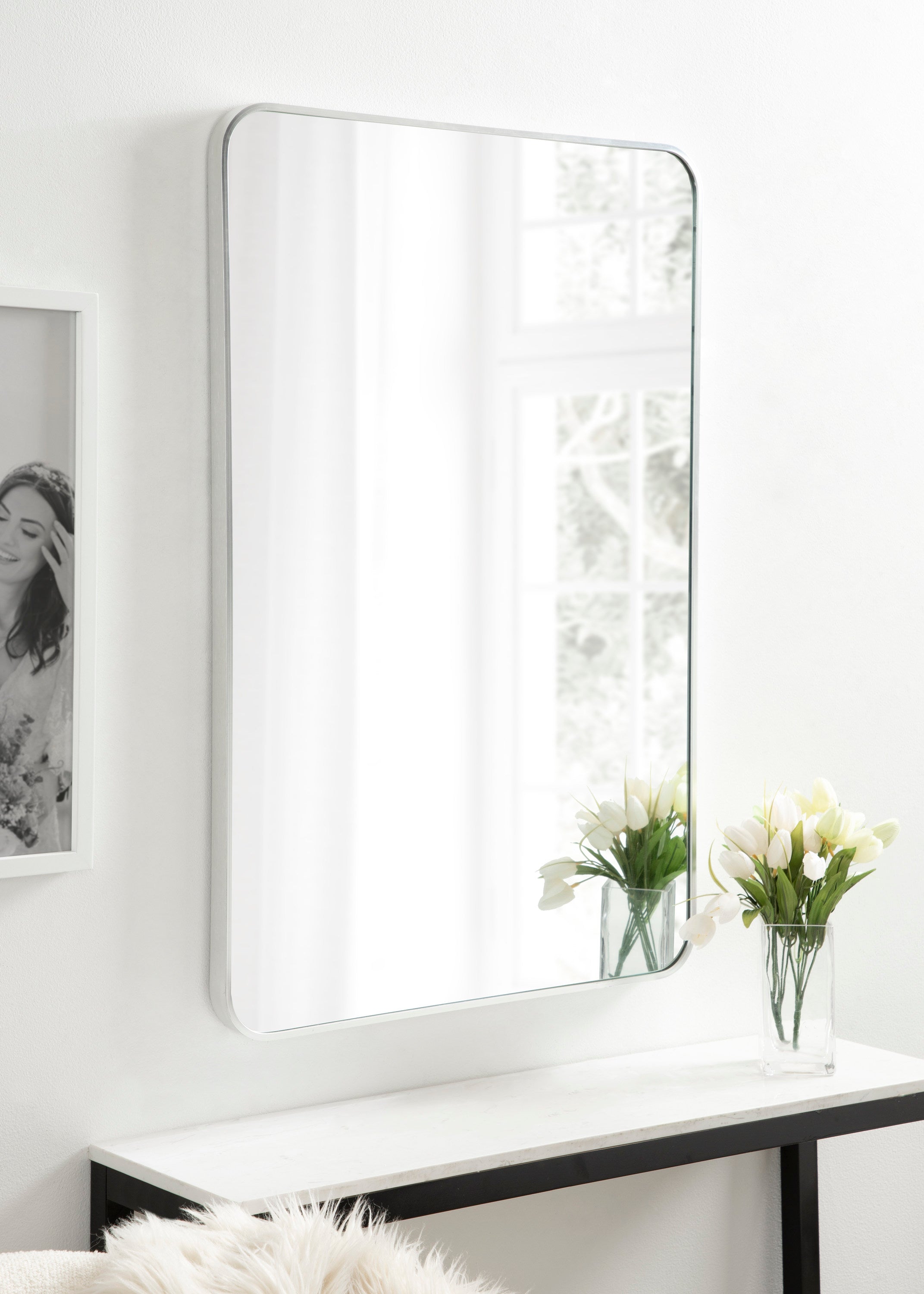 This Zayda rectangular mirror defines stylish simplicity. The combination of smooth curves and a slim frame profile catches attention but blends seamlessly with your decor. This modern option is constructed from resilient aluminum, making it durable and light enough to hang easily.