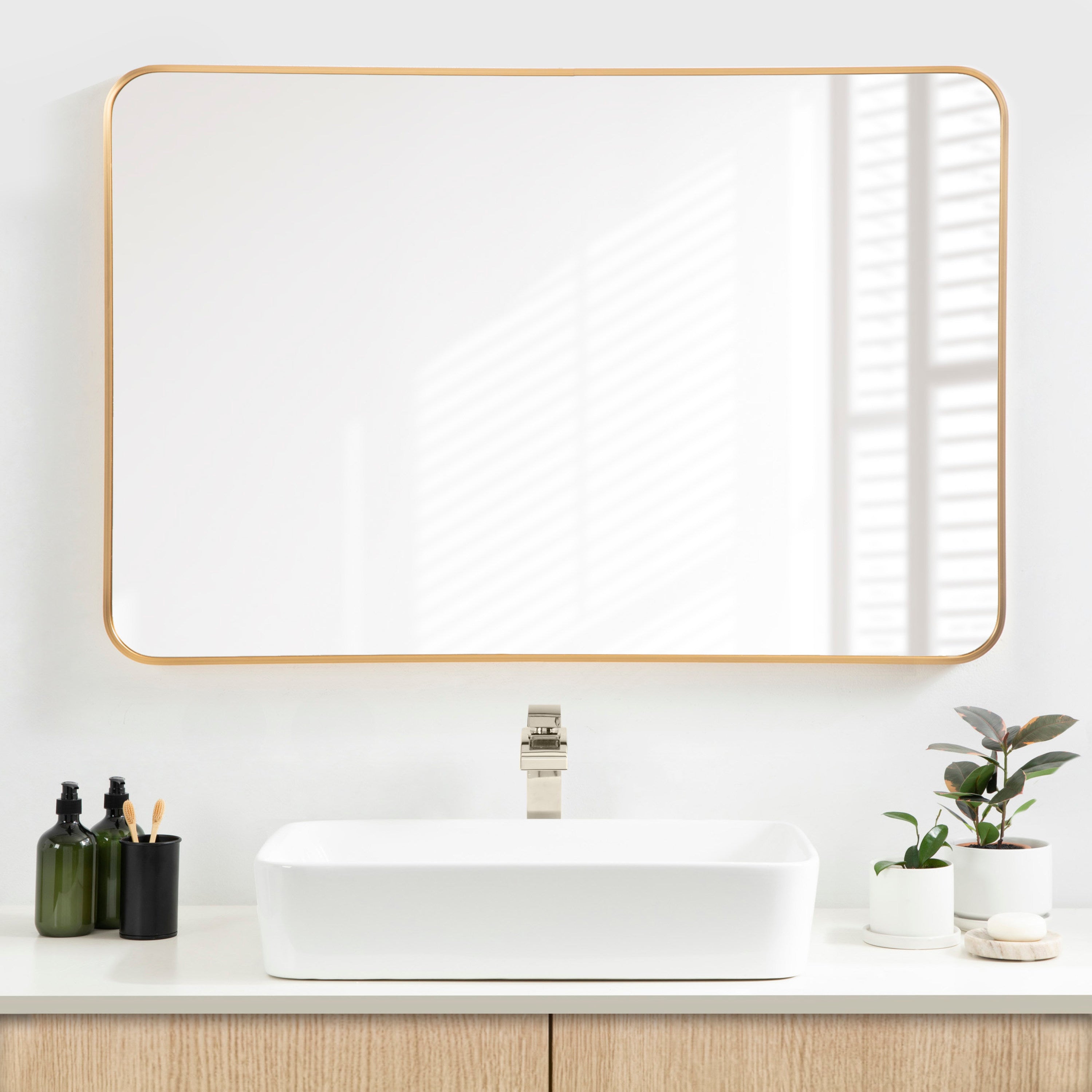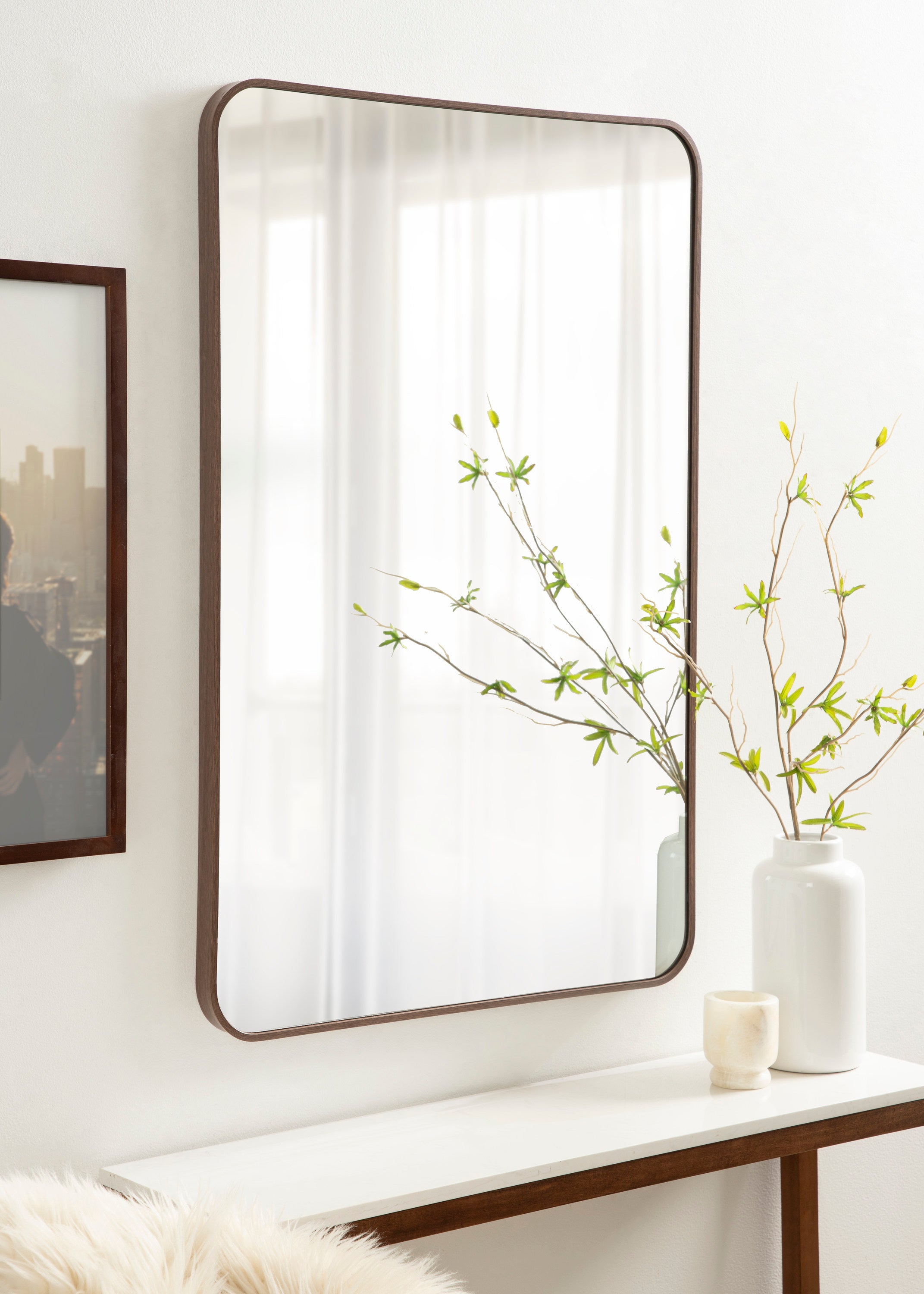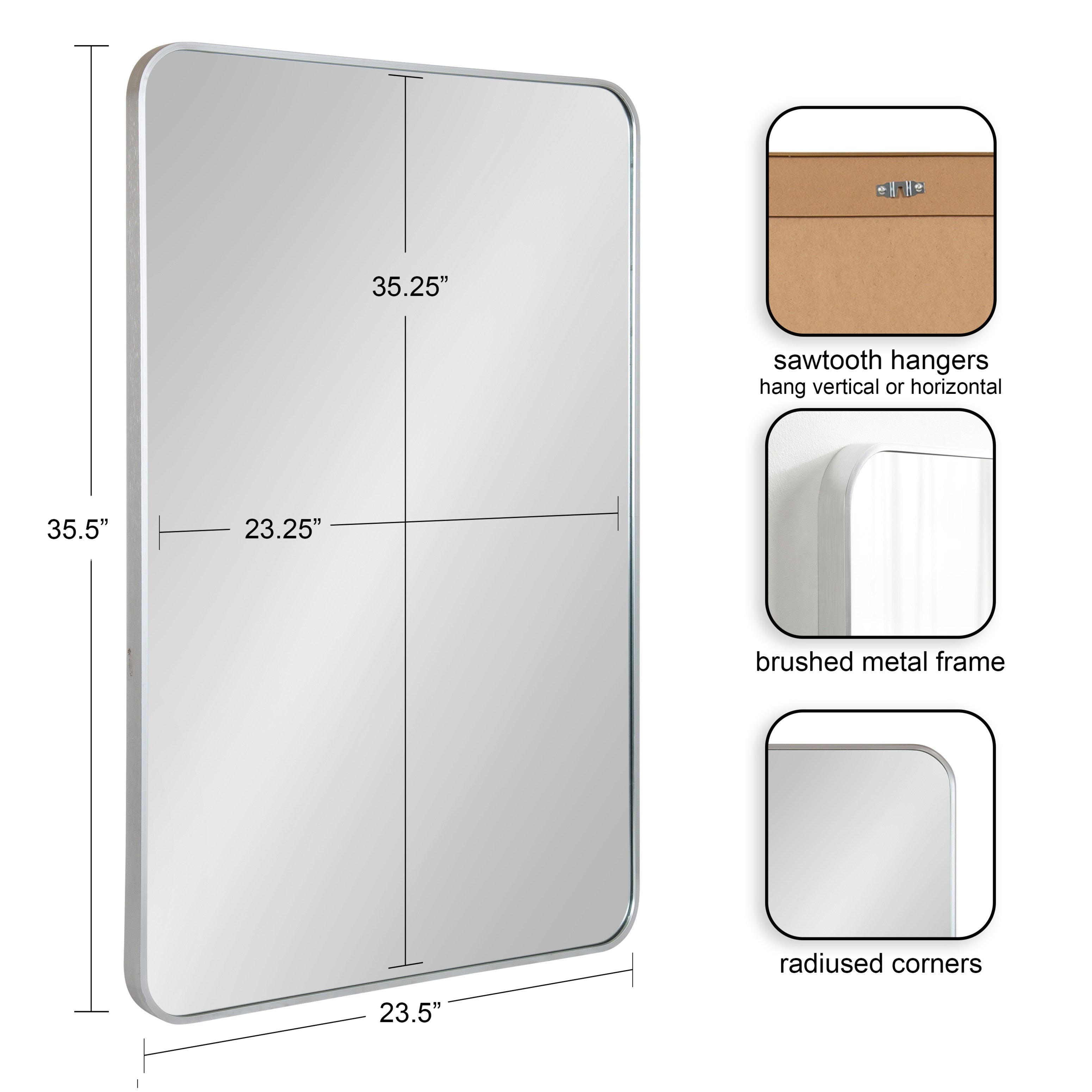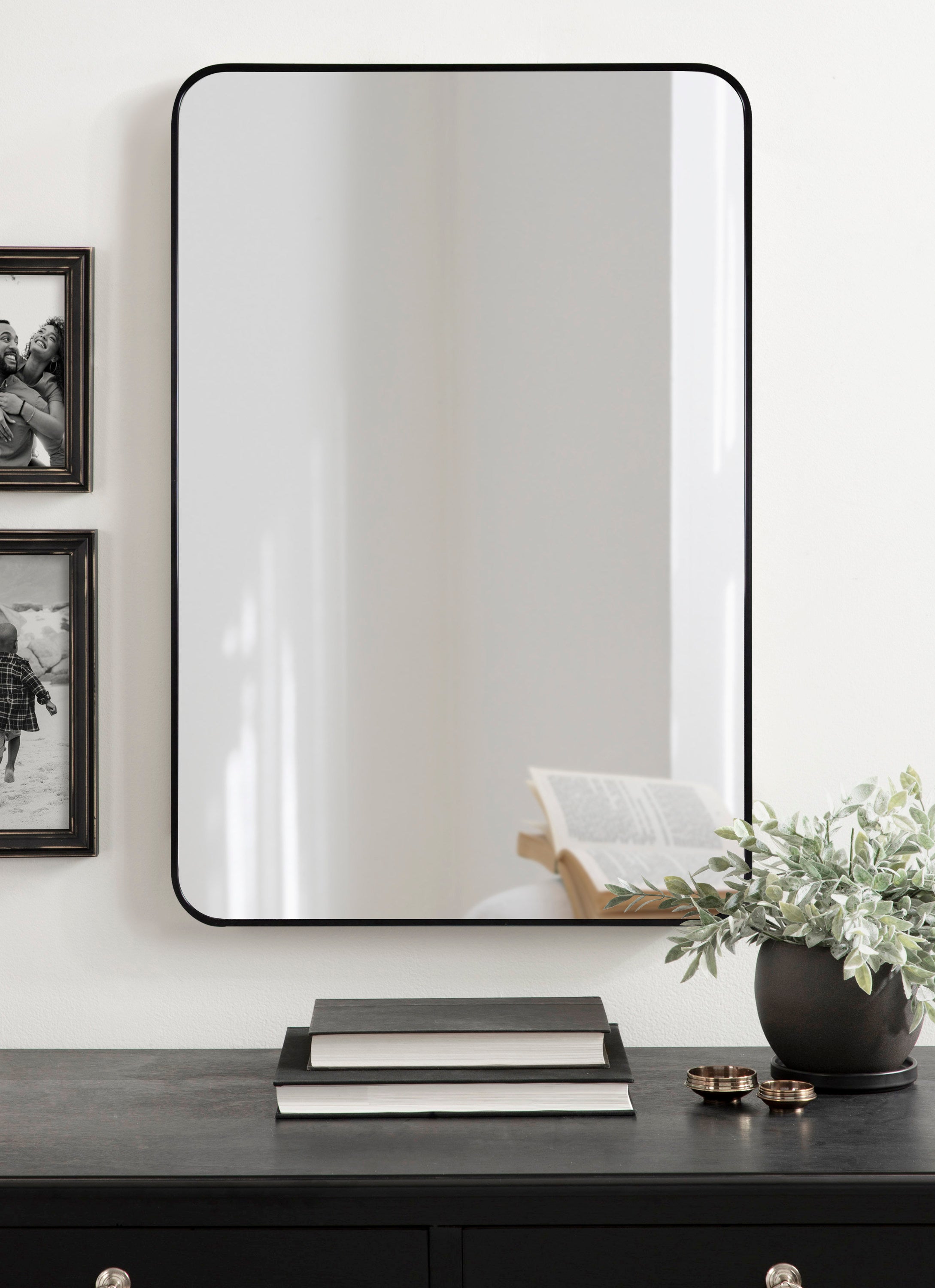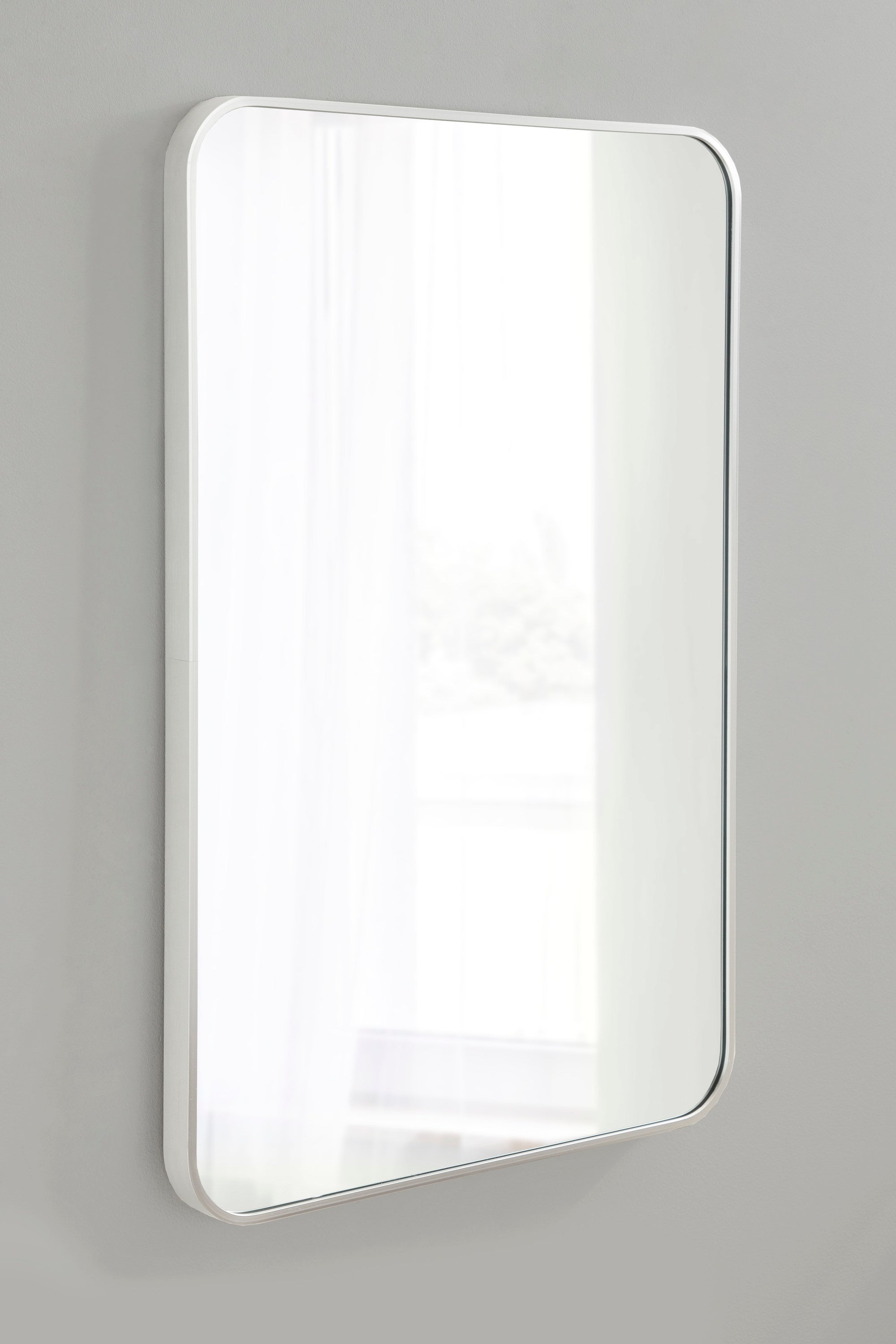 This Zayda rectangular mirror defines stylish simplicity. The combination of smooth curves and a slim frame profile catches attention but blends seamlessly with your decor. This modern option is constructed from resilient aluminum, making it durable and light enough to hang easily.
