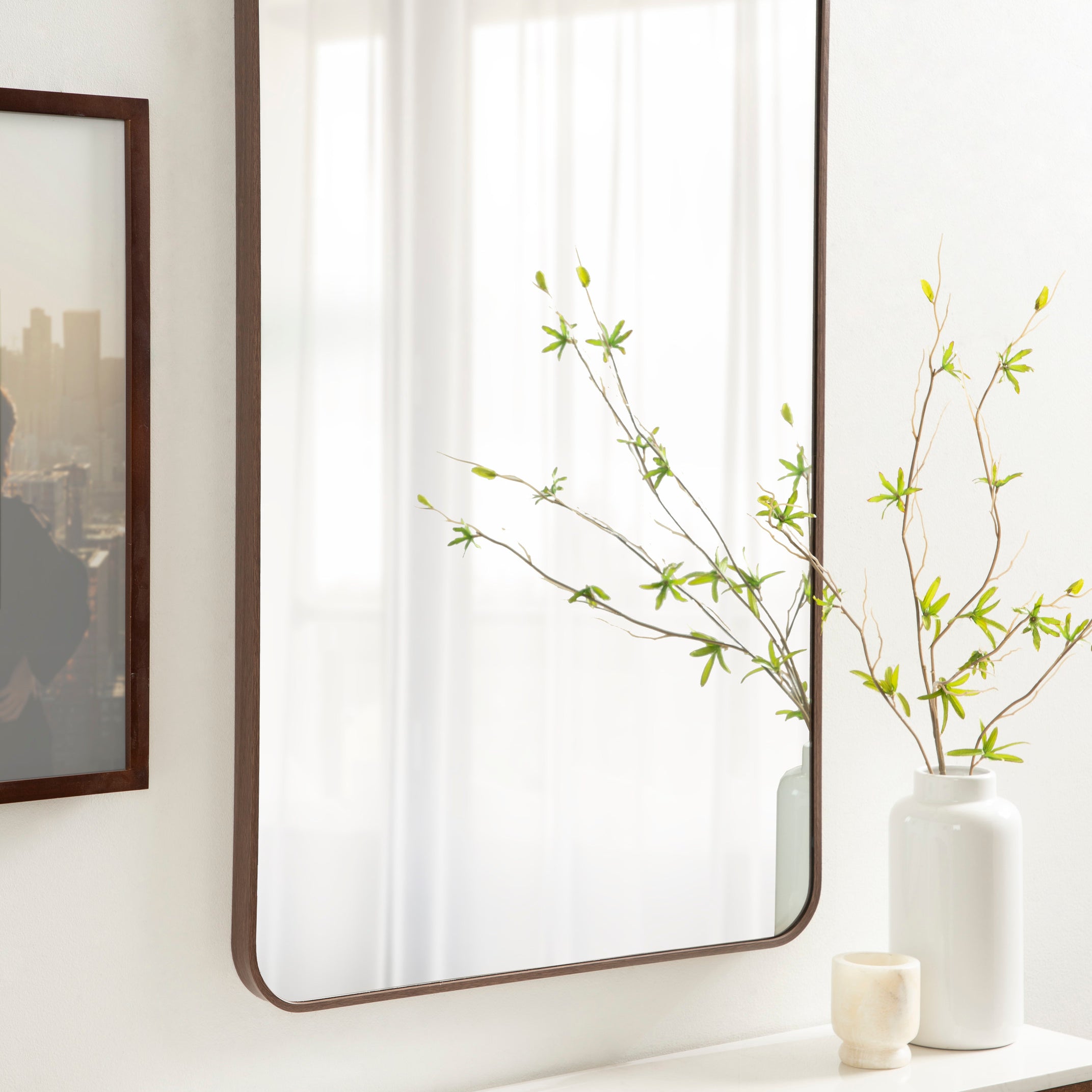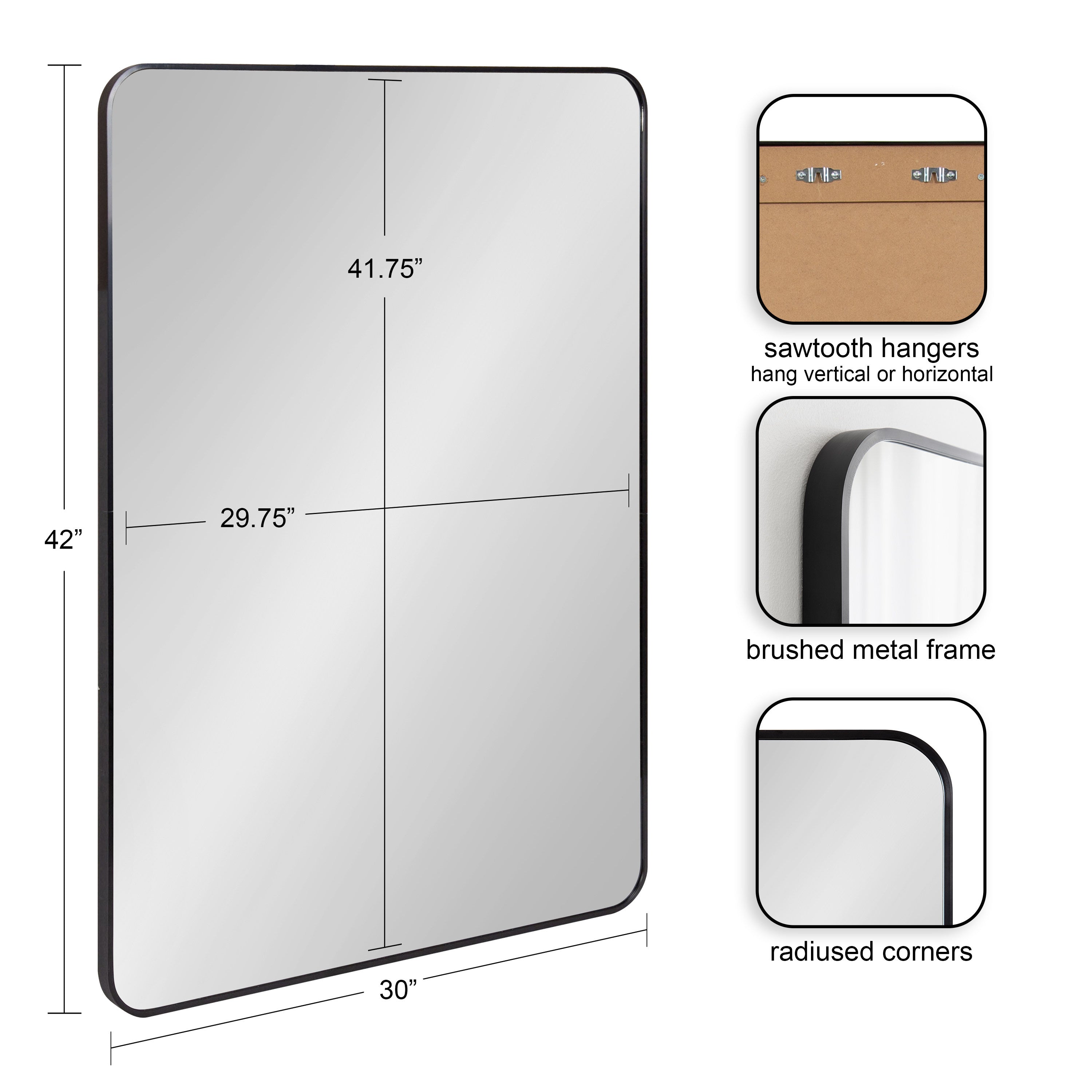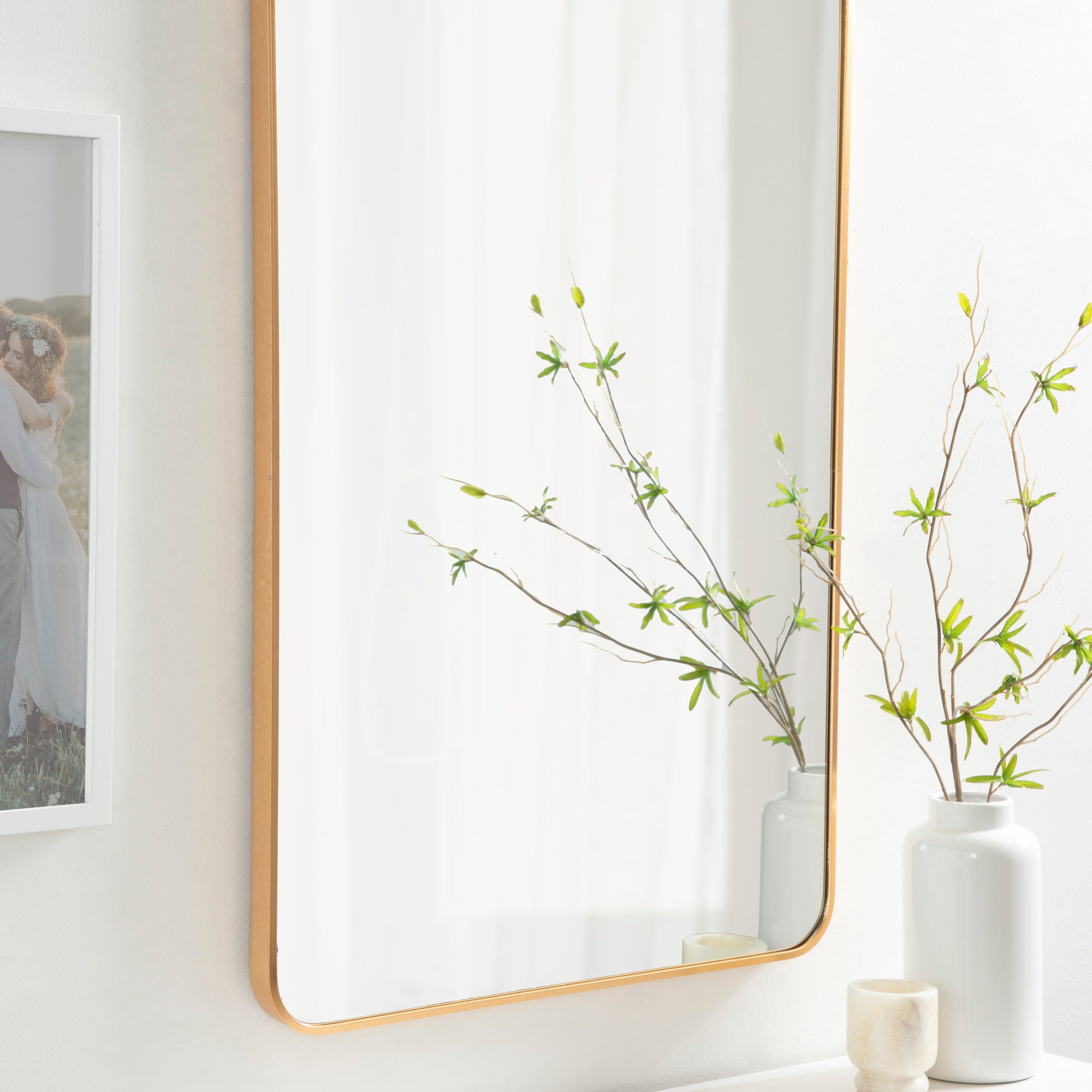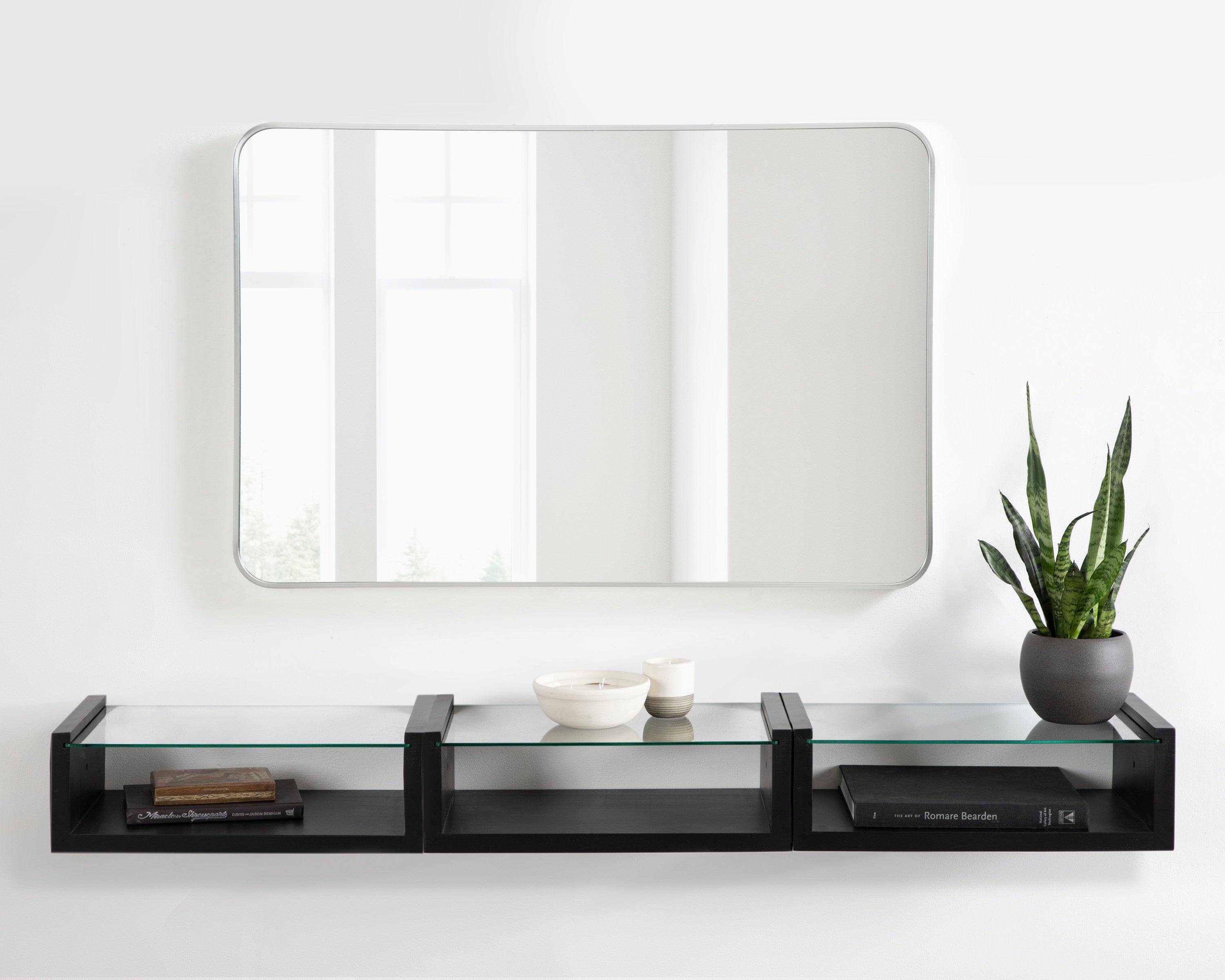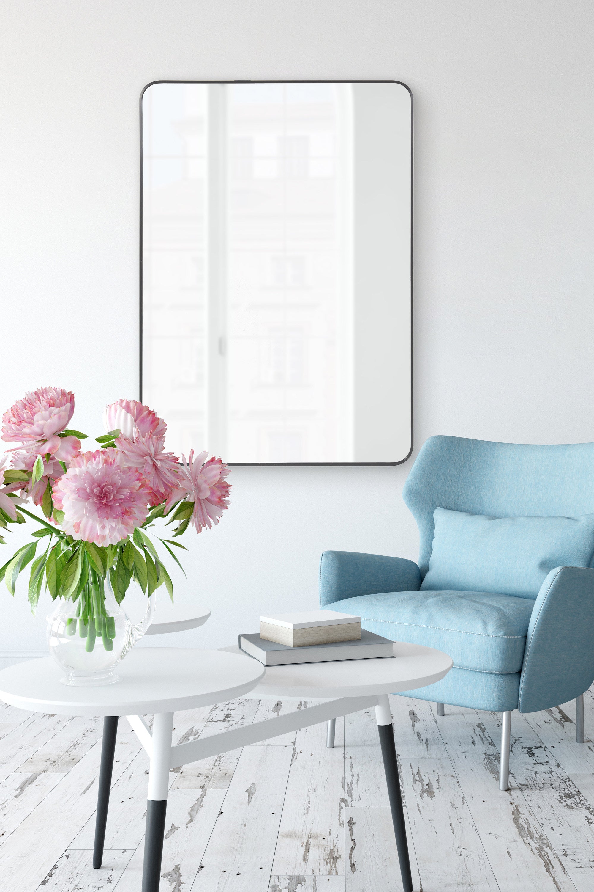 This Zayda rectangular mirror defines stylish simplicity. The combination of smooth curves and a slim frame profile catches attention but blends seamlessly with your decor. This modern option is constructed from resilient aluminum, making it durable and light enough to hang easily.