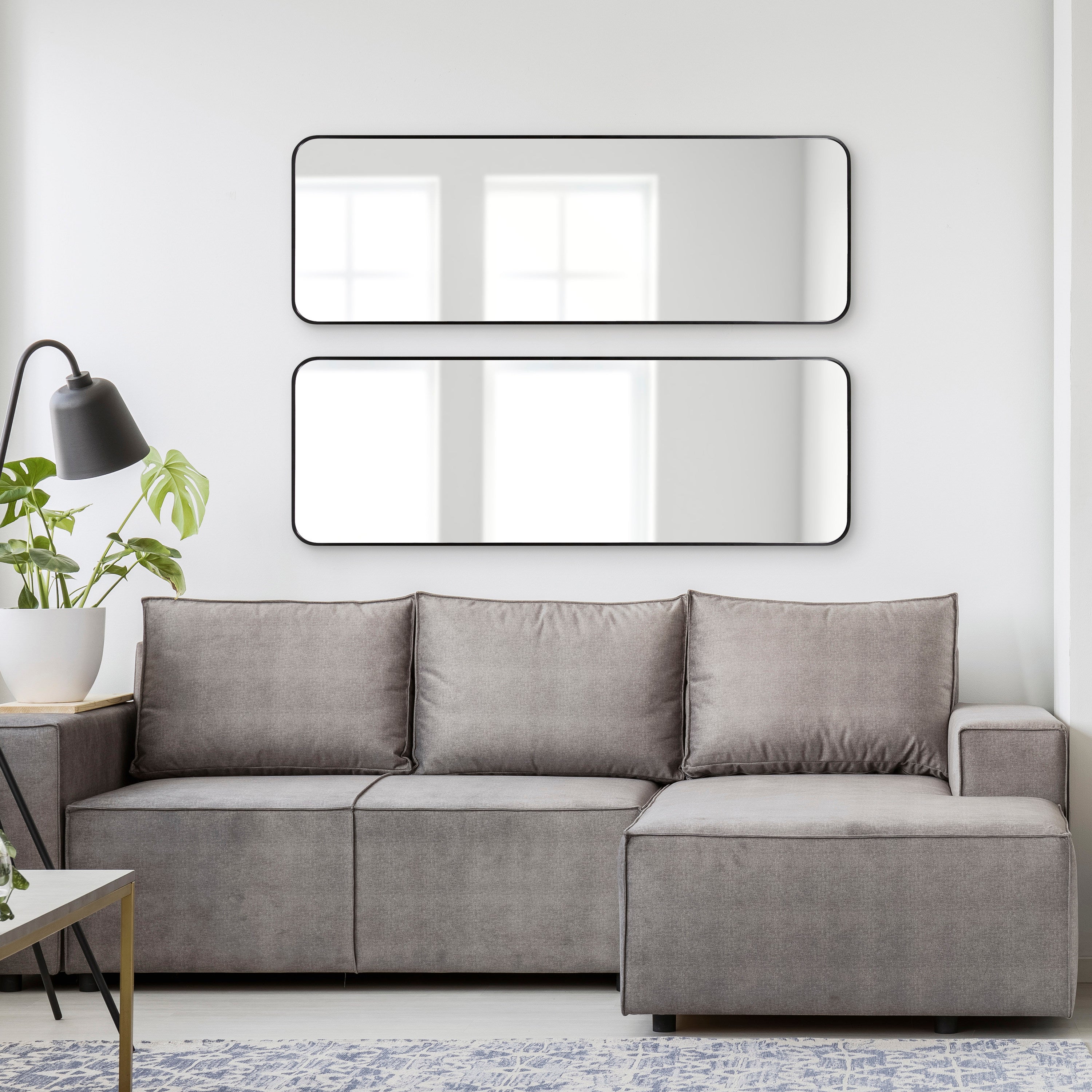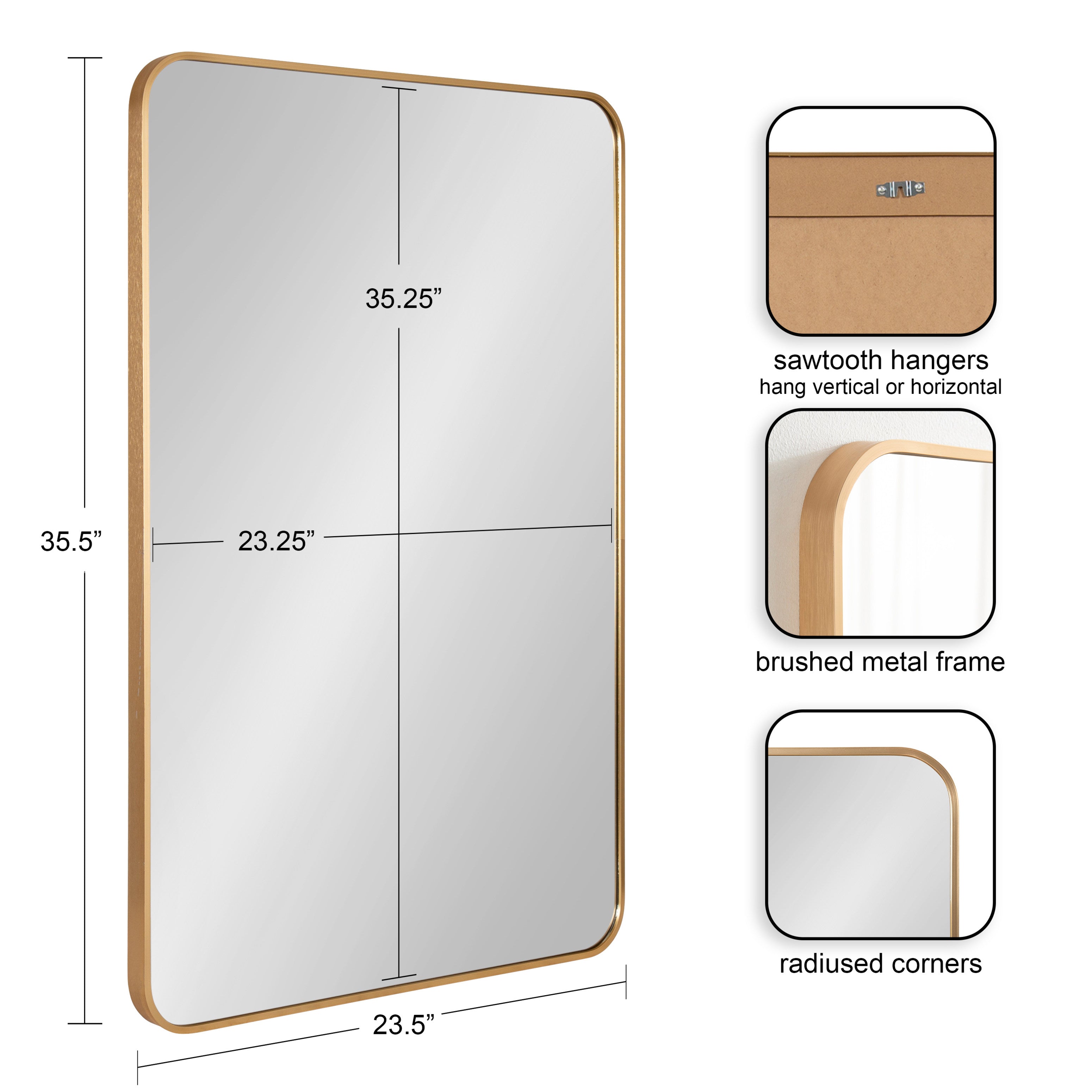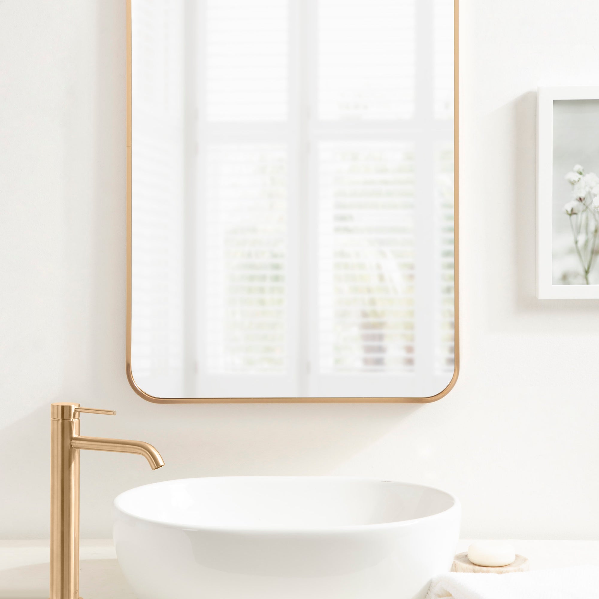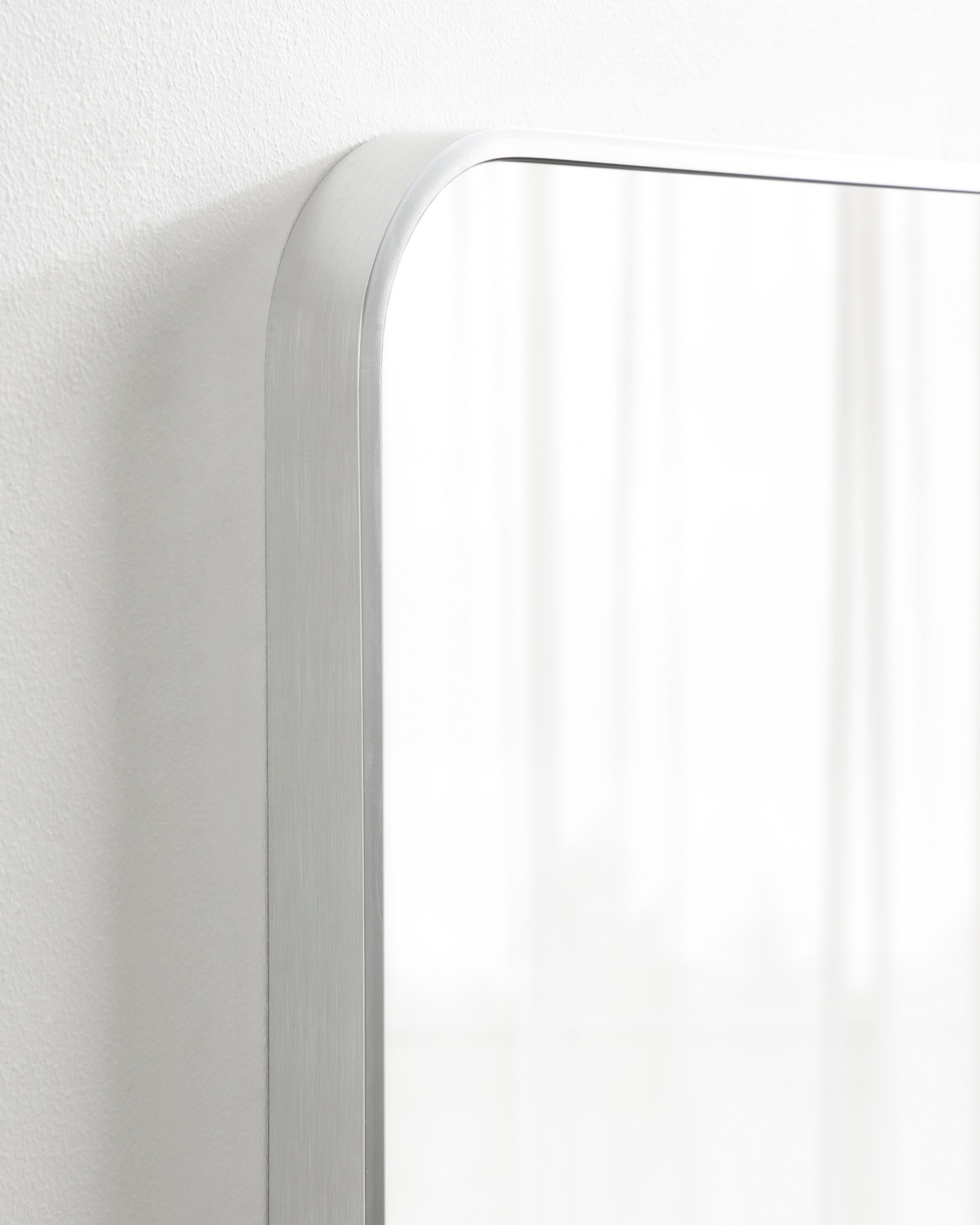 This Zayda rectangular mirror defines stylish simplicity. The combination of smooth curves and a slim frame profile catches attention but blends seamlessly with your decor. This modern option is constructed from resilient aluminum, making it durable and light enough to hang easily.