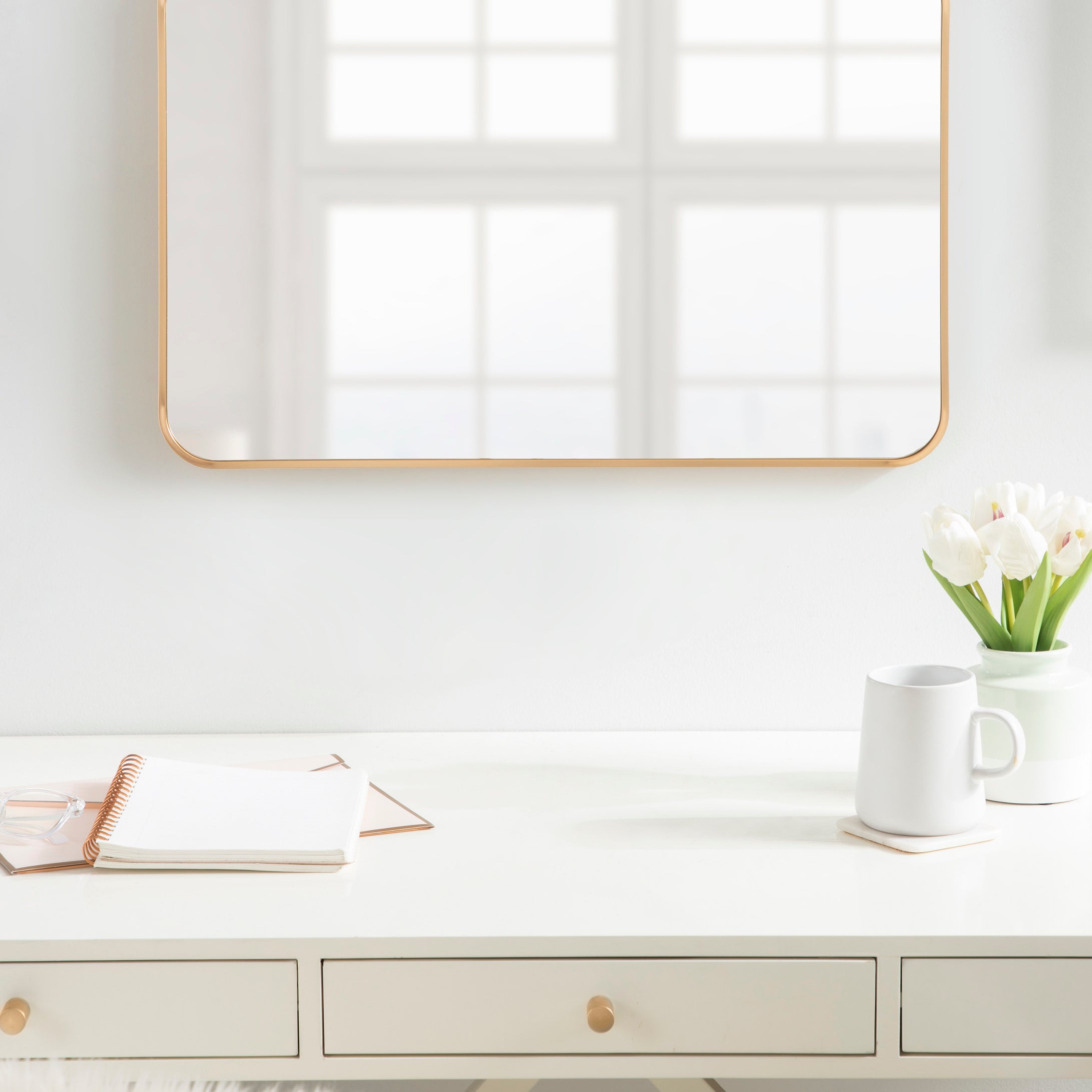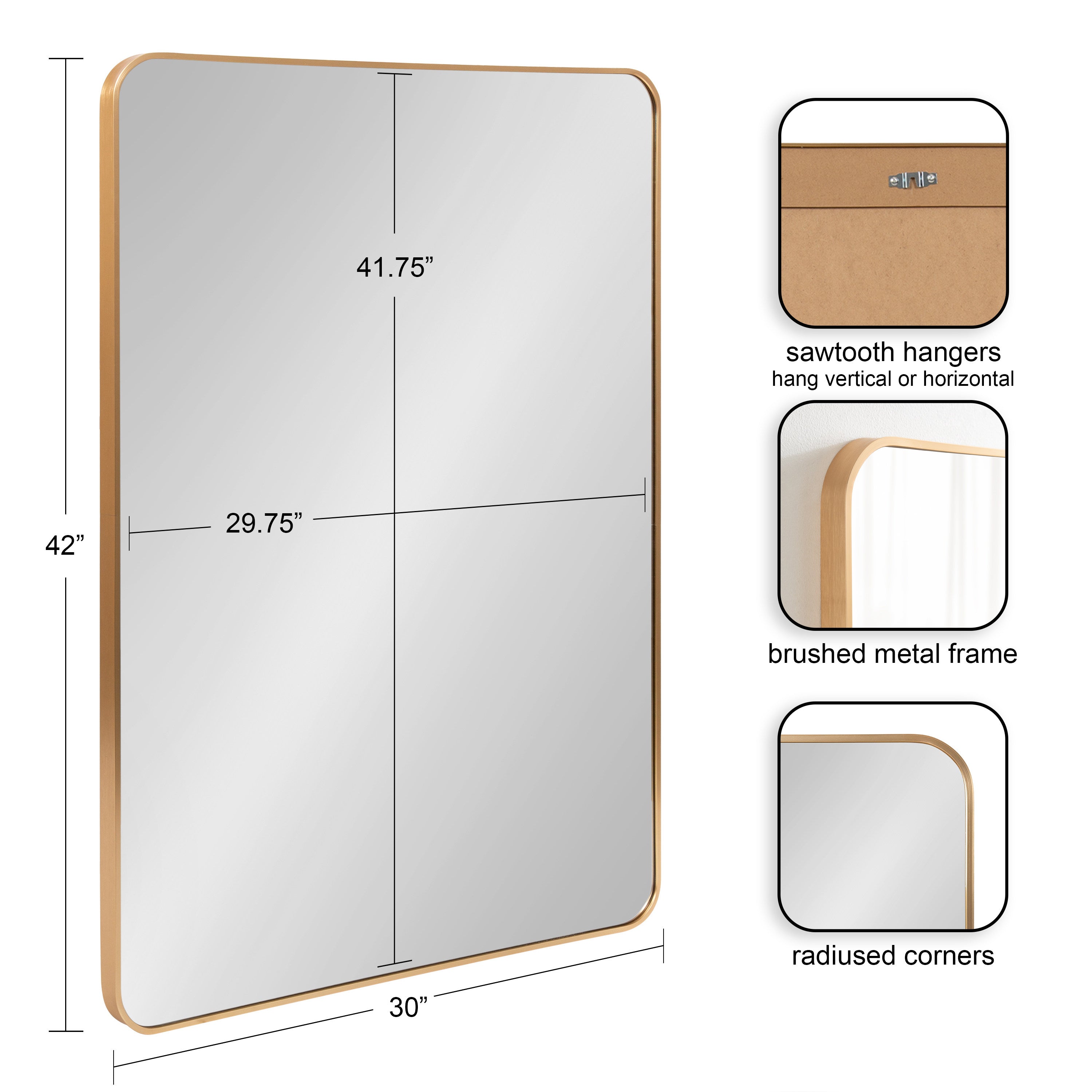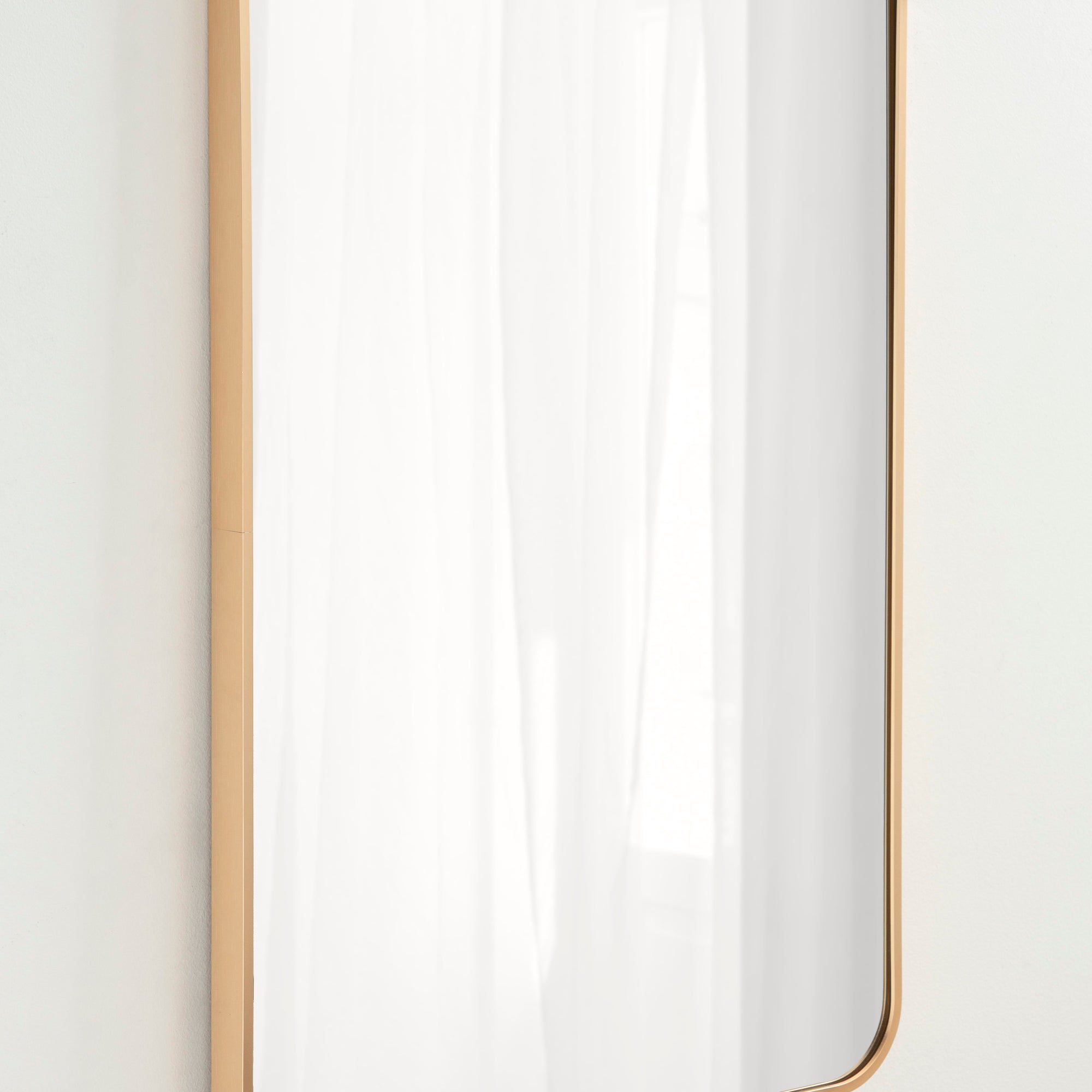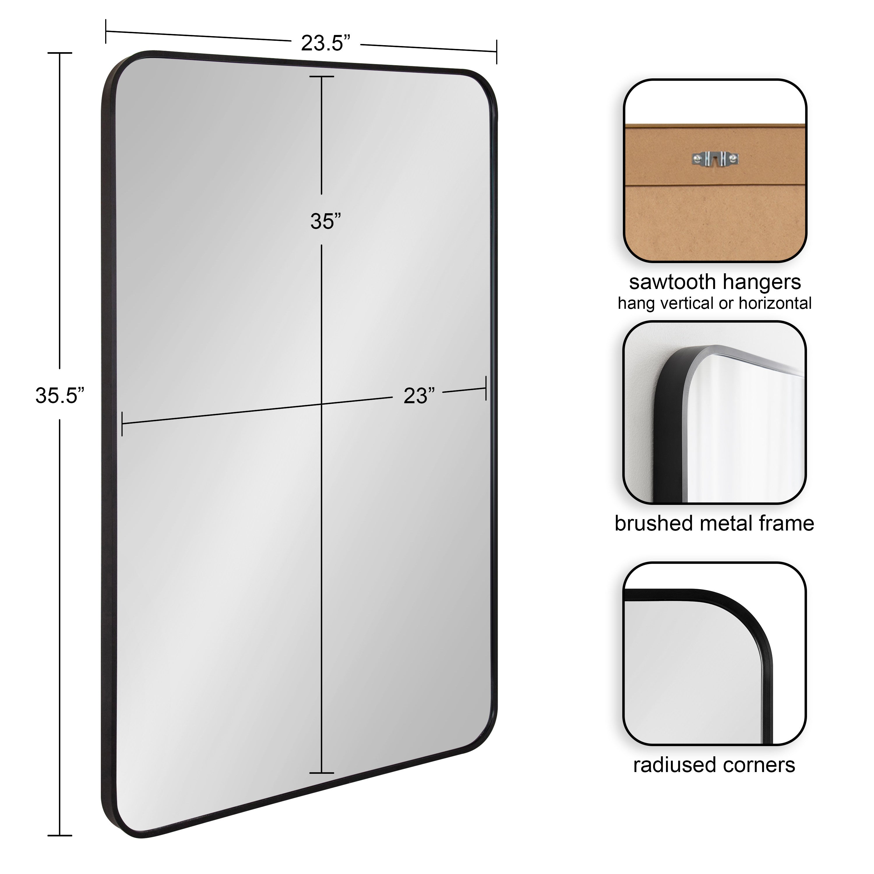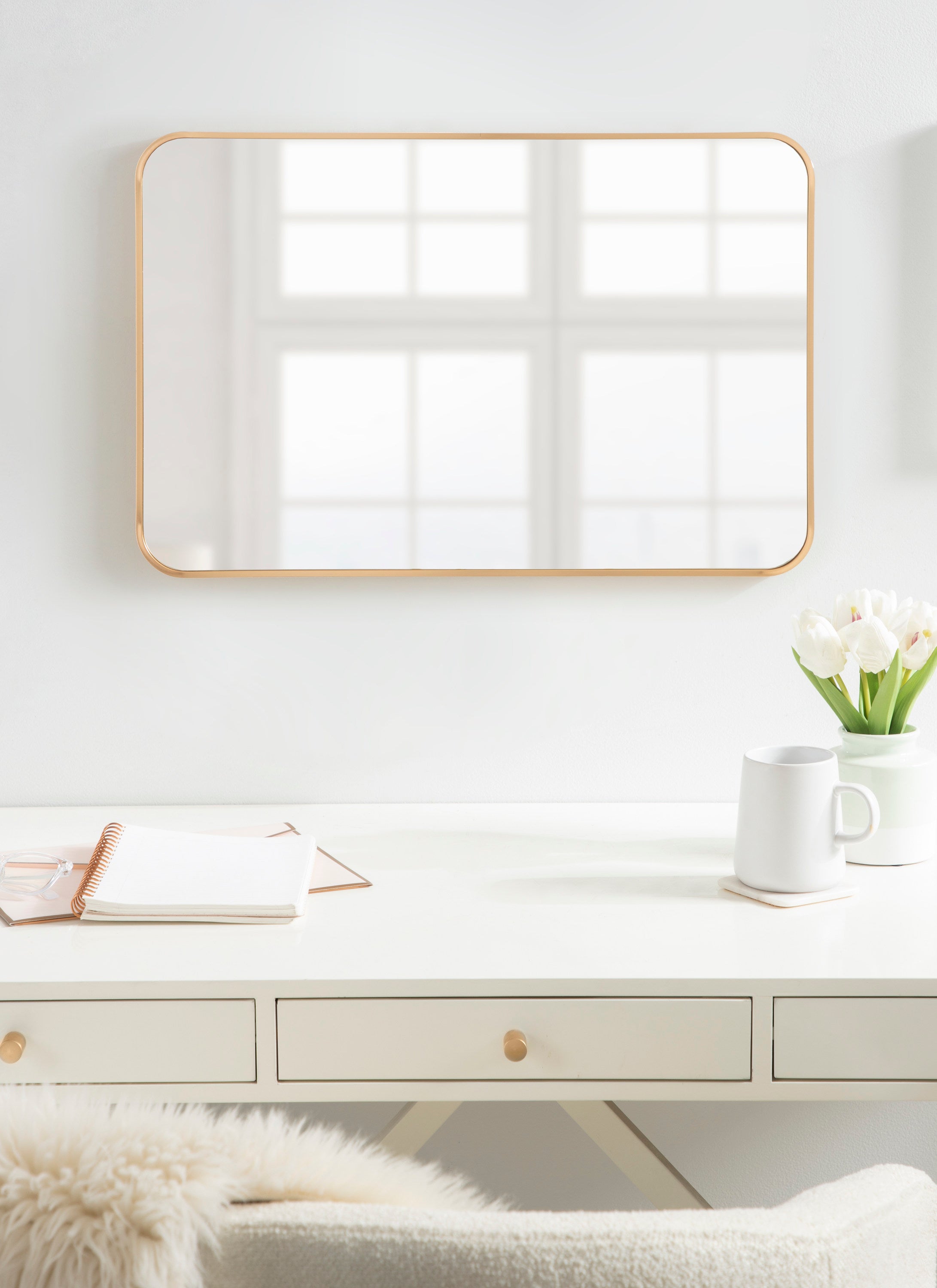 This Zayda rectangular mirror defines stylish simplicity. The combination of smooth curves and a slim frame profile catches attention but blends seamlessly with your decor. This modern option is constructed from resilient aluminum, making it durable and light enough to hang easily.
