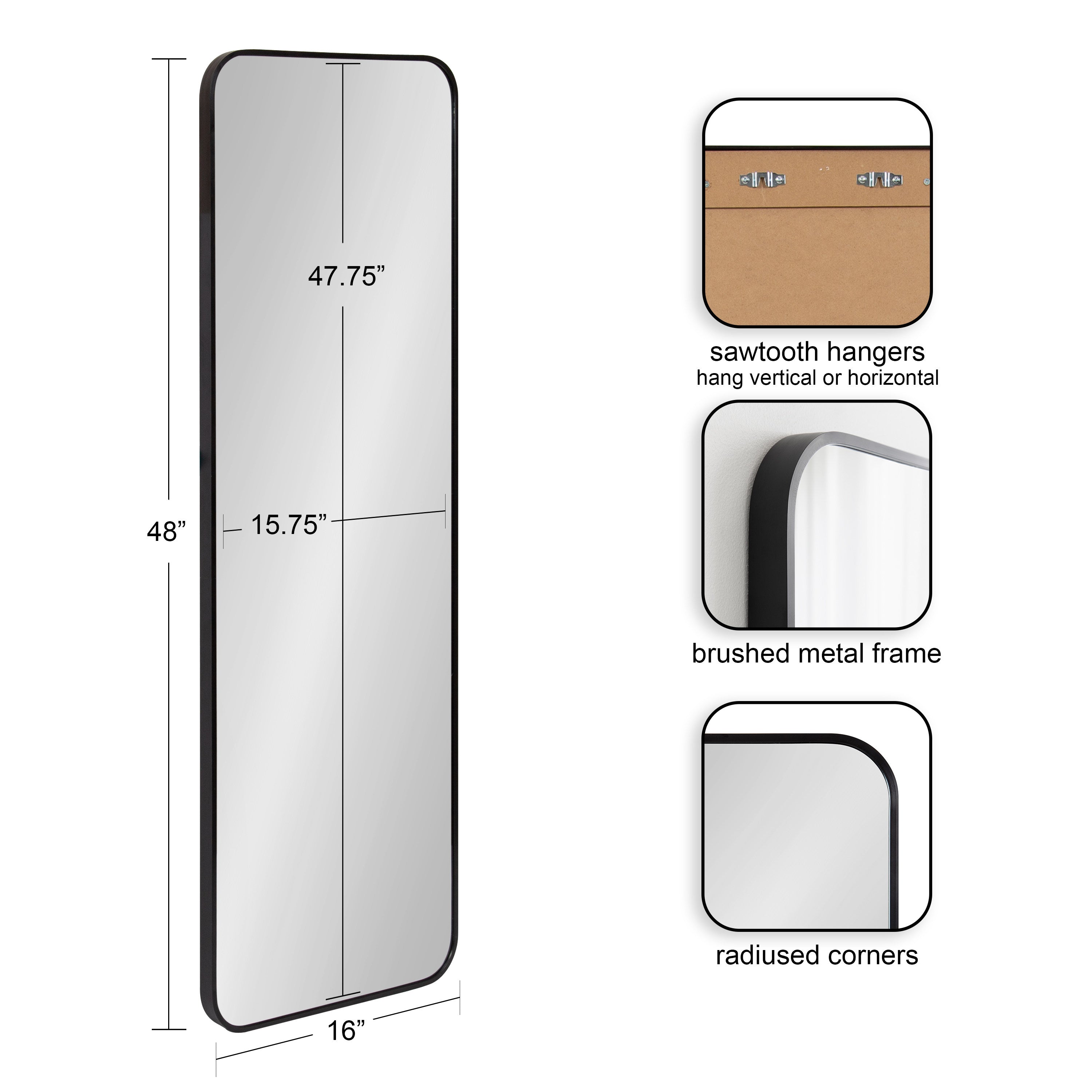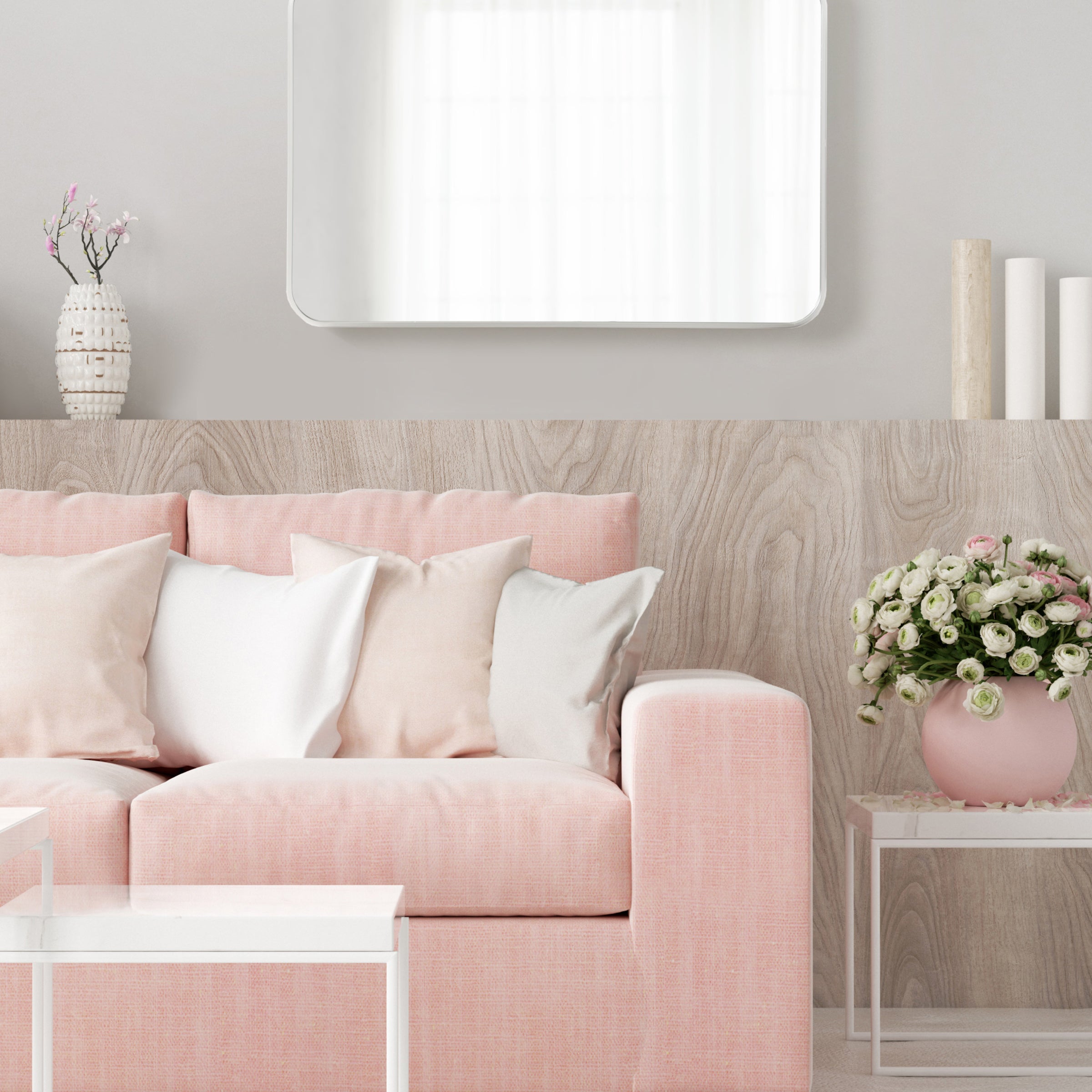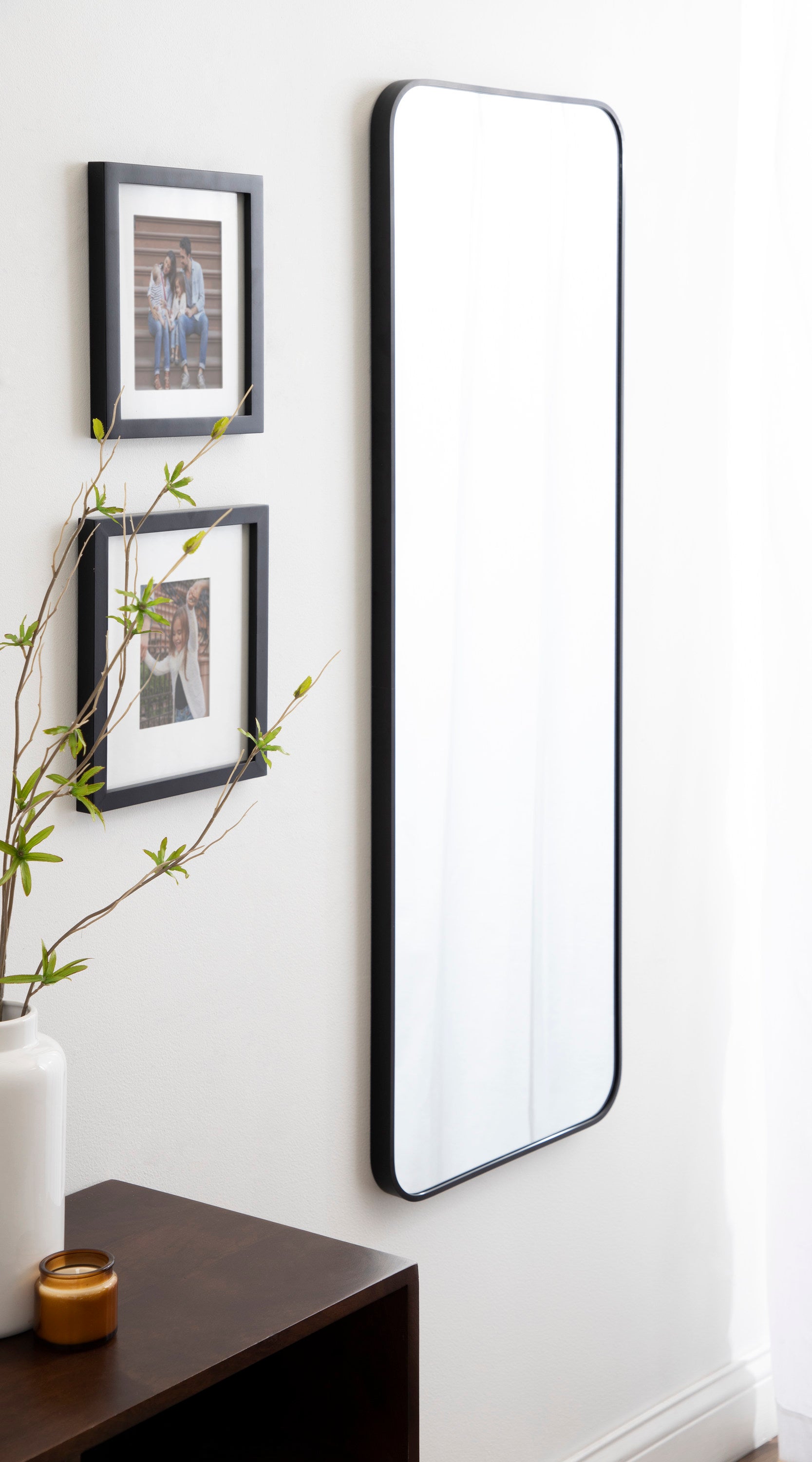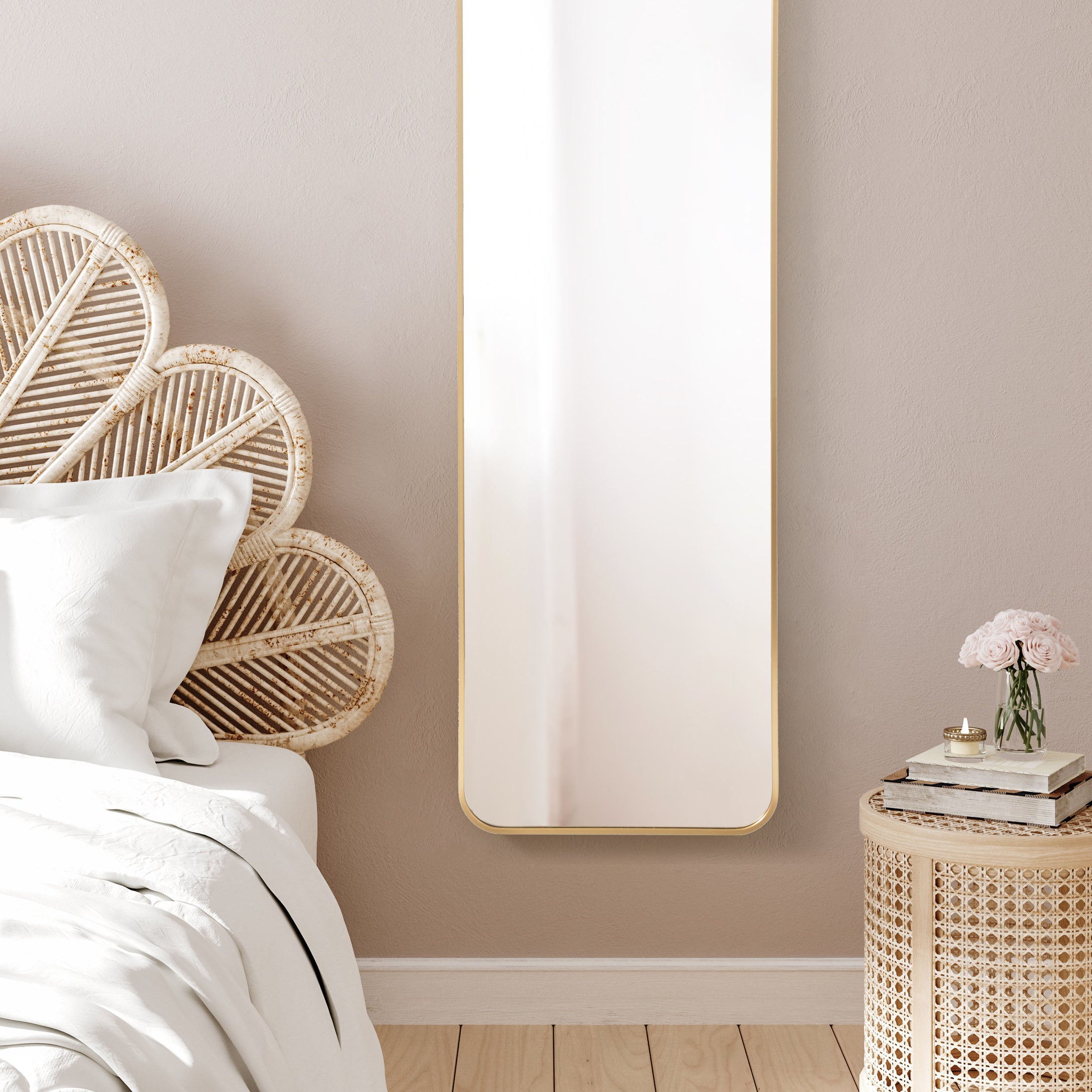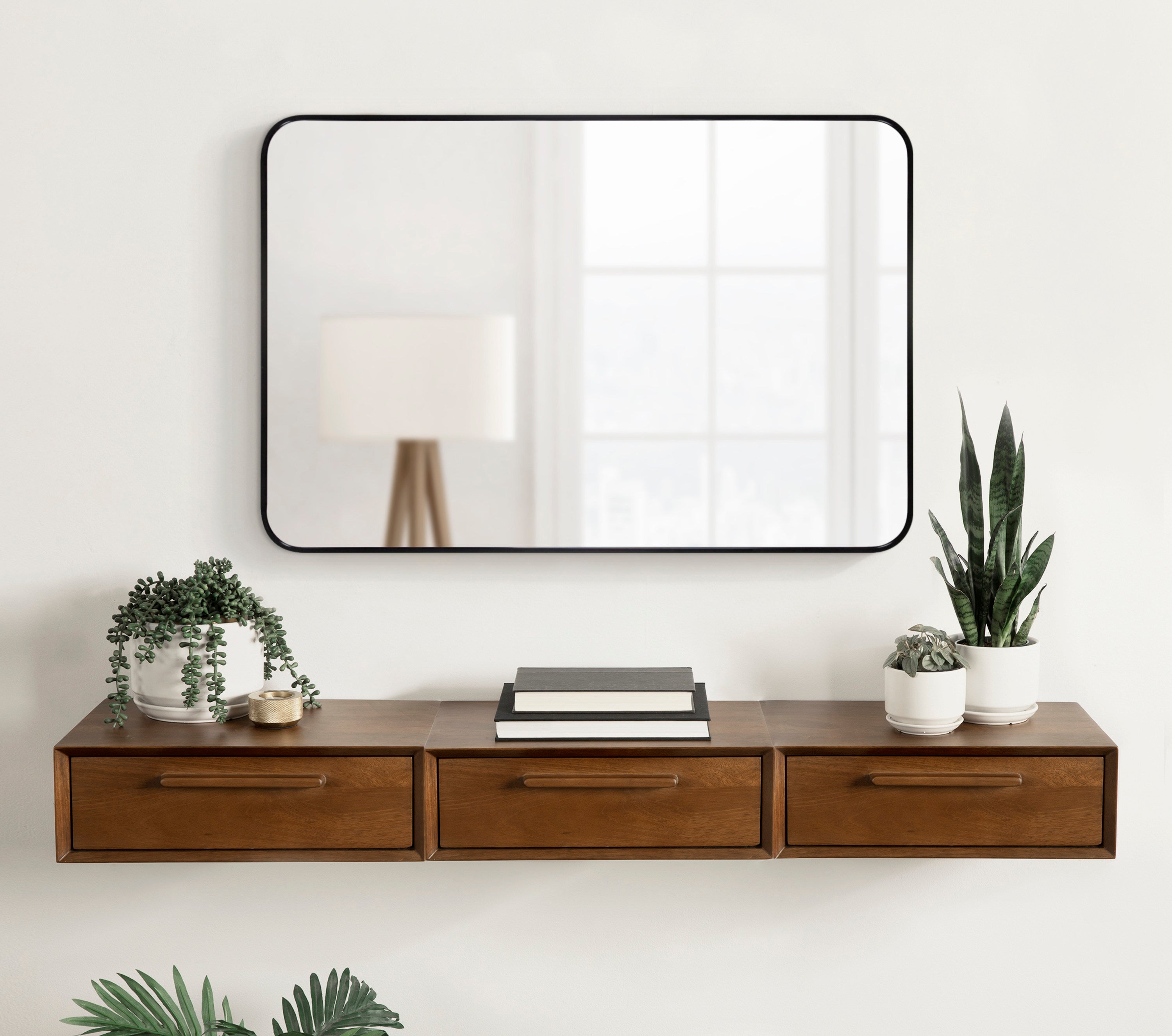 This Zayda rectangular mirror defines stylish simplicity. The combination of smooth curves and a slim frame profile catches attention but blends seamlessly with your decor. This modern option is constructed from resilient aluminum, making it durable and light enough to hang easily.