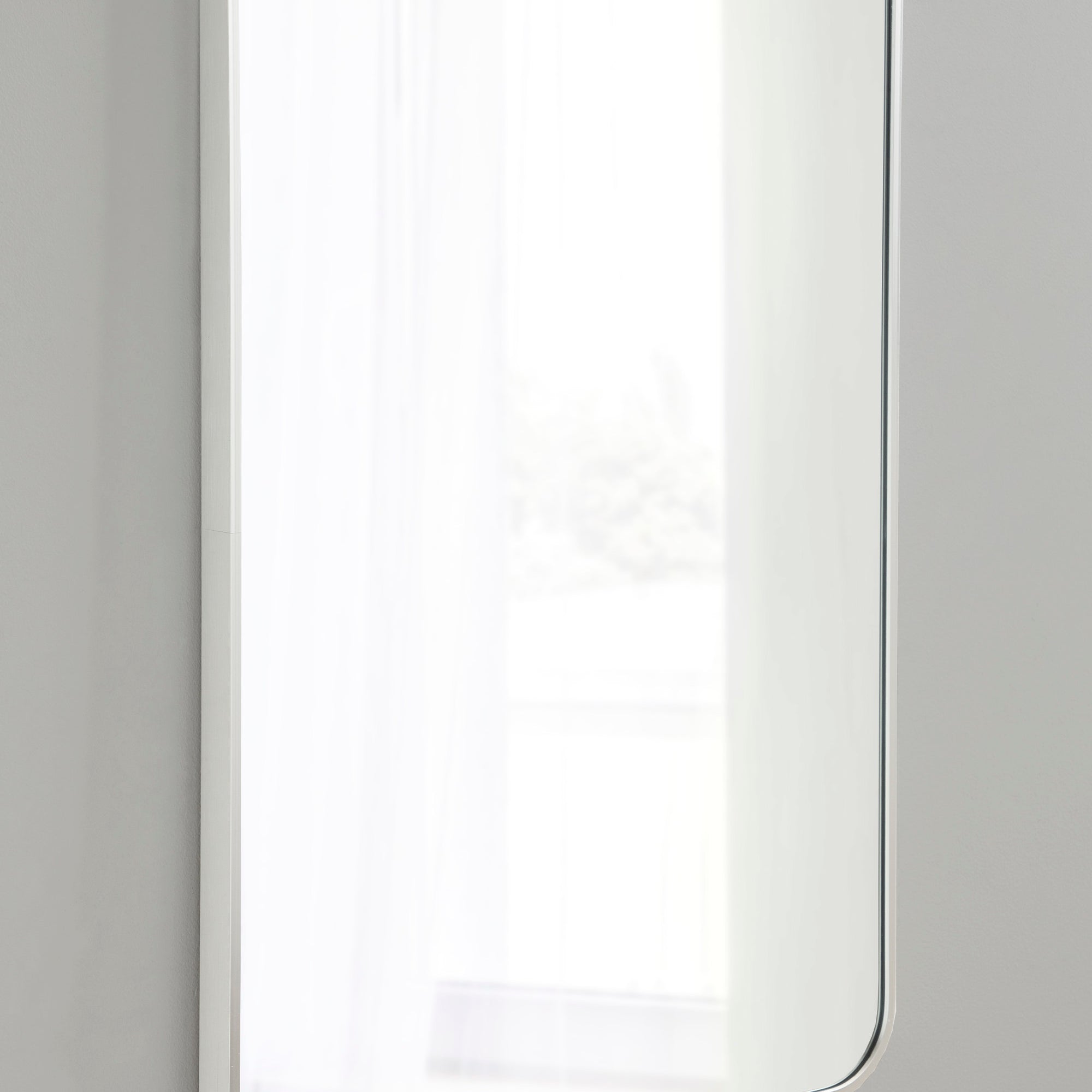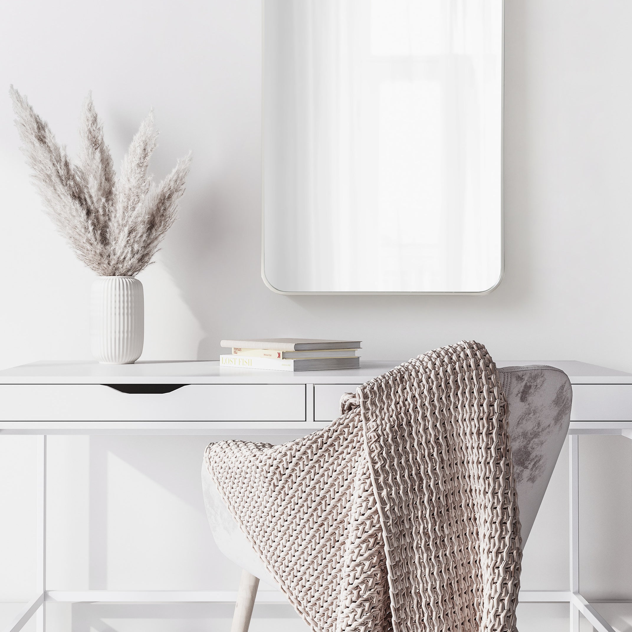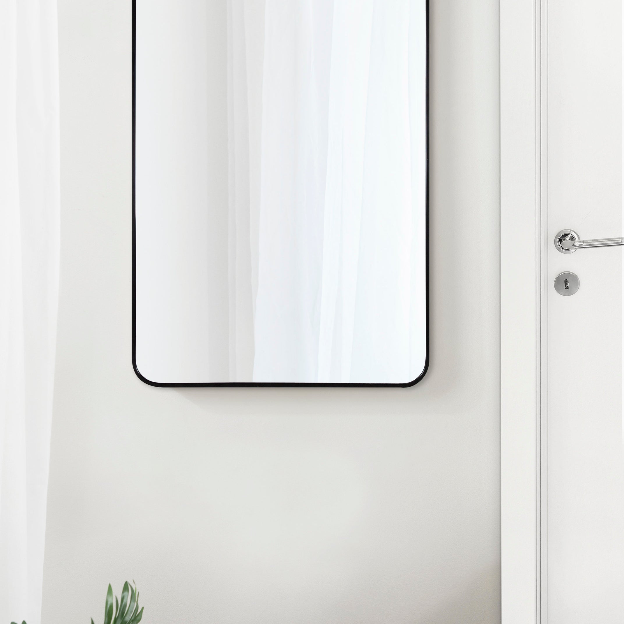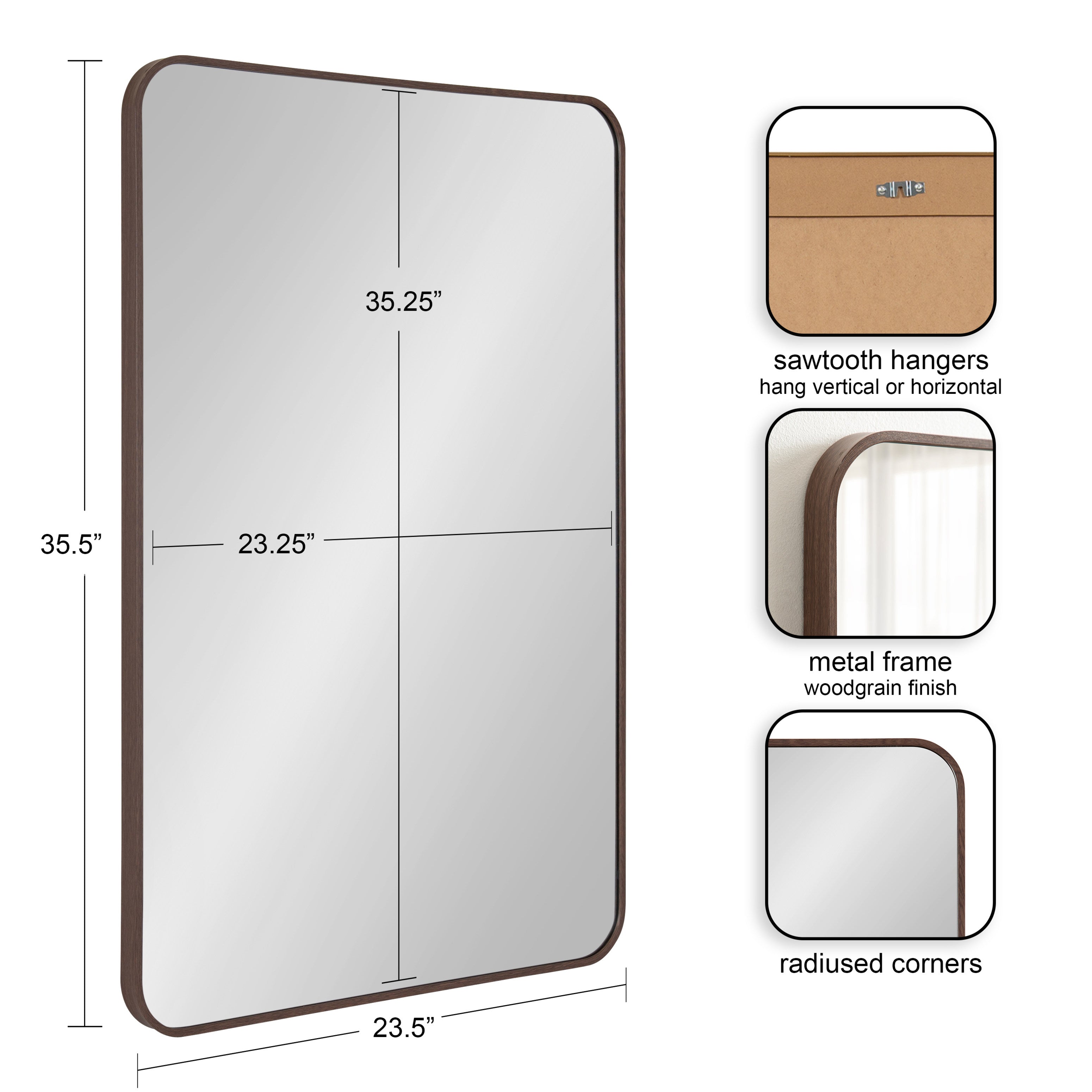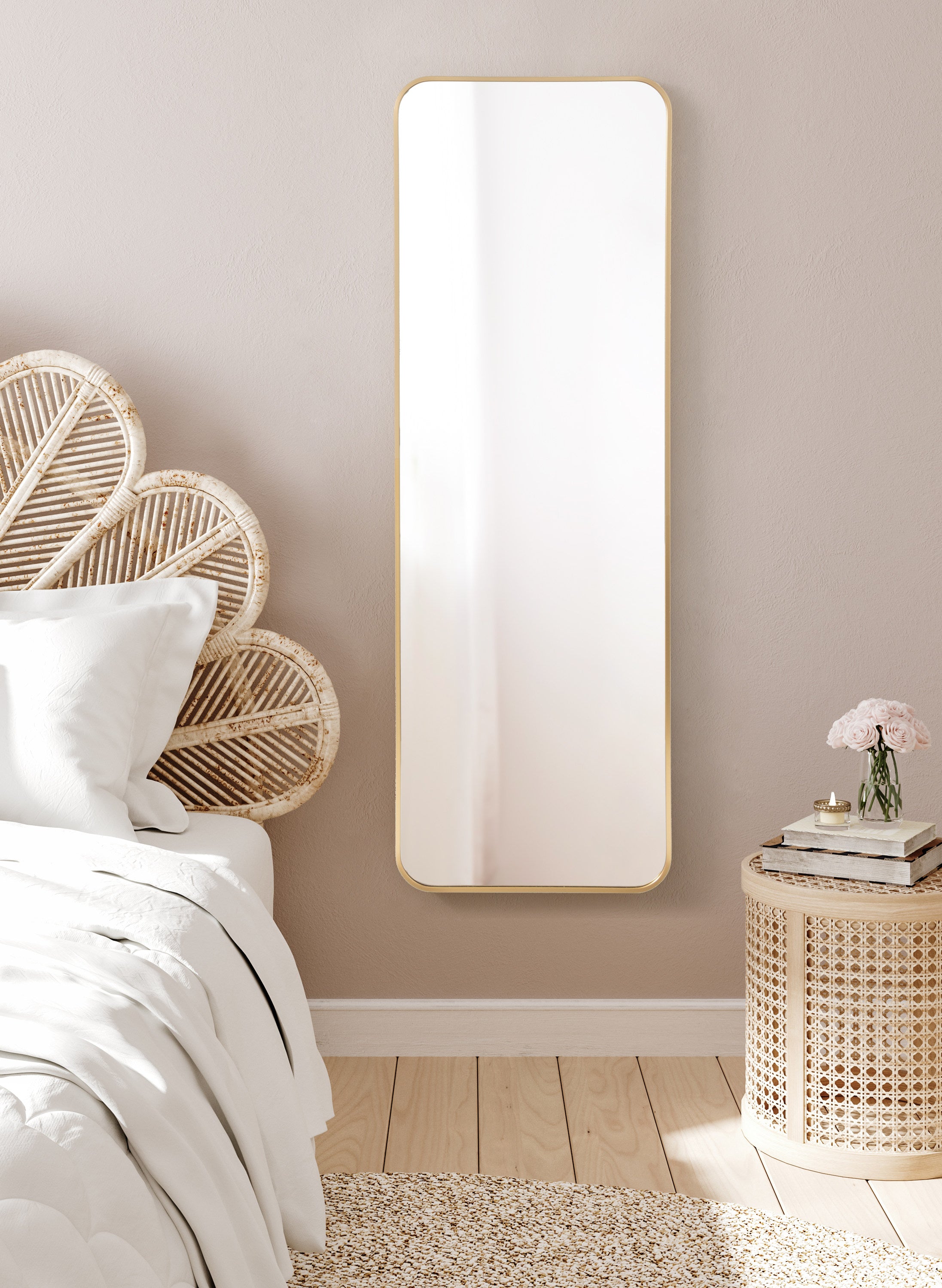 This Zayda rectangular mirror defines stylish simplicity. The combination of smooth curves and a slim frame profile catches attention but blends seamlessly with your decor. This modern option is constructed from resilient aluminum, making it durable and light enough to hang easily.