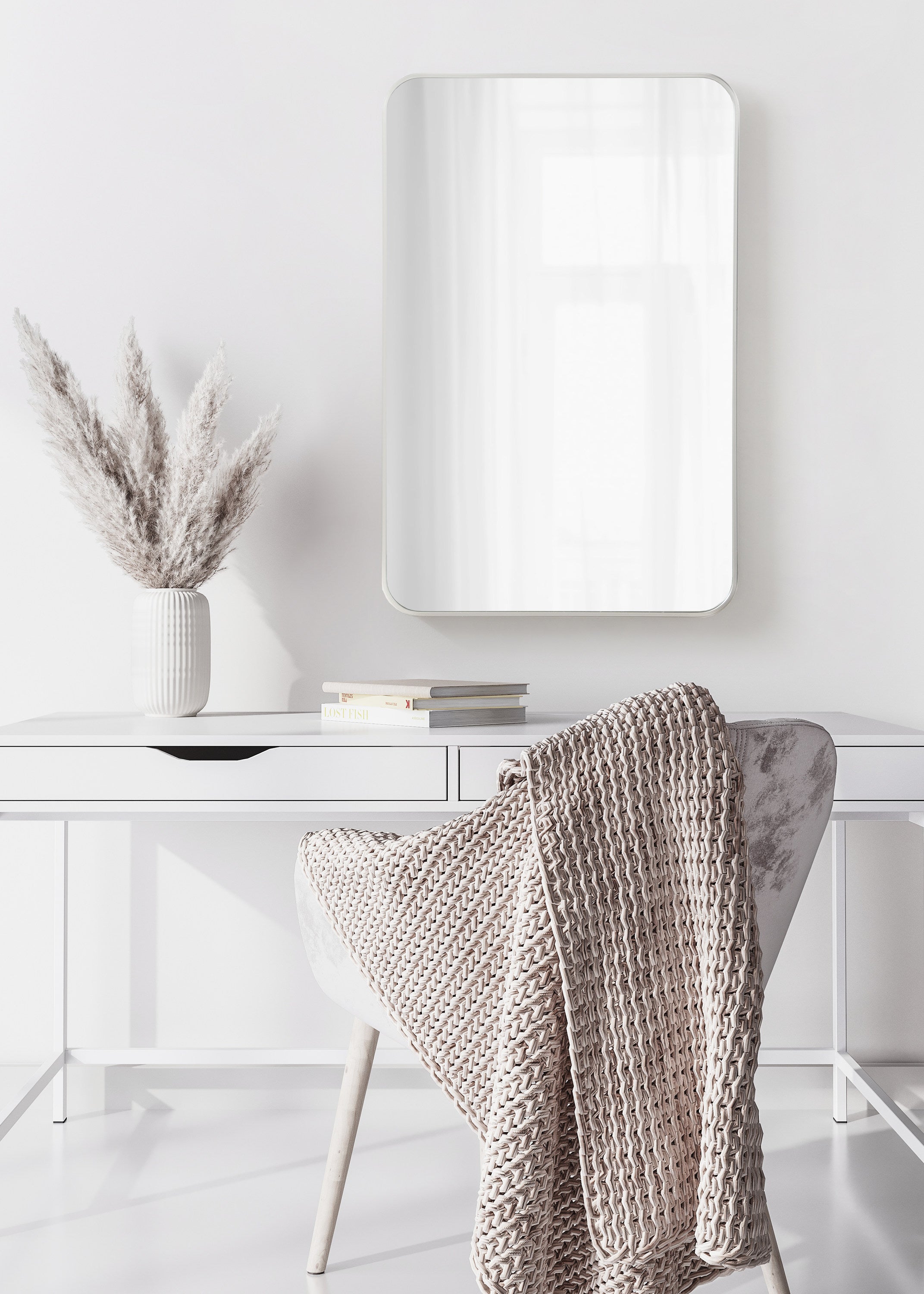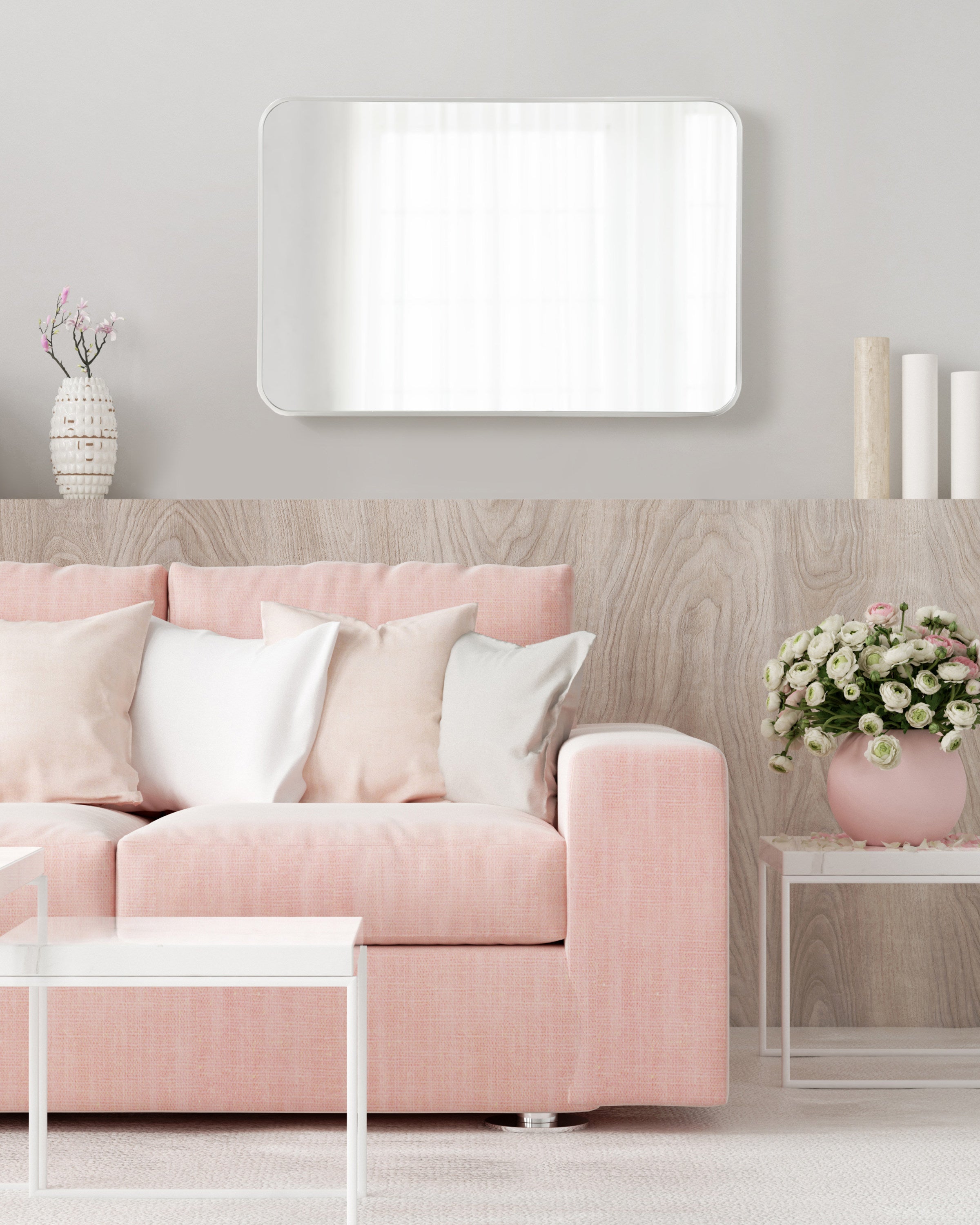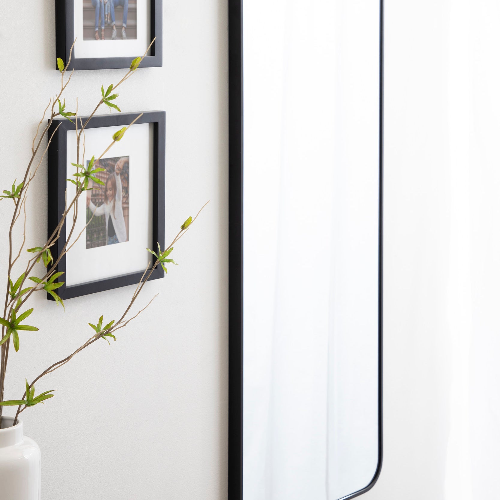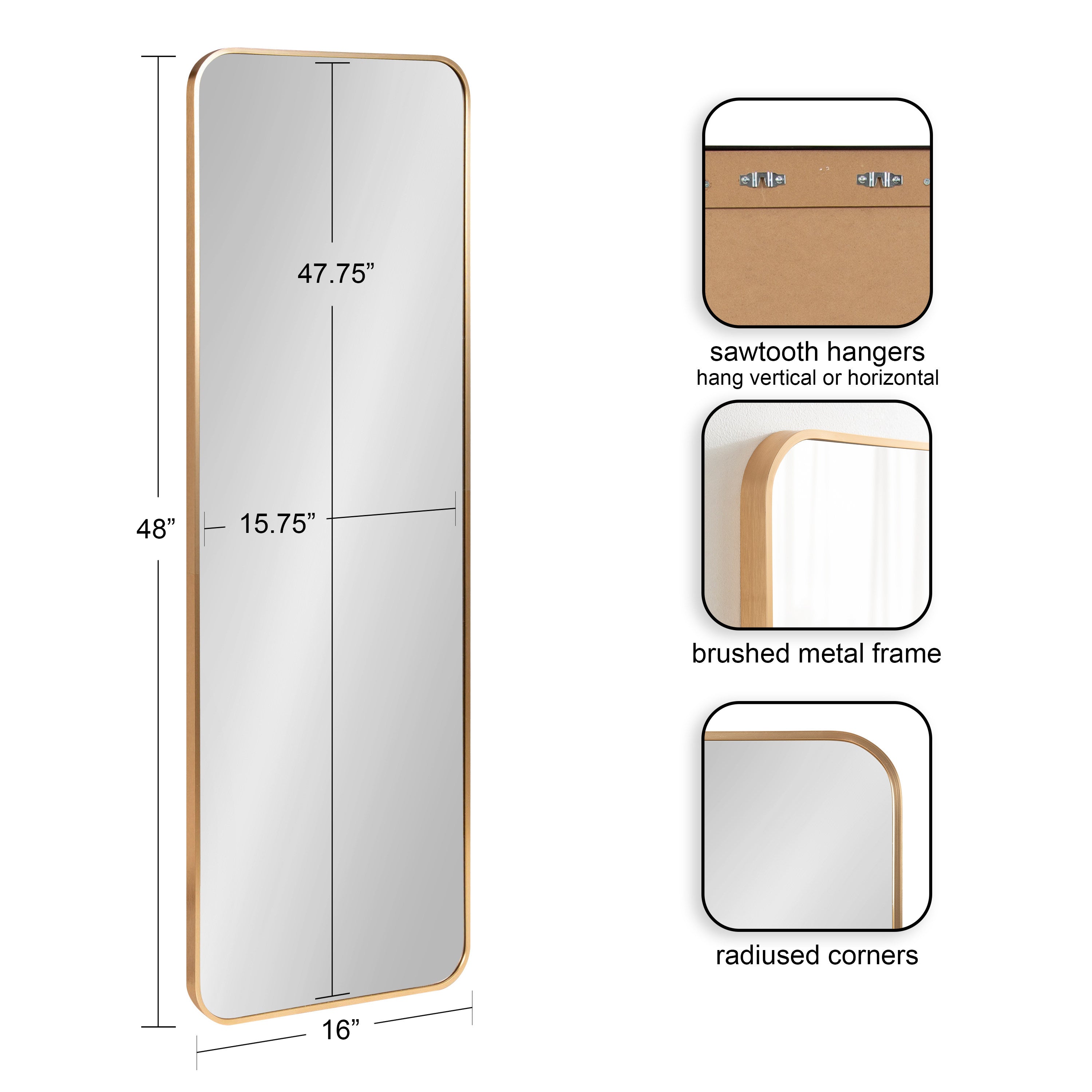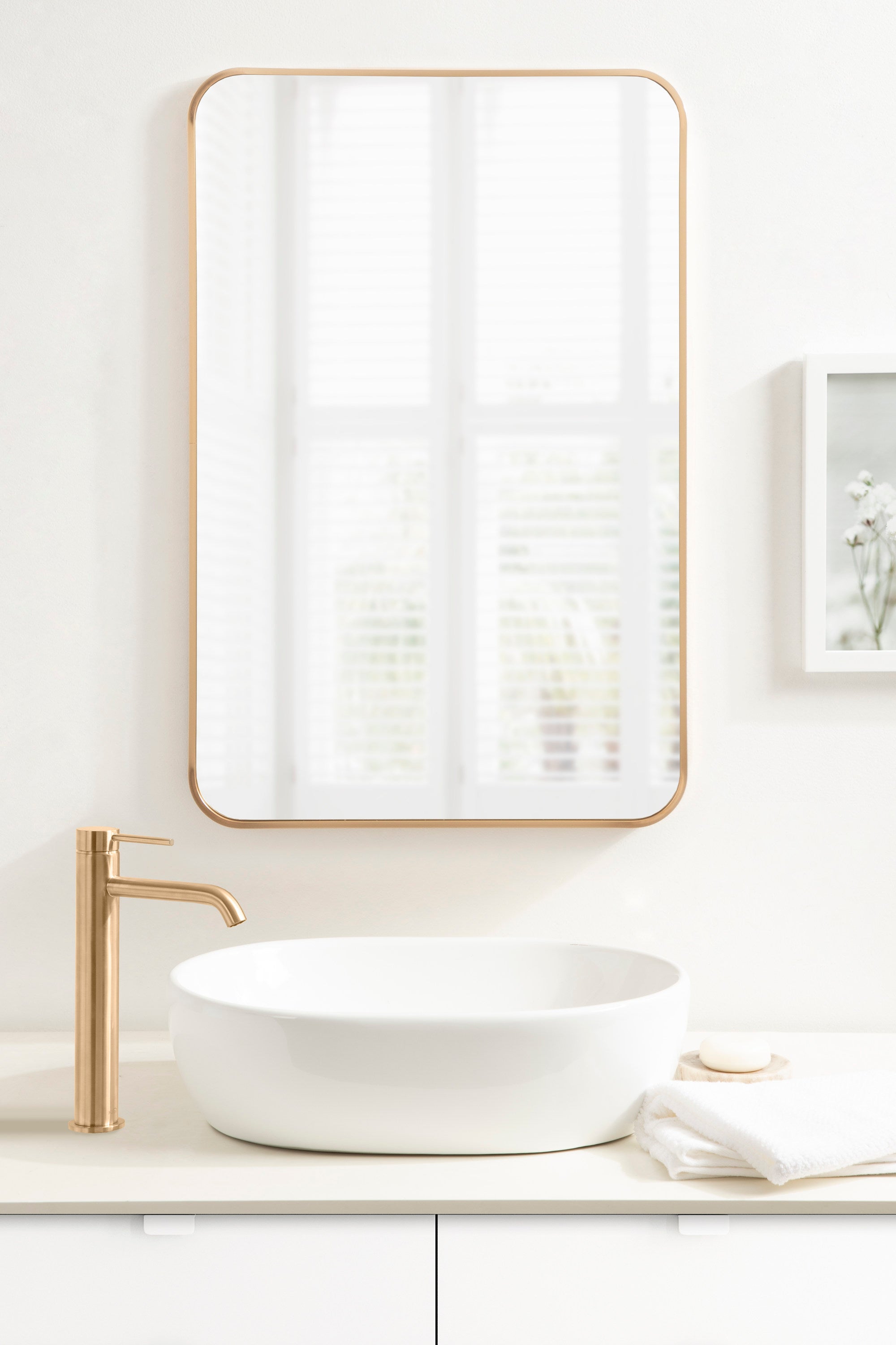 This Zayda rectangular mirror defines stylish simplicity. The combination of smooth curves and a slim frame profile catches attention but blends seamlessly with your decor. This modern option is constructed from resilient aluminum, making it durable and light enough to hang easily.
