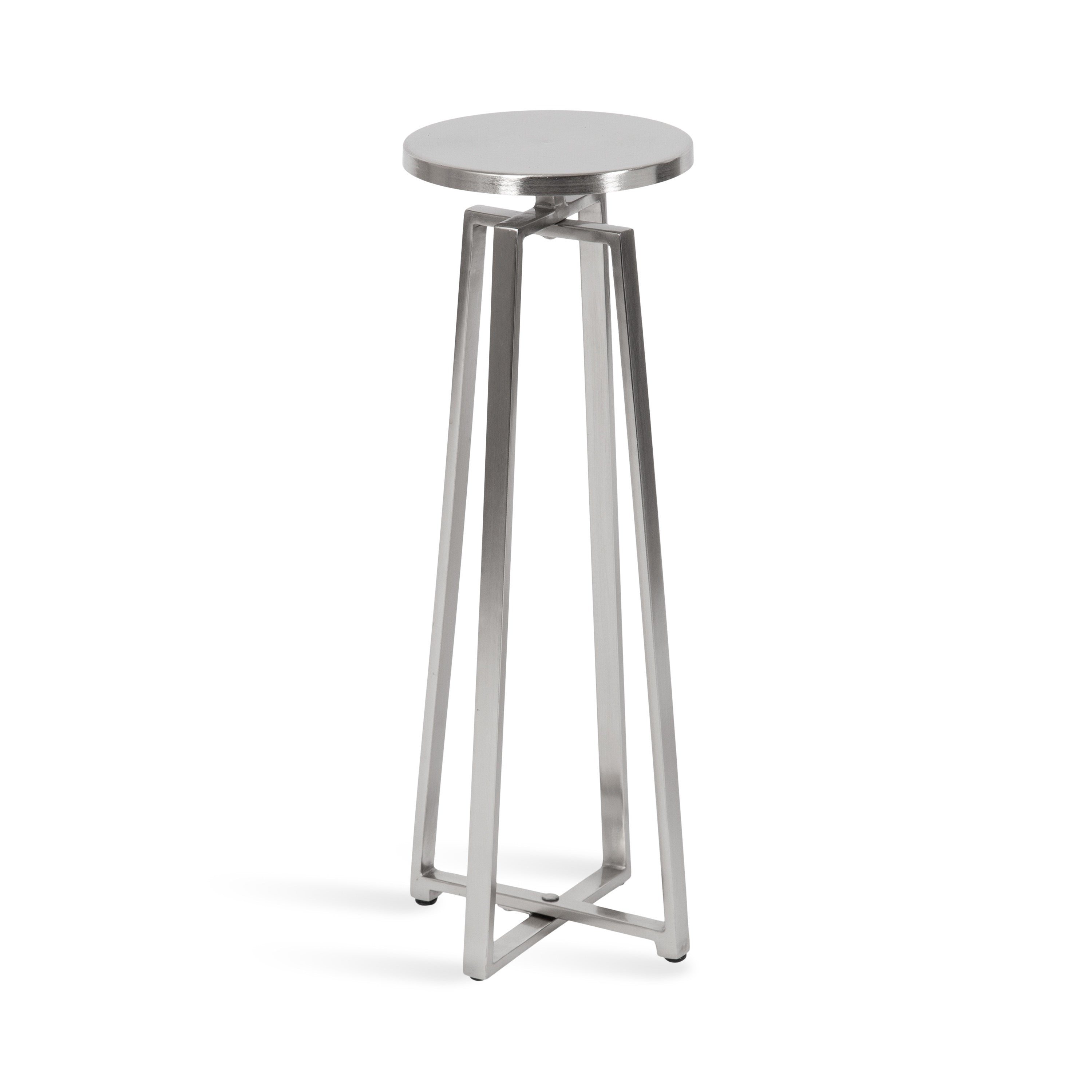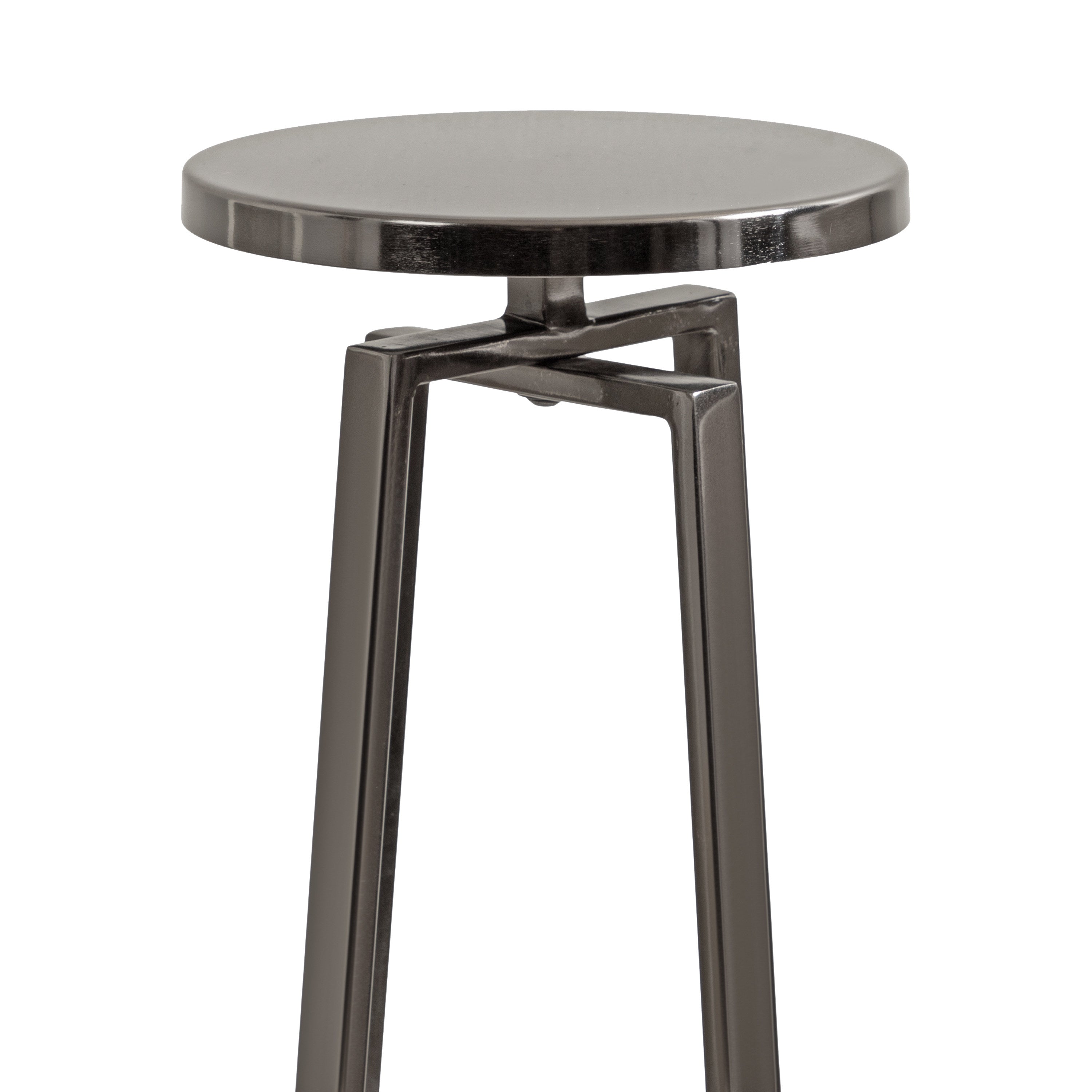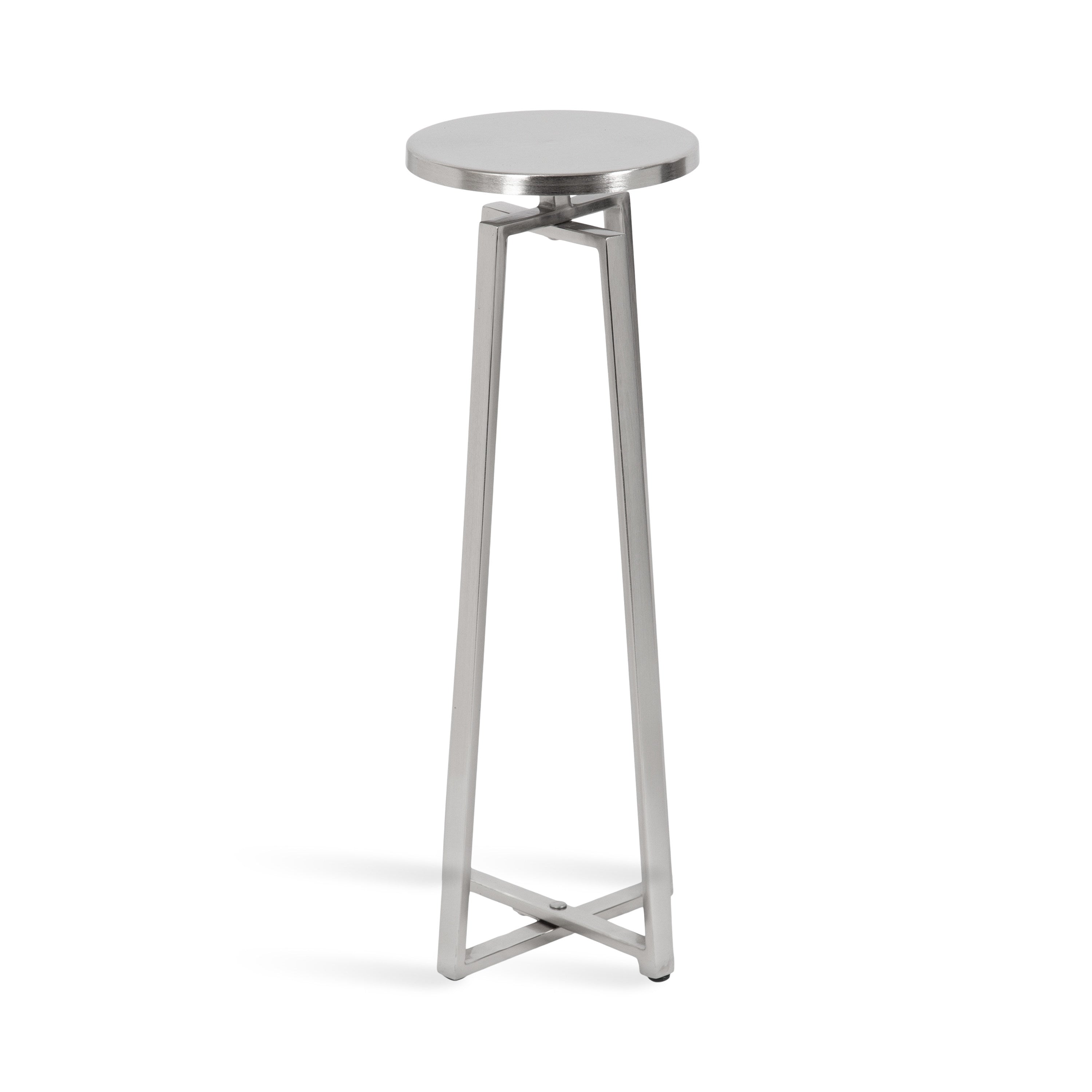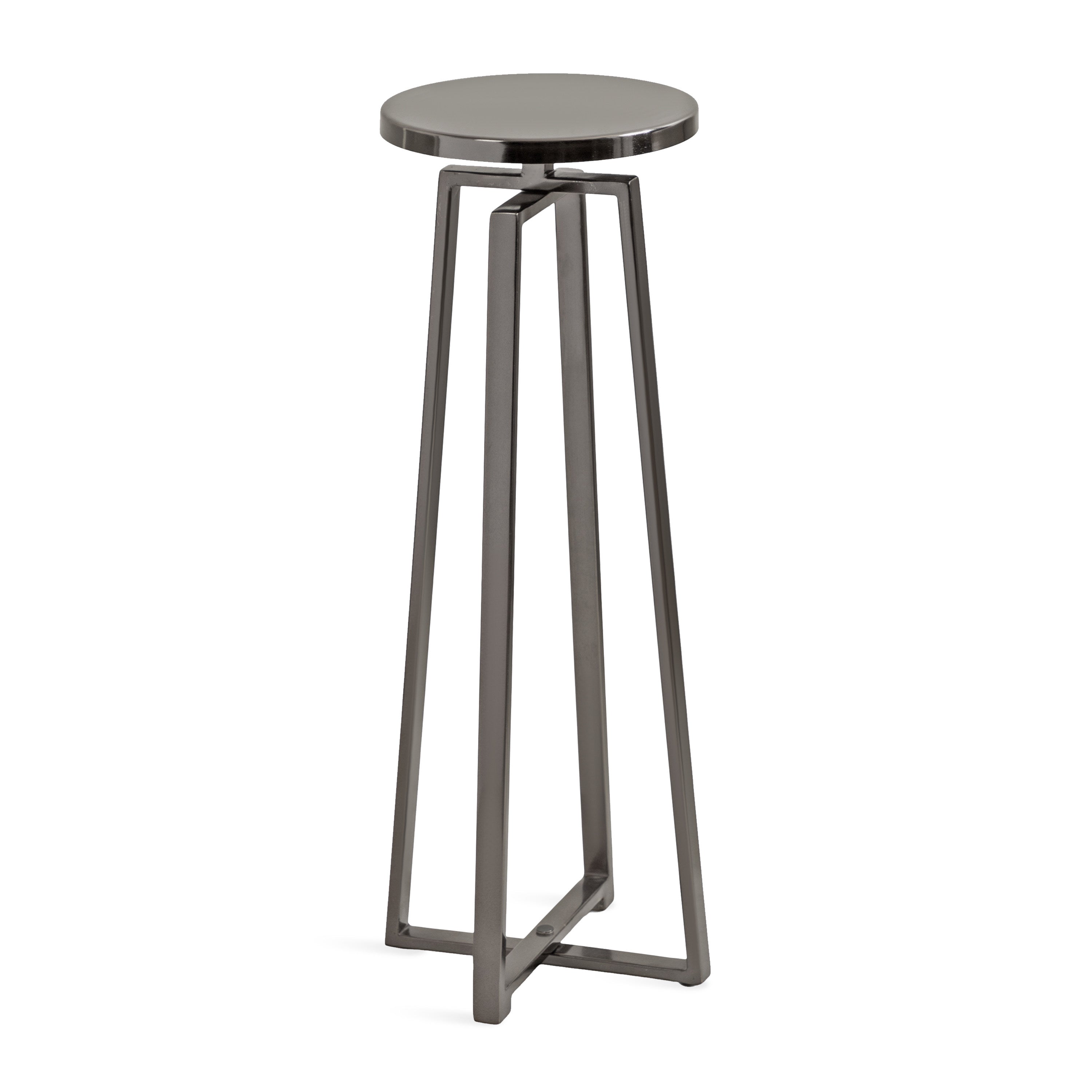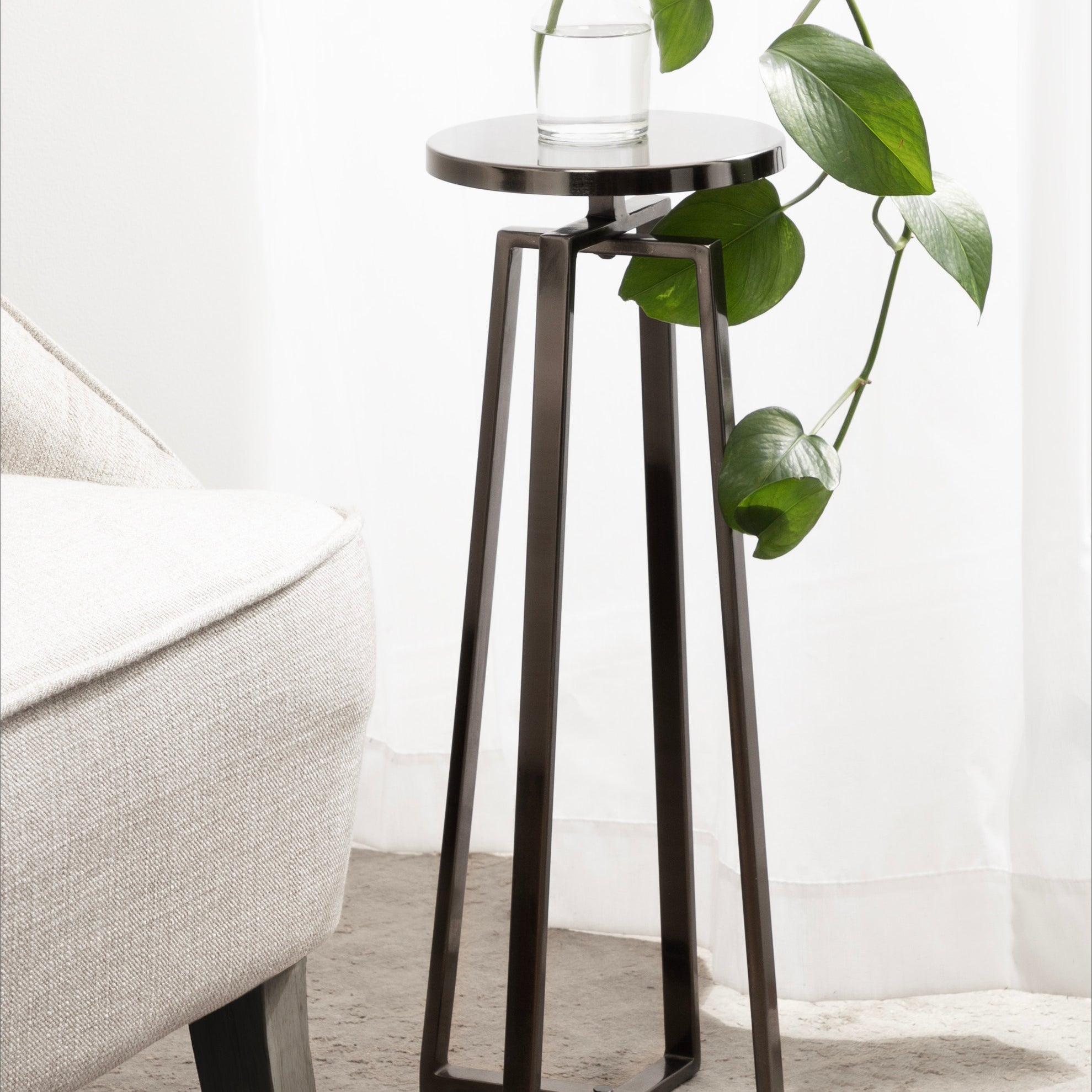 This elegant and refined table brings sophistication to any space in your home. Handcrafted in India and inspired by modern design, this cocktail table features an iron construction that provides a delicate reflective sheen. This elegant table is perfect for holding a cocktail, displaying a plant, or showcasing a photo.